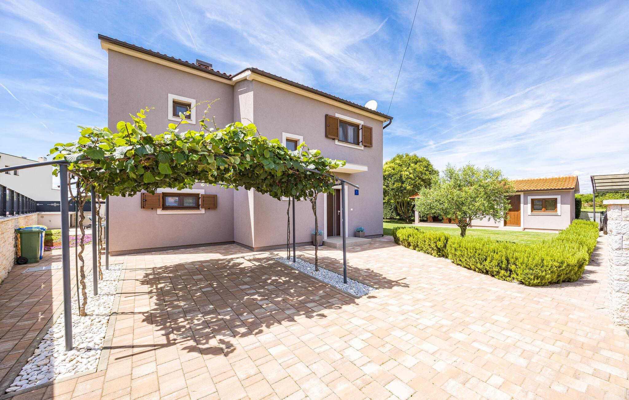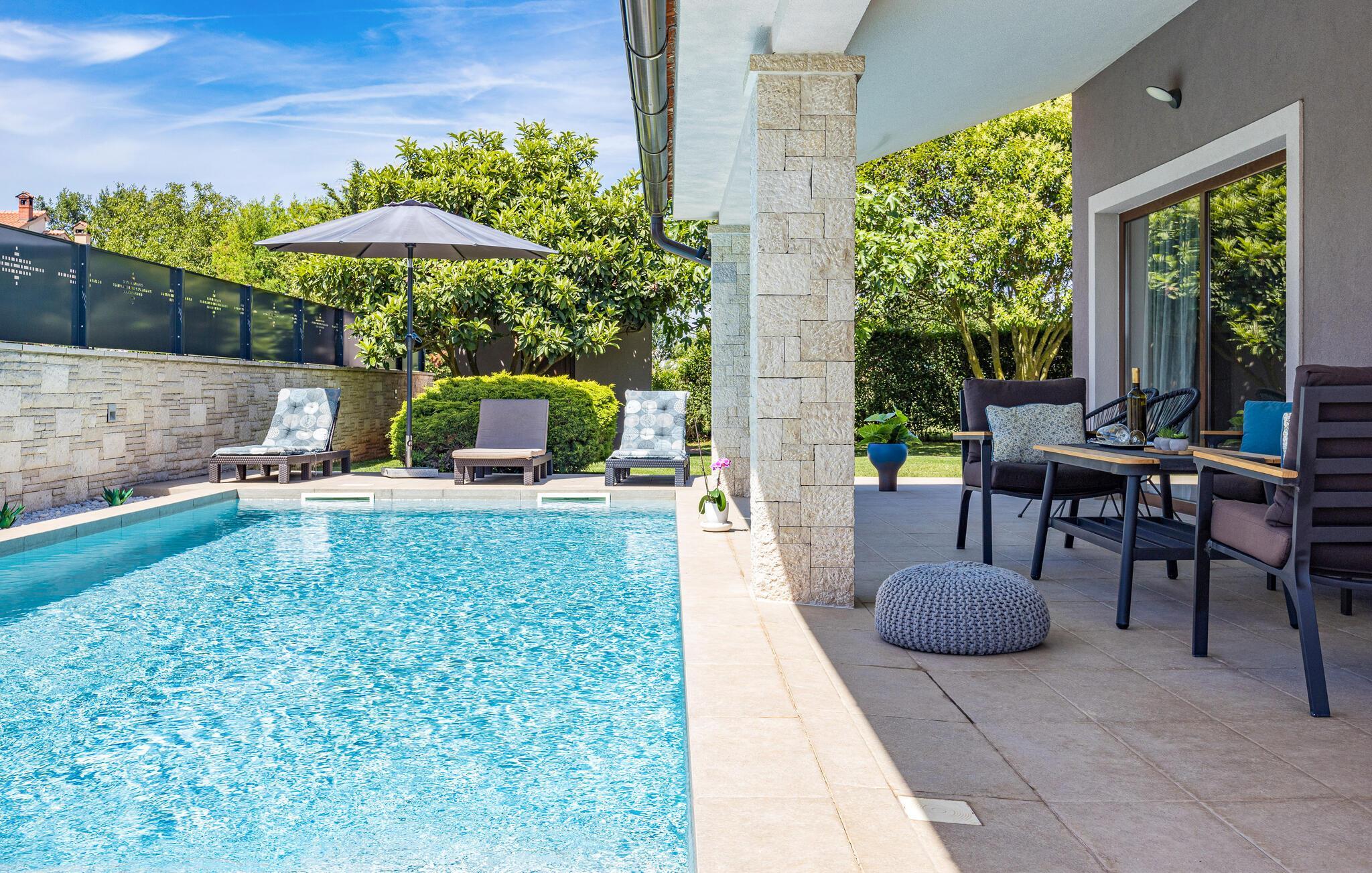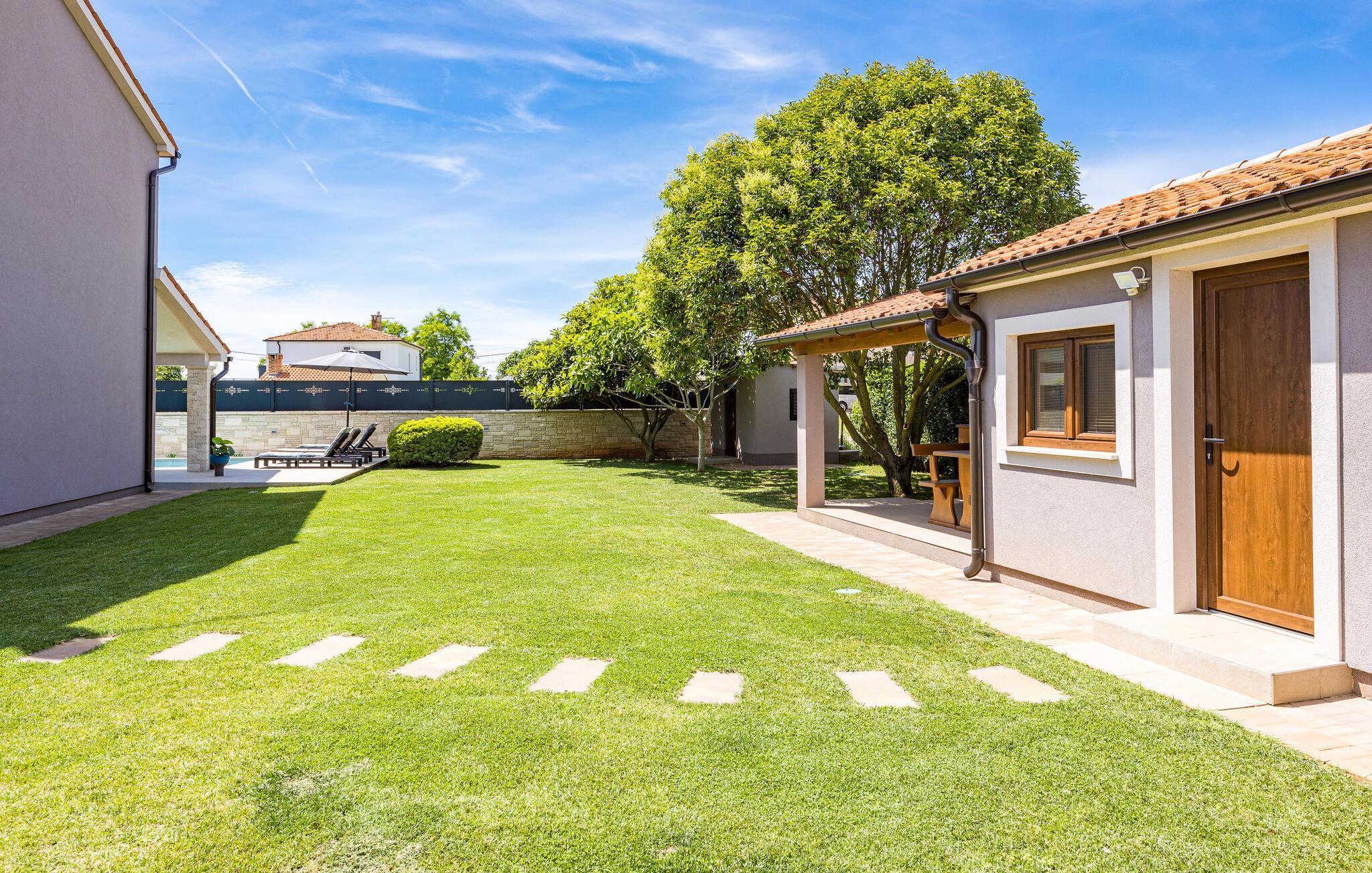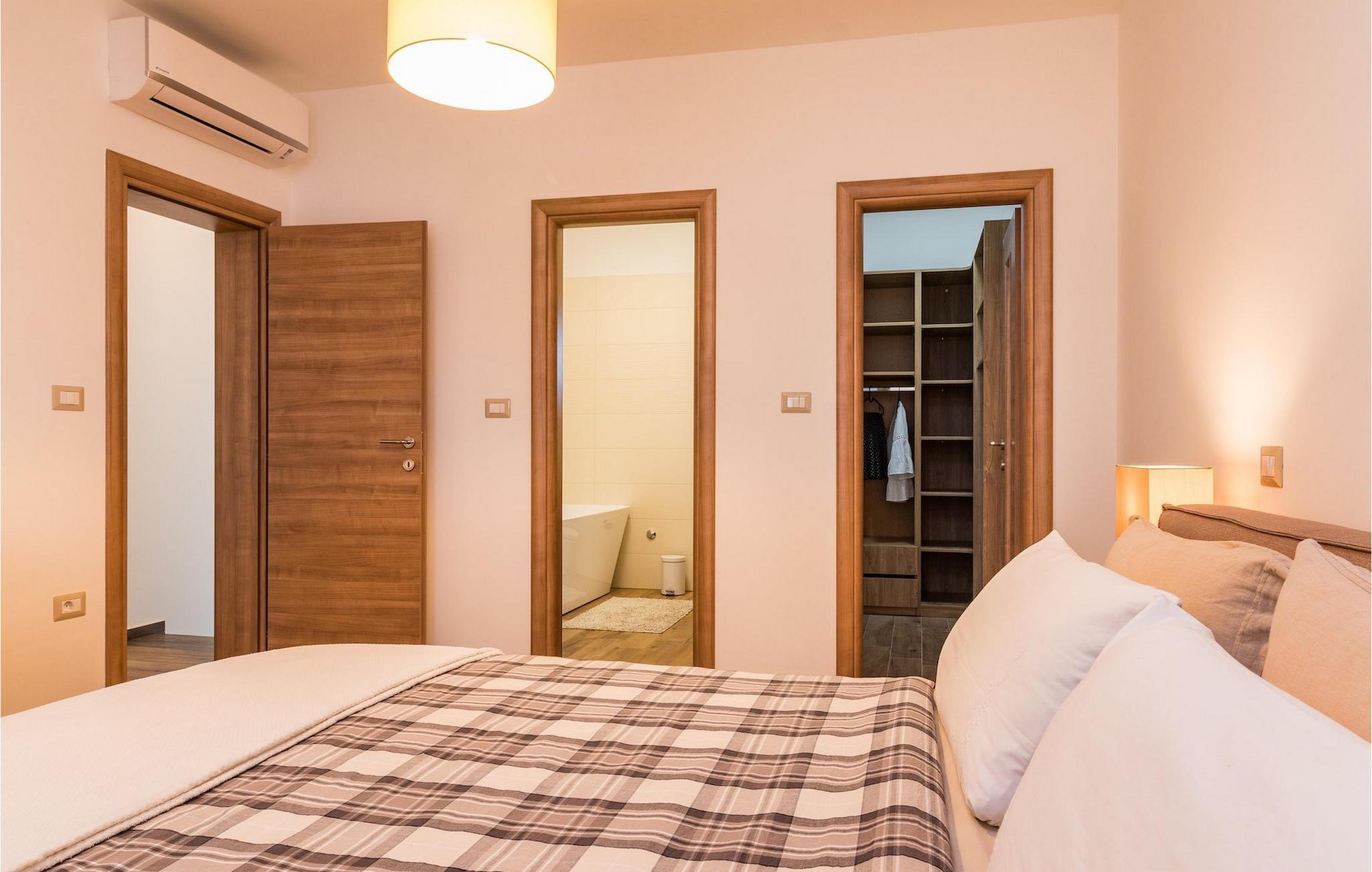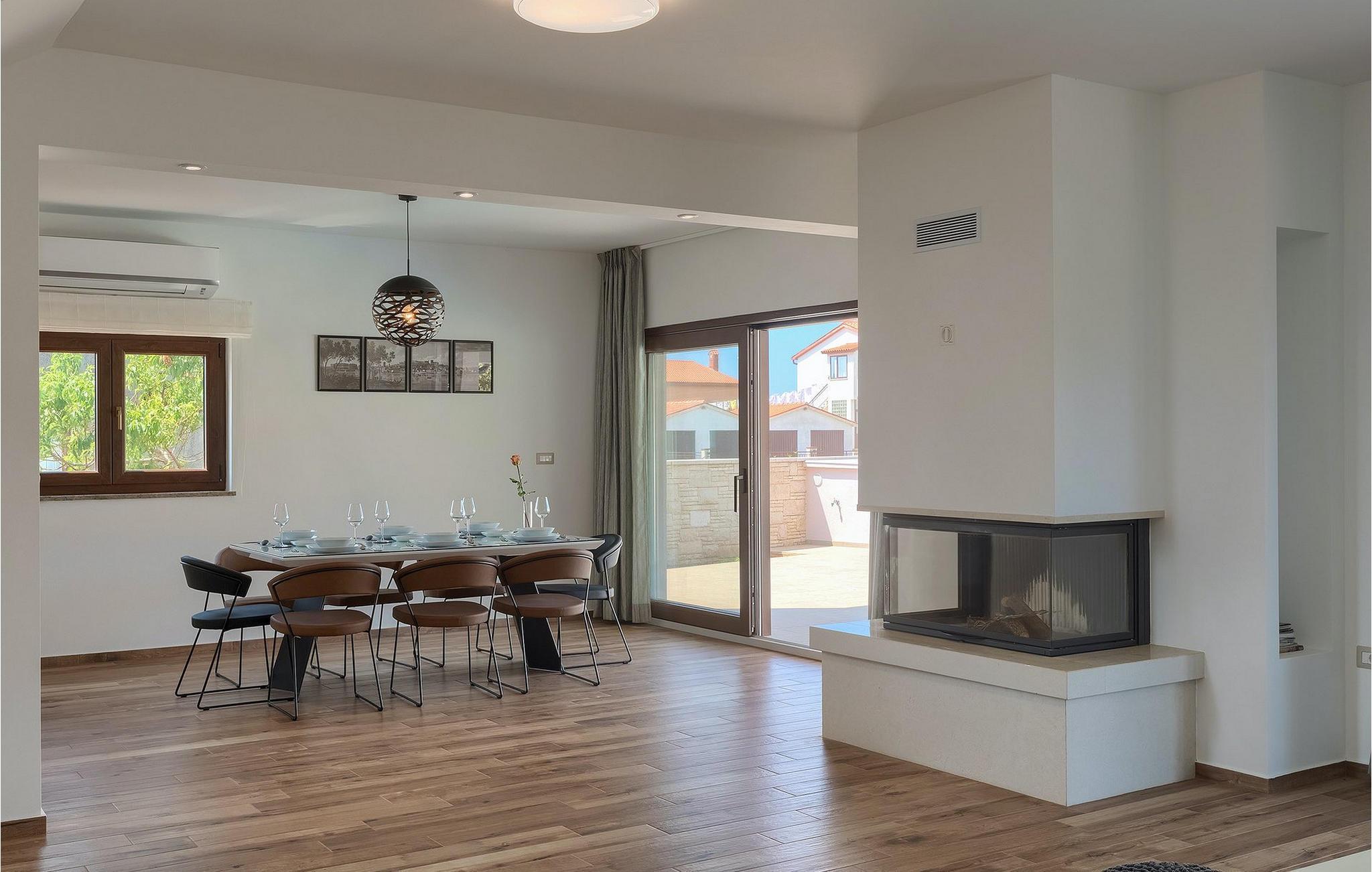 Villa Roma ligger på den sørlige delen av Istria-halvøya og tilbyr overnatting for 6 personer. Villaen består av 3 stilfullt innredede og koselige soverom, som alle har klimaanlegg og eget bad, slik at alle gjestene kan nyte maksimal komfort under oppholdet. Alle soverommene ligger i øverste etasje. I første etasje kan alle samles i den romslige stuen med peis og satellitt-TV eller tilberede måltider på kjøkkenet, som er utstyrt med alt du trenger under oppholdet. Det er også en kullgrill og en koselig spiseplass under tak hvis du foretrekker å spise ute. Det innbydende bassenget ligger bare noen få skritt fra stuen og byr på forfriskninger til alle døgnets tider. Nærmeste butikk og kafé ligger i sentrum av landsbyen, bare en kort spasertur fra villaen. Hvis du vil tilbringe dagen på stranden, er det mange muligheter i området, ettersom den sørlige delen av Istria har en svært variert kystlinje. Villaen har klimaanlegg, kjæledyrvennlig, 2 private parkeringsplasser og en inngjerdet hage - det perfekte valget for en avslappende ferie.Villa Roma ligger i den lille landsbyen Jadreski, bare ca. 7 km fra Pula. Pula er den største byen på Istria-halvøya og en av de viktigste turistbyene med mye å se og utforske. Pula ble bygget av romerne i år 46 f.Kr. Selv om Pula er som et oldtidsmuseum i det fri, må du også besøke det største monumentet, det berømte amfiteateret fra det 1. århundre, som ligger i nærheten av sentrum. Her finner mange arrangementer sted, fra konserter og filmvisninger til sportsbegivenheter. Forum med August-tempelet ligger i den gamle bykjernen. Her kan du også besøke Istrias historiske museum og Istrias arkeologiske museum. I nærområdet kan du besøke vakre istriske småbyer, utforske naturstrender og dra på fotturer, sykle eller dykke. Du kan også smake på deilige istriske spesialiteter under oppholdet.