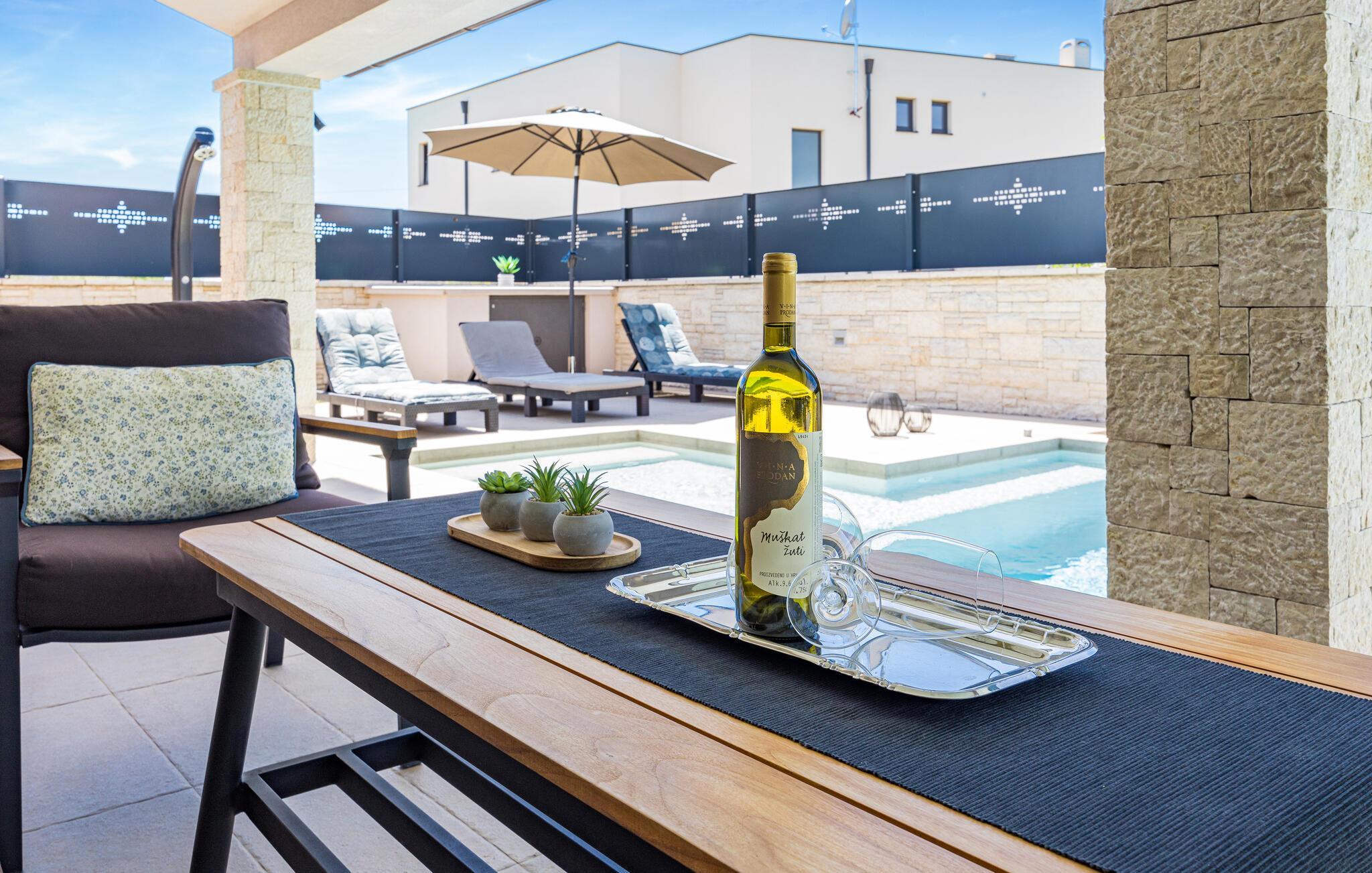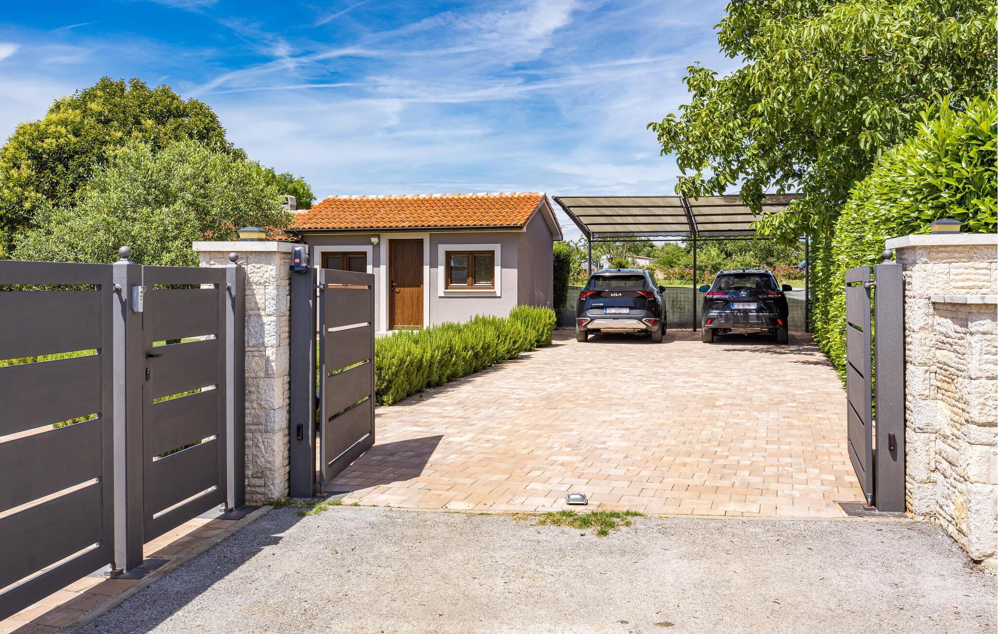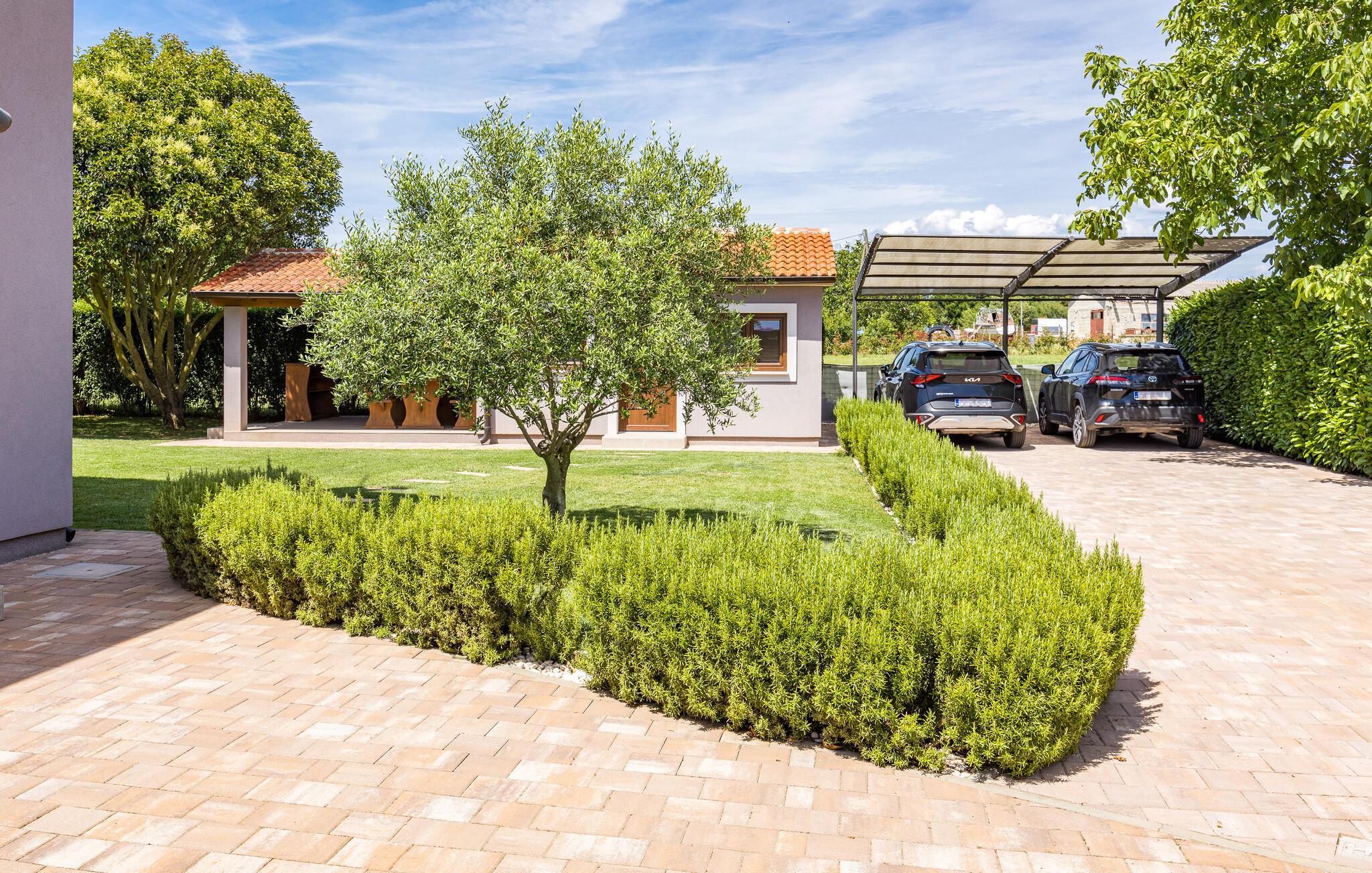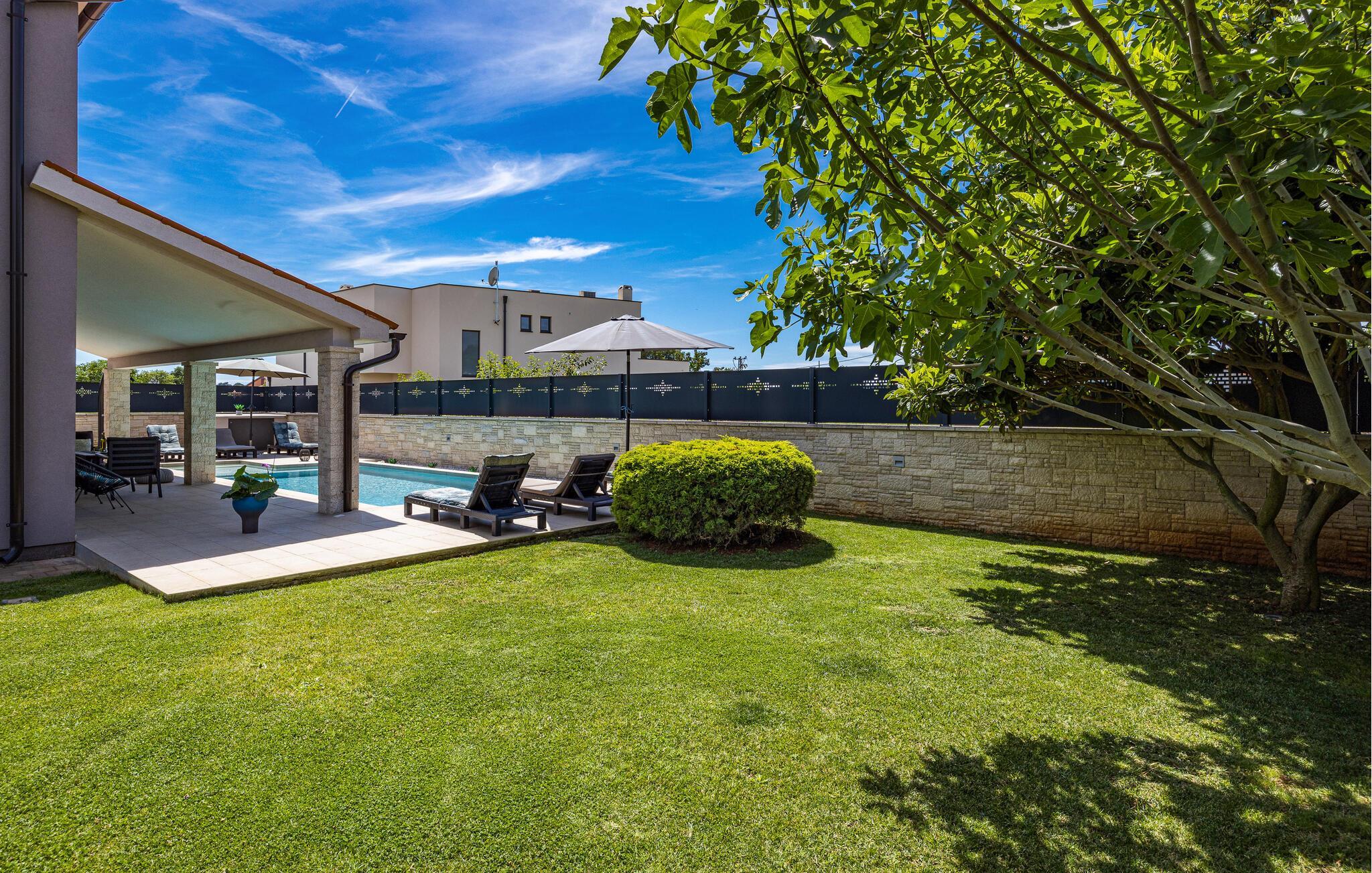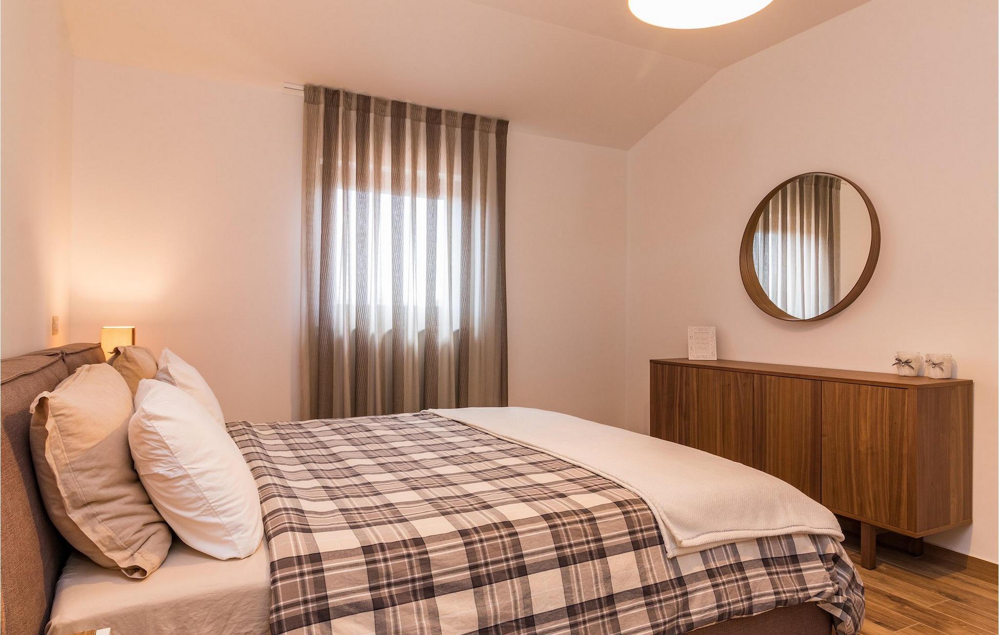 Villa Roma ligger på den sørlige delen av Istria-halvøya og tilbyr overnatting for 6 personer. Villaen består av 3 stilfullt innredede og koselige soverom, som alle har klimaanlegg og eget bad, slik at alle gjestene kan nyte maksimal komfort under oppholdet. Alle soverommene ligger i øverste etasje. I første etasje kan alle samles i den romslige stuen med peis og satellitt-TV eller tilberede måltider på kjøkkenet, som er utstyrt med alt du trenger under oppholdet. Det er også en kullgrill og en koselig spiseplass under tak hvis du foretrekker å spise ute. Det innbydende bassenget ligger bare noen få skritt fra stuen og byr på forfriskninger til alle døgnets tider. Nærmeste butikk og kafé ligger i sentrum av landsbyen, bare en kort spasertur fra villaen. Hvis du vil tilbringe dagen på stranden, er det mange muligheter i området, ettersom den sørlige delen av Istria har en svært variert kystlinje. Villaen har klimaanlegg, kjæledyrvennlig, 2 private parkeringsplasser og en inngjerdet hage - det perfekte valget for en avslappende ferie.Villa Roma ligger i den lille landsbyen Jadreski, bare ca. 7 km fra Pula. Pula er den største byen på Istria-halvøya og en av de viktigste turistbyene med mye å se og utforske. Pula ble bygget av romerne i år 46 f.Kr. Selv om Pula er som et oldtidsmuseum i det fri, må du også besøke det største monumentet, det berømte amfiteateret fra det 1. århundre, som ligger i nærheten av sentrum. Her finner mange arrangementer sted, fra konserter og filmvisninger til sportsbegivenheter. Forum med August-tempelet ligger i den gamle bykjernen. Her kan du også besøke Istrias historiske museum og Istrias arkeologiske museum. I nærområdet kan du besøke vakre istriske småbyer, utforske naturstrender og dra på fotturer, sykle eller dykke. Du kan også smake på deilige istriske spesialiteter under oppholdet.