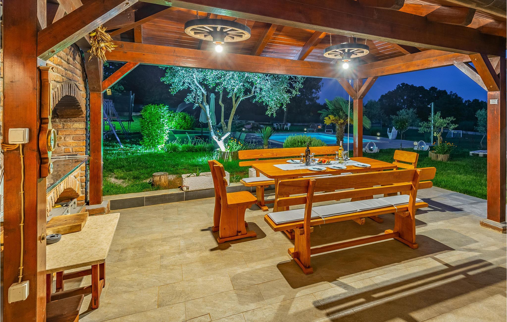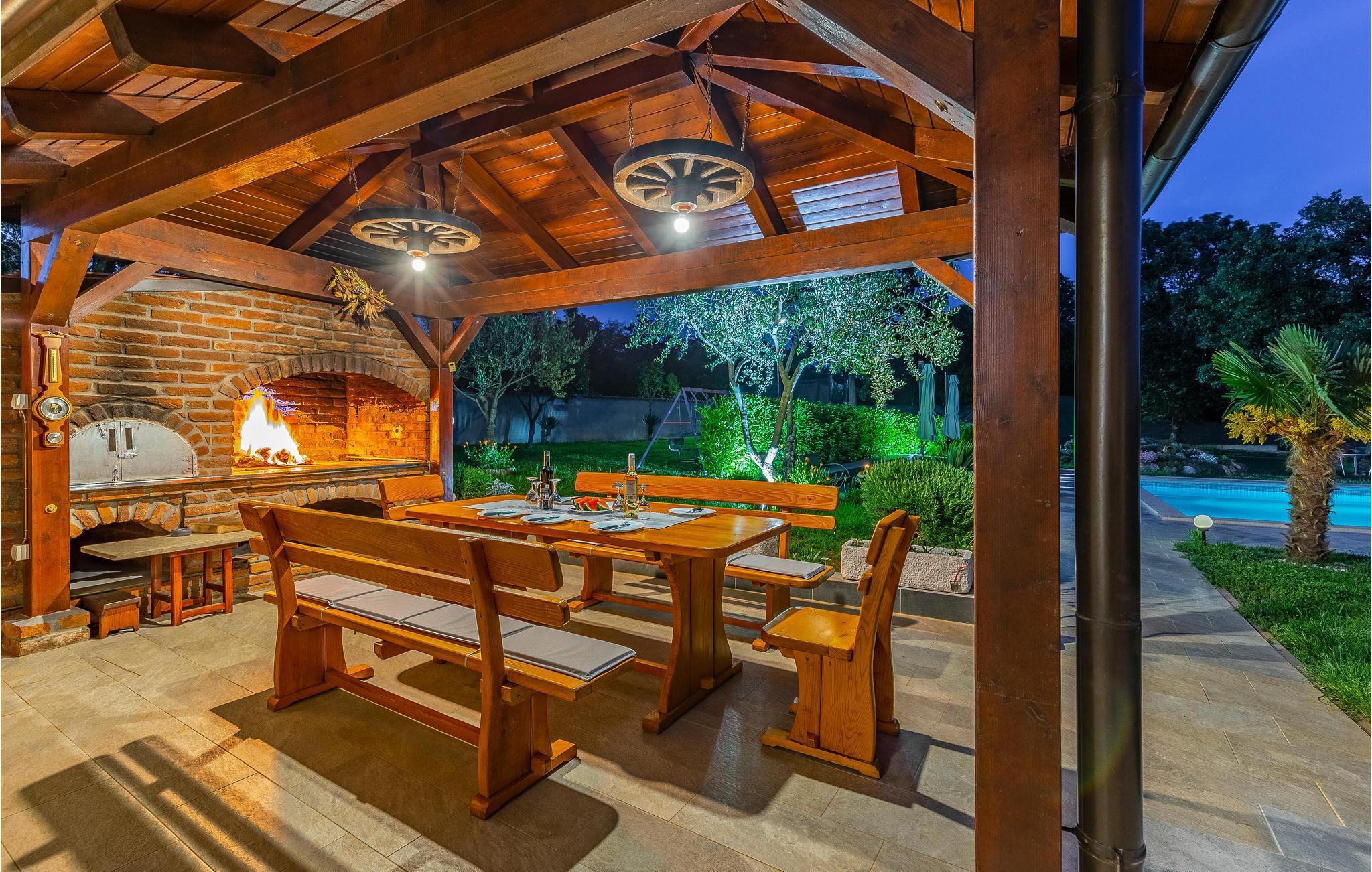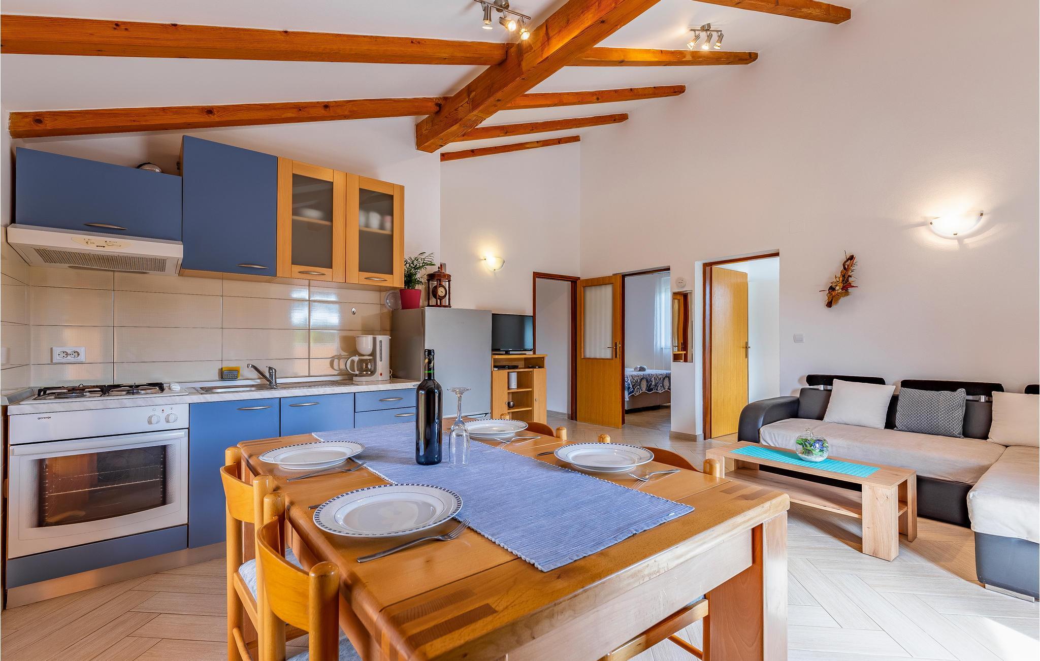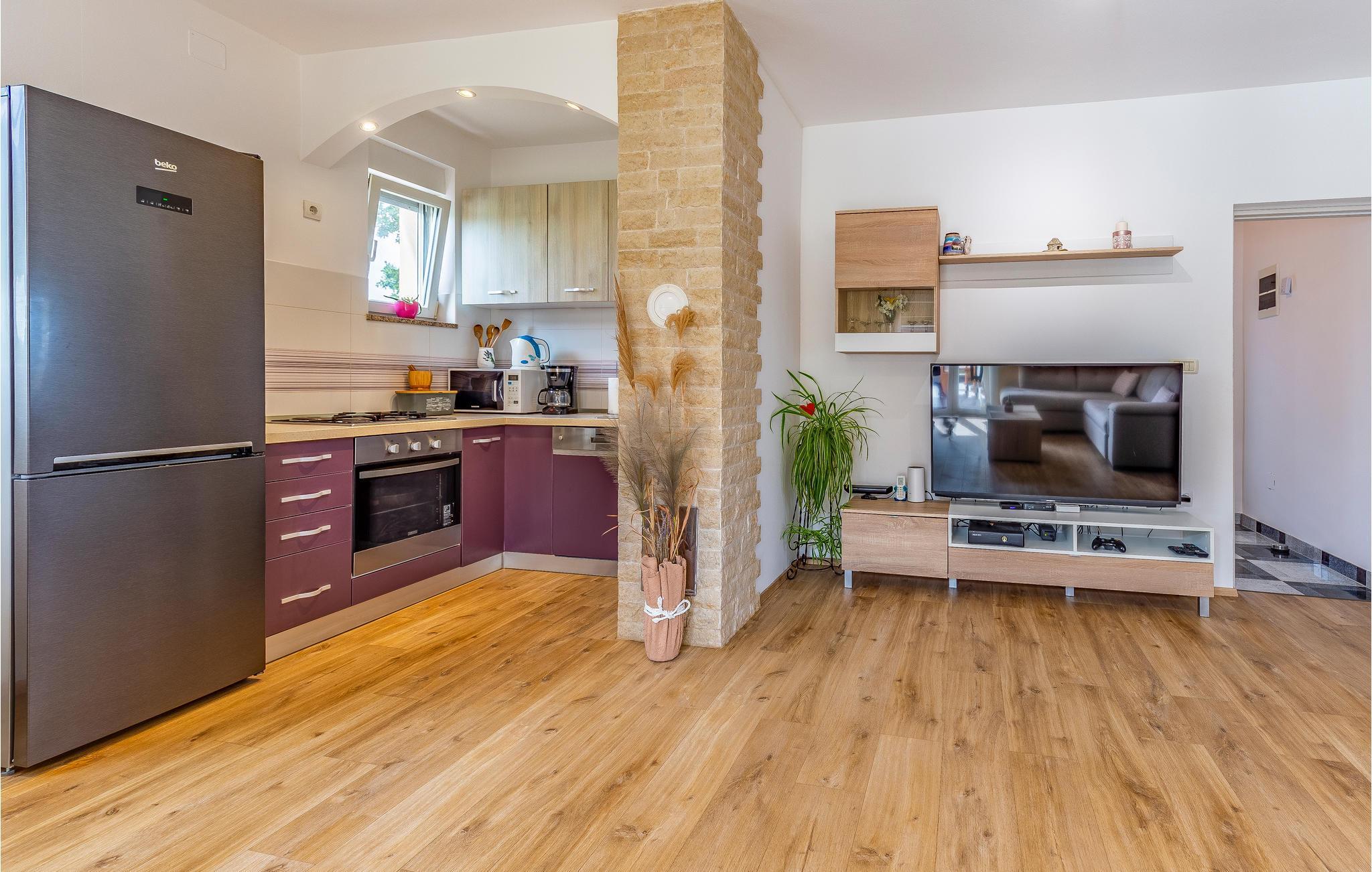 Hvis du vil tilbringe en ferie i naturen, er dette feriehuset det ideelle feriemålet for deg. Det ligger på en stor, inngjerdet tomt, som er helt skjult og langt borte fra naboer. Feriehuset består av to identiske leiligheter som er hyggelig innredet. Den ene ligger i første etasje og den andre i andre etasje, tilgjengelig via utvendige trapper. Ved siden av feriehuset er det en overbygd terrasse med grill hvor du kan tilbringe mye tid utendørs mens barna leker i hagen. De nærmeste strendene ligger i Duga Uvala og rundt byen Pula, som er kjent for sine gamle monumenter. Veien til feriehuset er ikke asfaltert i ca. 200 m.