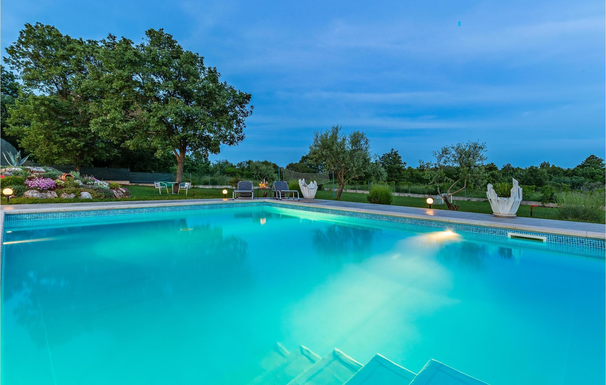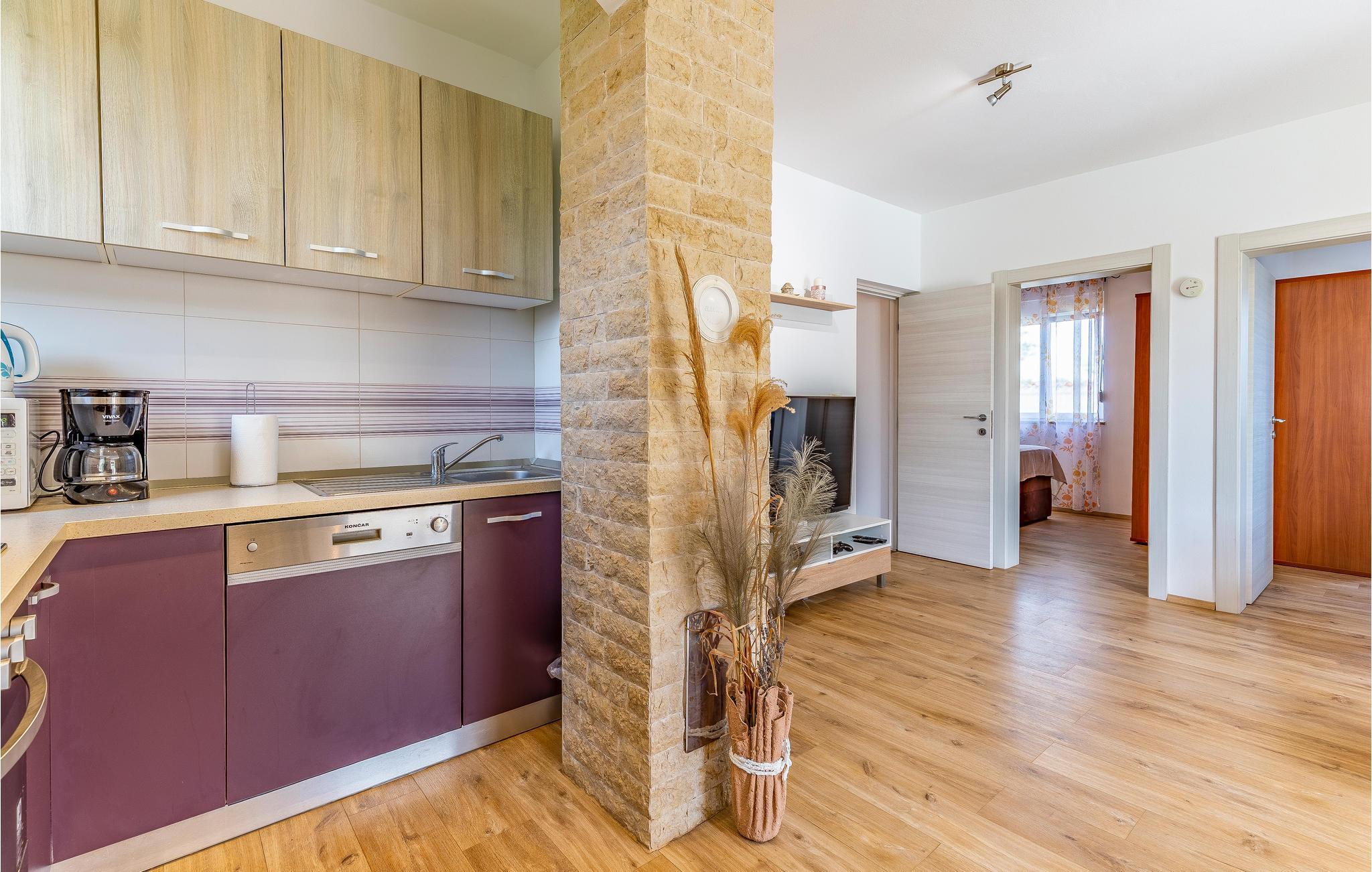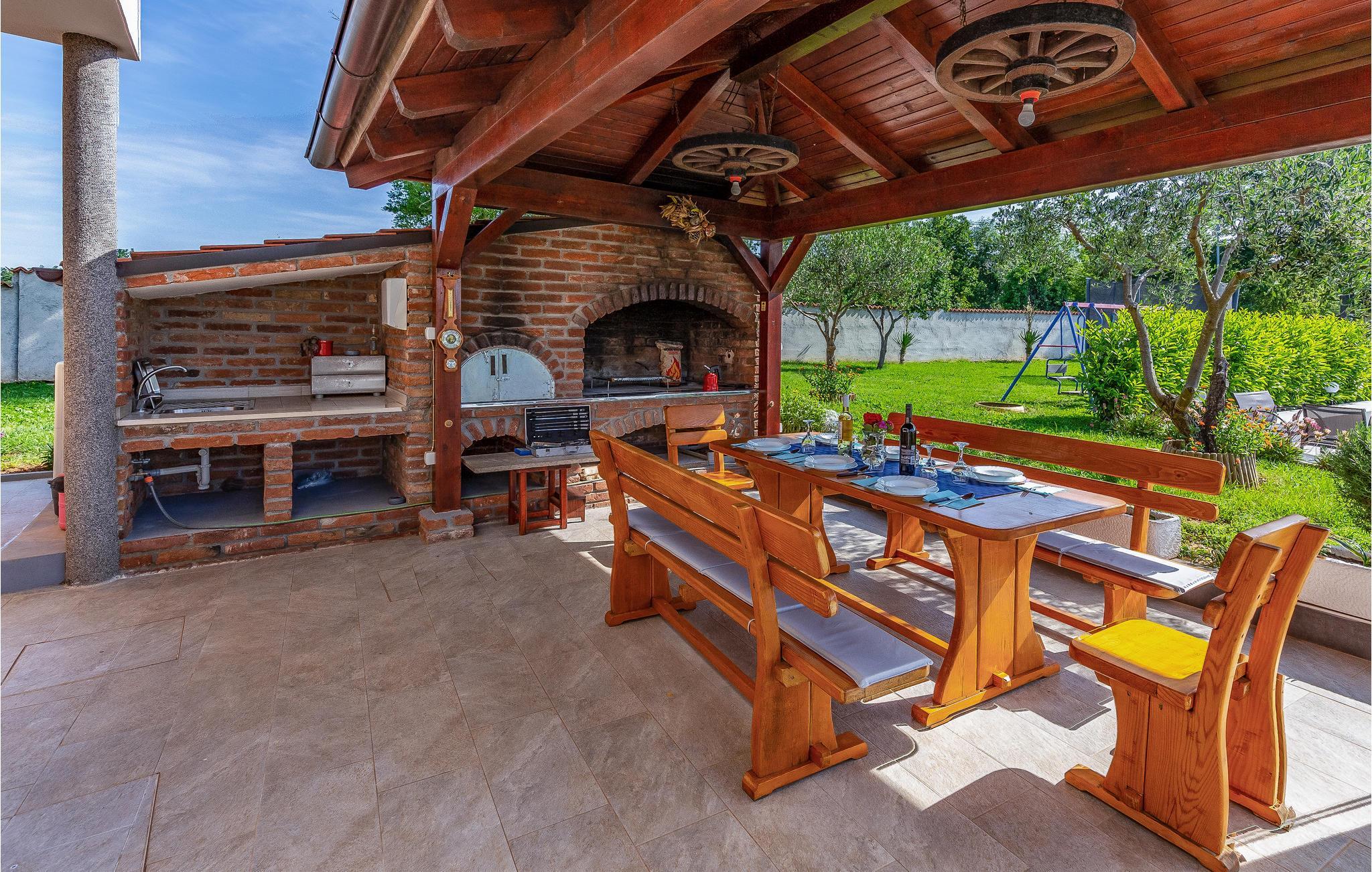 Hvis du vil tilbringe en ferie i naturen, er dette feriehuset det ideelle feriemålet for deg. Det ligger på en stor, inngjerdet tomt, som er helt skjult og langt borte fra naboer. Feriehuset består av to identiske leiligheter som er hyggelig innredet. Den ene ligger i første etasje og den andre i andre etasje, tilgjengelig via utvendige trapper. Ved siden av feriehuset er det en overbygd terrasse med grill hvor du kan tilbringe mye tid utendørs mens barna leker i hagen. De nærmeste strendene ligger i Duga Uvala og rundt byen Pula, som er kjent for sine gamle monumenter. Veien til feriehuset er ikke asfaltert i ca. 200 m.