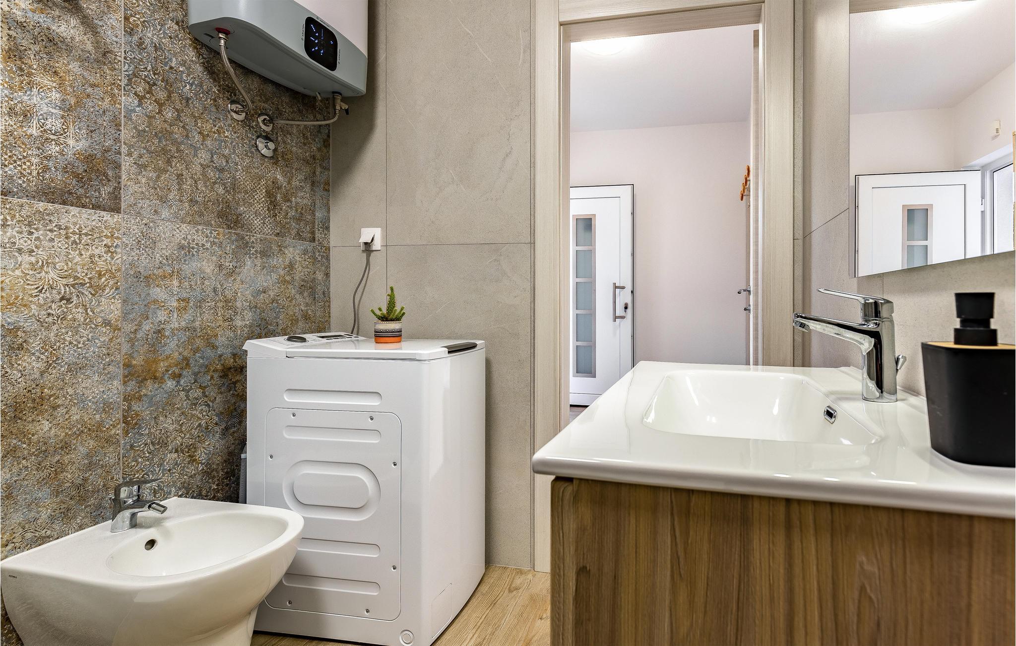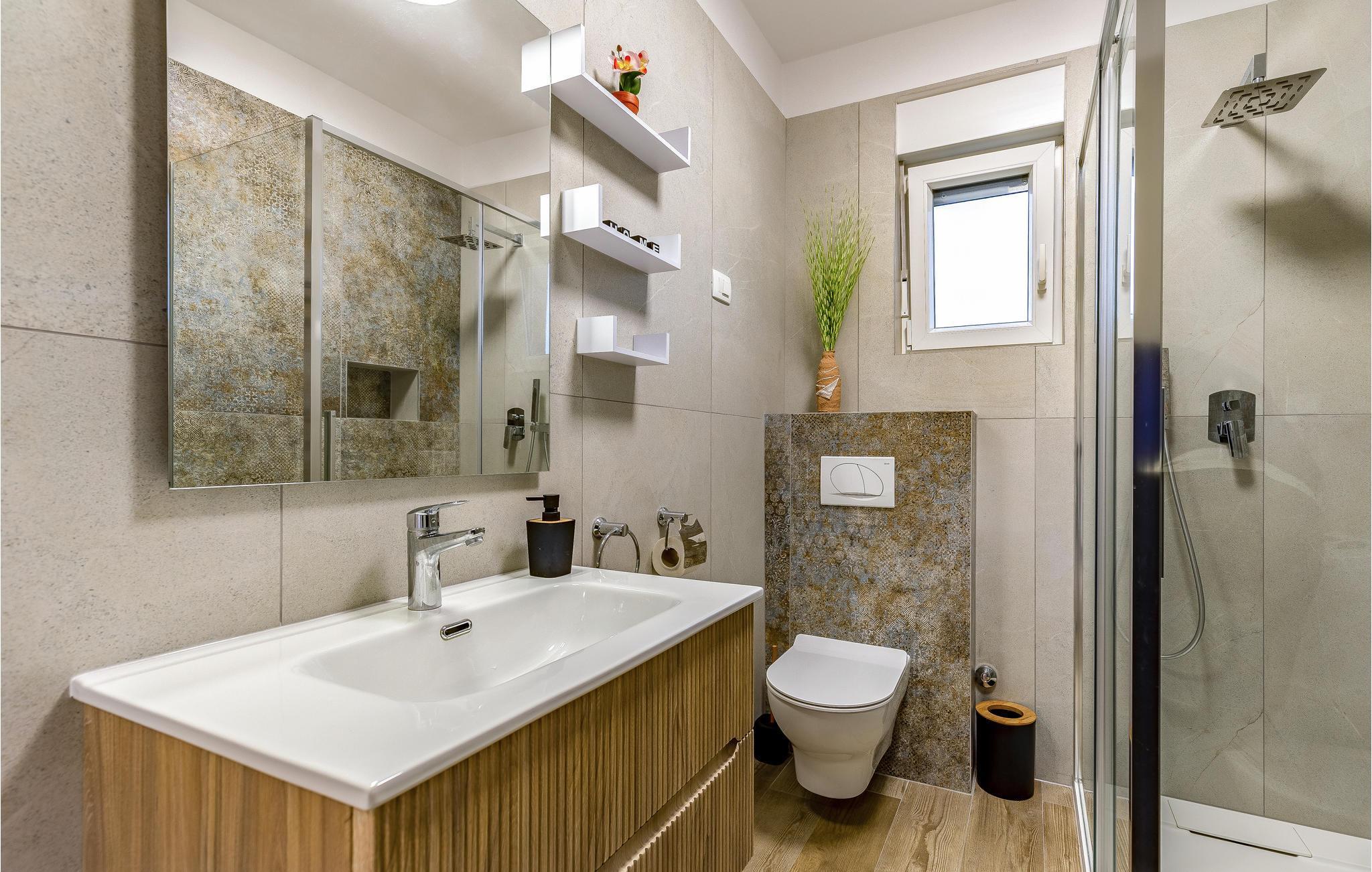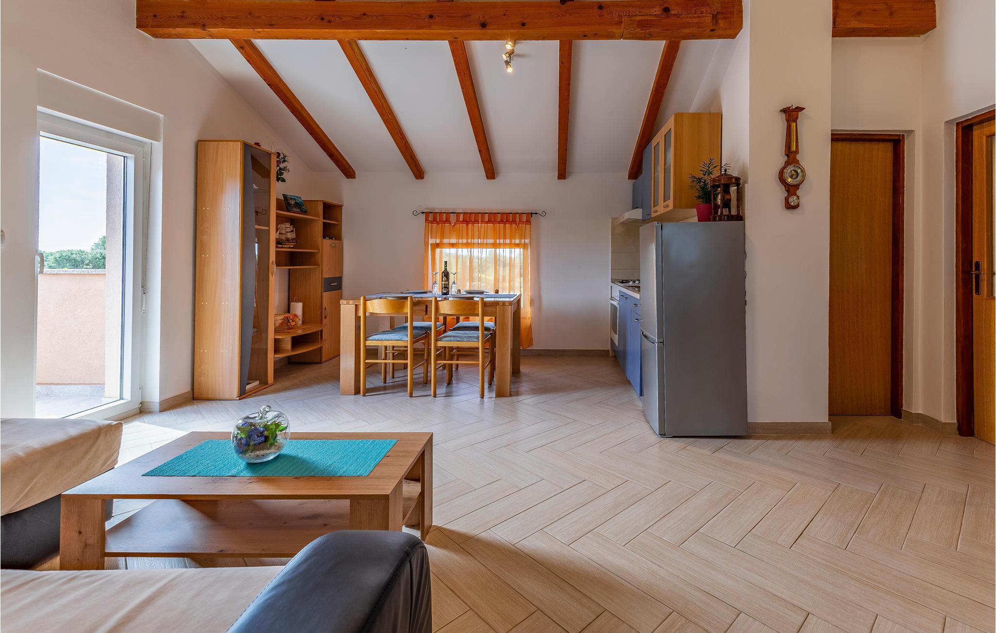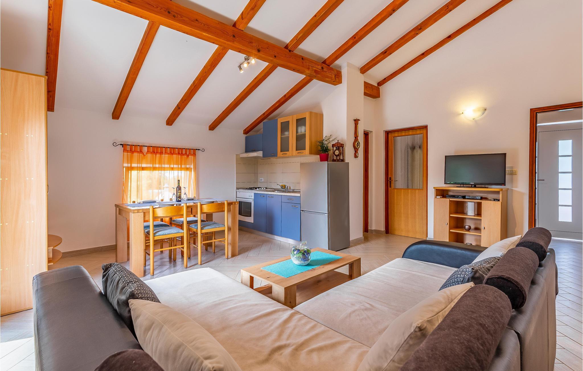 Hvis du vil tilbringe en ferie i naturen, er dette feriehuset det ideelle feriemålet for deg. Det ligger på en stor, inngjerdet tomt, som er helt skjult og langt borte fra naboer. Feriehuset består av to identiske leiligheter som er hyggelig innredet. Den ene ligger i første etasje og den andre i andre etasje, tilgjengelig via utvendige trapper. Ved siden av feriehuset er det en overbygd terrasse med grill hvor du kan tilbringe mye tid utendørs mens barna leker i hagen. De nærmeste strendene ligger i Duga Uvala og rundt byen Pula, som er kjent for sine gamle monumenter. Veien til feriehuset er ikke asfaltert i ca. 200 m.