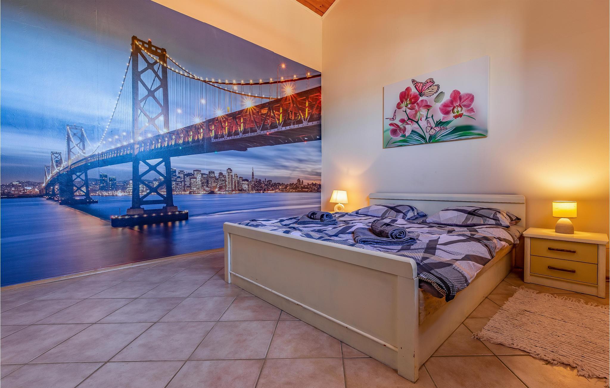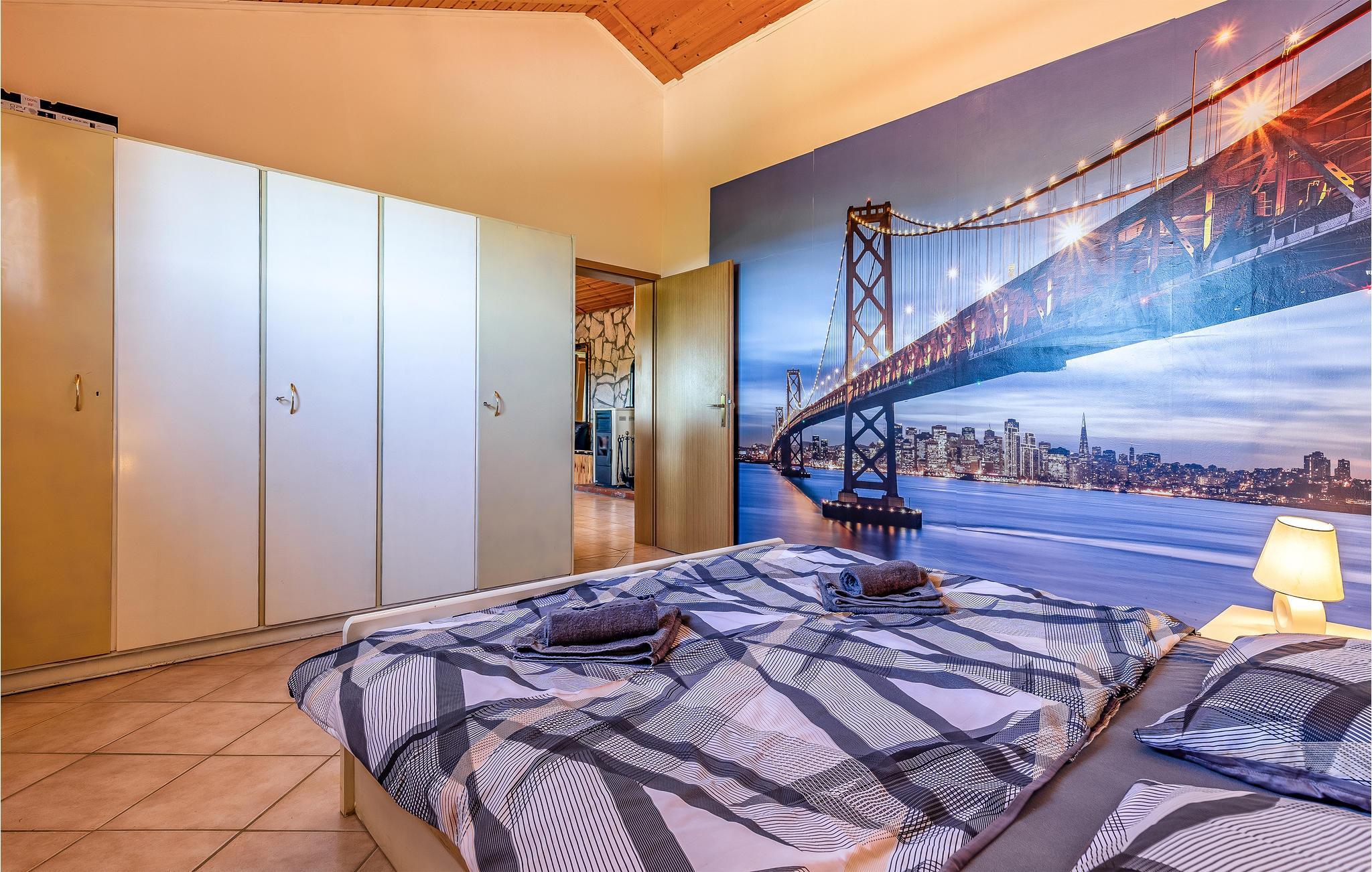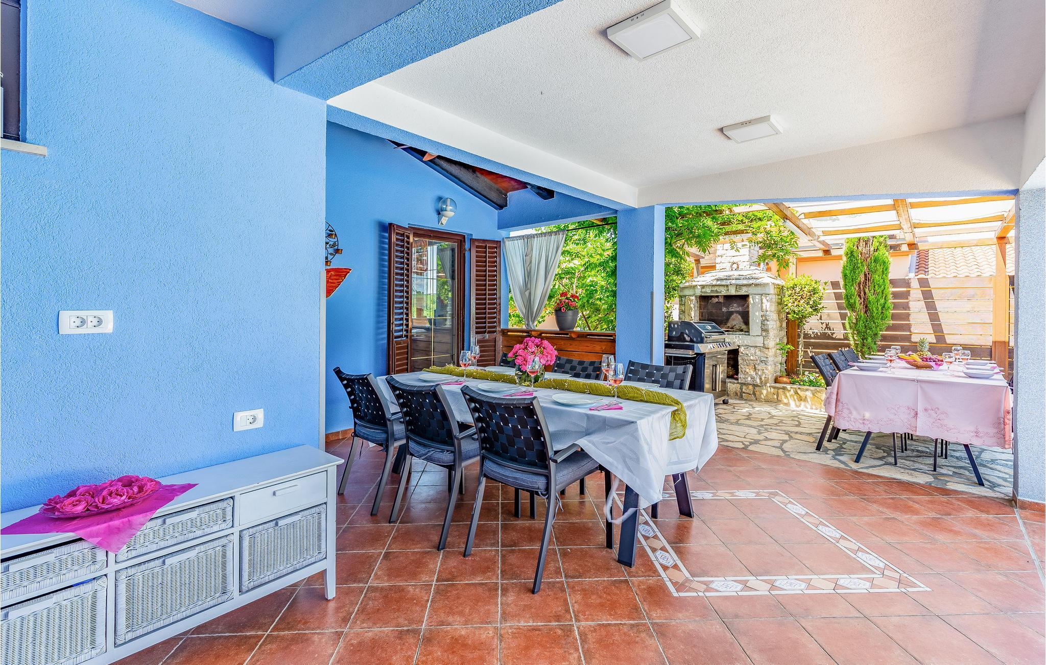 Dette vakre og komfortable feriehuset med basseng og boblebad for seks personer ligger i Loborika nær Pula, omgitt av natur. Her kan du nyte en avslappende ferie. Det indre av huset er spredt over to etasjer, som er forbundet med en utvendig trapp. I første etasje er det fire soverom og fire bad, hvorav ett har en utvendig inngang. I tillegg ligger en stor stue, en spisestue og et kjøkken med utgang til den overbygde terrassen i første etasje. I første etasje er det ytterligere to soverom som deler bad, en kjøkkenkrok og et stort oppholdsrom med biljardbord. Gårdsplassen med basseng er vakkert anlagt med mange blomster. Slapp av i det store boblebadet. Den store overbygde terrassen er ideell for bespisning og sosialt samvær på sommerdager.