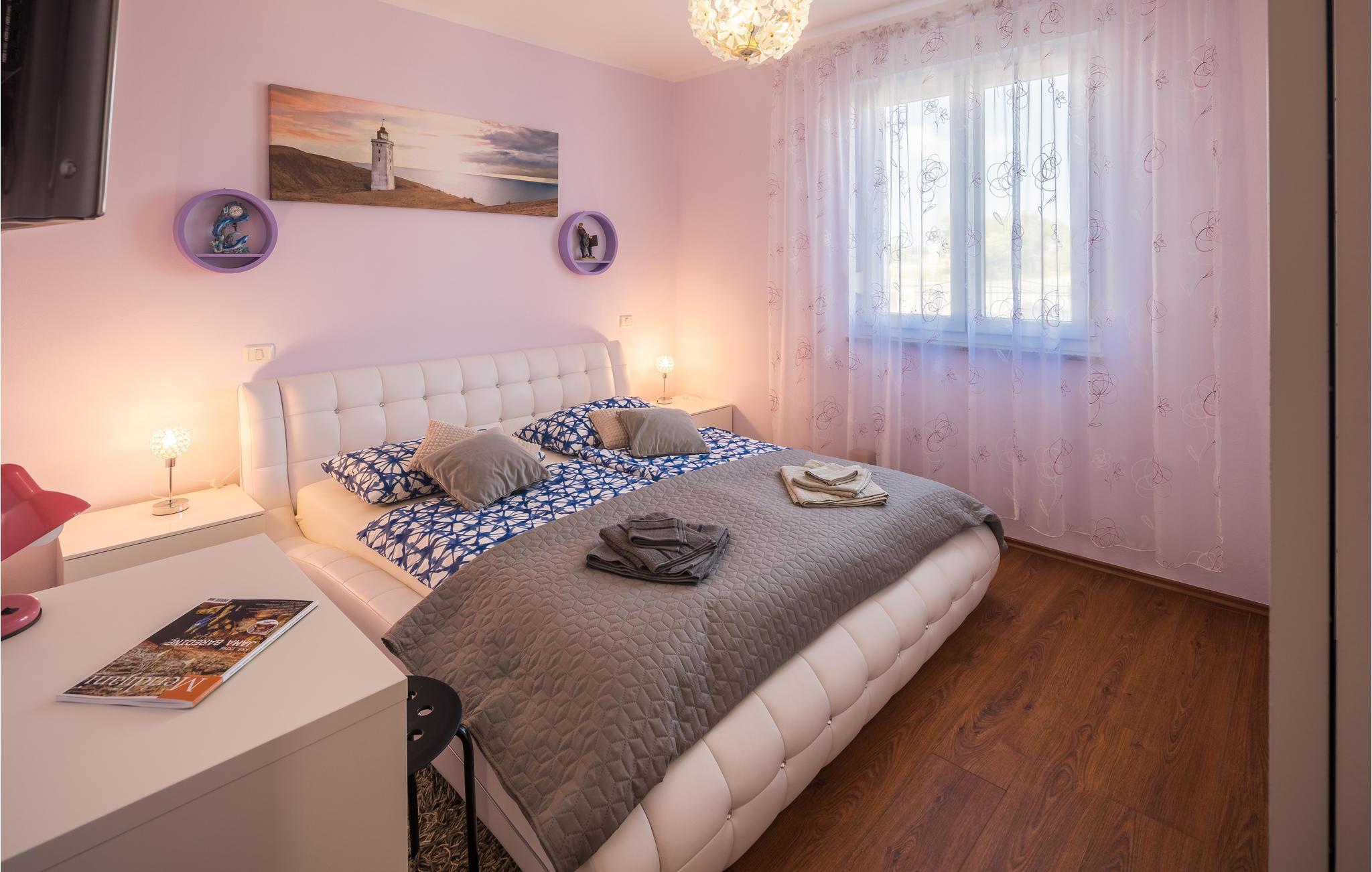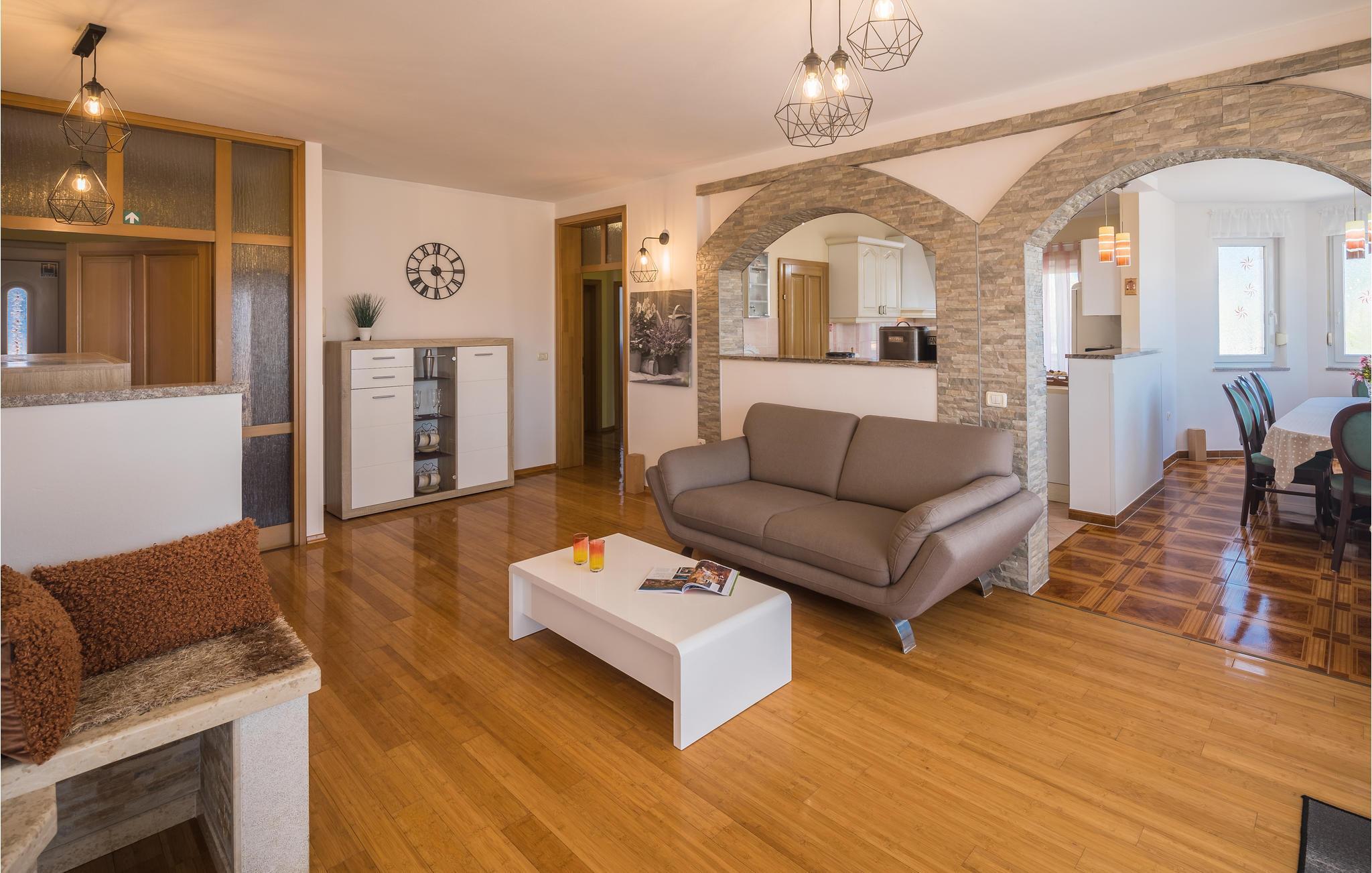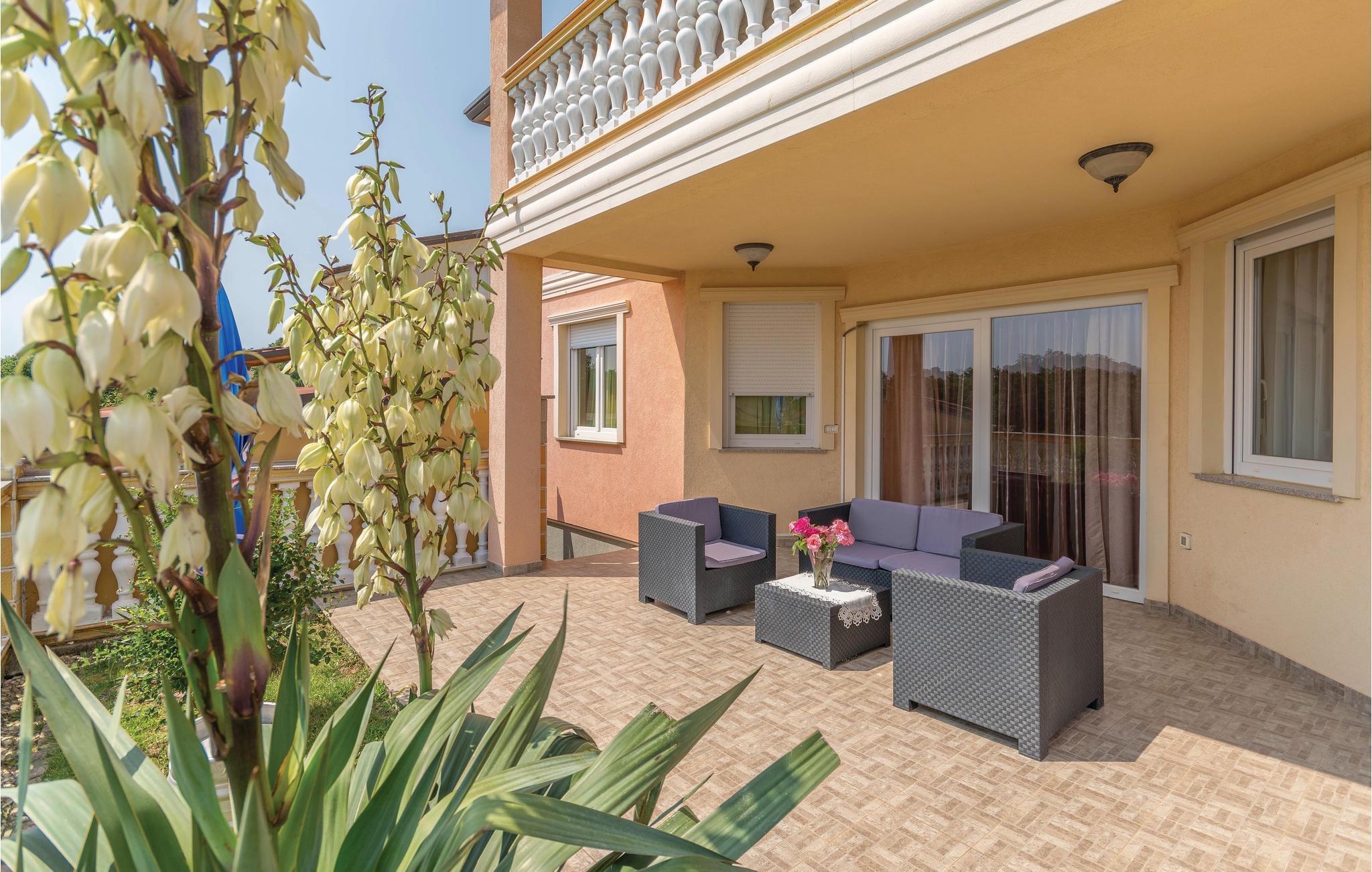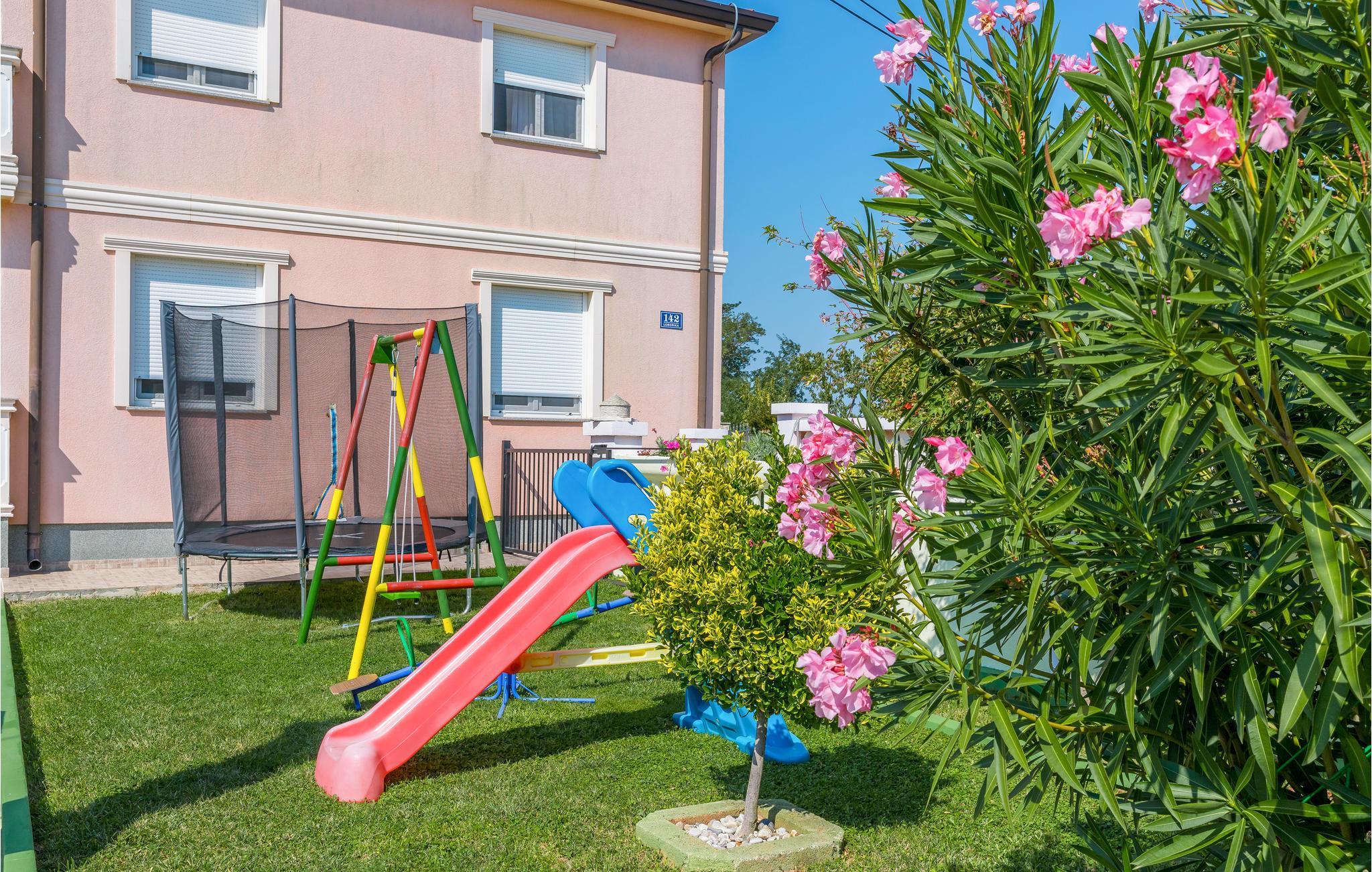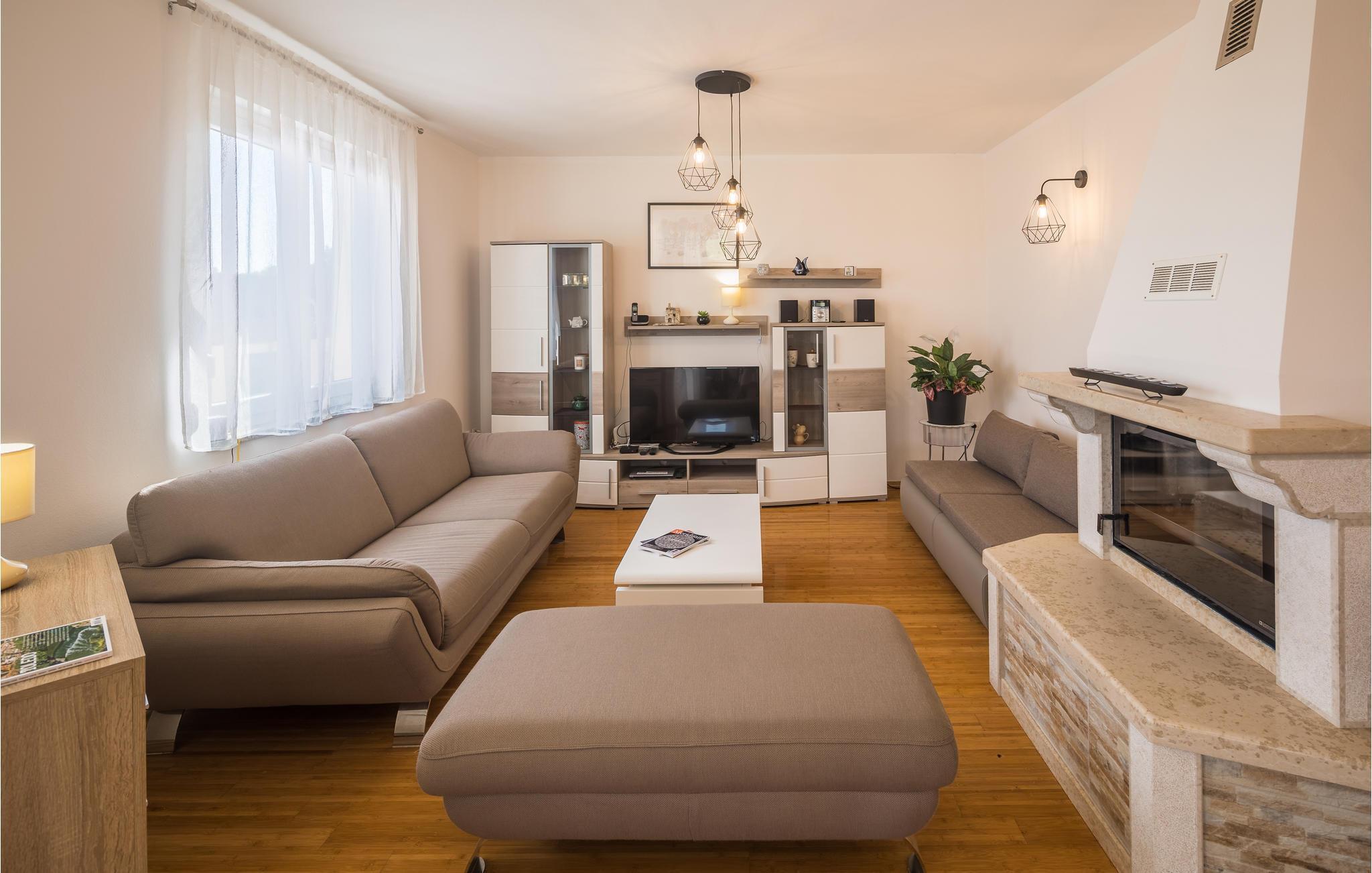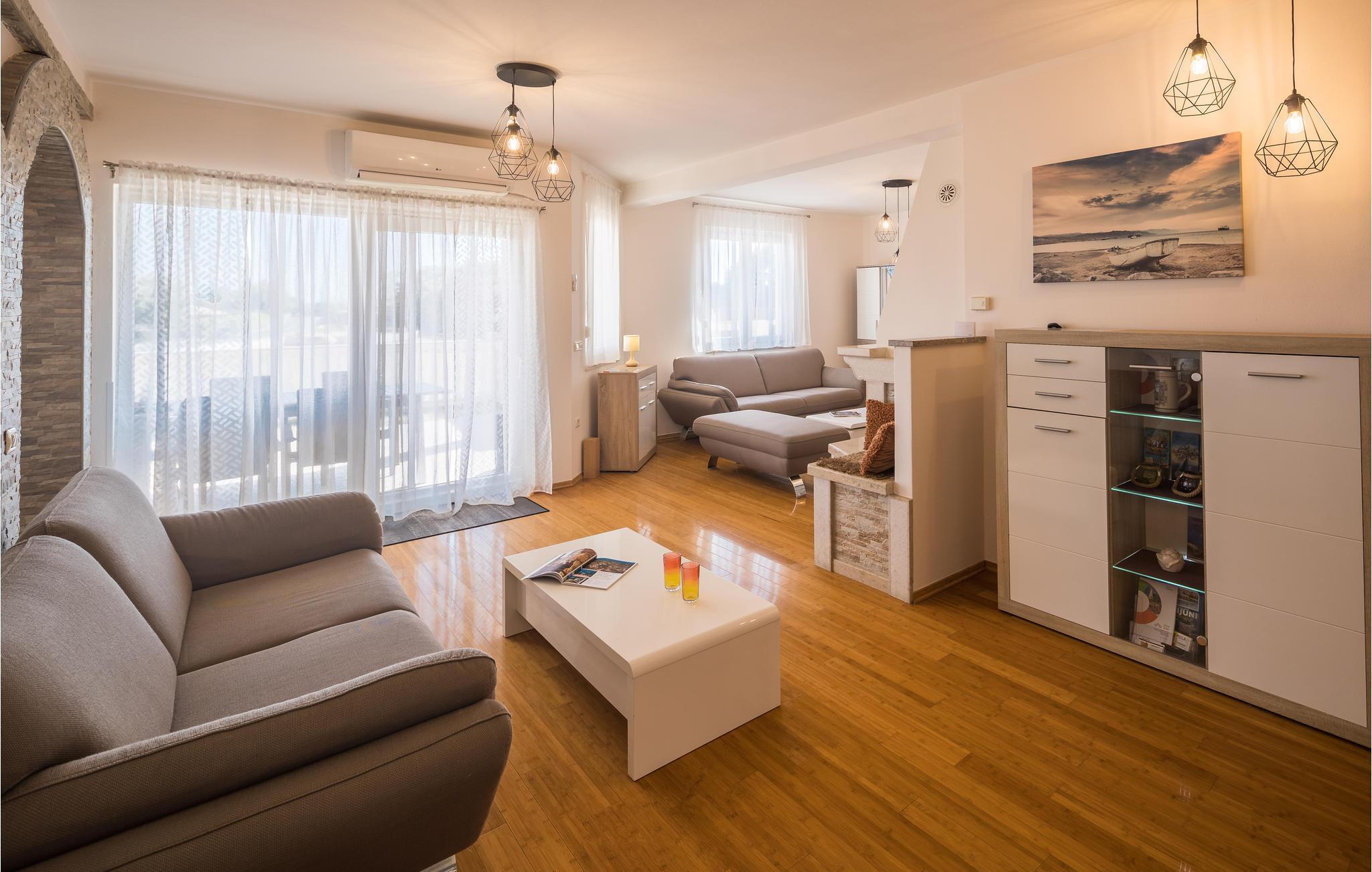 Dette moderne feriehuset ligger i landsbyen Loborika, 6 kilometer fra gamle Pula. Med romslige rom og komfortable møbler er du sikker på å få en hyggelig ferie. Siden første etasje og første etasje er forbundet med utvendige trapper, er huset ideelt for en felles ferie for to familier, som ikke trenger å gi avkall på privatliv i det hele tatt. Spisestuen i første etasje er stor nok til å imøtekomme alle gjestene i huset, og med den overbygde terrassen er det ideelle salonger for felles måltider, spill, underholdning og mer. De nysgjerrige øynene til andre mens du bader og soler deg ved bassenget forhindres av vegger, og garanterer dermed privatliv. De minste har vippen og sklia til disposisjon. Plasseringen av huset lar deg ta dagsturer til Pula, eller å utforske det vakre interiøret i Istria og dets funksjoner. De vakre strendene finner du i nærheten av Pula, Medulin, Krnica og Duga Uvala, sikkert din favorittstrand er blant dem.