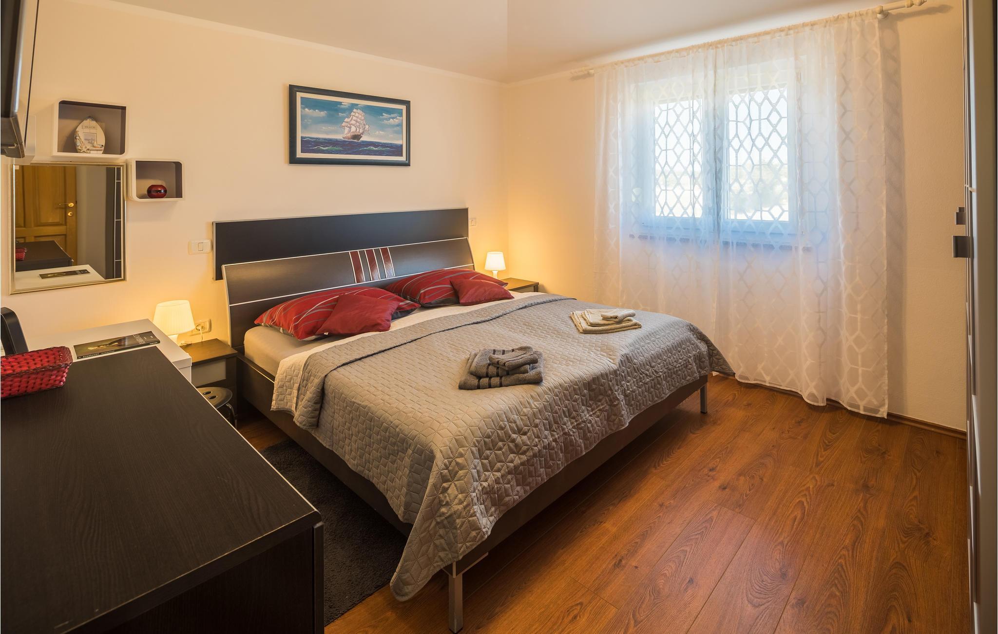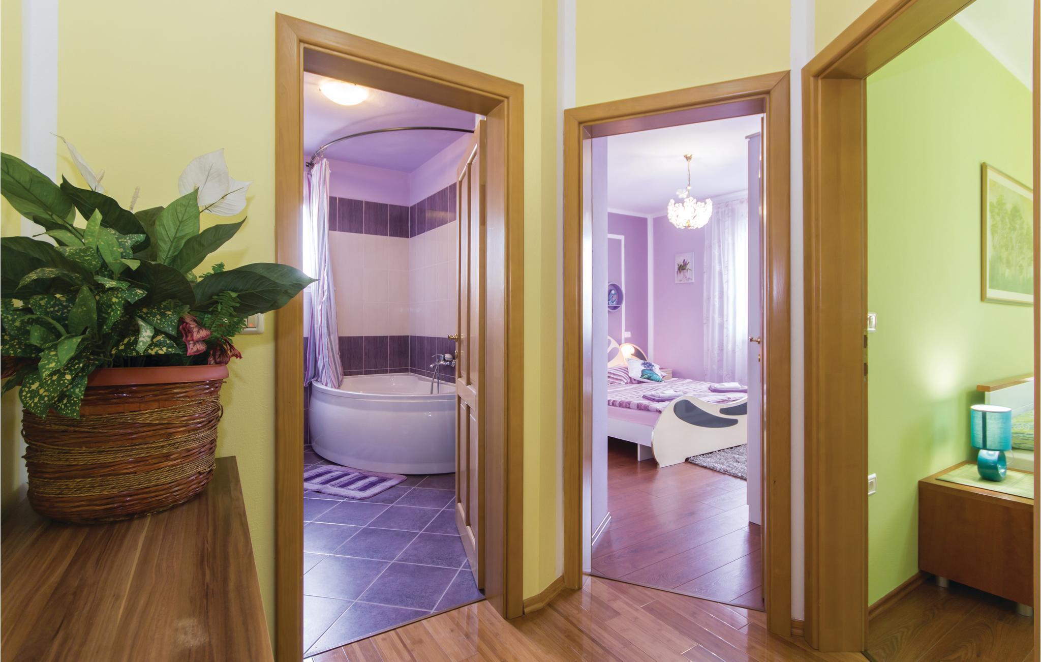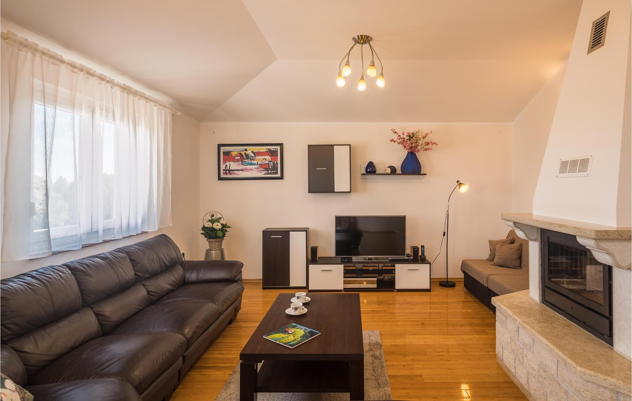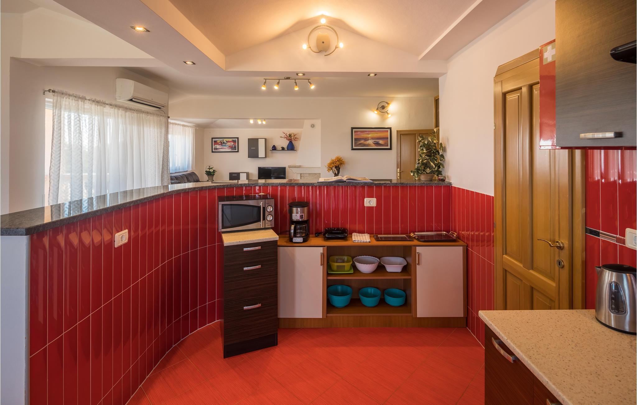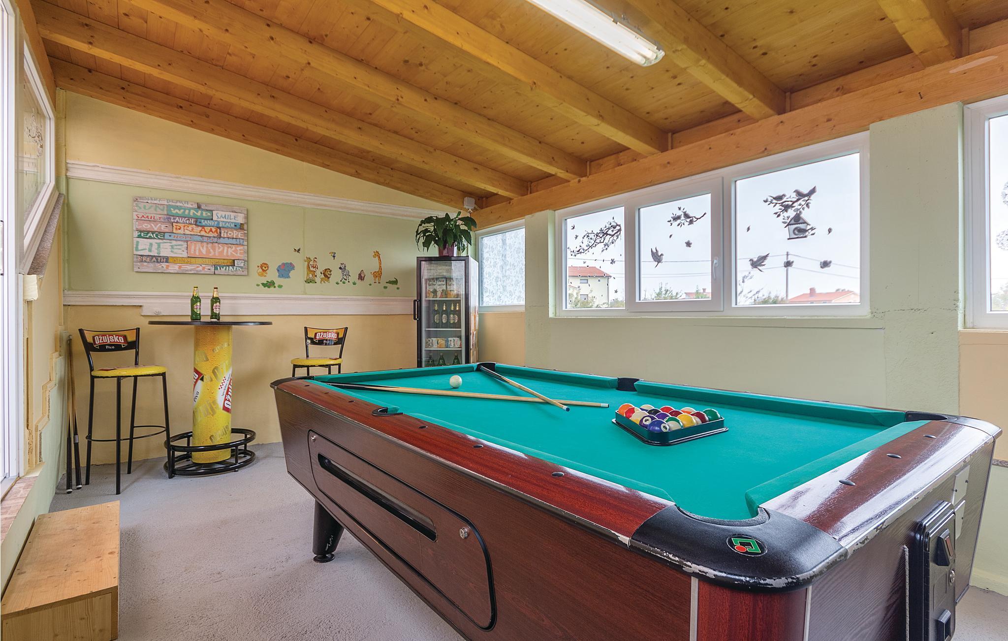 Dette moderne feriehuset ligger i landsbyen Loborika, 6 kilometer fra gamle Pula. Med romslige rom og komfortable møbler er du sikker på å få en hyggelig ferie. Siden første etasje og første etasje er forbundet med utvendige trapper, er huset ideelt for en felles ferie for to familier, som ikke trenger å gi avkall på privatliv i det hele tatt. Spisestuen i første etasje er stor nok til å imøtekomme alle gjestene i huset, og med den overbygde terrassen er det ideelle salonger for felles måltider, spill, underholdning og mer. De nysgjerrige øynene til andre mens du bader og soler deg ved bassenget forhindres av vegger, og garanterer dermed privatliv. De minste har vippen og sklia til disposisjon. Plasseringen av huset lar deg ta dagsturer til Pula, eller å utforske det vakre interiøret i Istria og dets funksjoner. De vakre strendene finner du i nærheten av Pula, Medulin, Krnica og Duga Uvala, sikkert din favorittstrand er blant dem.