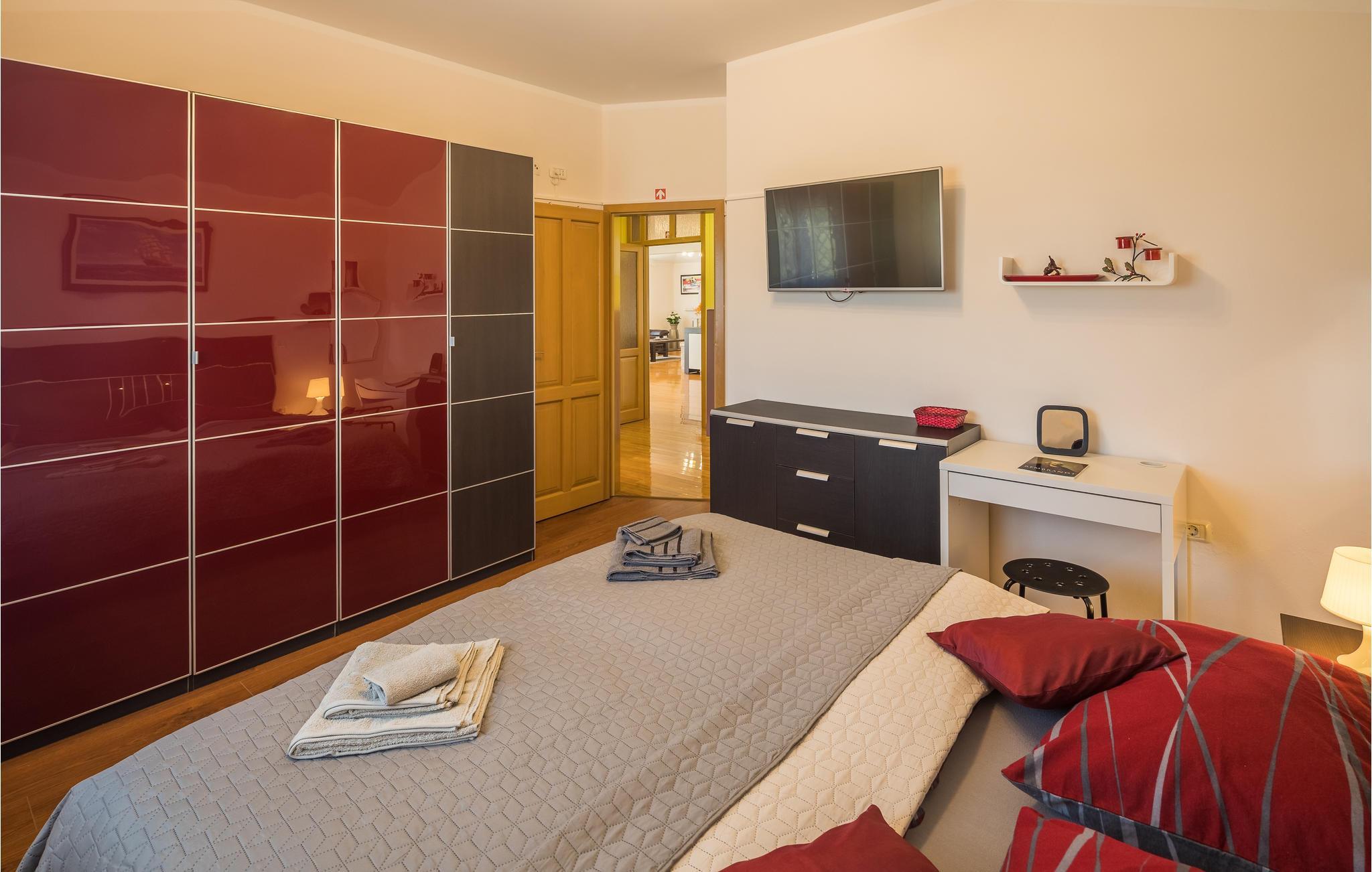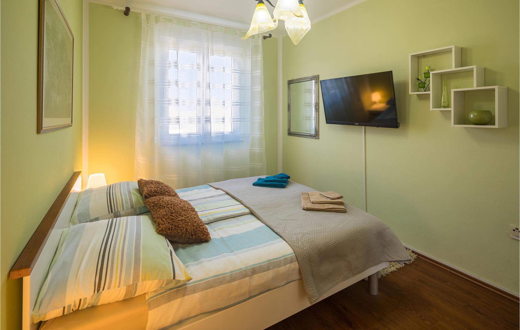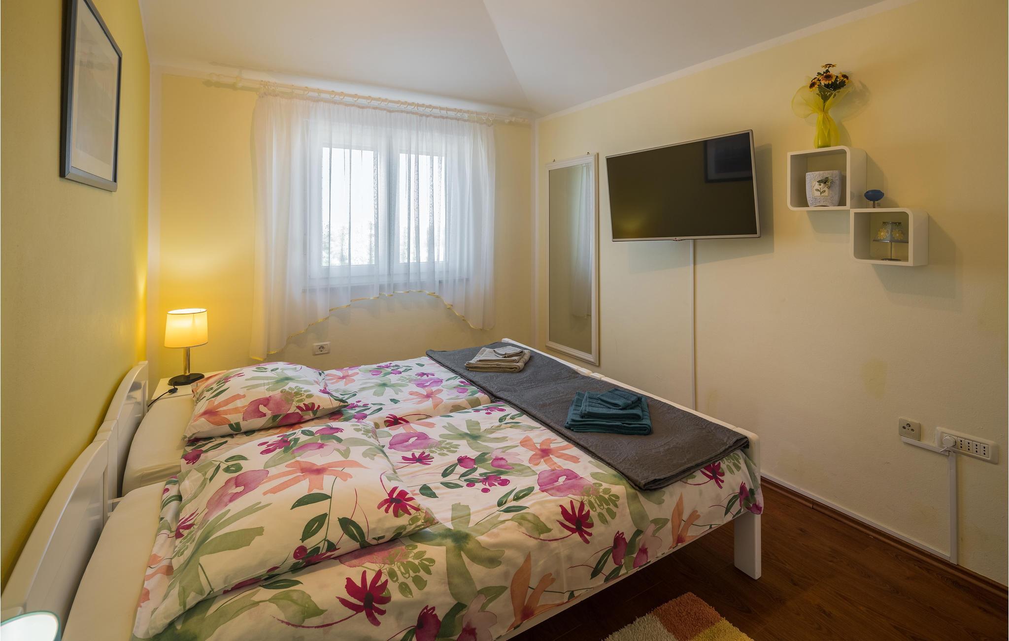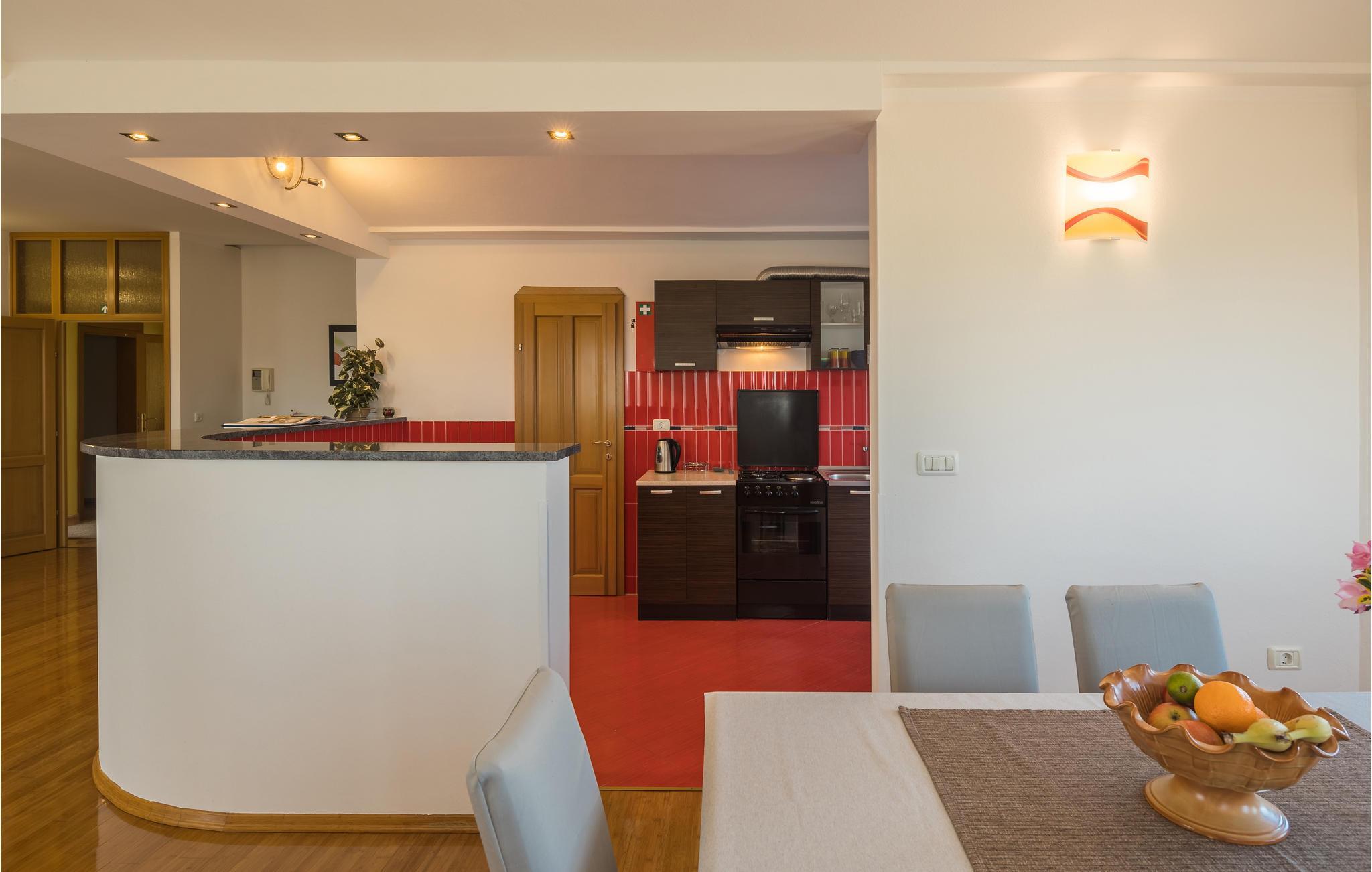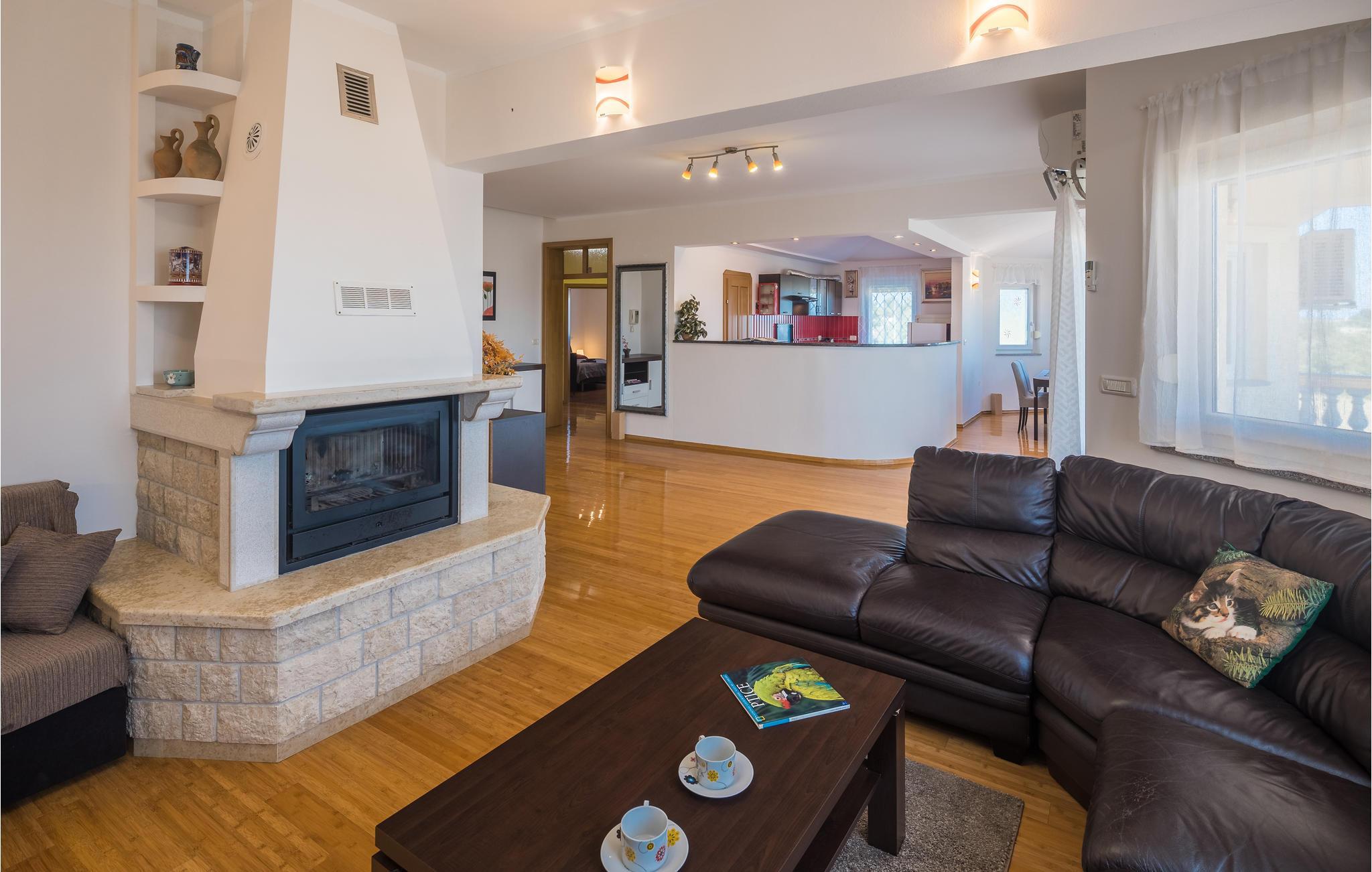 Dette moderne feriehuset ligger i landsbyen Loborika, 6 kilometer fra gamle Pula. Med romslige rom og komfortable møbler er du sikker på å få en hyggelig ferie. Siden første etasje og første etasje er forbundet med utvendige trapper, er huset ideelt for en felles ferie for to familier, som ikke trenger å gi avkall på privatliv i det hele tatt. Spisestuen i første etasje er stor nok til å imøtekomme alle gjestene i huset, og med den overbygde terrassen er det ideelle salonger for felles måltider, spill, underholdning og mer. De nysgjerrige øynene til andre mens du bader og soler deg ved bassenget forhindres av vegger, og garanterer dermed privatliv. De minste har vippen og sklia til disposisjon. Plasseringen av huset lar deg ta dagsturer til Pula, eller å utforske det vakre interiøret i Istria og dets funksjoner. De vakre strendene finner du i nærheten av Pula, Medulin, Krnica og Duga Uvala, sikkert din favorittstrand er blant dem.