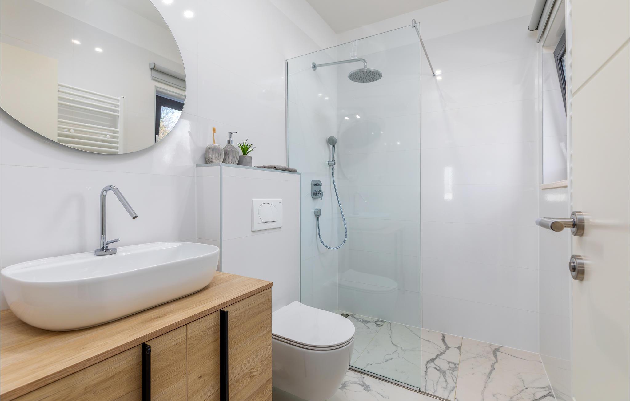 Baderom 7m2 (nr. 2) - WC: Varmt og kaldt vann. Dusj
