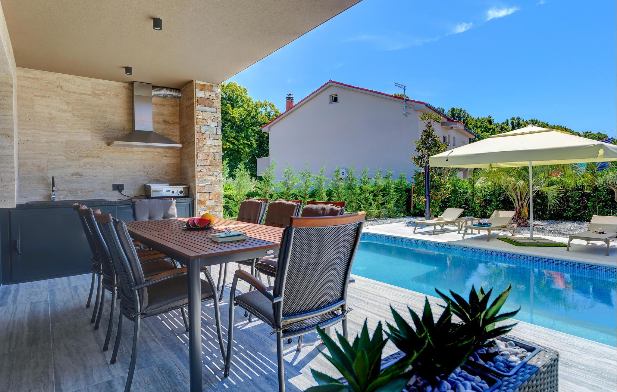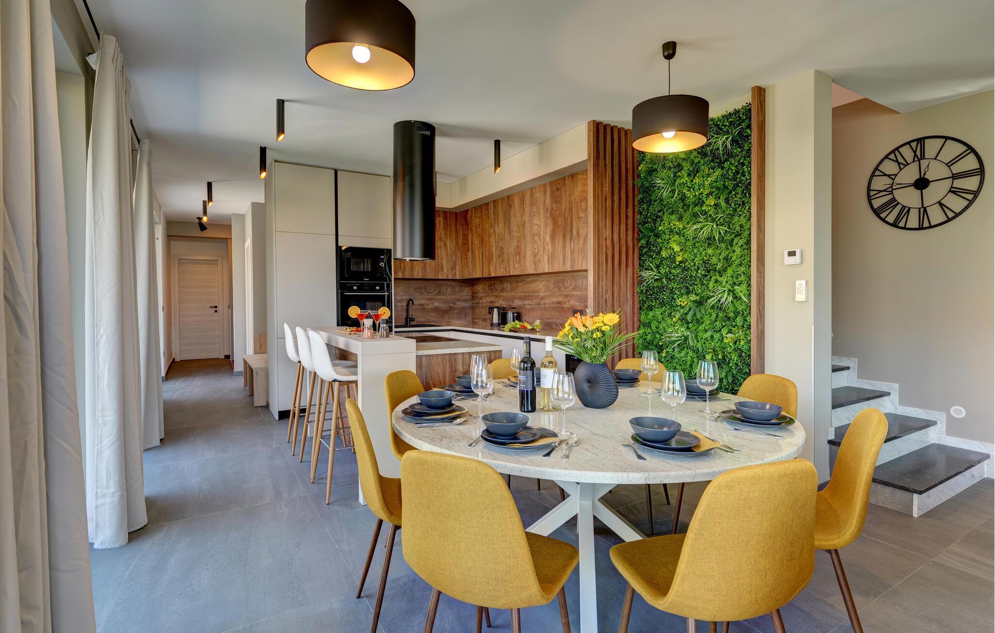 Ferien din vil bli en uforlignelig opplevelse i denne eksklusive villaen. Den romslige og stilfullt innredede boligen tilbyr deg alt du kan ønske deg for en avslappende ferie. Materialer av høy kvalitet og moderne design skaper en luksuriøs atmosfære. Slapp av i den interne velværeoasen med boblebad og badstue, eller nyt det store bassenget i hagen. Den overbygde terrassen innbyr til grilling og avslapning, mens dart, bordfotball og bordtennis sørger for underholdning. Perfekt for en ferie med familie eller venner, spesielt hvis dere reiser sammen i nabohuset med samme design.