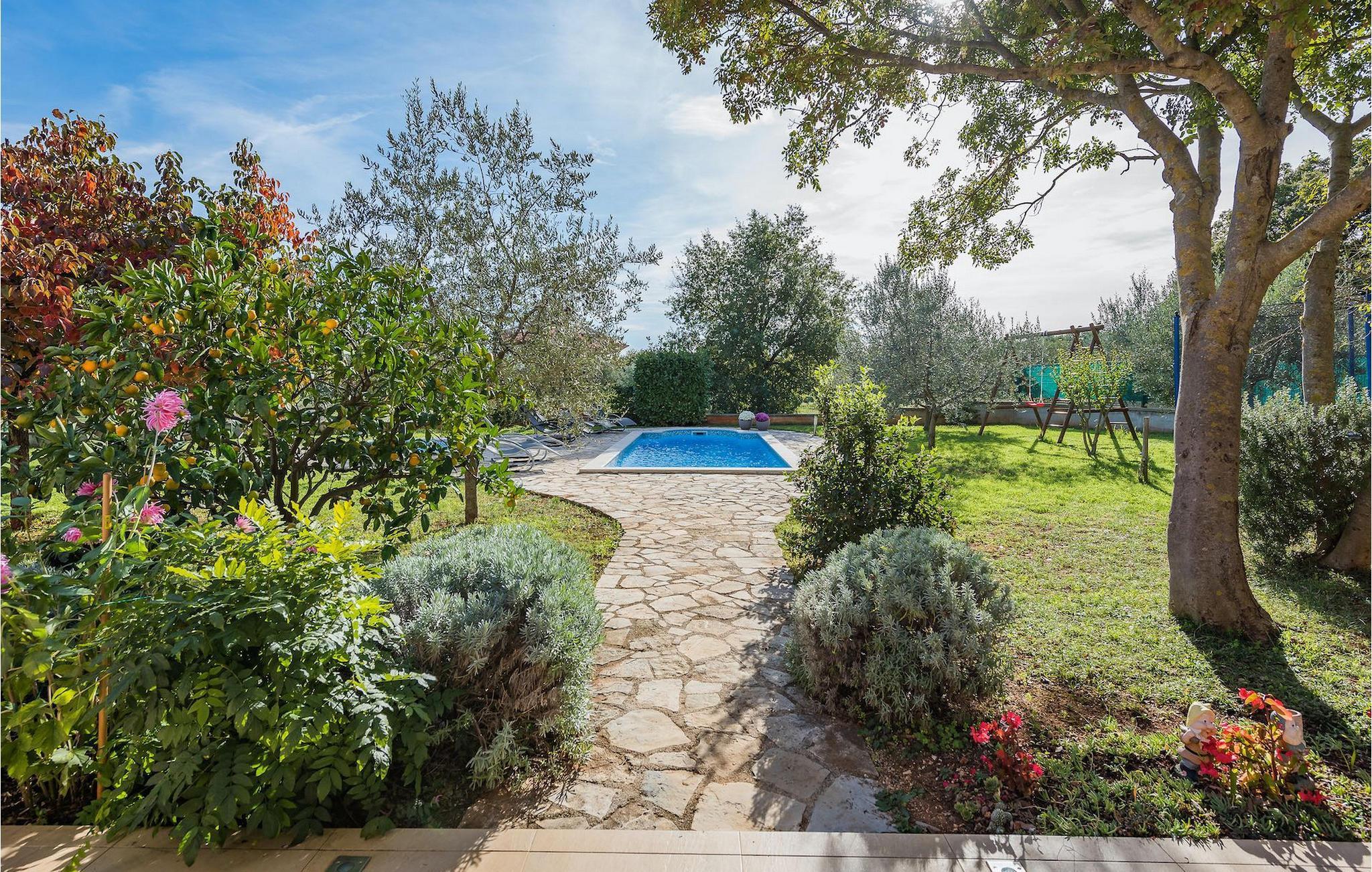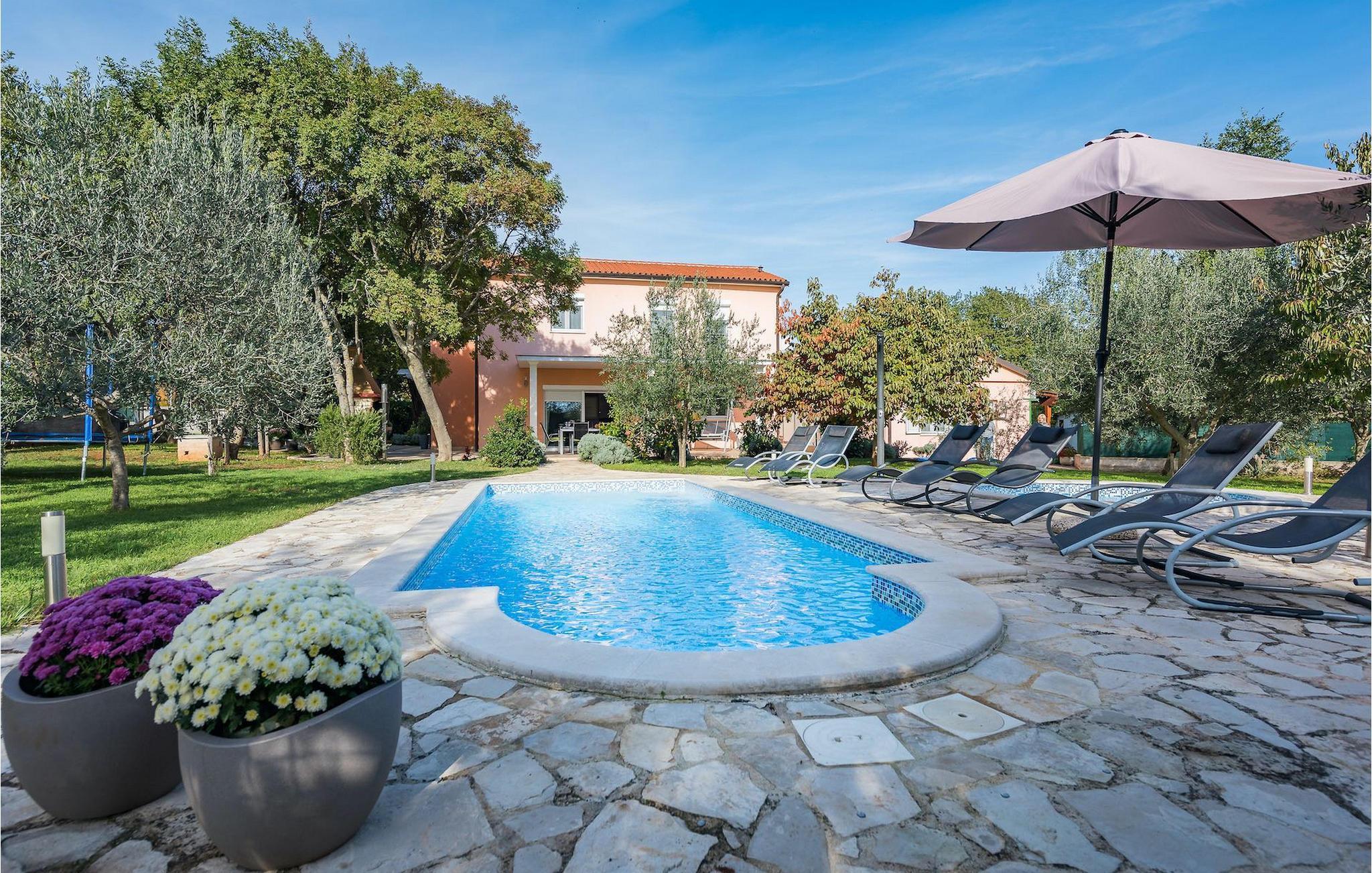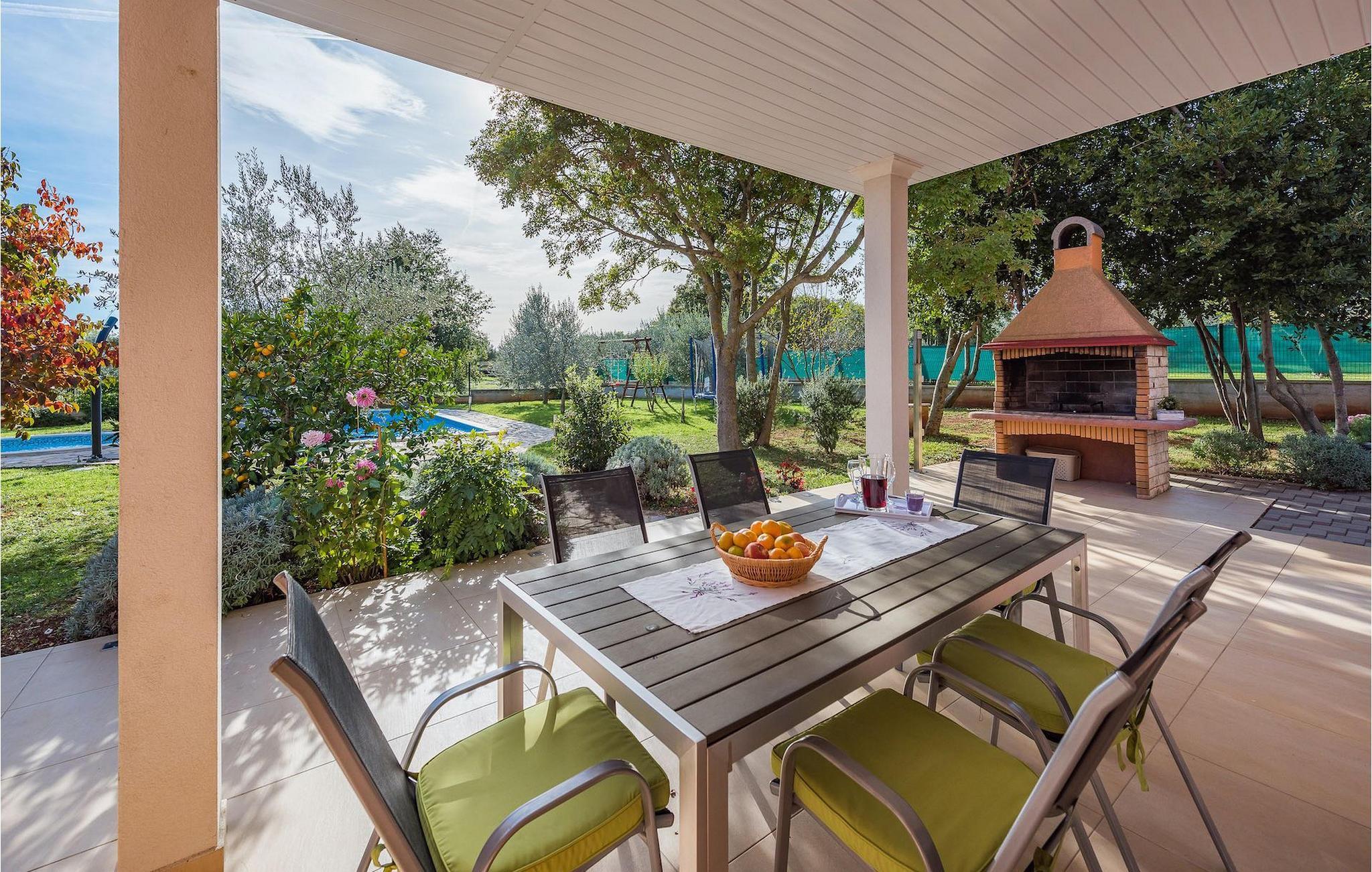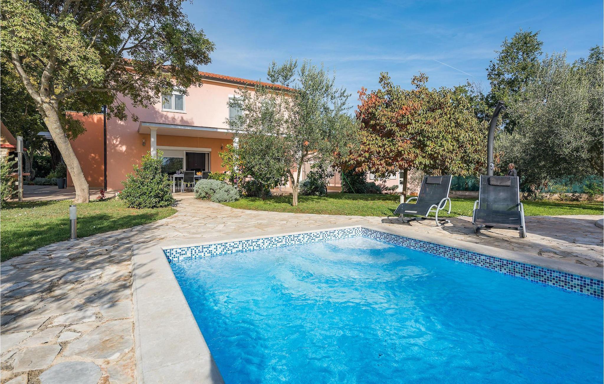 I første etasje er det en lys og åpen stue og spisestue med utgang til terrassen, hvor du kan nyte utsikten over den vakre middelhavshagen. Et bad kompletterer første etasje. En trapp fører deg opp til andre etasje, hvor du finner det andre badet og tre soverom. Her kan opptil seks personer slappe av. På sommerdager kan du kjøle deg ned i det private bassenget med separat basseng med massasjefunksjon. Du kan slappe av på solsengene i den naturlige skyggen av oliventrærne. Barna vil garantert like den store husken, men de voksne vil også elske Hollywood-gyngen på terrassen. Kan du tenke deg å nyte ferien der med en bok og en god drink? Villaen ligger i landsbyen Pavicini, like utenfor Duga Uvala. Dette er en skjermet bukt på østkysten av Istria, mellom de større byene Labin og Pula.