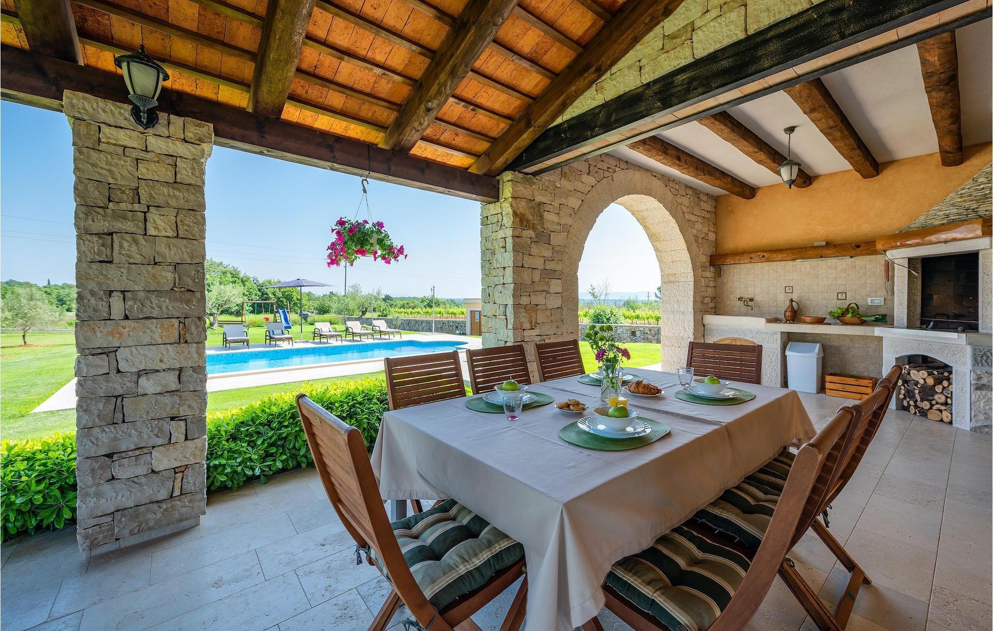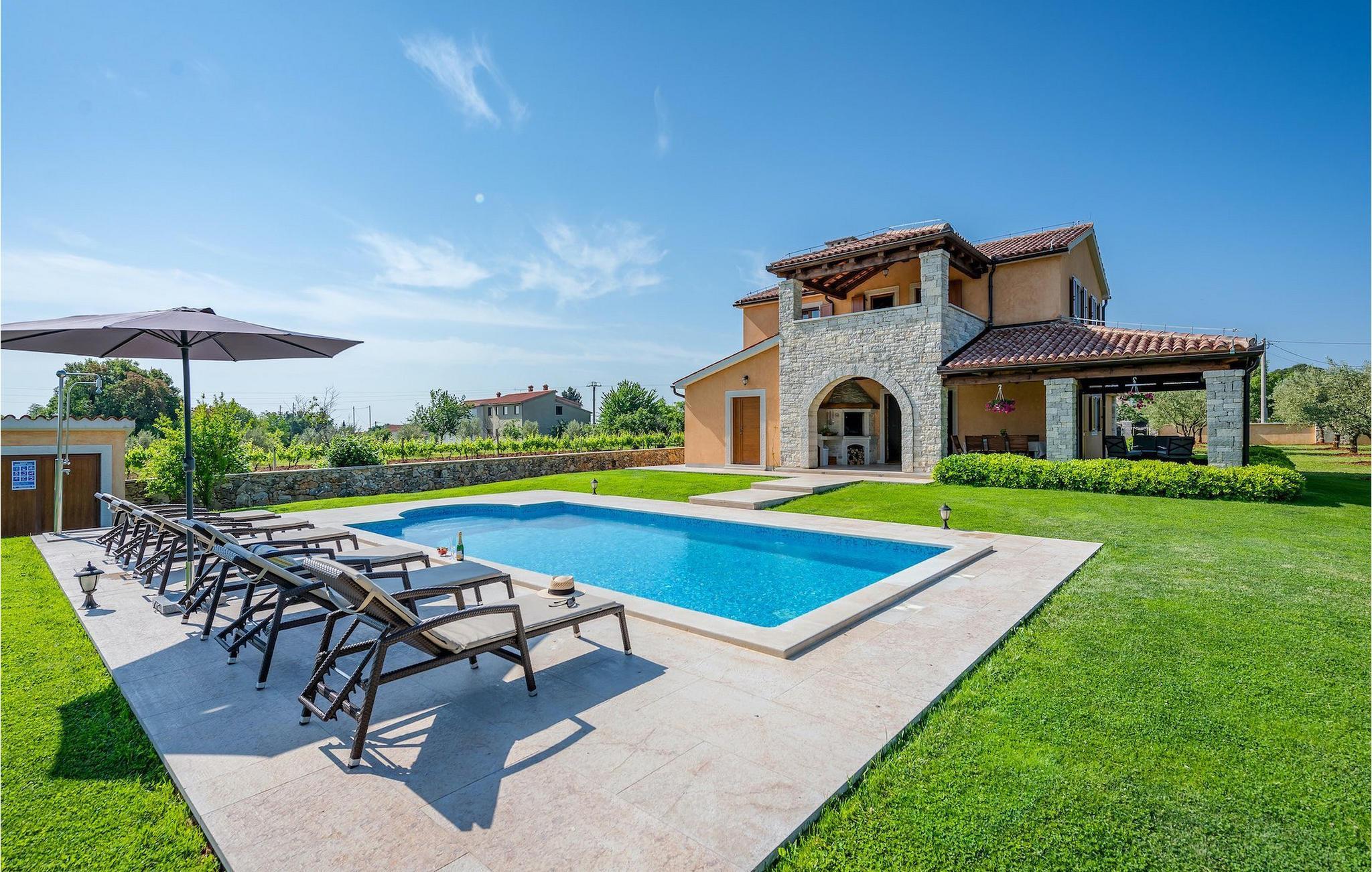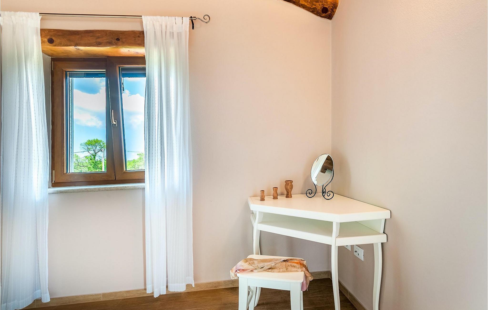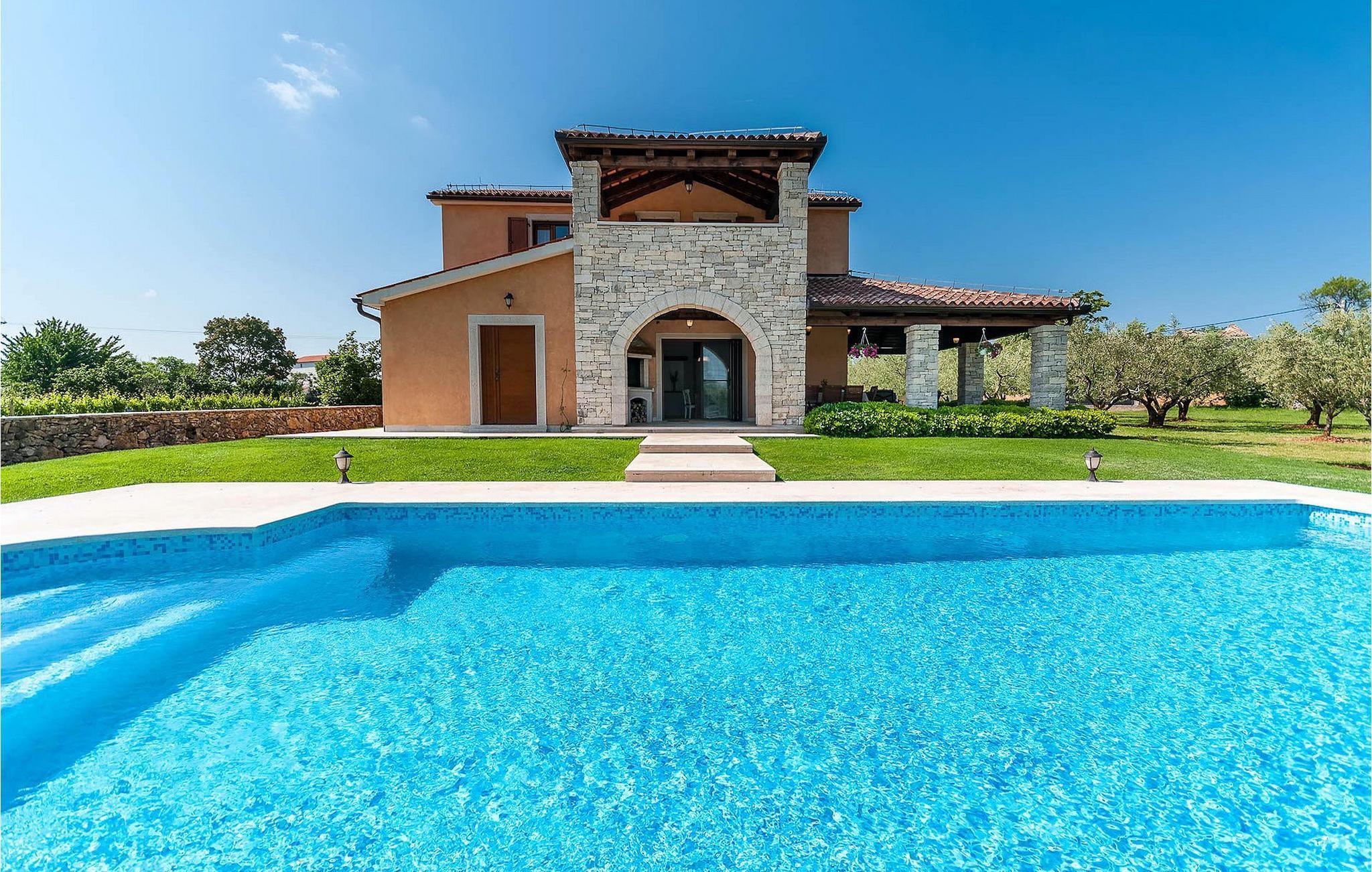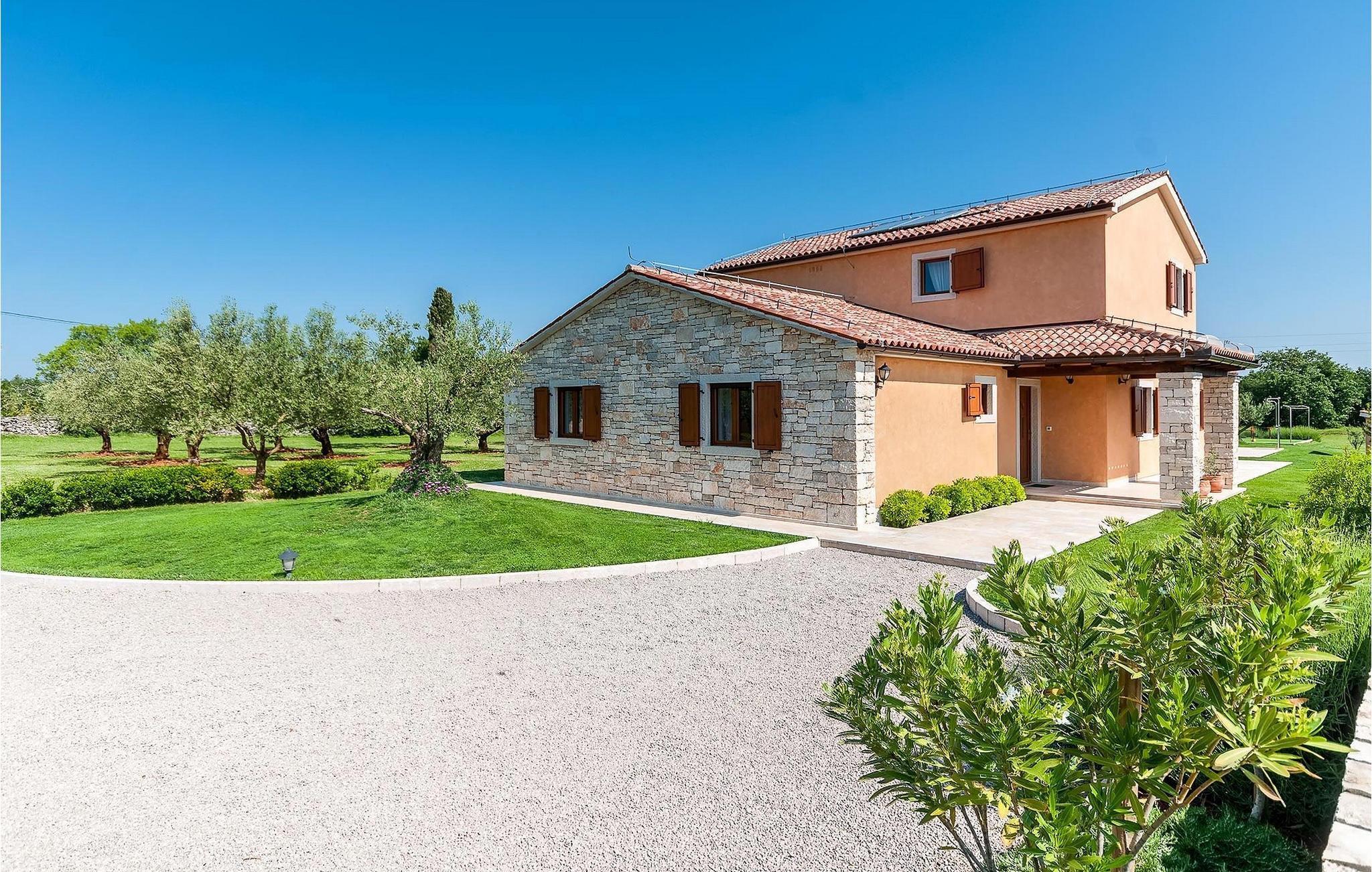 Vakkert feriehus omgitt av grøntområder. I enden av den lille landsbyen Filipana i det sørlige Istria, en halvøy ved Middelhavet. Feriehuset tilbyr en luksuriøs innkvartering med mye privatliv. Husets naturlige byggematerialer og belysningssystem er nøye gjennomtenkt for å gi maksimal komfort og en behagelig ferieopplevelse til enhver tid. Kjøkkenet, et toalett, et soverom med to enkeltsenger og bad, et soverom med dobbeltseng og direkte tilgang til badet, spisestuen og stuen ligger i første etasje med vakker utsikt over svømmebassenget. I andre etasje er det to soverom med dobbeltseng og to bad. Eiendommen ligger på en stor tomt med mange oliventrær, enger og skog, noe som gir en unik atmosfære og fullstendig privatliv for gjestene på en tomt på over 22 900 m2. Området rundt bassenget er møblert med solsenger laget av naturmaterialer. Dette vakre feriehuset ligger i den lille landsbyen Filipana sør på Istria-halvøya, og er ideelt for familieaktiviteter, romantiske utflukter og avslapning. Et ferieopphold i dette feriehuset tilbyr den perfekte balansen mellom ro og privat nytelse, vekk fra byens kjas og mas og turistmassene, men ikke langt fra alle de viktige stedene på halvøya.