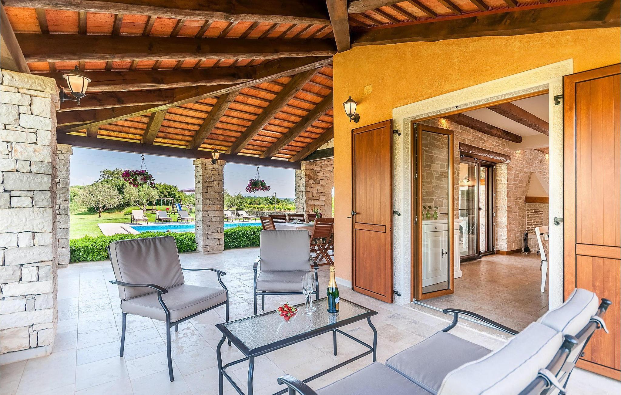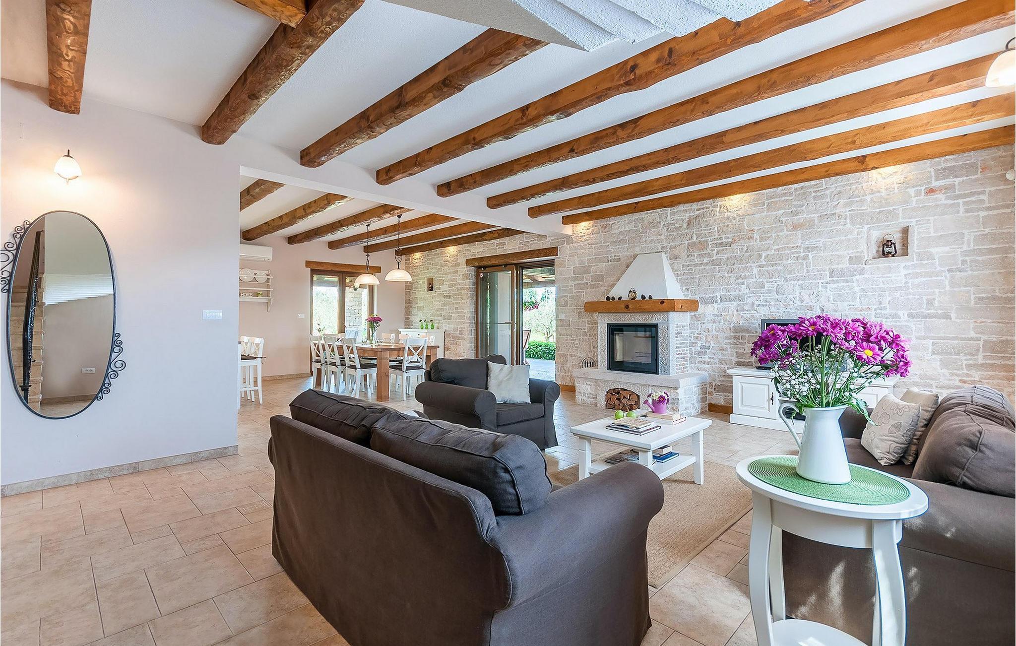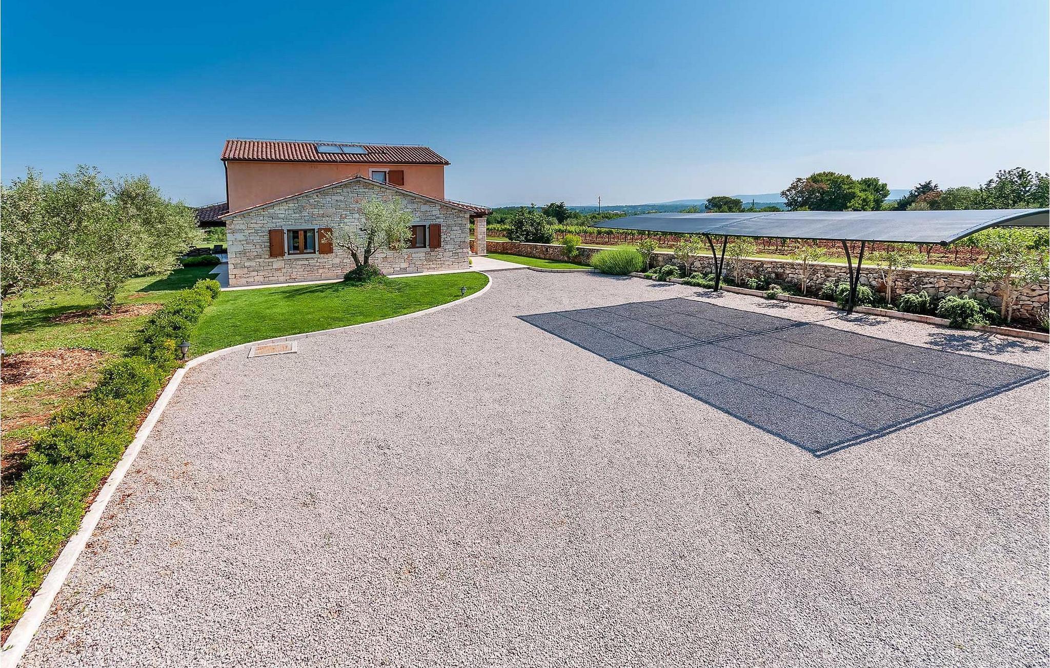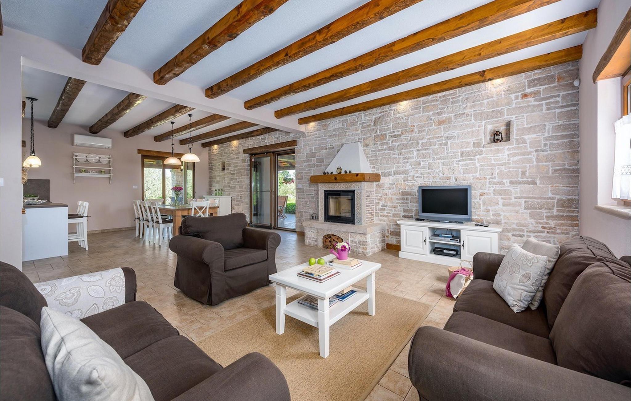 Vakkert feriehus omgitt av grøntområder. I enden av den lille landsbyen Filipana i det sørlige Istria, en halvøy ved Middelhavet. Feriehuset tilbyr en luksuriøs innkvartering med mye privatliv. Husets naturlige byggematerialer og belysningssystem er nøye gjennomtenkt for å gi maksimal komfort og en behagelig ferieopplevelse til enhver tid. Kjøkkenet, et toalett, et soverom med to enkeltsenger og bad, et soverom med dobbeltseng og direkte tilgang til badet, spisestuen og stuen ligger i første etasje med vakker utsikt over svømmebassenget. I andre etasje er det to soverom med dobbeltseng og to bad. Eiendommen ligger på en stor tomt med mange oliventrær, enger og skog, noe som gir en unik atmosfære og fullstendig privatliv for gjestene på en tomt på over 22 900 m2. Området rundt bassenget er møblert med solsenger laget av naturmaterialer. Dette vakre feriehuset ligger i den lille landsbyen Filipana sør på Istria-halvøya, og er ideelt for familieaktiviteter, romantiske utflukter og avslapning. Et ferieopphold i dette feriehuset tilbyr den perfekte balansen mellom ro og privat nytelse, vekk fra byens kjas og mas og turistmassene, men ikke langt fra alle de viktige stedene på halvøya.