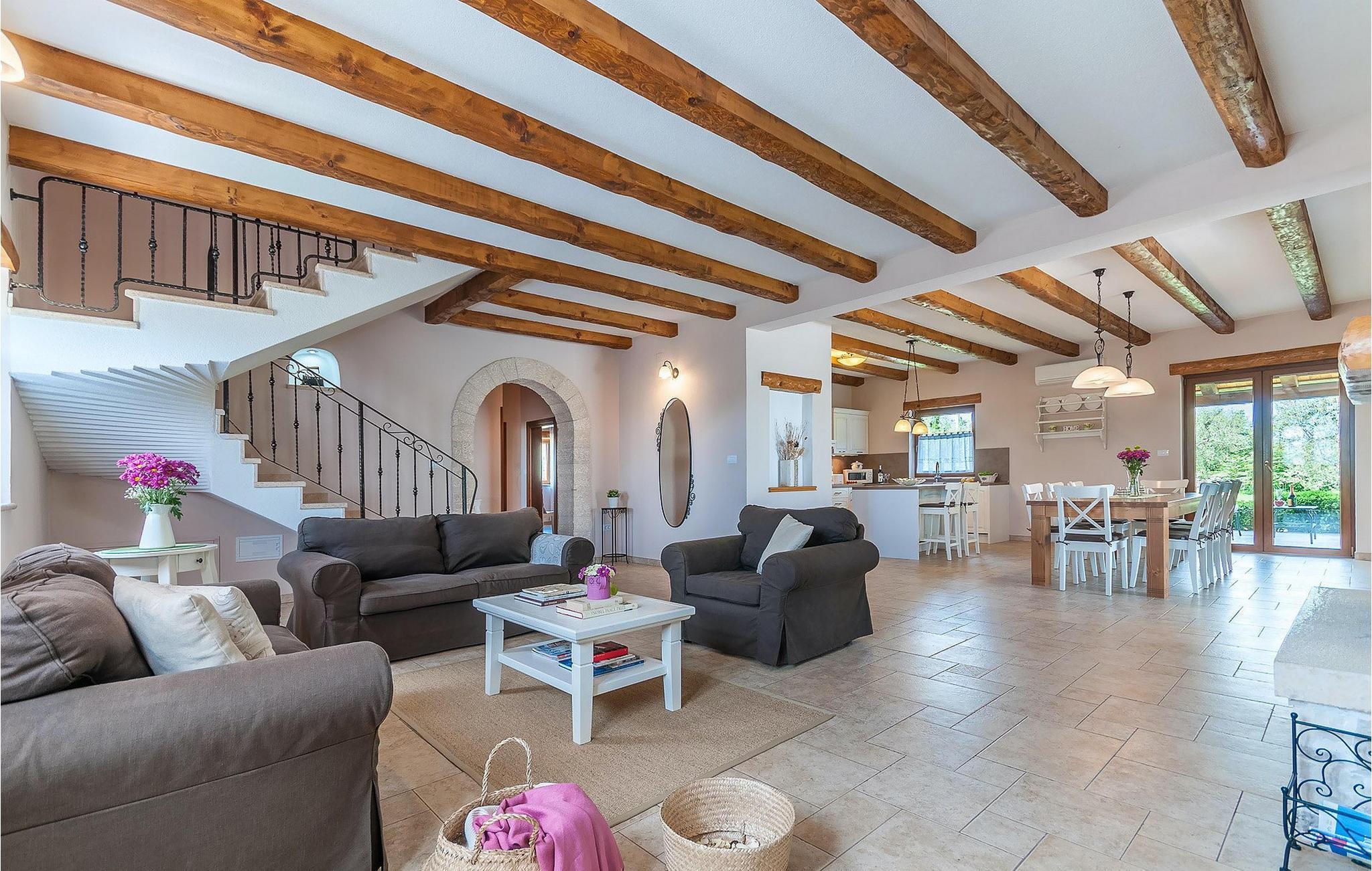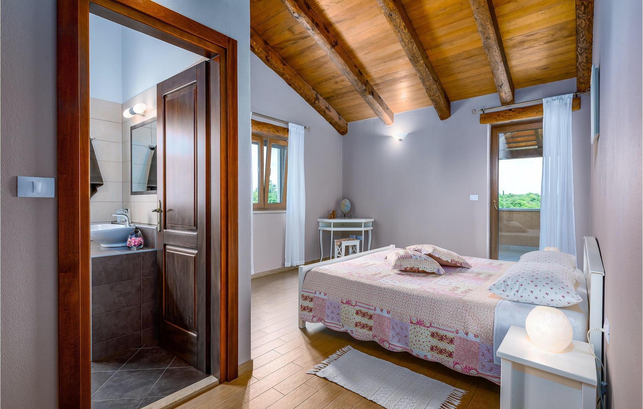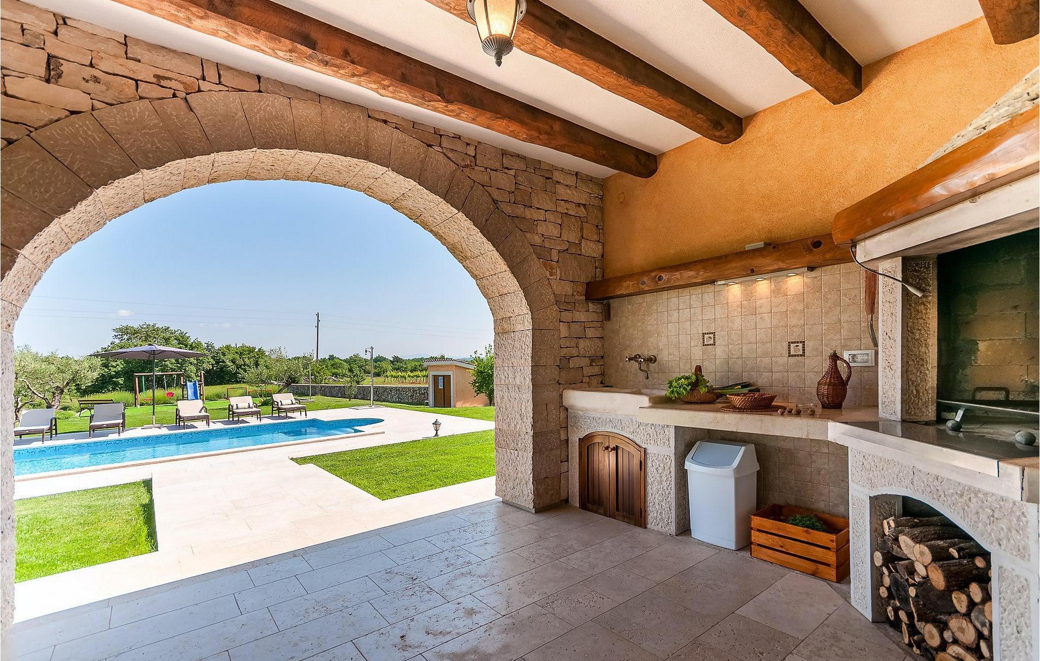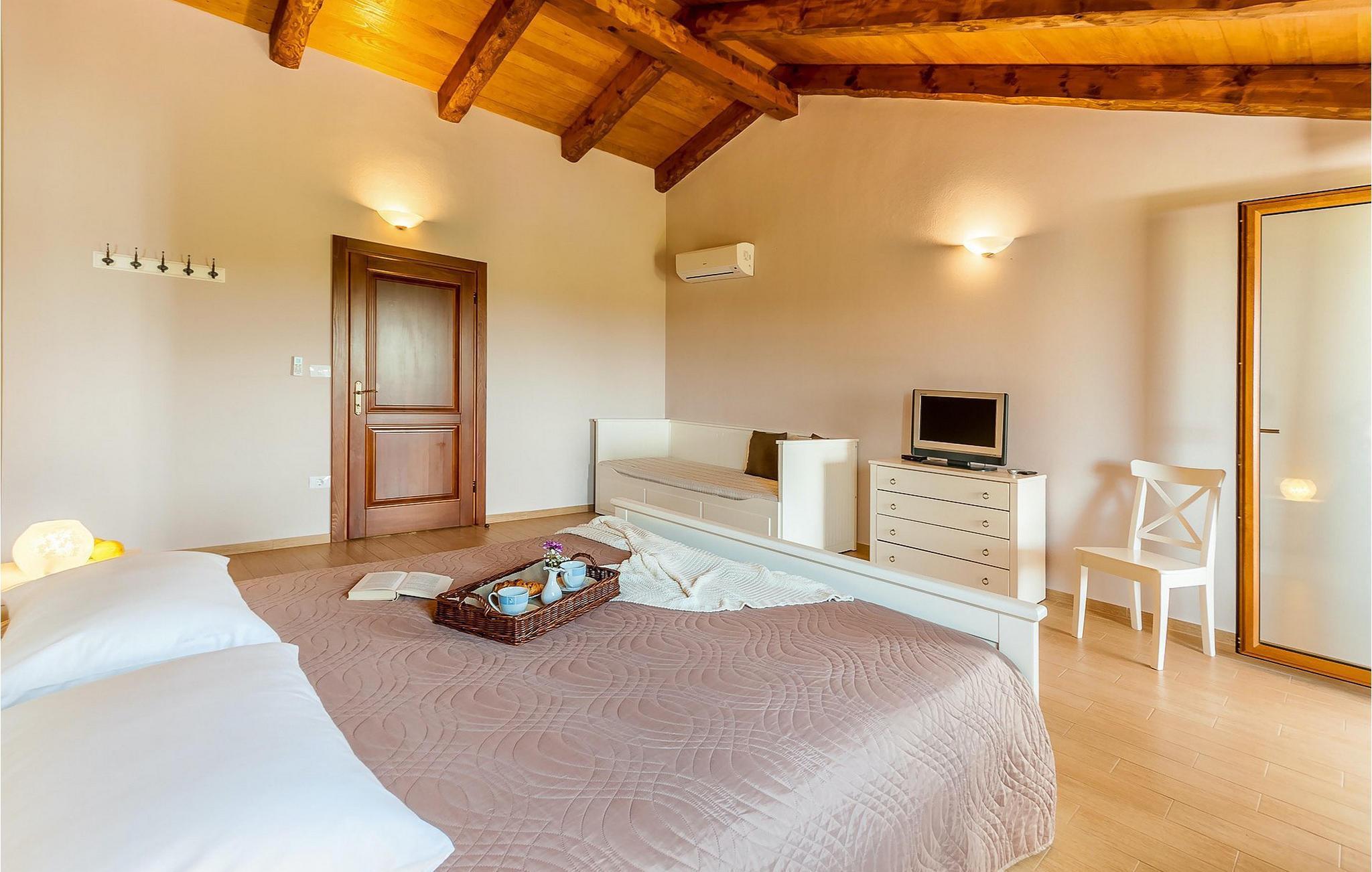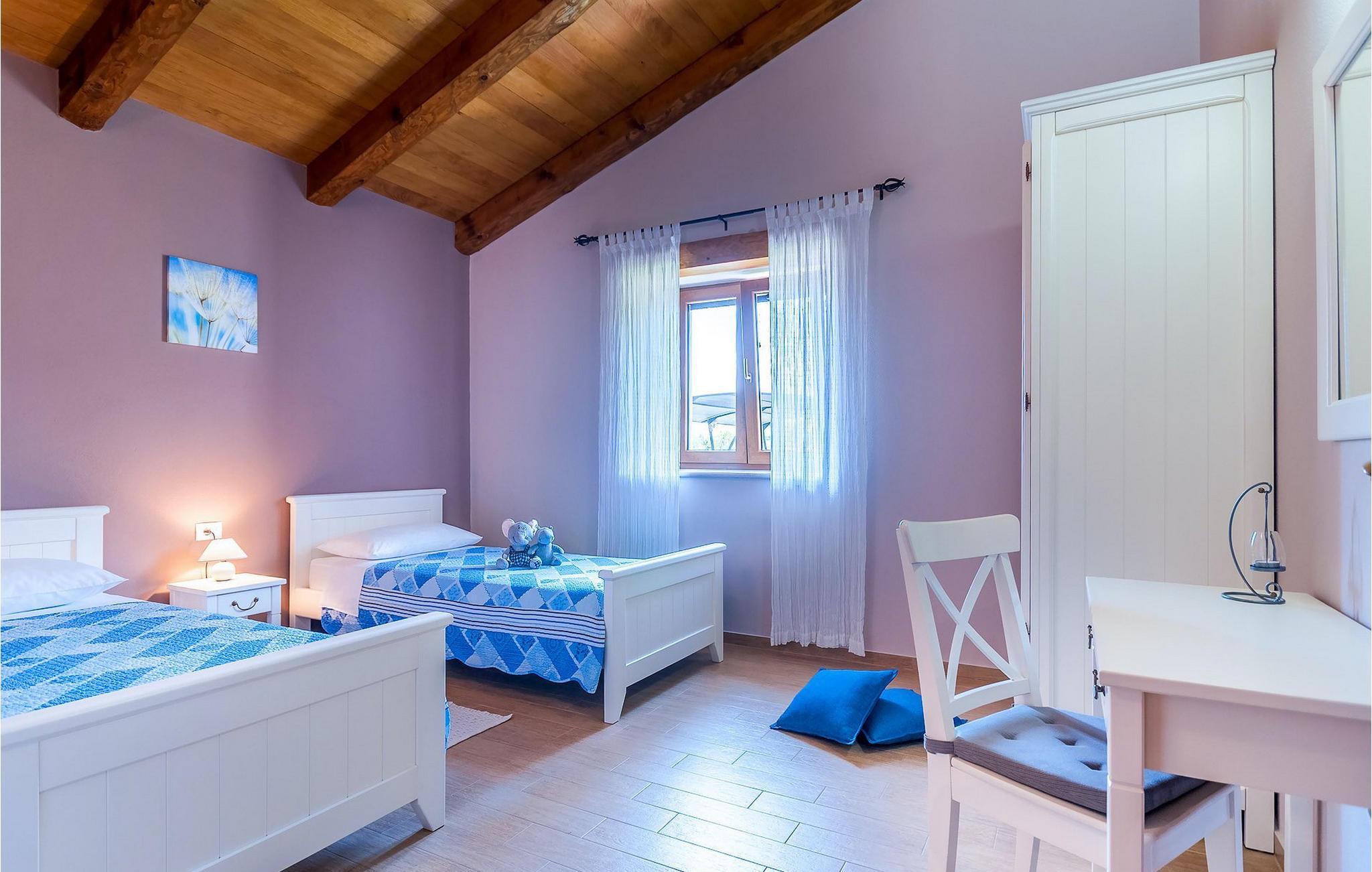 Vakkert feriehus omgitt av grøntområder. I enden av den lille landsbyen Filipana i det sørlige Istria, en halvøy ved Middelhavet. Feriehuset tilbyr en luksuriøs innkvartering med mye privatliv. Husets naturlige byggematerialer og belysningssystem er nøye gjennomtenkt for å gi maksimal komfort og en behagelig ferieopplevelse til enhver tid. Kjøkkenet, et toalett, et soverom med to enkeltsenger og bad, et soverom med dobbeltseng og direkte tilgang til badet, spisestuen og stuen ligger i første etasje med vakker utsikt over svømmebassenget. I andre etasje er det to soverom med dobbeltseng og to bad. Eiendommen ligger på en stor tomt med mange oliventrær, enger og skog, noe som gir en unik atmosfære og fullstendig privatliv for gjestene på en tomt på over 22 900 m2. Området rundt bassenget er møblert med solsenger laget av naturmaterialer. Dette vakre feriehuset ligger i den lille landsbyen Filipana sør på Istria-halvøya, og er ideelt for familieaktiviteter, romantiske utflukter og avslapning. Et ferieopphold i dette feriehuset tilbyr den perfekte balansen mellom ro og privat nytelse, vekk fra byens kjas og mas og turistmassene, men ikke langt fra alle de viktige stedene på halvøya.