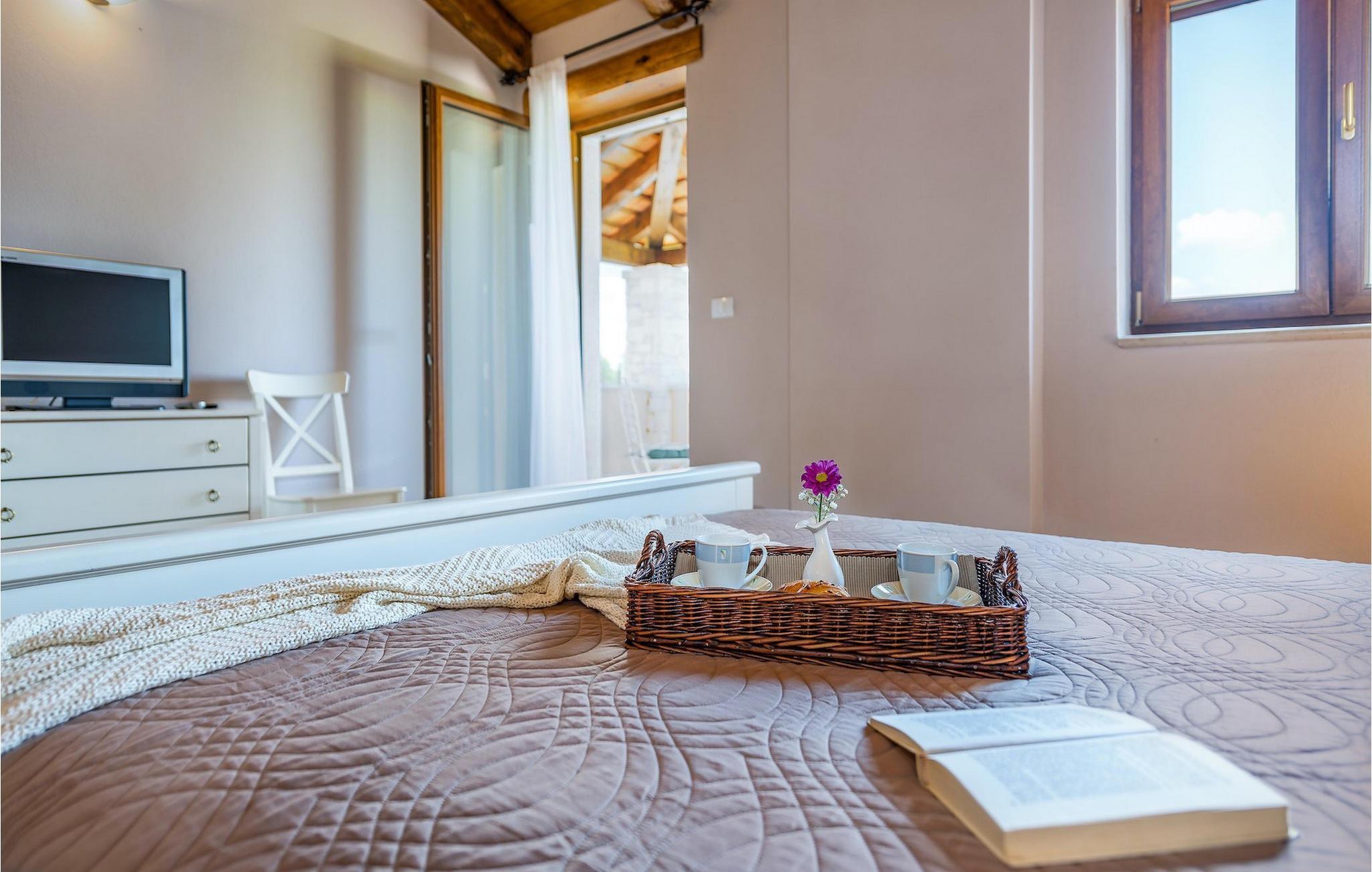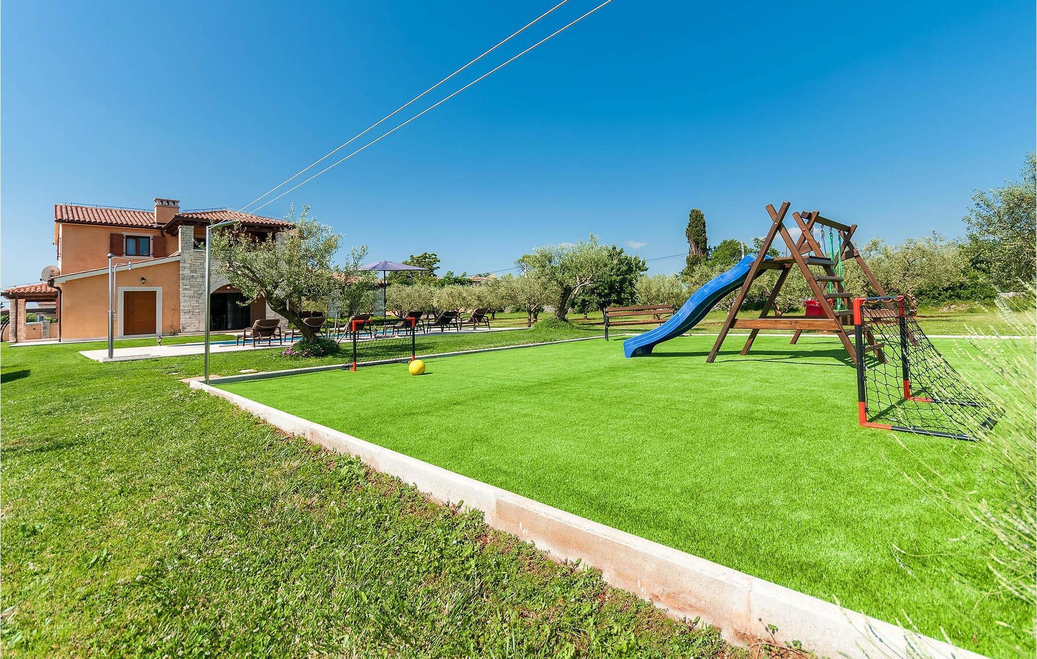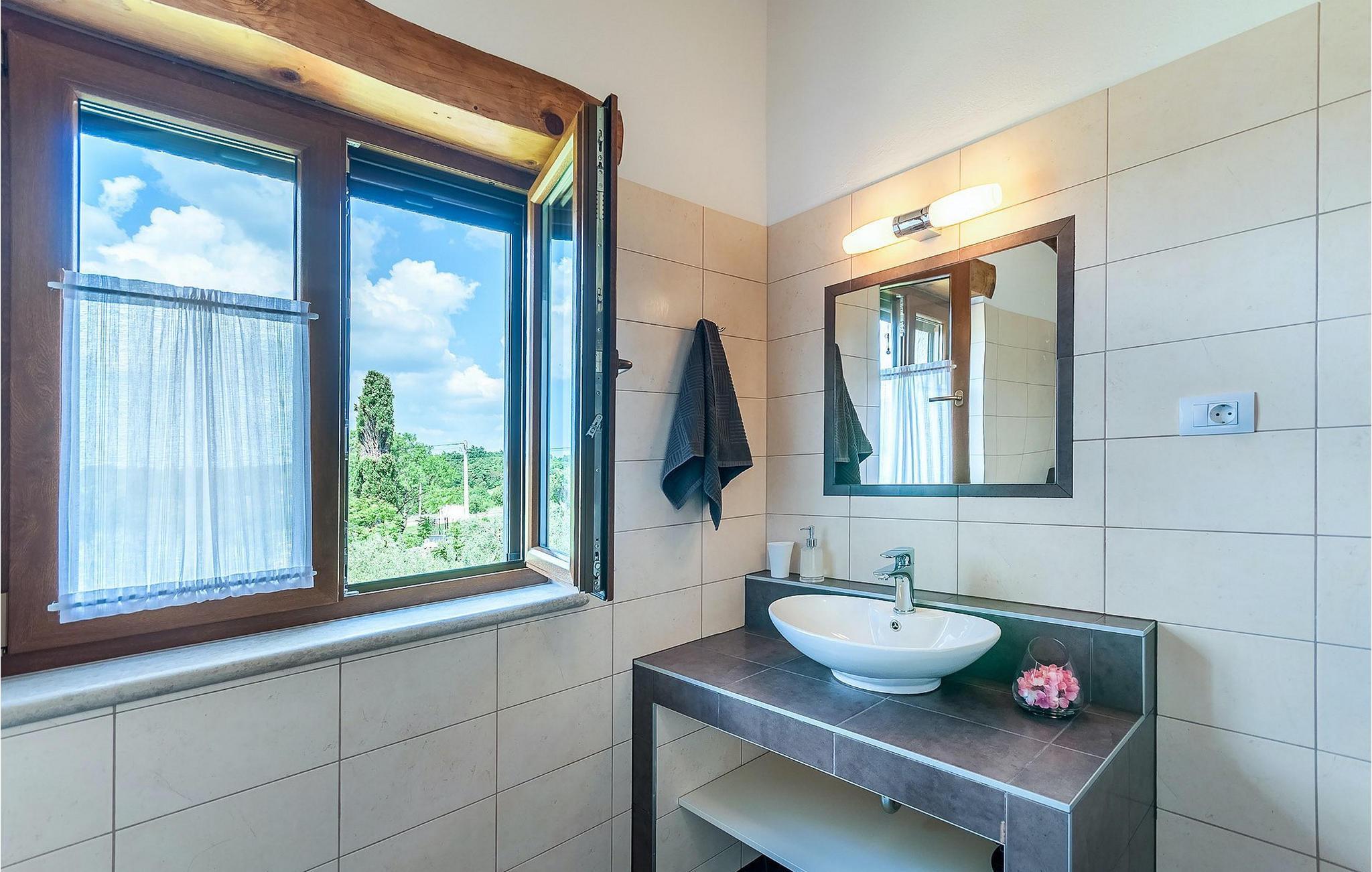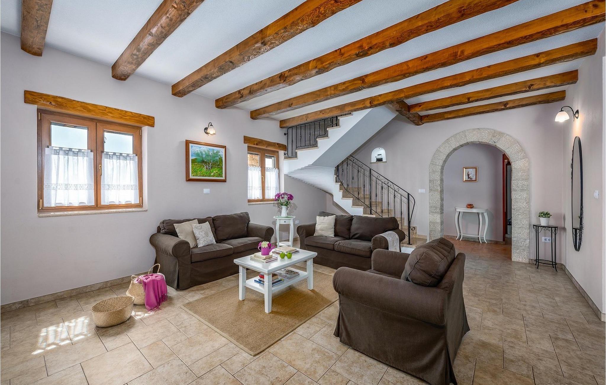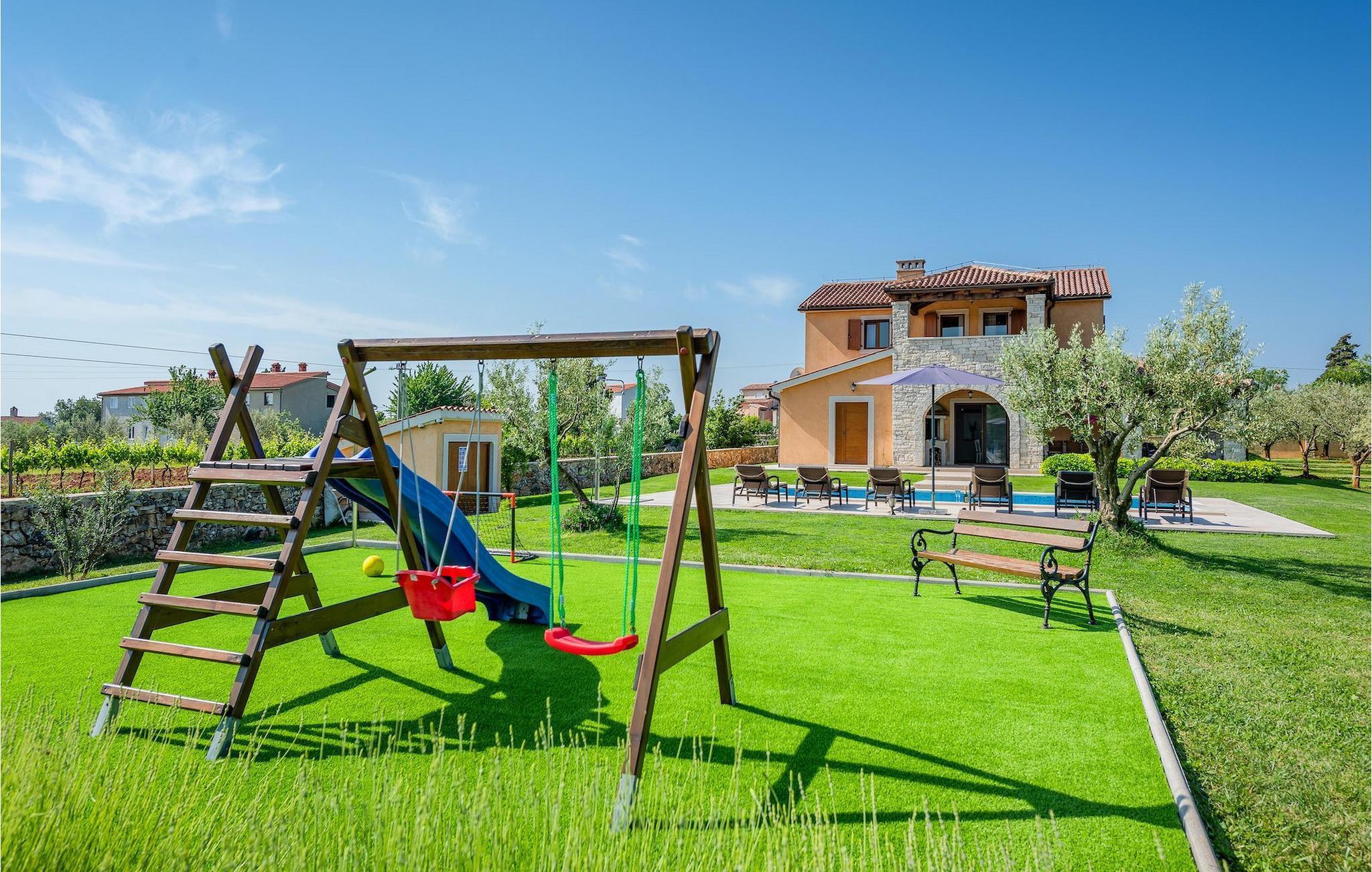 Vakkert feriehus omgitt av grøntområder. I enden av den lille landsbyen Filipana i det sørlige Istria, en halvøy ved Middelhavet. Feriehuset tilbyr en luksuriøs innkvartering med mye privatliv. Husets naturlige byggematerialer og belysningssystem er nøye gjennomtenkt for å gi maksimal komfort og en behagelig ferieopplevelse til enhver tid. Kjøkkenet, et toalett, et soverom med to enkeltsenger og bad, et soverom med dobbeltseng og direkte tilgang til badet, spisestuen og stuen ligger i første etasje med vakker utsikt over svømmebassenget. I andre etasje er det to soverom med dobbeltseng og to bad. Eiendommen ligger på en stor tomt med mange oliventrær, enger og skog, noe som gir en unik atmosfære og fullstendig privatliv for gjestene på en tomt på over 22 900 m2. Området rundt bassenget er møblert med solsenger laget av naturmaterialer. Dette vakre feriehuset ligger i den lille landsbyen Filipana sør på Istria-halvøya, og er ideelt for familieaktiviteter, romantiske utflukter og avslapning. Et ferieopphold i dette feriehuset tilbyr den perfekte balansen mellom ro og privat nytelse, vekk fra byens kjas og mas og turistmassene, men ikke langt fra alle de viktige stedene på halvøya.