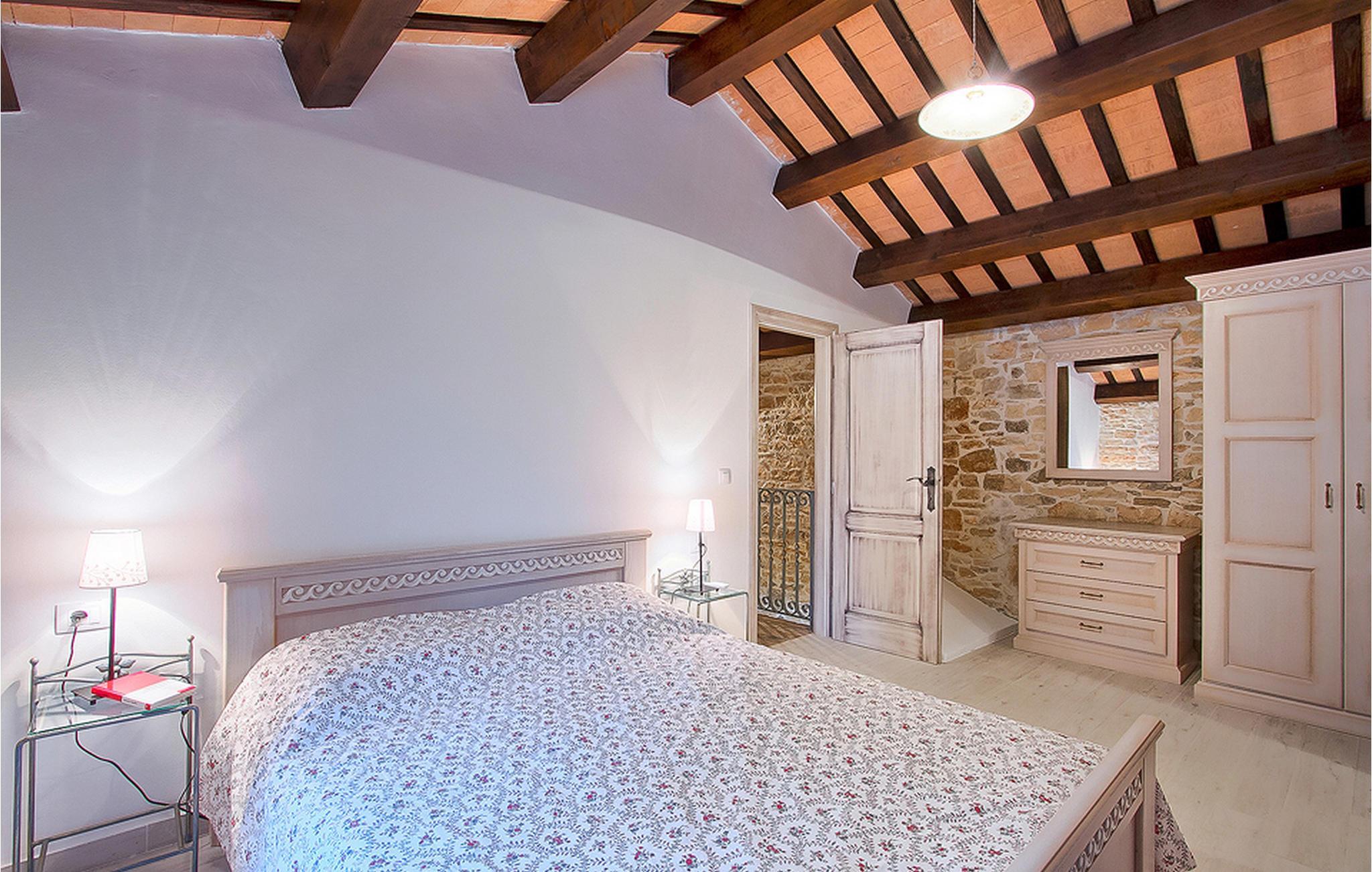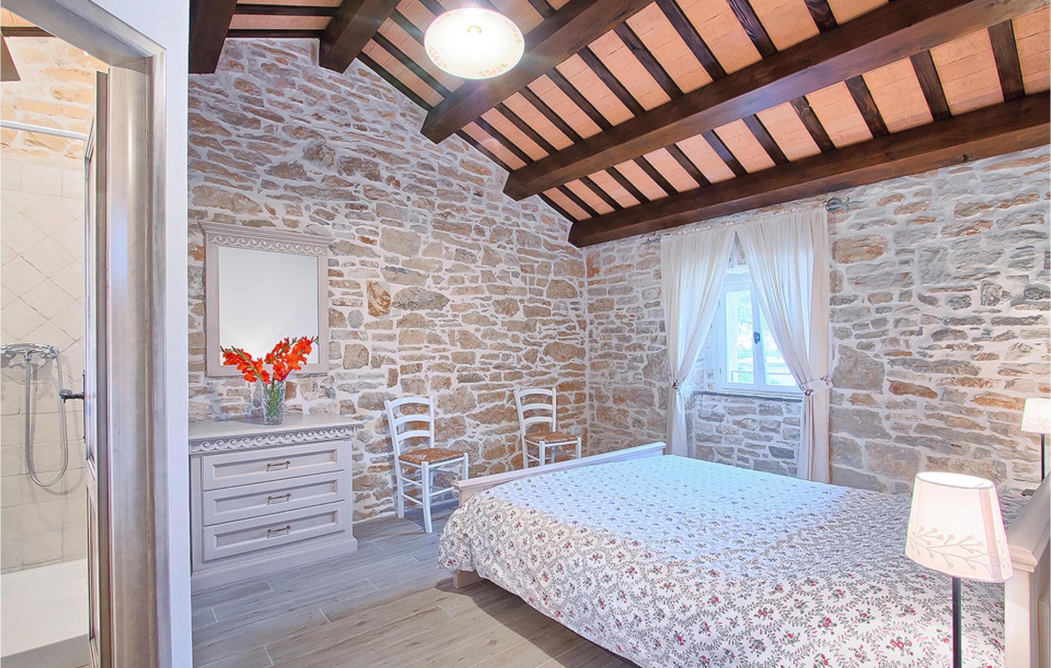 Denne vakre og renoverte Villa Agra i nærheten av Pula har plass til opptil 12 personer og er et ideelt feriested for en stor familie. Villaen består av to hus og en stor, inngjerdet hage med et svømmebasseng som er ideelt for en dukkert i de varme sommermånedene. Den mindre delen av villaen har en overbygd uteservering, mens det inne i bygningen er grill og bordtennisbord. Hovedbygningen i Villa Agra har 6 soverom og to trapper som fører til soverom og bad. Det er 3 soverom og 2 bad på hver side. Ett av rommene har dobbeltseng og eget bad, mens de to andre rommene, ett med dobbeltseng og ett med to enkeltsenger, deler bad med dusj. Alle soverommene ligger i øverste etasje. I første etasje er det også et bad med dusj og badekar.