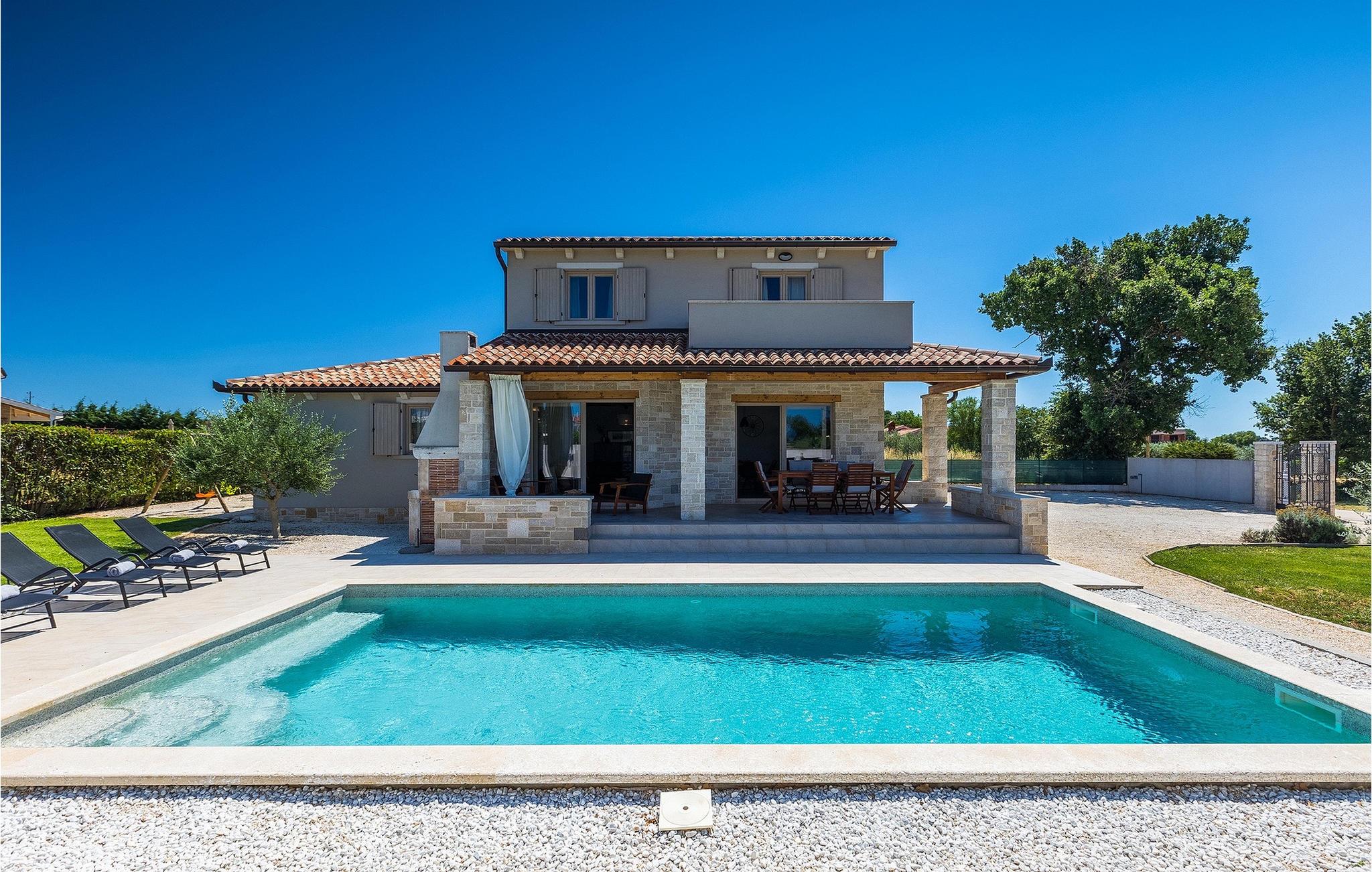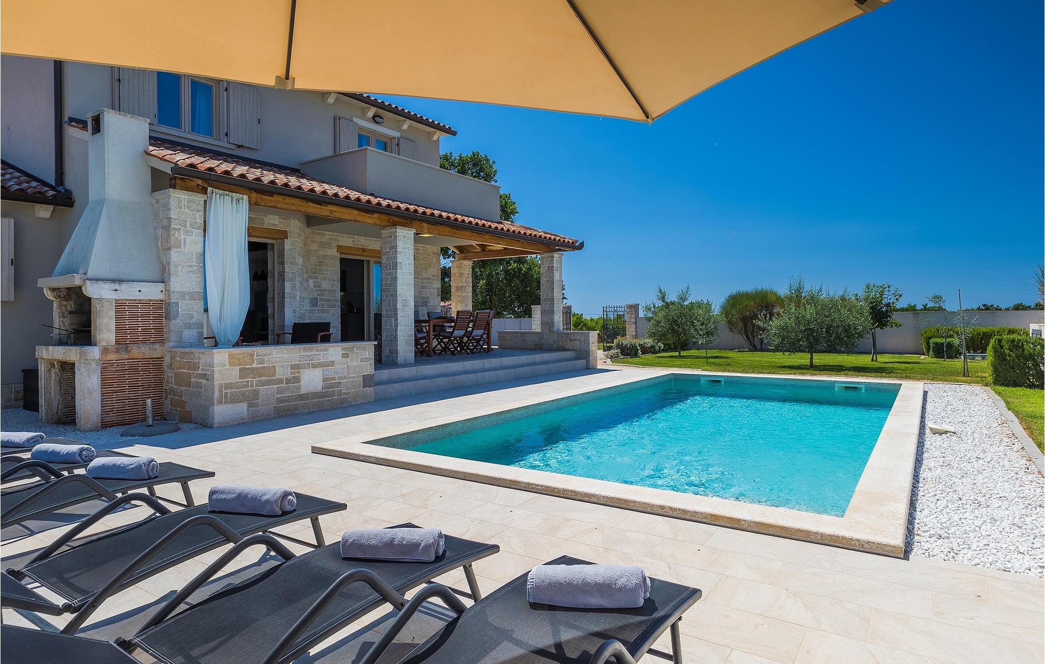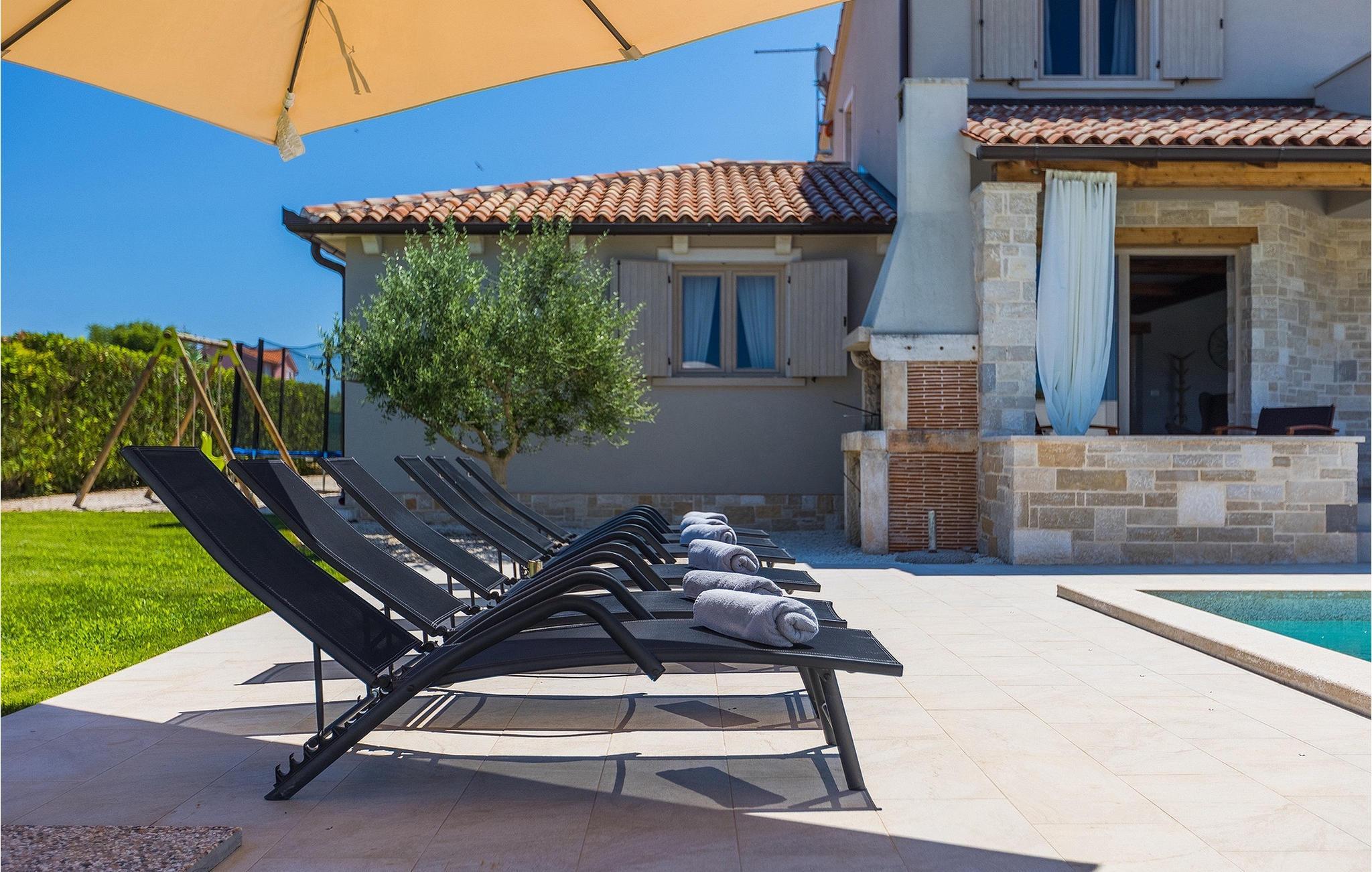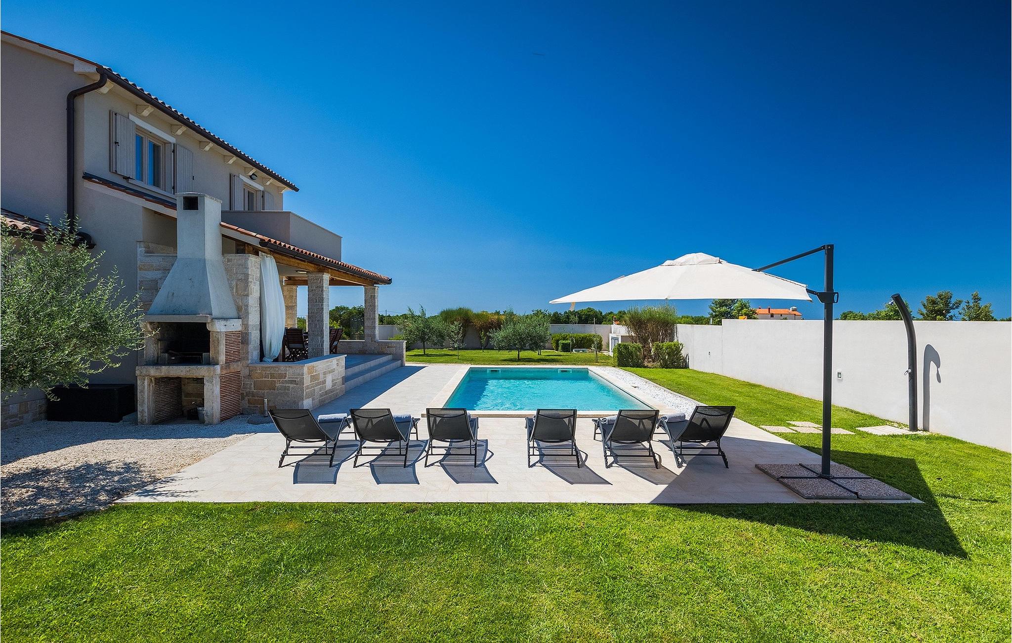 Villa Prato er en vakker villa sør i Istria i nærheten av Pula. Villaen er moderne, svært koselig og sjarmerende innredet. I villaens første etasje er det et fullt utstyrt kjøkken og en stue med spiseplass, med vakker utsikt over hagen og bassenget. I villaens første etasje er det fire koselige soverom, hvorav tre har dobbeltseng og ett dobbeltrom med to enkeltsenger. I tillegg til soverommene er det i første etasje tre moderne bad og en terrasse med unik utsikt over den vakre istriske naturen. I den store hagen er det et 32 m2 stort basseng som byr på forfriskninger på varme sommerdager, samt en lekeplass. På den overbygde delen av terrassen er det en spiseplass hvor du kan nyte istriske retter med et glass Malvazija. Hvis du vil ta en pause fra hverdagen, er Villa Prato det ideelle valget for familie og venner.vakre Villa Prato ligger i nærheten av den lille landsbyen Loborika, på sørsiden av den istriske halvøya. Villaens beliggenhet gir en perfekt balanse mellom ro og privatliv, vekk fra byens kjas og mas og turistmylderet, samtidig som den ligger i nærheten av alle de store byene i Istria. Pula, Istrias største by, ligger ikke langt fra villaen og er verdenskjent for sitt fantastiske Colosseum, et gammelt amfiteater som ble bygget på 1000-tallet under den romerske keiseren Vespasian.