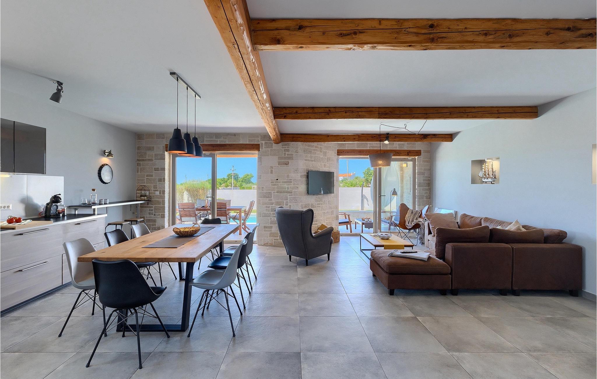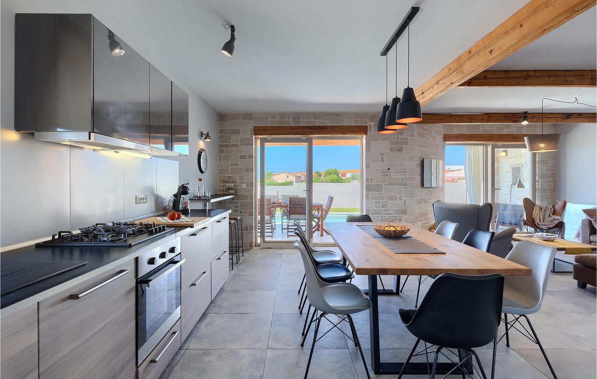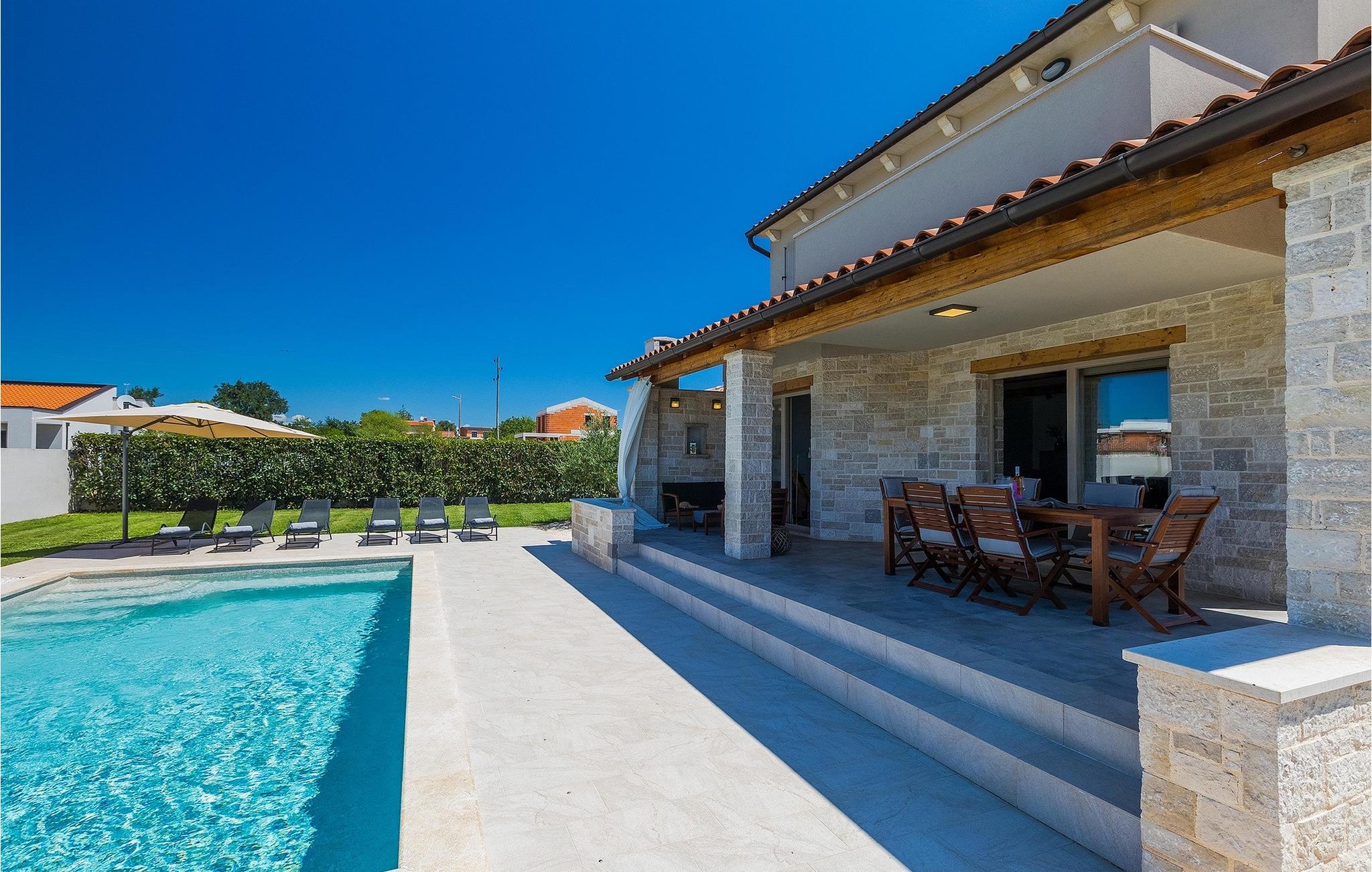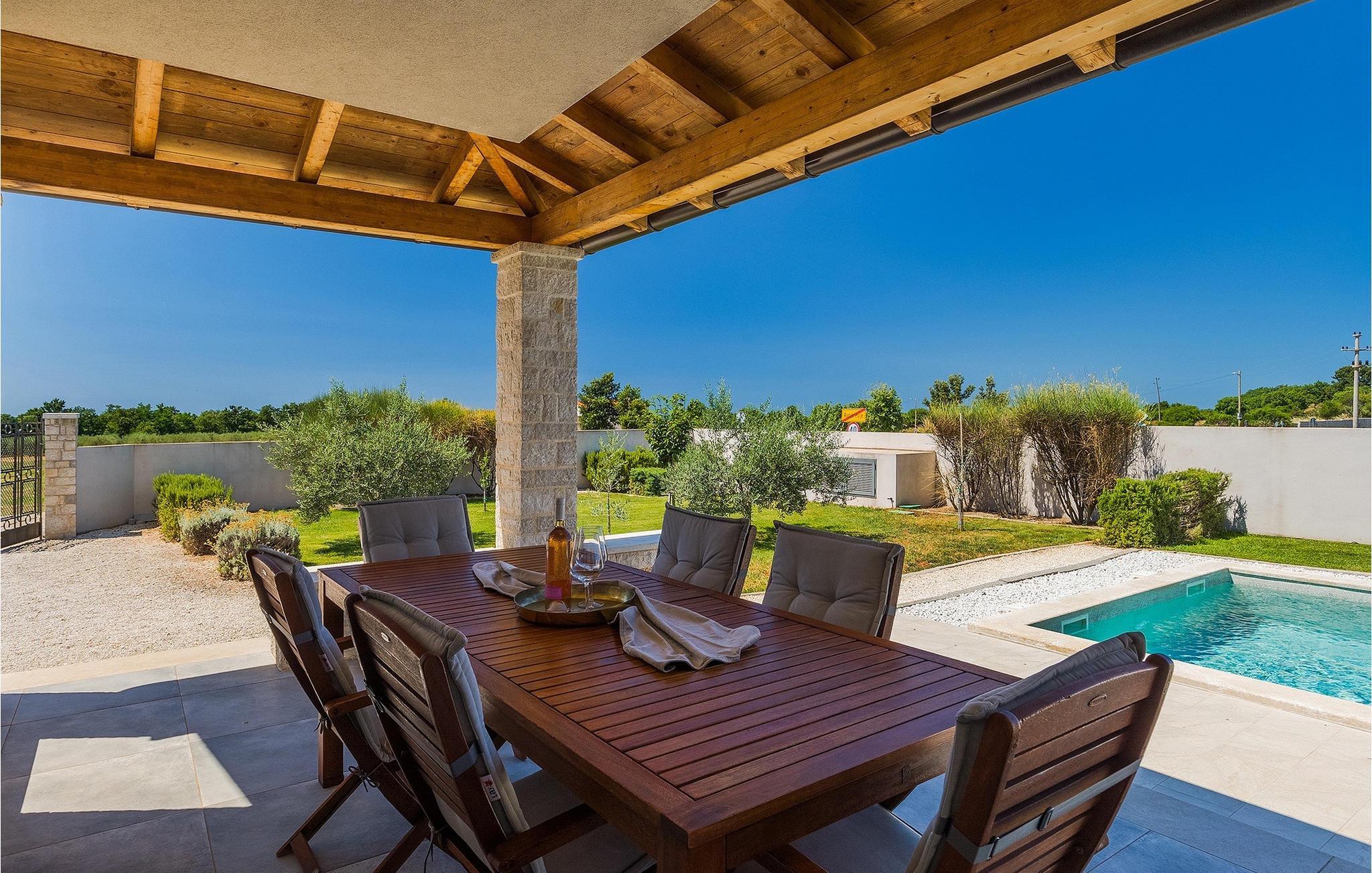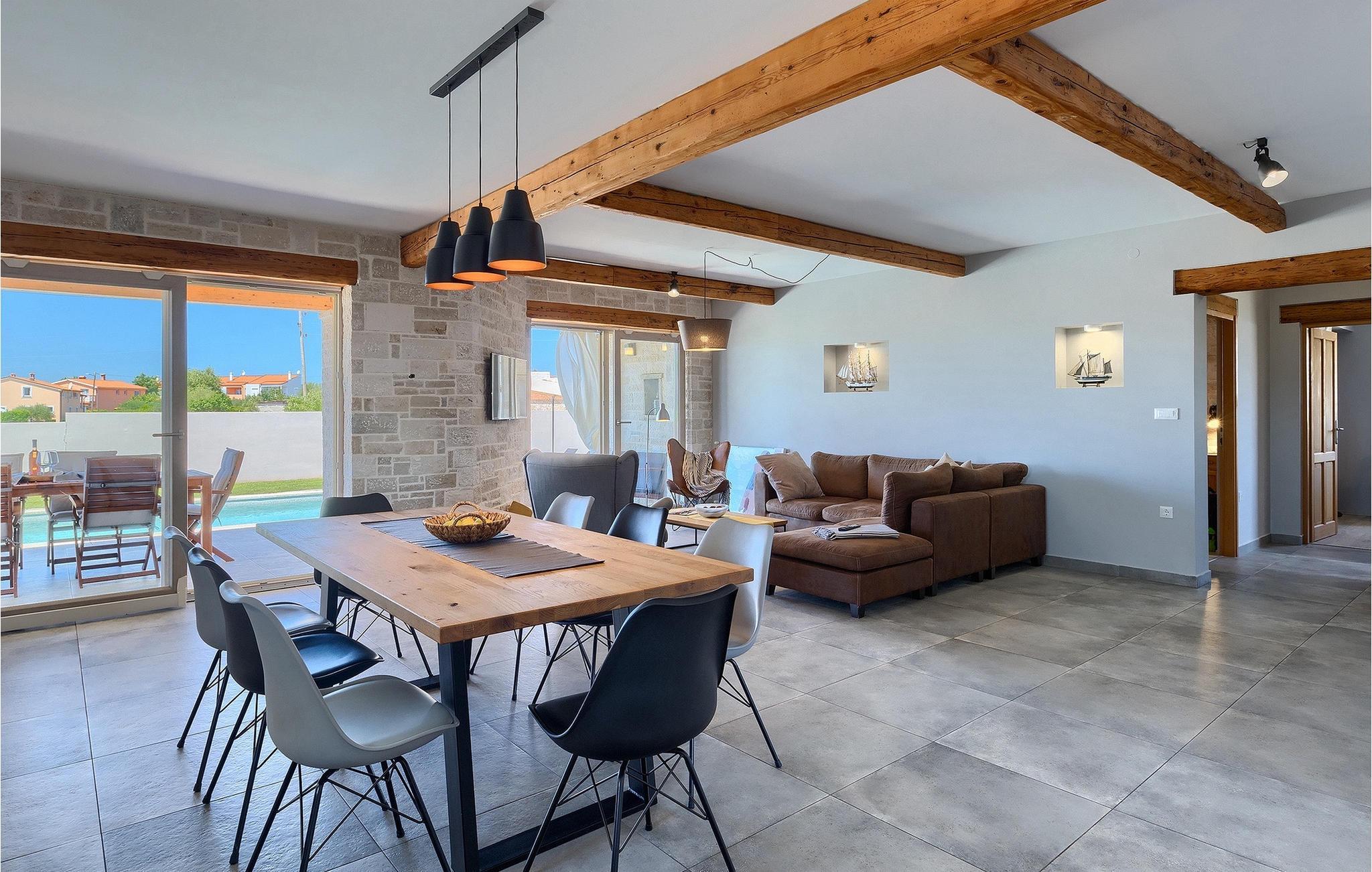 Villa Prato er en vakker villa sør i Istria i nærheten av Pula. Villaen er moderne, svært koselig og sjarmerende innredet. I villaens første etasje er det et fullt utstyrt kjøkken og en stue med spiseplass, med vakker utsikt over hagen og bassenget. I villaens første etasje er det fire koselige soverom, hvorav tre har dobbeltseng og ett dobbeltrom med to enkeltsenger. I tillegg til soverommene er det i første etasje tre moderne bad og en terrasse med unik utsikt over den vakre istriske naturen. I den store hagen er det et 32 m2 stort basseng som byr på forfriskninger på varme sommerdager, samt en lekeplass. På den overbygde delen av terrassen er det en spiseplass hvor du kan nyte istriske retter med et glass Malvazija. Hvis du vil ta en pause fra hverdagen, er Villa Prato det ideelle valget for familie og venner.vakre Villa Prato ligger i nærheten av den lille landsbyen Loborika, på sørsiden av den istriske halvøya. Villaens beliggenhet gir en perfekt balanse mellom ro og privatliv, vekk fra byens kjas og mas og turistmylderet, samtidig som den ligger i nærheten av alle de store byene i Istria. Pula, Istrias største by, ligger ikke langt fra villaen og er verdenskjent for sitt fantastiske Colosseum, et gammelt amfiteater som ble bygget på 1000-tallet under den romerske keiseren Vespasian.
