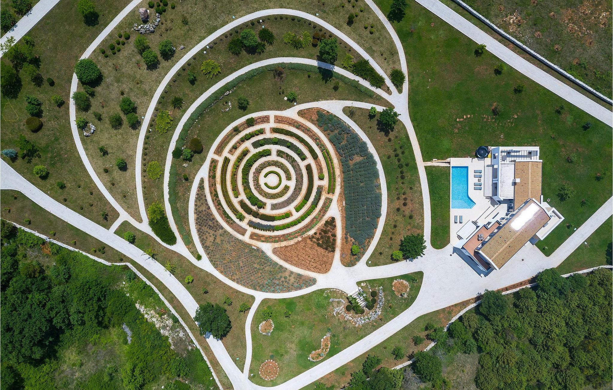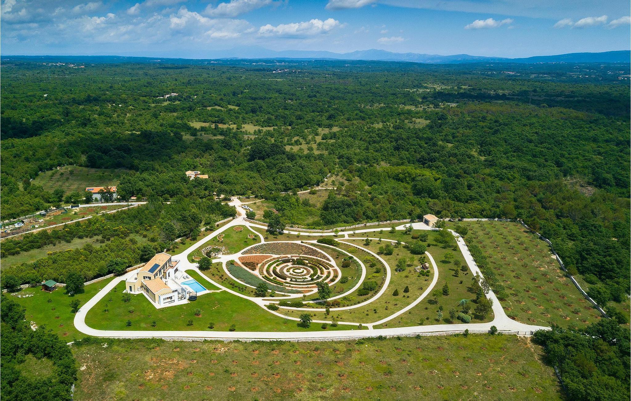 Villa Arkaim ligger i den idylliske og fredelige kommunen Marcana i Istria, og har et privat basseng og en egen 22 000 kvadratmeter stor privat park, samt en velstelt hage med en labyrint. Her, omgitt av pittoresk natur, har du fullstendig privatliv til å bare slappe av foran villaen eller svømme i saltvannsbassenget.