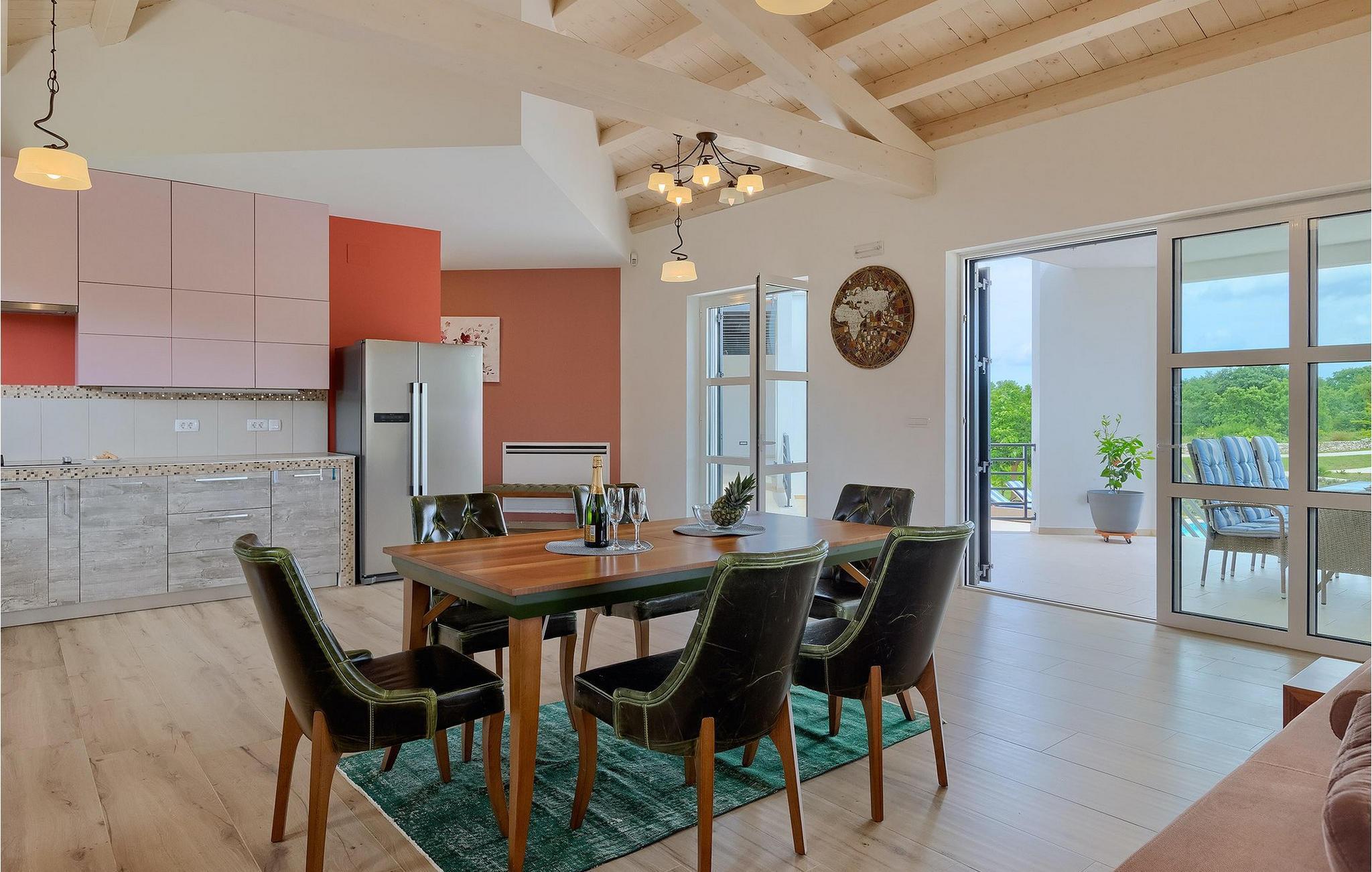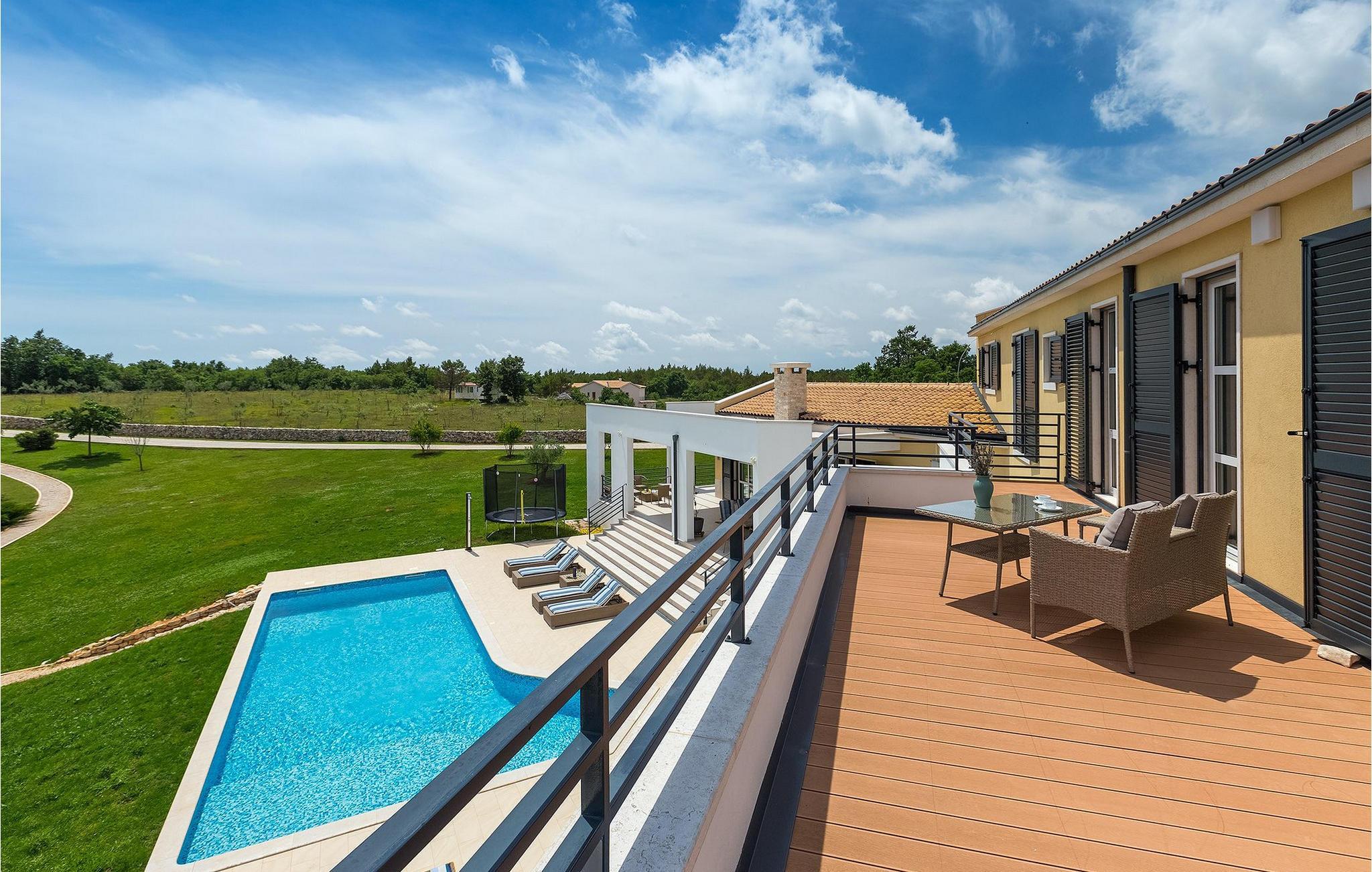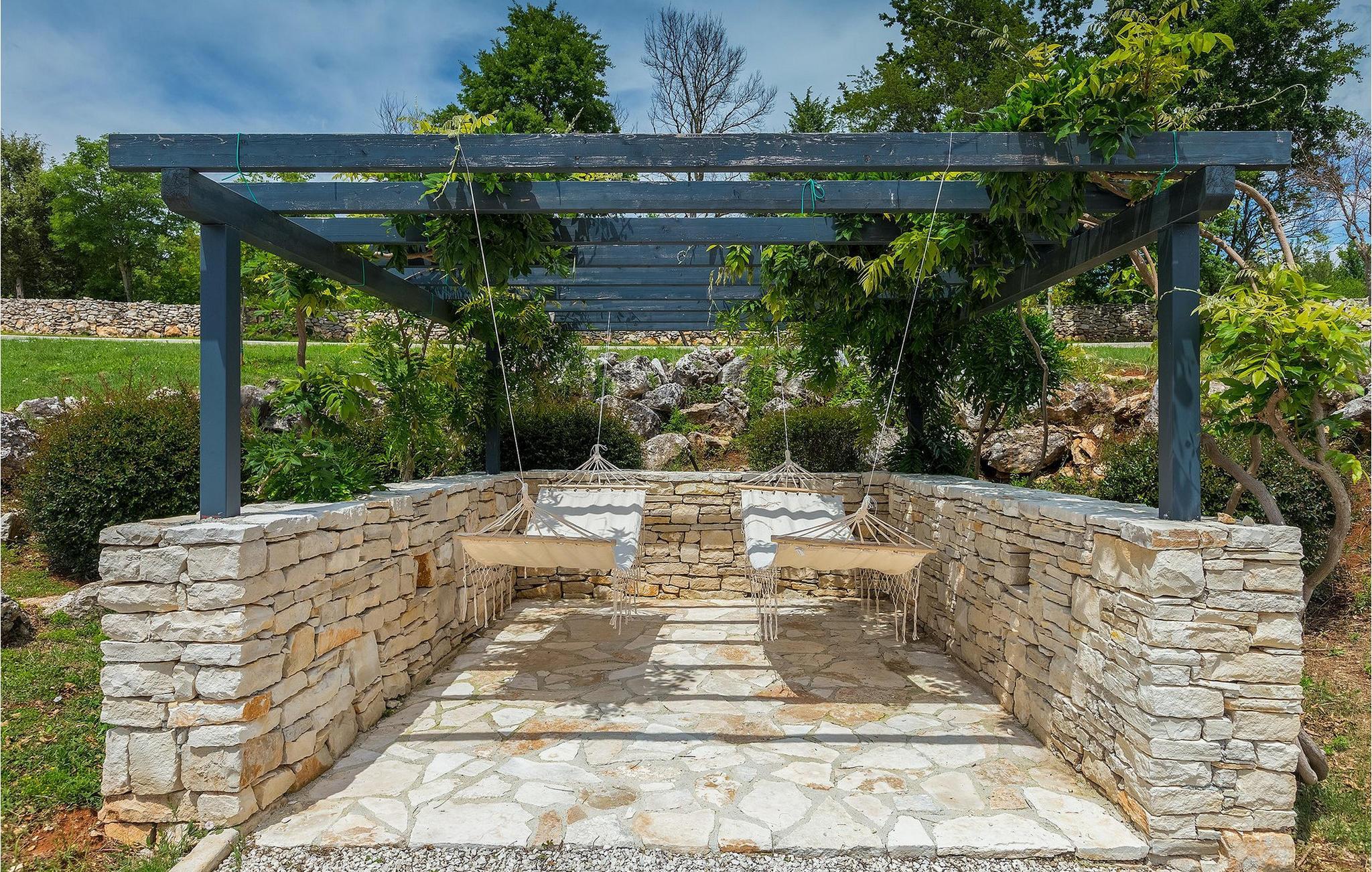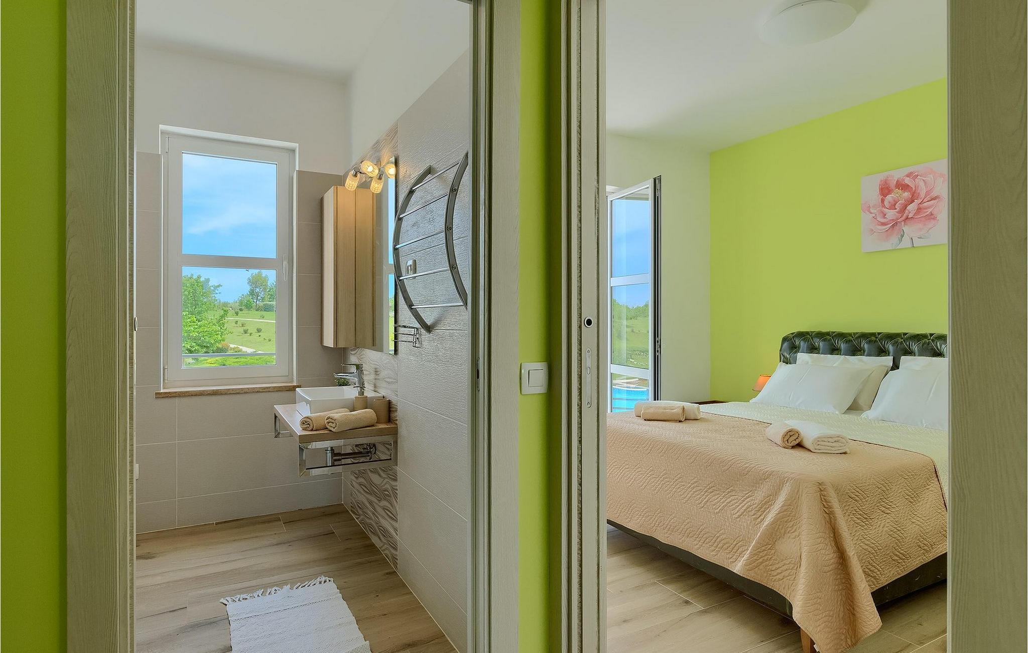 Denne villaen tilbyr deg et høyt nivå av komfort. Alt innvendig og utvendig er innredet i henhold til Feng Shui-prinsipper. Langs blomsterhager, oliventrær og middelhavsgrønt, tilbyr villaens private park mange turstier bare for deg - et sant paradis for kropp og sjel. Villaen og parken er omgitt av istriske steinmurer, noe som gir mer diskresjon. Villaen har plass til opptil ti personer, har mer enn 300 kvadratmeter innendørs plass samt en vakker utendørsterrasse hvor du kan nyte sommerkveldene med et hyggelig måltid. Villaen er fullt utstyrt med hvitevarer av høy kvalitet, og alle rom har Smart-TV. I første etasje finner du en åpen stue og spisestue med kjøkken og et soverom med eget bad. Kjøkkenet er utstyrt med alle nødvendige hvitevarer. Det er også et separat bad og et separat toalett i første etasje. Badet i første etasje er utstyrt for funksjonshemmede. Villaen er tilgjengelig for rullestolbrukere i hele første etasje og har terrasse, basseng og hage. I andre etasje er det ytterligere fire soverom, alle med eget bad og terrasse.