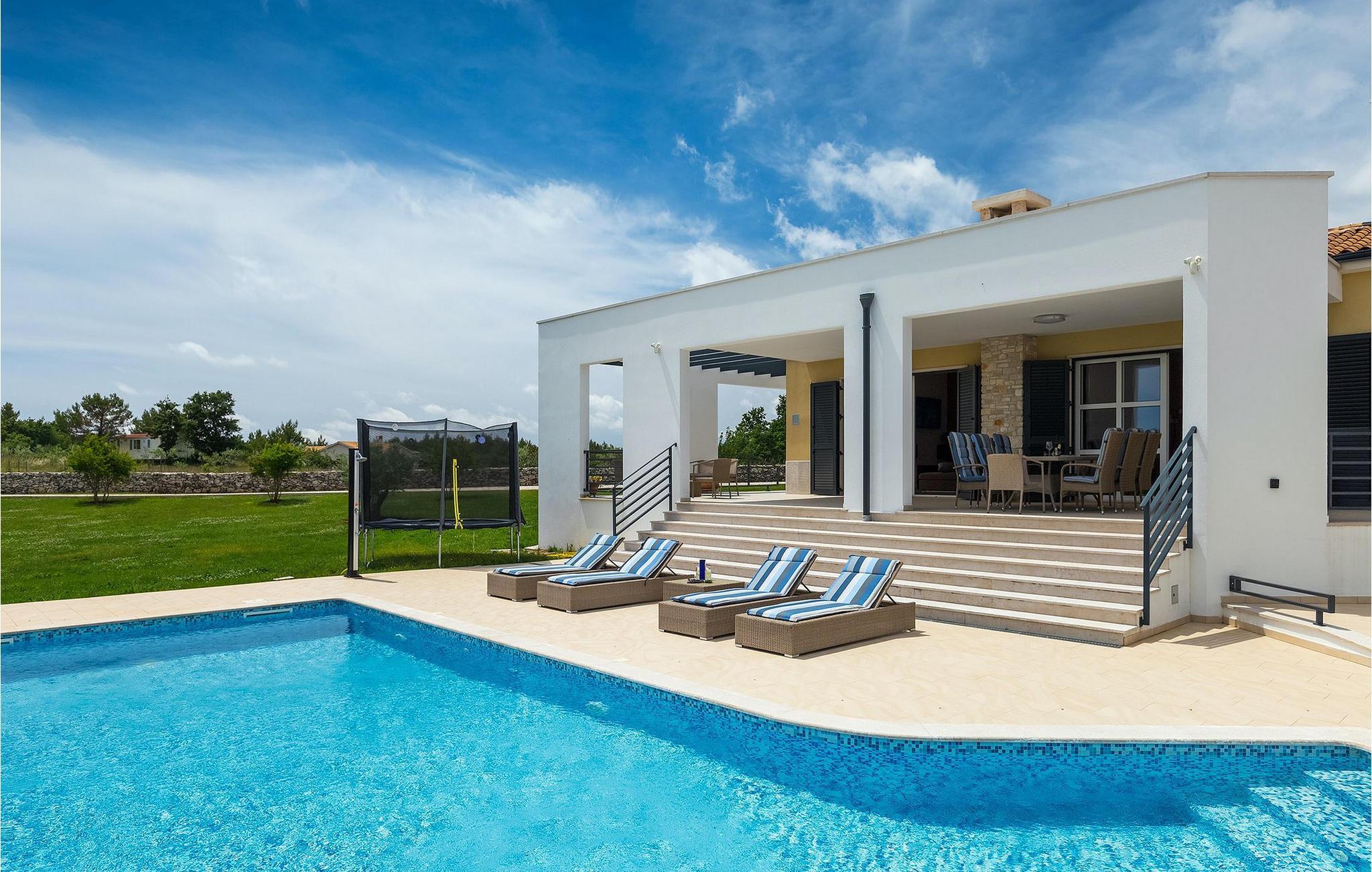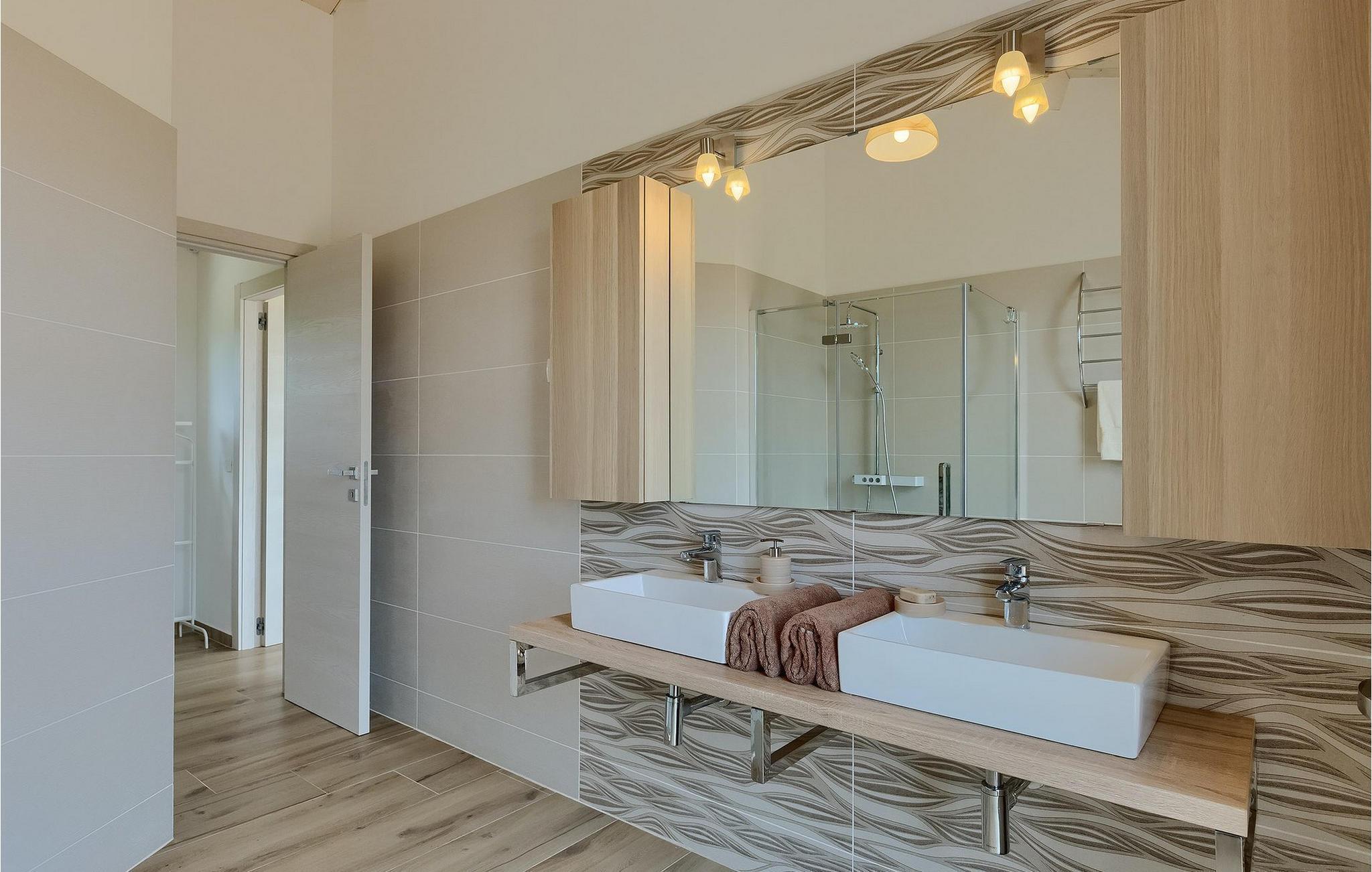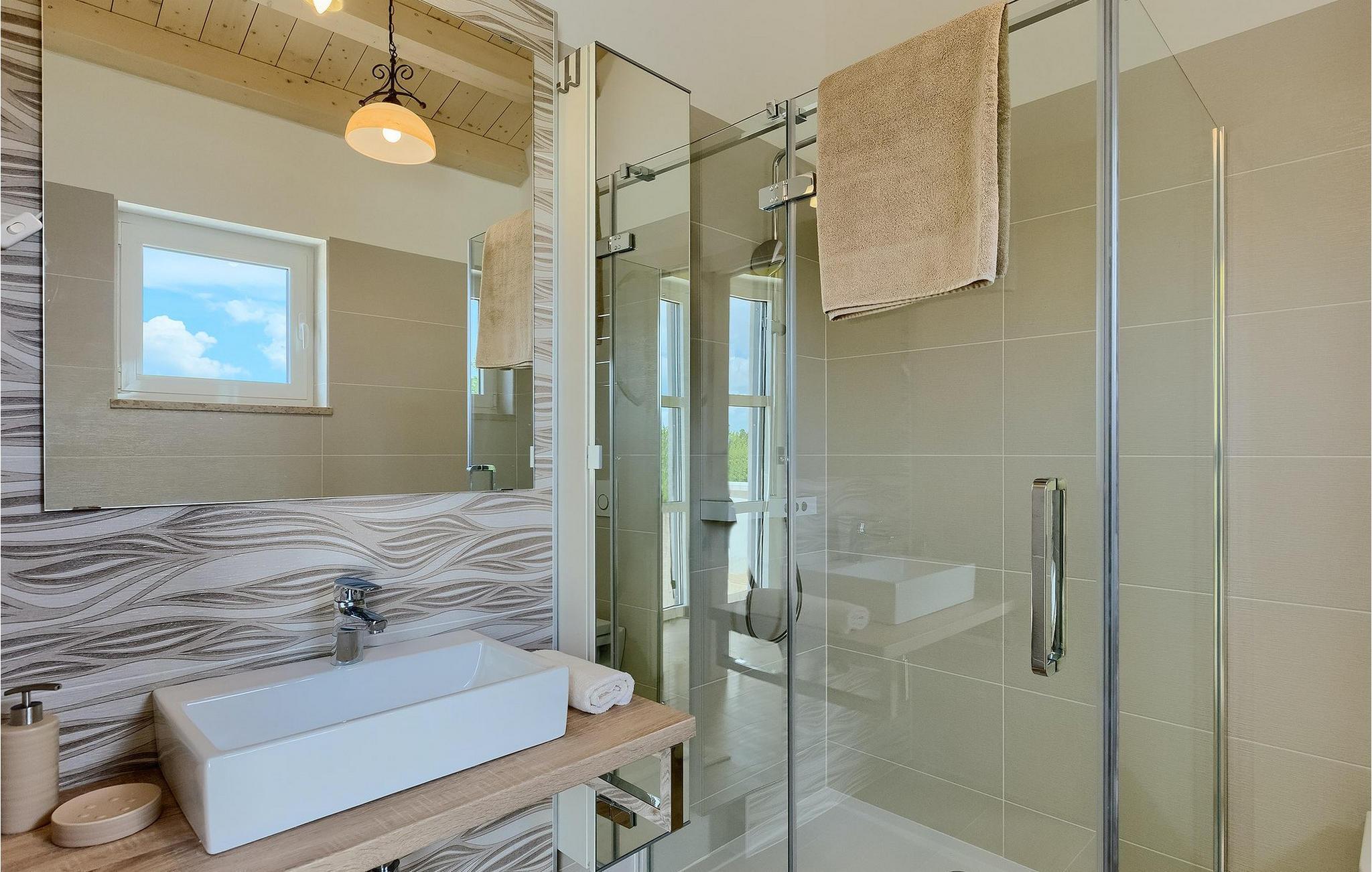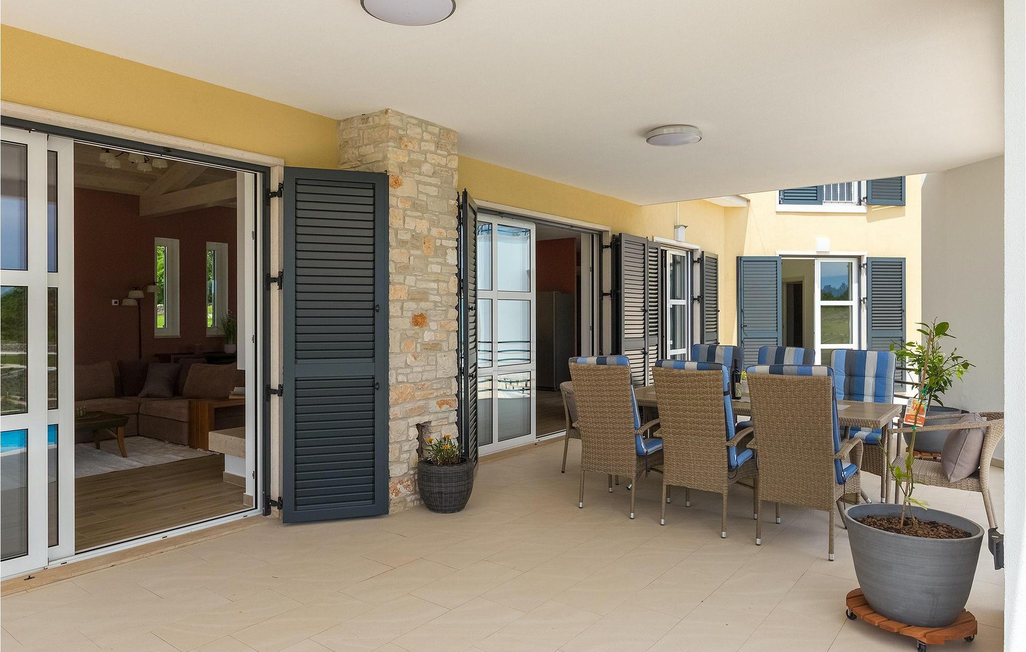Denne villaen tilbyr deg et høyt nivå av komfort. Alt innvendig og utvendig er innredet i henhold til Feng Shui-prinsipper. Langs blomsterhager, oliventrær og middelhavsgrønt, tilbyr villaens private park mange turstier bare for deg - et sant paradis for kropp og sjel. Villaen og parken er omgitt av istriske steinmurer, noe som gir mer diskresjon. Villaen har plass til opptil ti personer, har mer enn 300 kvadratmeter innendørs plass samt en vakker utendørsterrasse hvor du kan nyte sommerkveldene med et hyggelig måltid. Villaen er fullt utstyrt med hvitevarer av høy kvalitet, og alle rom har Smart-TV. I første etasje finner du en åpen stue og spisestue med kjøkken og et soverom med eget bad. Kjøkkenet er utstyrt med alle nødvendige hvitevarer. Det er også et separat bad og et separat toalett i første etasje. Badet i første etasje er utstyrt for funksjonshemmede. Villaen er tilgjengelig for rullestolbrukere i hele første etasje og har terrasse, basseng og hage. I andre etasje er det ytterligere fire soverom, alle med eget bad og terrasse.