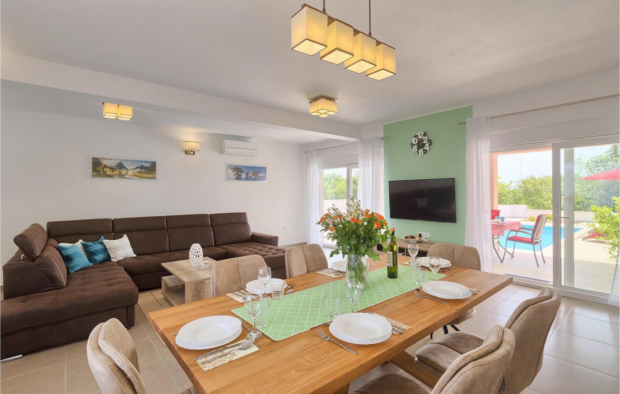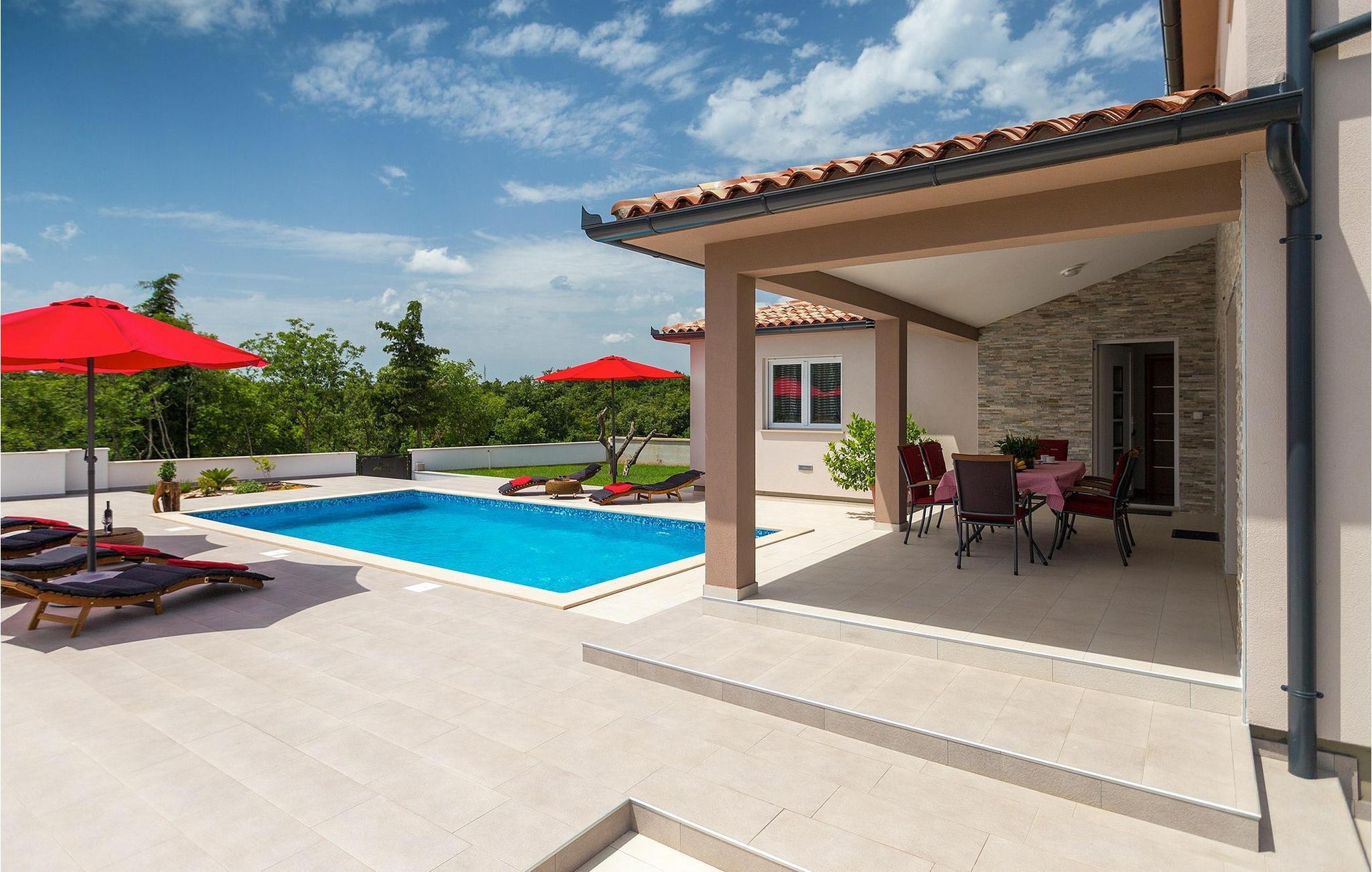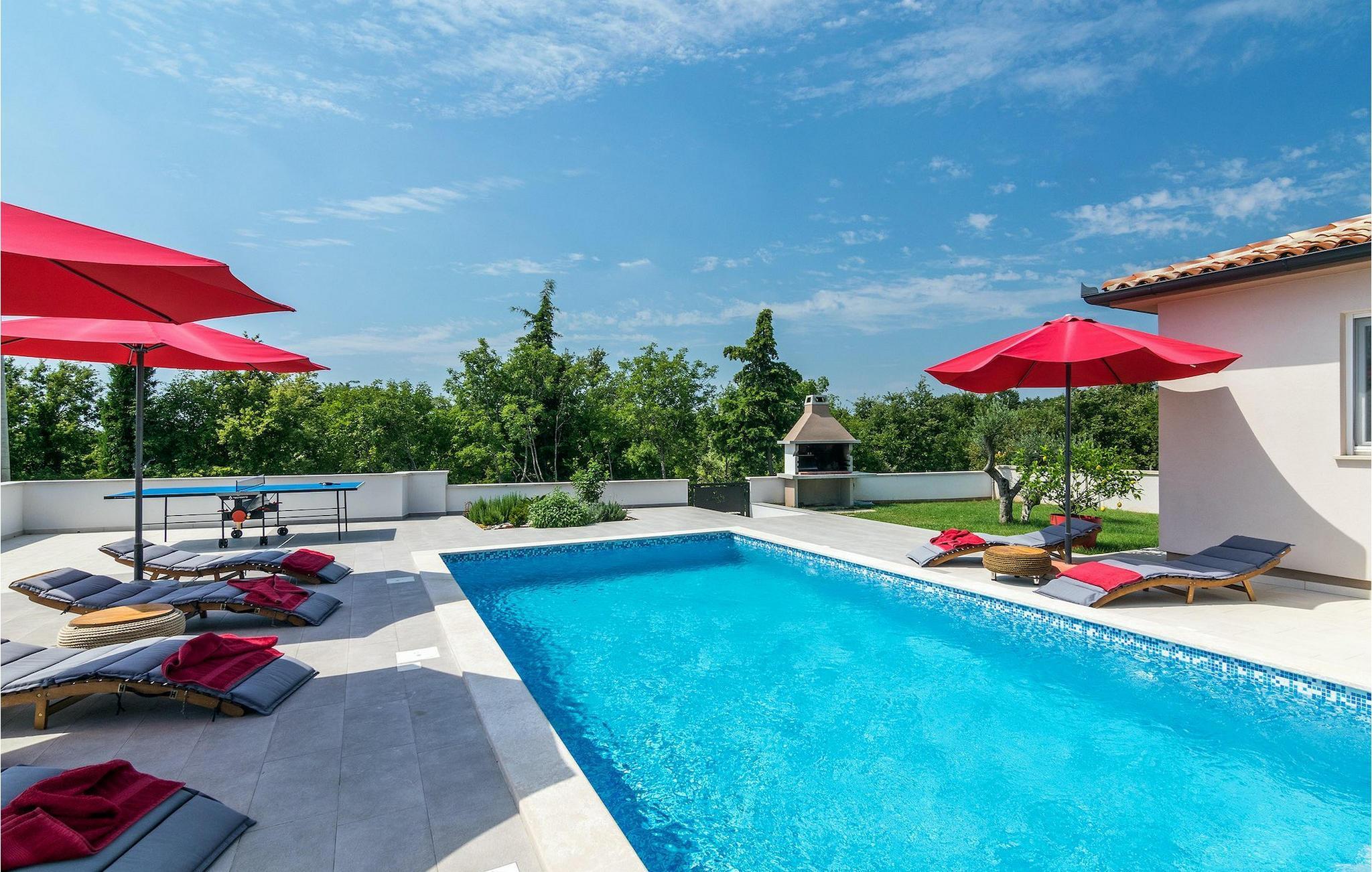 Hvis du ønsker å lage mat og spise utendørs, kan du bruke villaens uteområde med en overbygd spiseplass og grill. For ikke å glemme det innbydende private bassenget med solsenger, som gir sårt tiltrengt forfriskning i de varme sommermånedene. :)Den vakre Villa Lena ligger i en liten landsby i Istria som heter Krvavii. Som de fleste andre landsbyer i Istria er også landsbyen Krvavii omgitt av fantastisk natur, grønne åser og åkrer, noe som gjør beliggenheten ideell for en avslappende ferie. Hvis du er interessert i historiske byer, ligger Pula bare en kort kjøretur unna villaen.