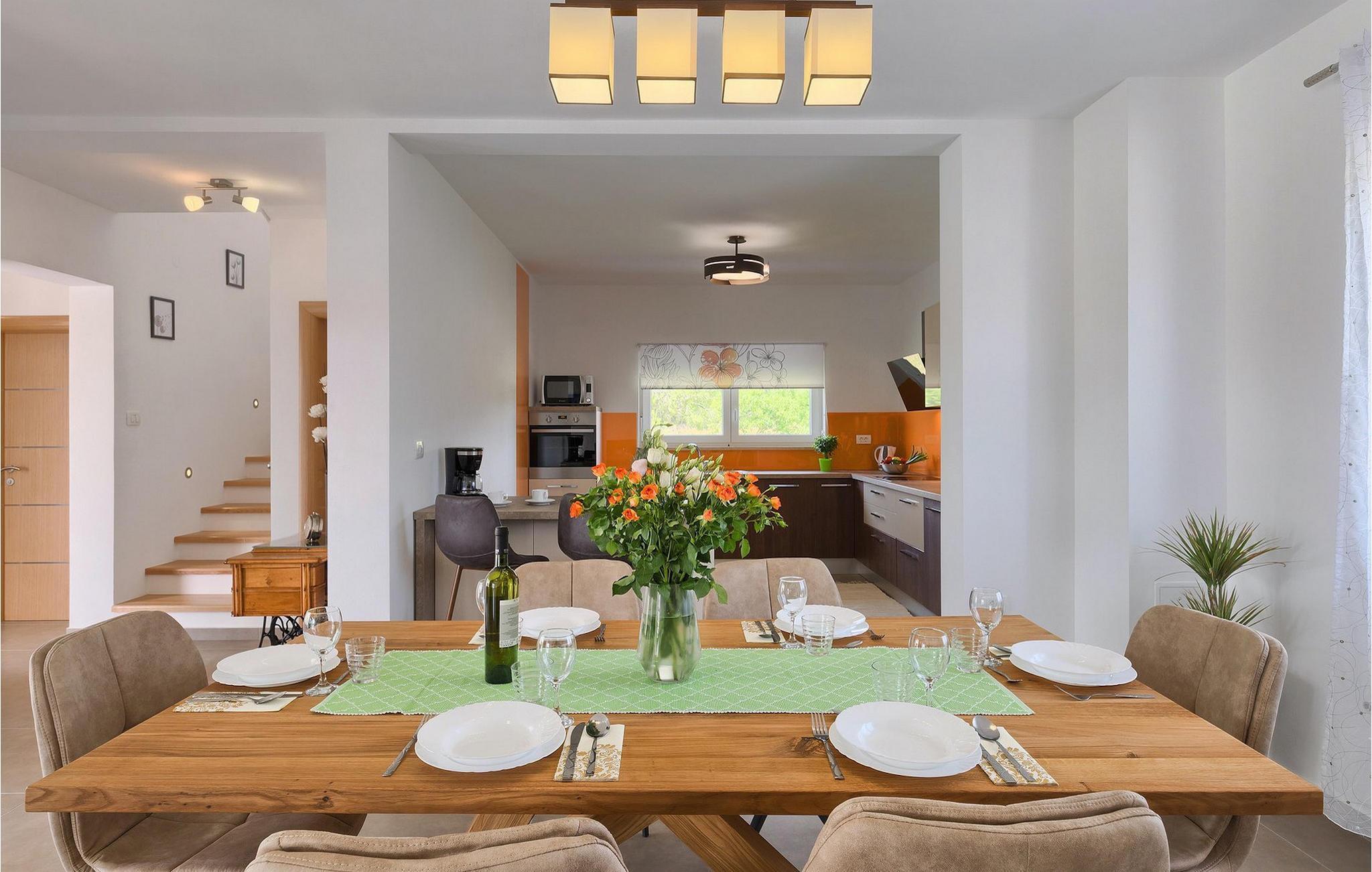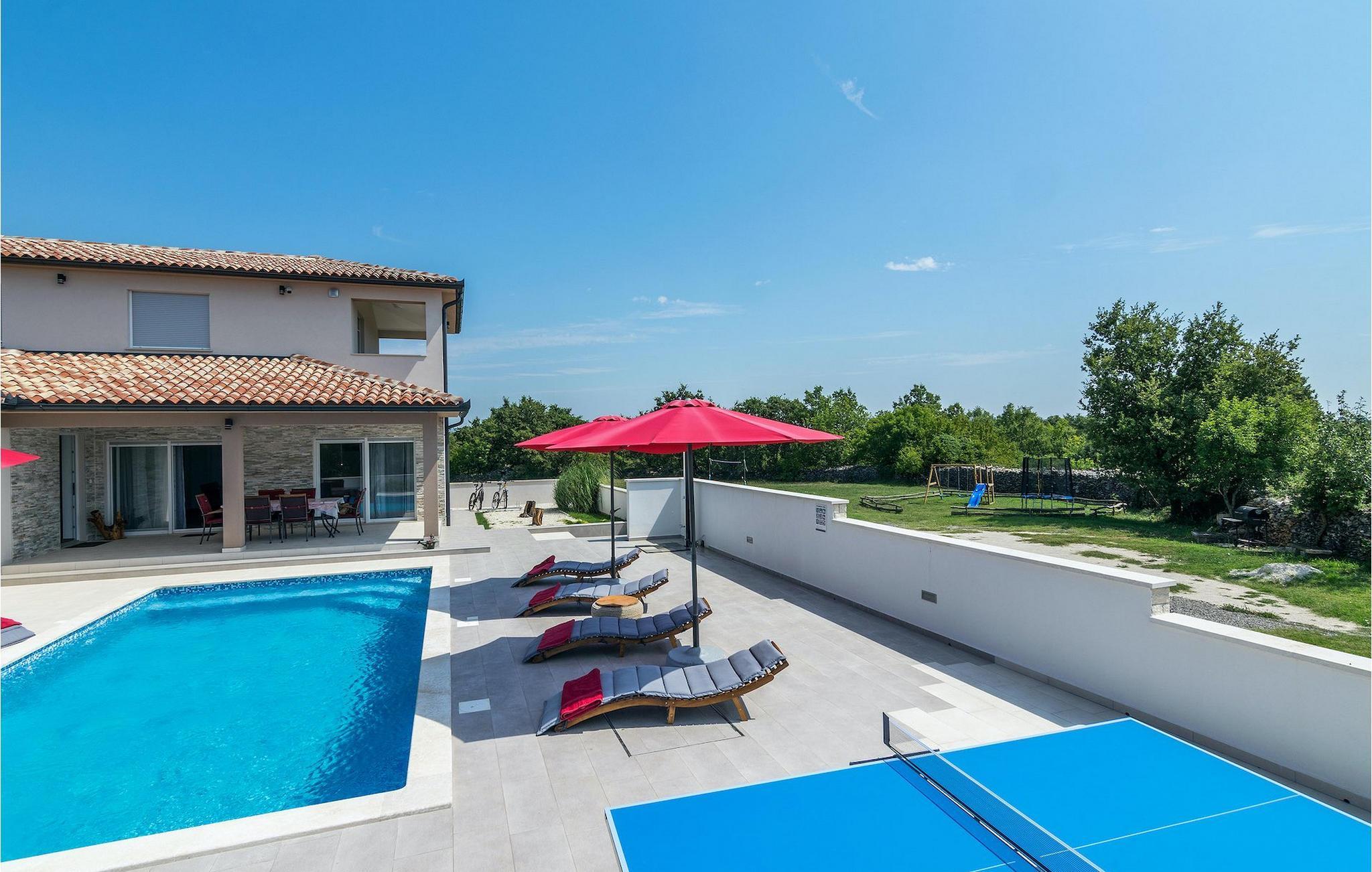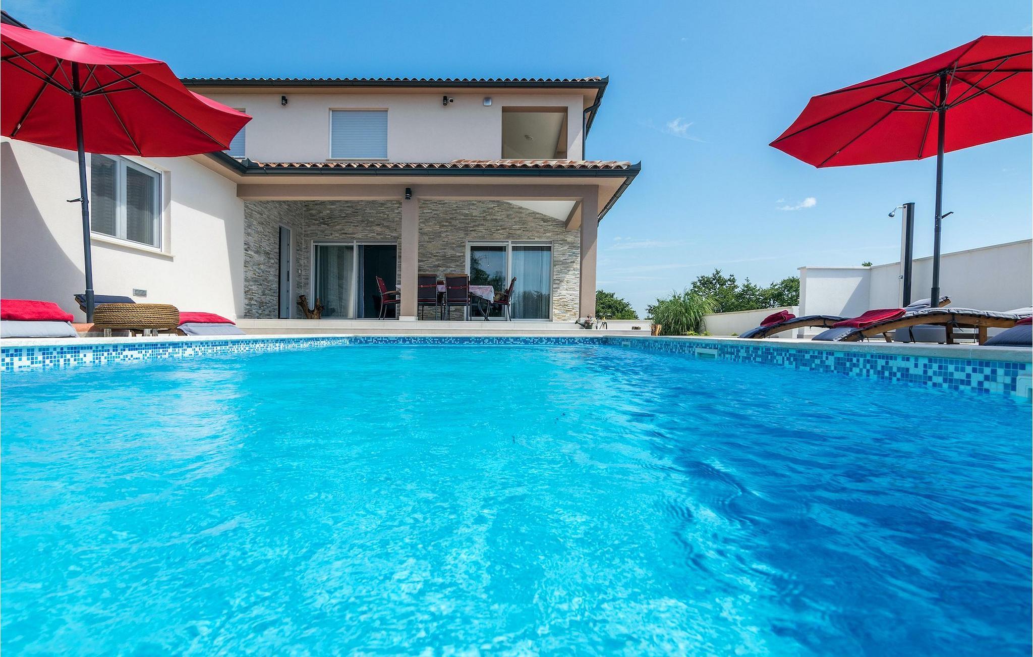 Hvis du ønsker å lage mat og spise utendørs, kan du bruke villaens uteområde med en overbygd spiseplass og grill. For ikke å glemme det innbydende private bassenget med solsenger, som gir sårt tiltrengt forfriskning i de varme sommermånedene. :)Den vakre Villa Lena ligger i en liten landsby i Istria som heter Krvavii. Som de fleste andre landsbyer i Istria er også landsbyen Krvavii omgitt av fantastisk natur, grønne åser og åkrer, noe som gjør beliggenheten ideell for en avslappende ferie. Hvis du er interessert i historiske byer, ligger Pula bare en kort kjøretur unna villaen.