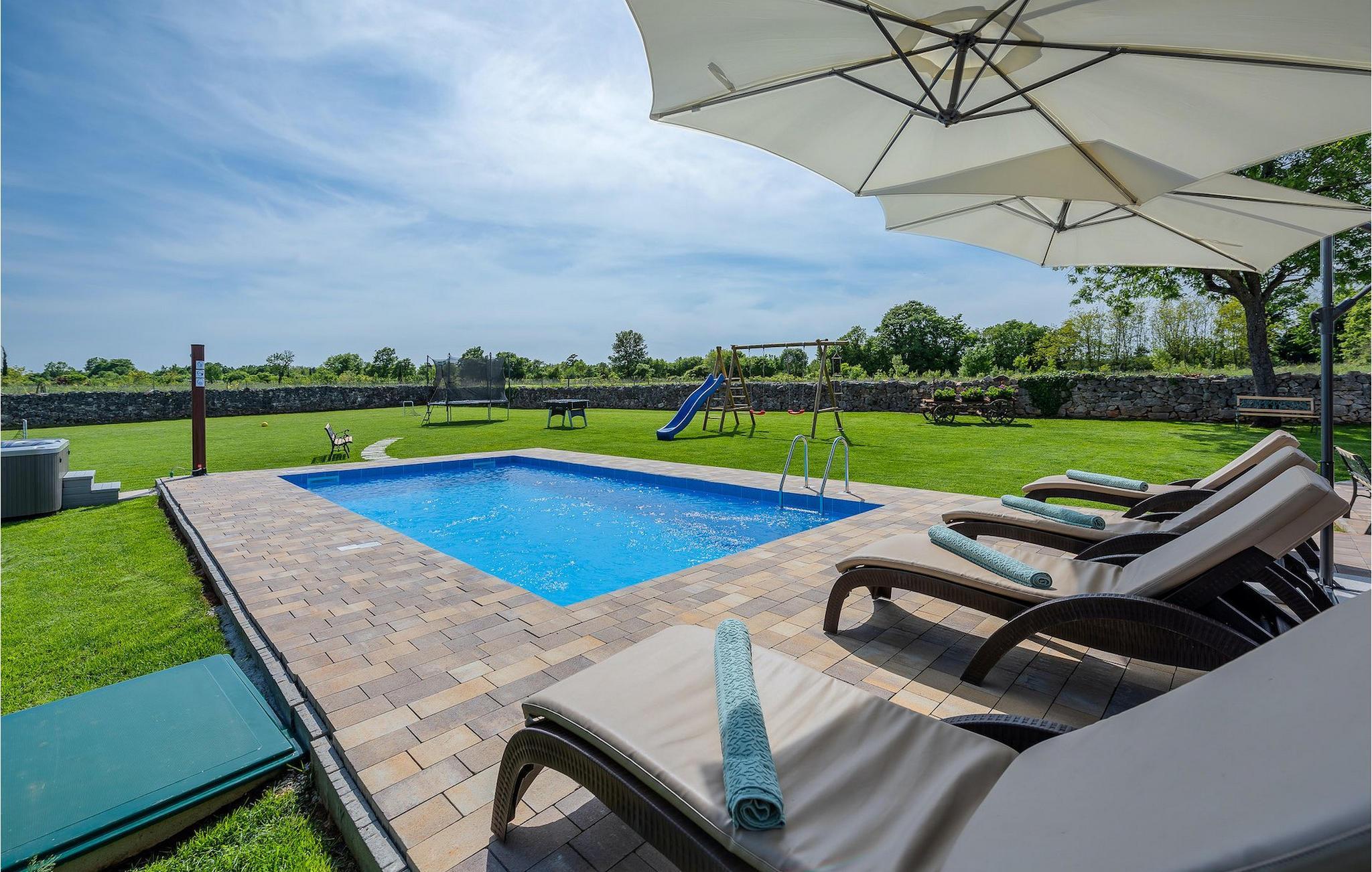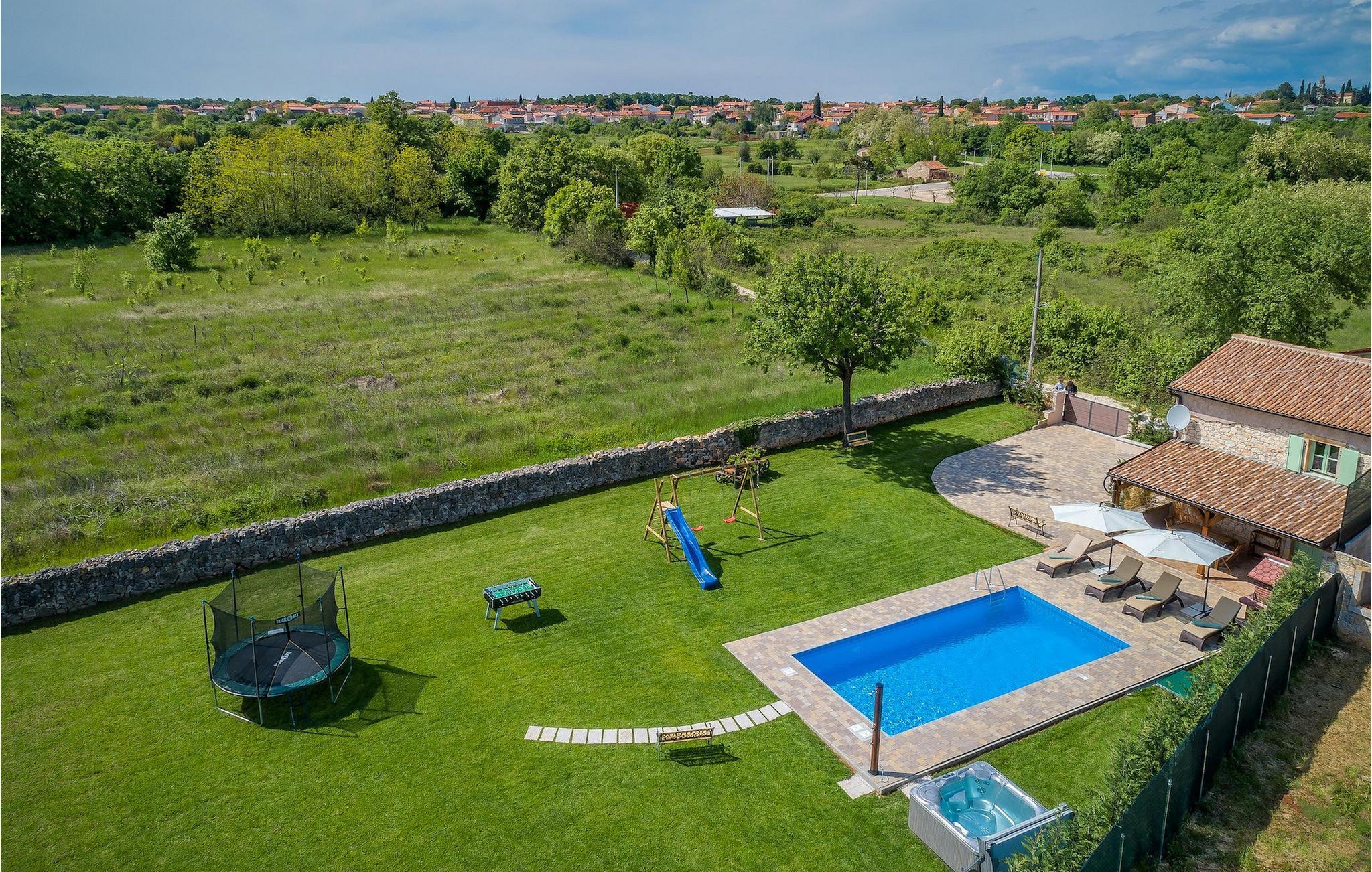 Interiøret er innredet med stor kjærlighet og sans for detaljer og er fordelt på to etasjer. De to koselige soverommene med dobbeltseng og TV ligger i øverste etasje, mens det er plass til ytterligere to personer på sovesofaen i første etasje. Kjøkkenet er fullt utstyrt, og stuen har satellitt-TV og stereoanlegg. Denne villaen vil tilfredsstille alle som ønsker å slappe av på solsengene ved bassenget eller i boblebadet på kjølige kvelder, samt de som liker å ta sykkelen fatt for å utforske omgivelsene eller utfordre seg selv med bordfotball eller dart. Ønsker du å tilbringe en dag på stranden, venter en vakker bukt bare 6 km fra villaen. Den nærmeste lille restauranten ligger 500 meter fra villaen, og du finner et større utvalg av restauranter 6 km unna. Hvis du foretrekker å spise hjemme, er det grill, grillkull og spiseplass på den flotte, overbygde terrassen med utsikt over den vakre, romslige hagen med basseng.Casa Carbonera ligger i nærheten av Marcana. Marcana er en liten landsby og kommune med samme navn i den sørlige delen av Istria, ca. 15 kilometer nord for Pula, Istrias største by. Villaen ligger landlig til, men likevel er det bare noen få kilometer til strendene og feriestedene langs kysten. Den nærmeste stranden er Duga Uvala (ca. 6 km). Det populære feriestedet Medulin og de vakre severdighetene og kulturarrangementene i Pula ligger også i nærheten, og er ideelle for de som er på jakt etter underholdning, restauranter og shoppingmuligheter.
