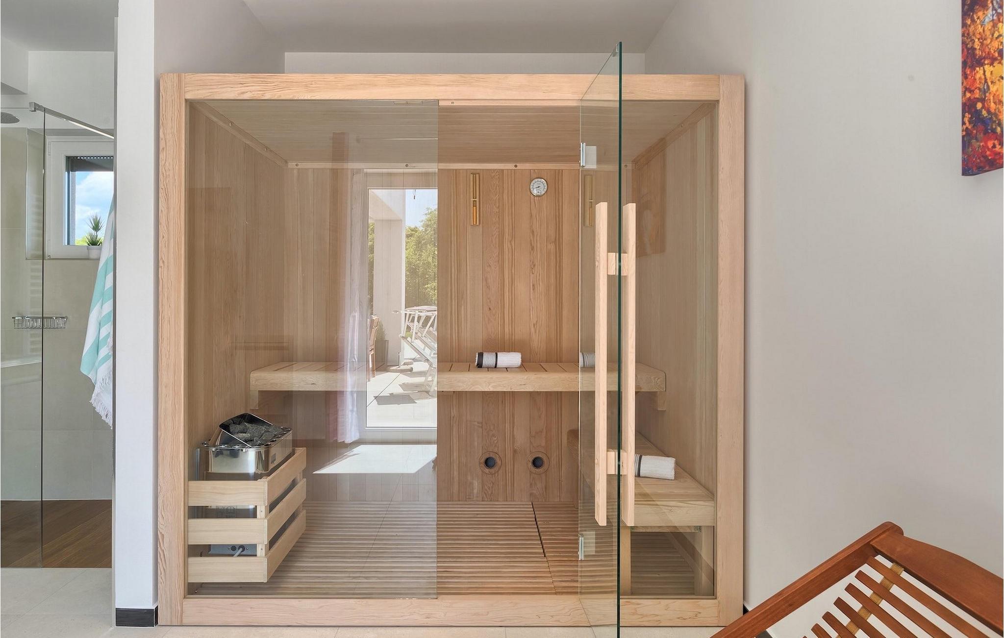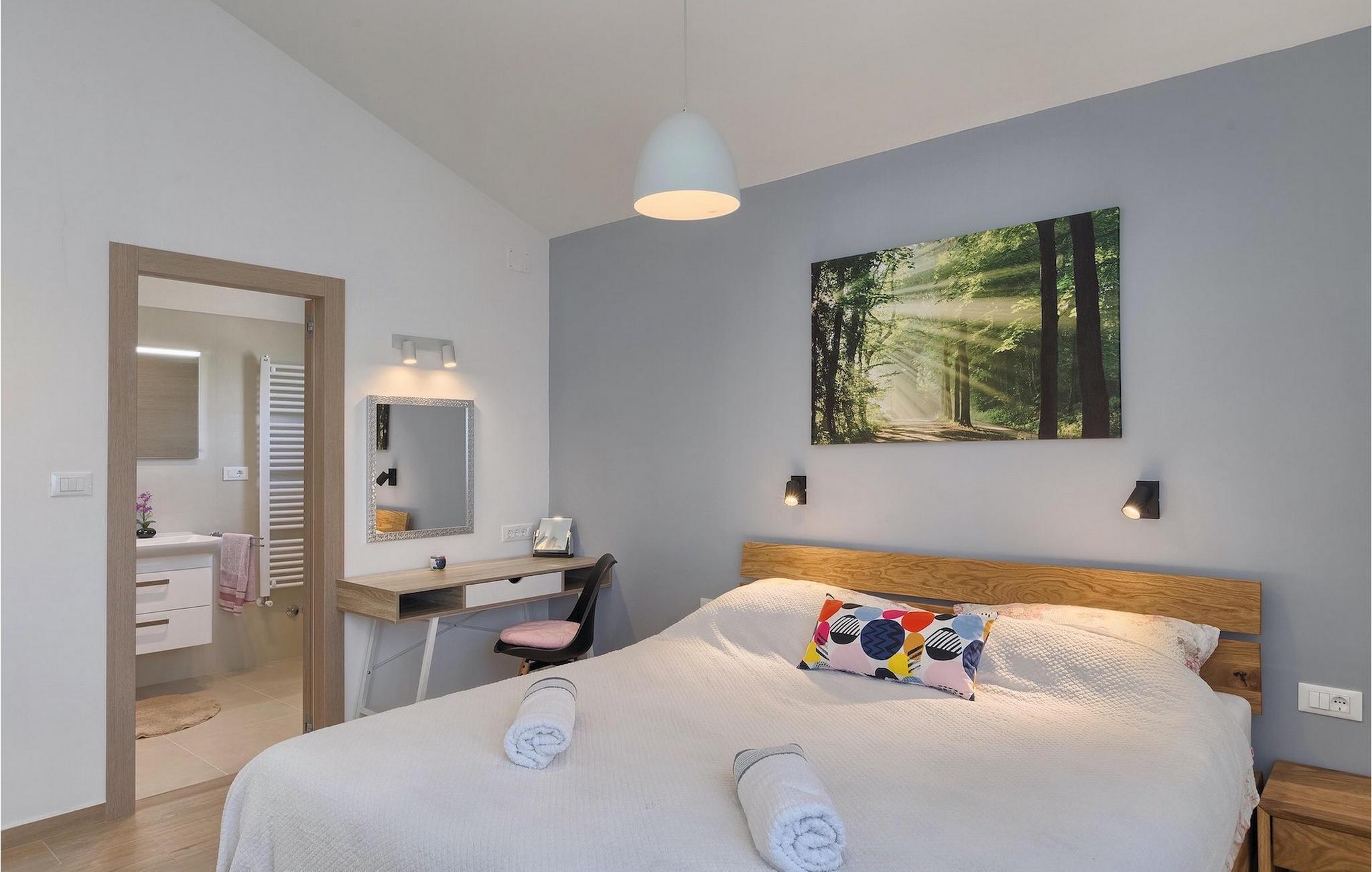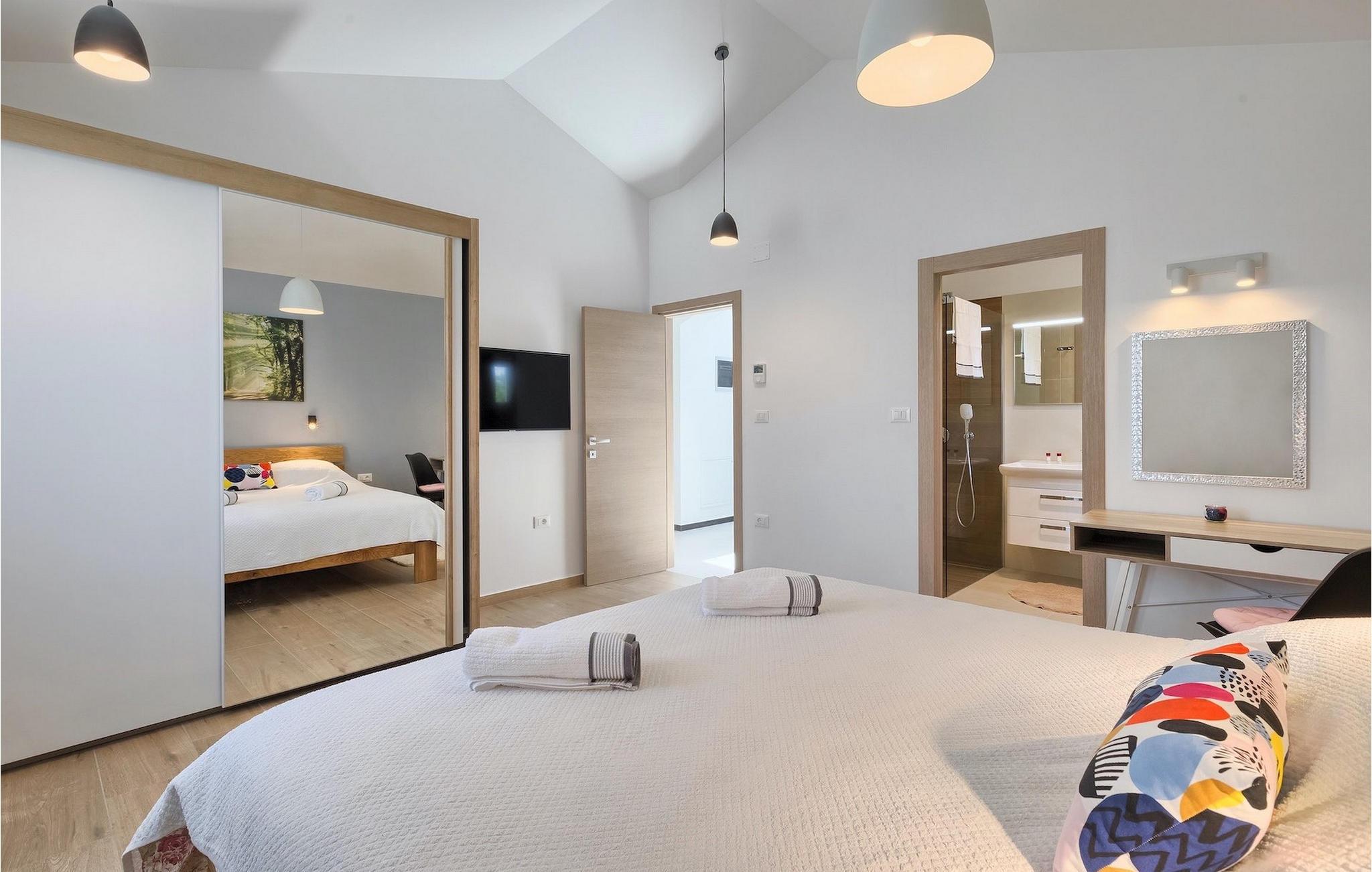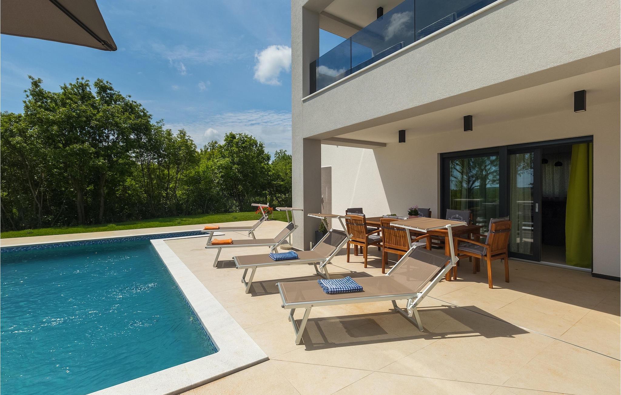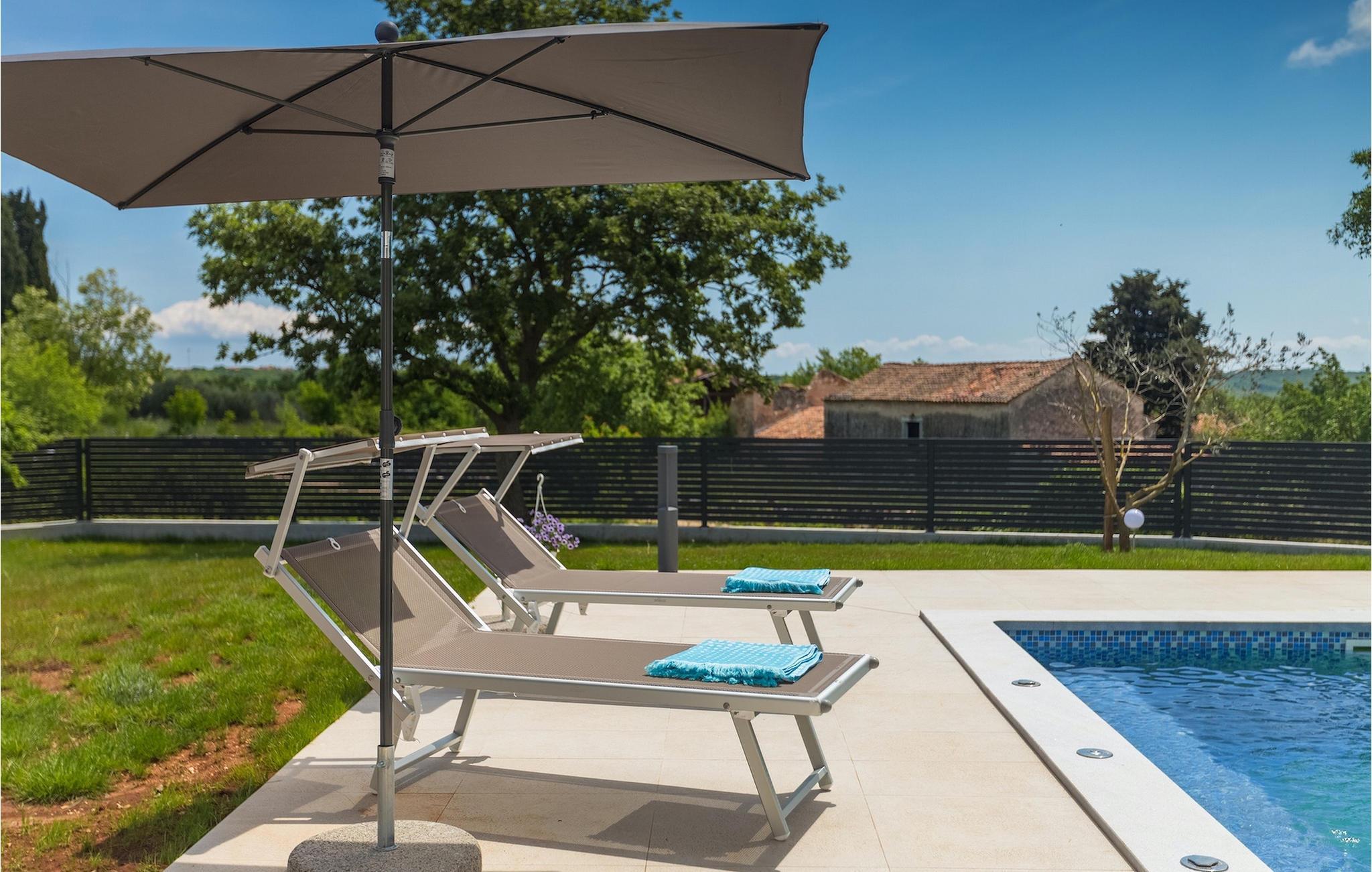 Tenk deg at du kan tilberede favorittrettene dine for familie og venner mens du ser ut over bassenget, og deretter spise sammen i uteserveringen, der grillen også står. Alt dette kan bli virkelighet hvis du bestemmer deg for å tilbringe ferien i Villa Lucas. I første etasje er det et stort, minimalistisk, men moderne, åpent rom for matlaging og bespisning, men som også kan brukes som stue. Det er også et eget rom for avslapning. Badstuen står til din disposisjon for en bekymringsfri ferie. Det moderne designkjøkkenet er fullt utstyrt for kulinariske opplevelser. Alle soverommene har utsikt over den grønne hagen og det avslappende bassengområdet omgitt av solsenger og parasoller. I første etasje er det 3 hyggelige soverom i naturlige, avslappende farger med eget bad. Fra gangen (og fra det ene soverommet) er det utgang til den romslige, delte terrassen med utsikt over Istrias grønne åser og havet i bakgrunnen. Her kan du nyte den første morgenkaffen eller teen mens du soler deg. Villaen er full av nøye utvalgte detaljer og dekorasjoner som vil få deg til å føle deg velkommen under ditt fredelige opphold. På varme dager kan du slappe av i det private bassenget med vannmassasje eller bare nyte solen på en av solsengene.Marcana er en liten by 15 km fra Pula, i den sørøstlige delen av halvøya. Her kan du besøke synkehull og grotter i nærheten. De største grottene er Ljubic- og Peresin-grottene. Her er det funnet rester av stein og keramikk og til og med gamle bein. Disse var sannsynligvis en del av den romerske arven. Området er også kjent for de mange rustikke villaene som ble bygget her på den tiden. Disse eiendommene var kjent for sitt rustikke utseende og interessante steindekorasjoner. Hvis du bestemmer deg for å dra på sightseeing, bør du absolutt besøke den nærliggende byen Pula. Det er Istrias største by, med et vakkert amfiteater, museer og mange barer og restauranter. Pula byr også på en rekke kulturarrangementer (teater, kino, konserter, festivaler) og et livlig uteliv, så du kommer garantert ikke til å kjede deg. Ønsker du å ta en dukkert i det klare, blå havet, ligger de nærmeste strendene bare 10 kilometer unna. Utvalget av strender er stort - noe for enhver smak. Enten du foretrekker rullesteins-, stein- eller sandstrand.