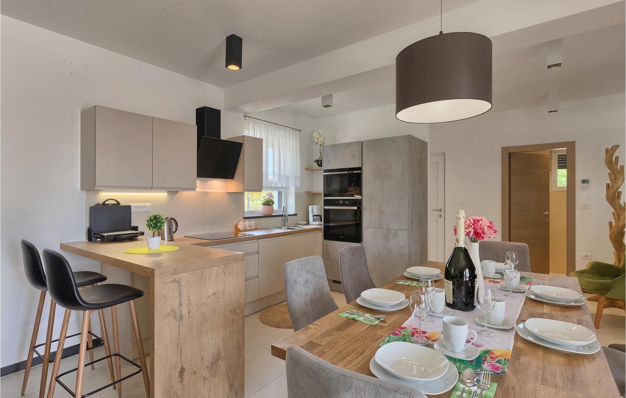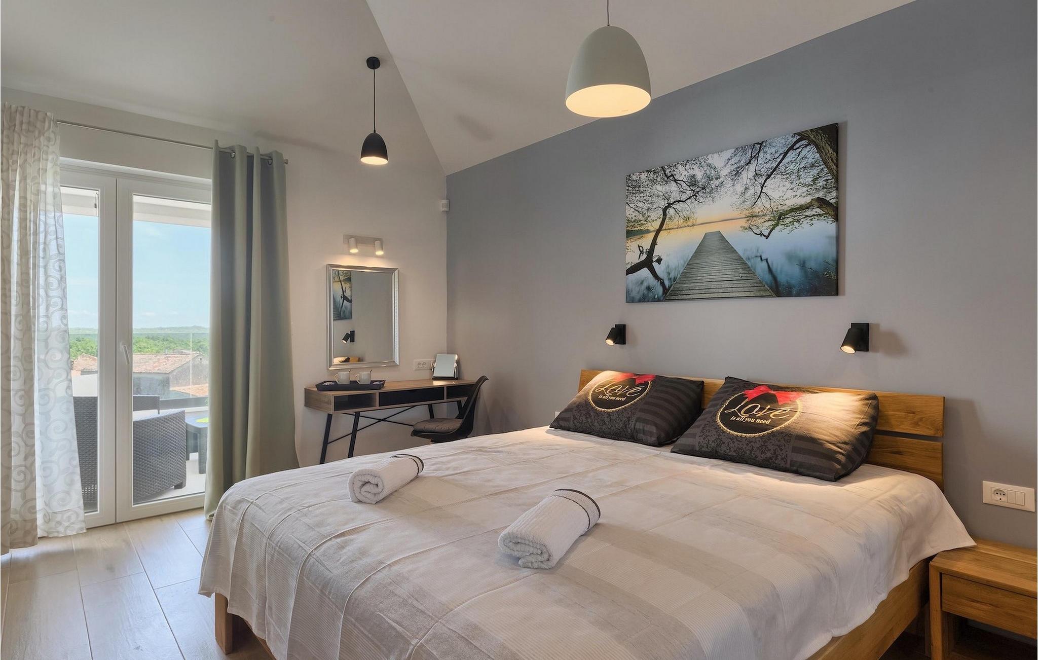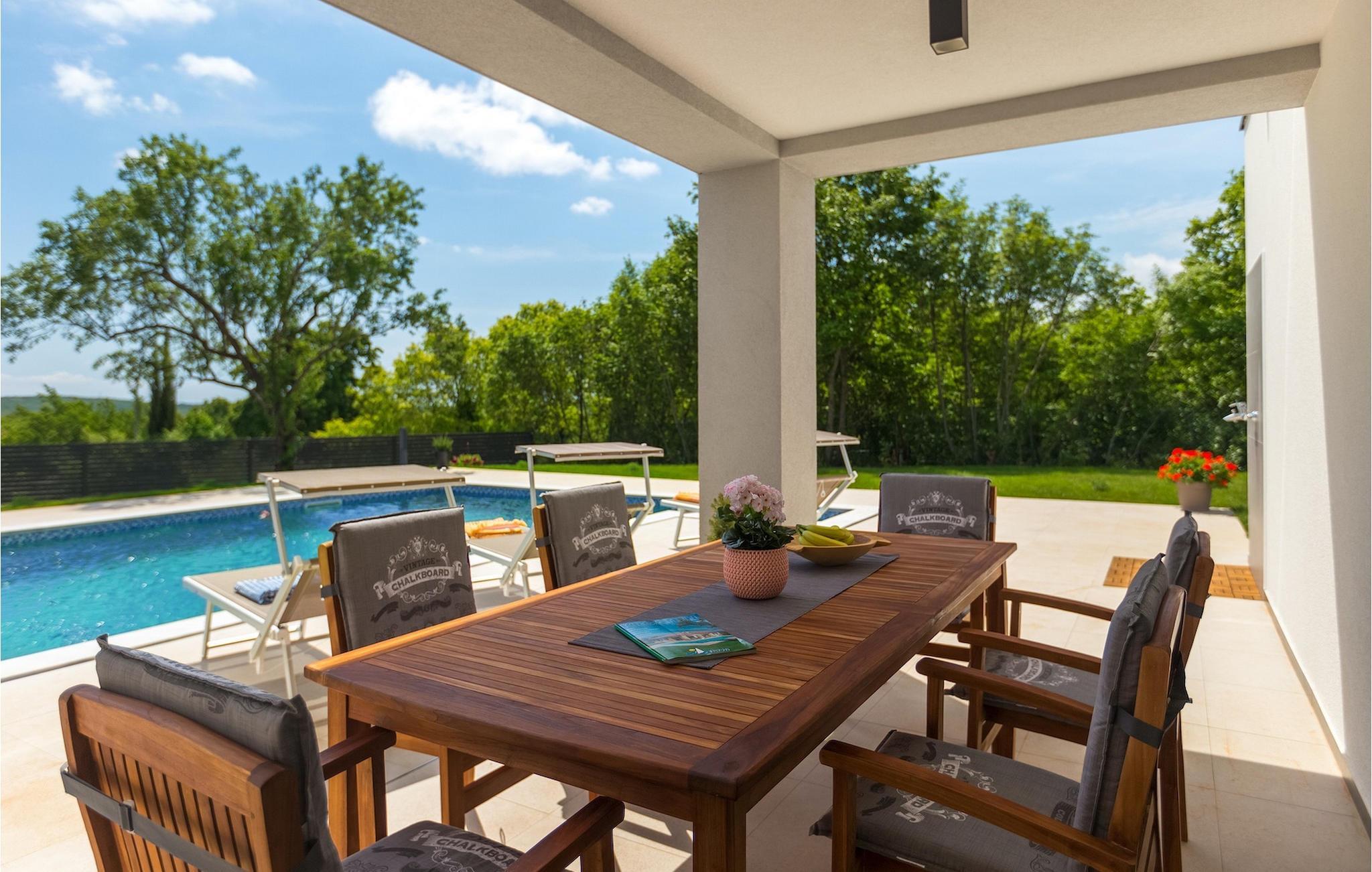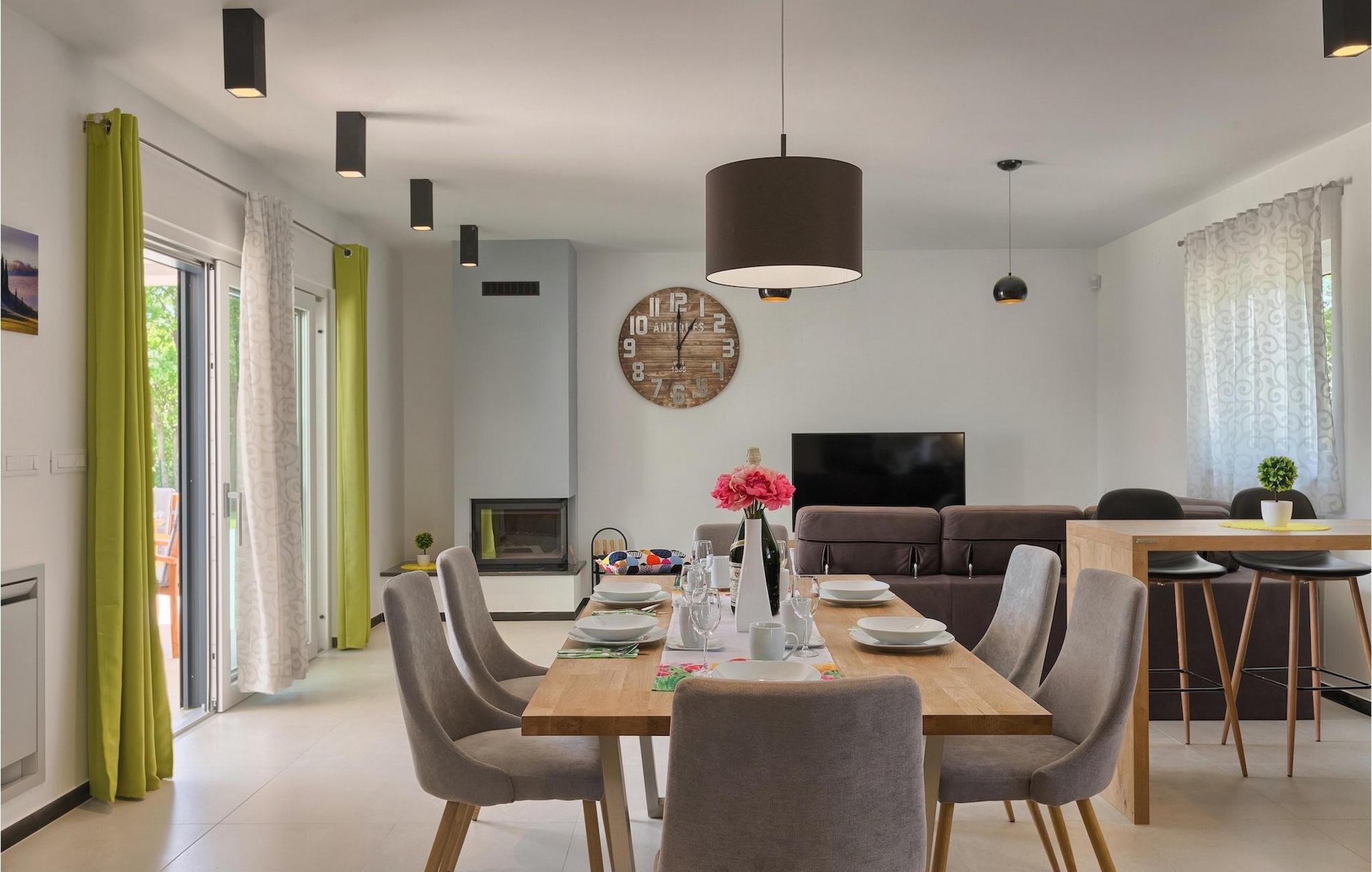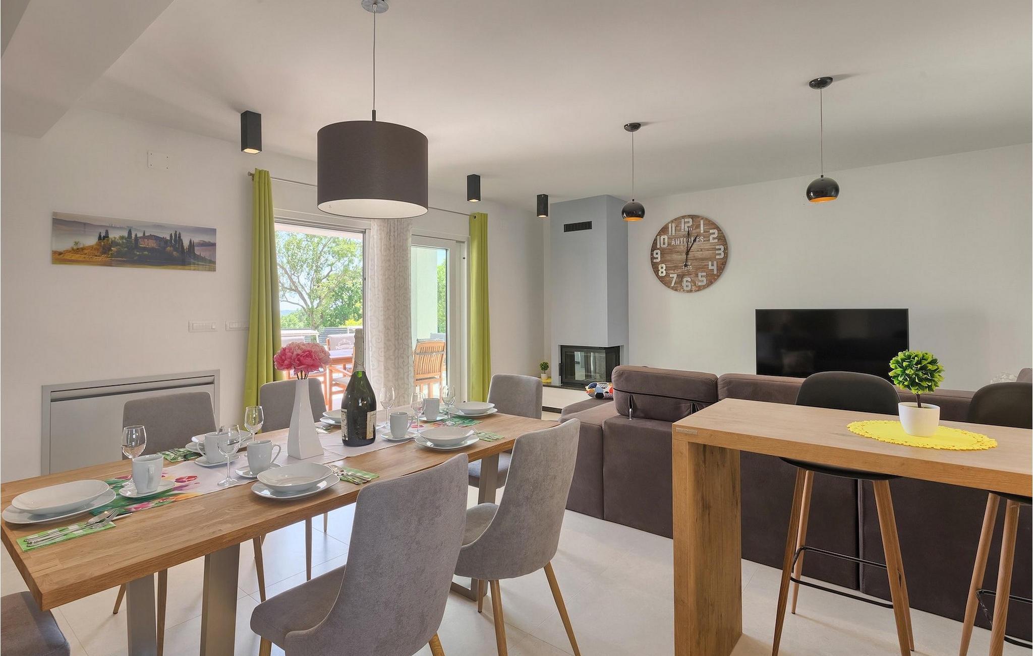 Tenk deg at du kan tilberede favorittrettene dine for familie og venner mens du ser ut over bassenget, og deretter spise sammen i uteserveringen, der grillen også står. Alt dette kan bli virkelighet hvis du bestemmer deg for å tilbringe ferien i Villa Lucas. I første etasje er det et stort, minimalistisk, men moderne, åpent rom for matlaging og bespisning, men som også kan brukes som stue. Det er også et eget rom for avslapning. Badstuen står til din disposisjon for en bekymringsfri ferie. Det moderne designkjøkkenet er fullt utstyrt for kulinariske opplevelser. Alle soverommene har utsikt over den grønne hagen og det avslappende bassengområdet omgitt av solsenger og parasoller. I første etasje er det 3 hyggelige soverom i naturlige, avslappende farger med eget bad. Fra gangen (og fra det ene soverommet) er det utgang til den romslige, delte terrassen med utsikt over Istrias grønne åser og havet i bakgrunnen. Her kan du nyte den første morgenkaffen eller teen mens du soler deg. Villaen er full av nøye utvalgte detaljer og dekorasjoner som vil få deg til å føle deg velkommen under ditt fredelige opphold. På varme dager kan du slappe av i det private bassenget med vannmassasje eller bare nyte solen på en av solsengene.Marcana er en liten by 15 km fra Pula, i den sørøstlige delen av halvøya. Her kan du besøke synkehull og grotter i nærheten. De største grottene er Ljubic- og Peresin-grottene. Her er det funnet rester av stein og keramikk og til og med gamle bein. Disse var sannsynligvis en del av den romerske arven. Området er også kjent for de mange rustikke villaene som ble bygget her på den tiden. Disse eiendommene var kjent for sitt rustikke utseende og interessante steindekorasjoner. Hvis du bestemmer deg for å dra på sightseeing, bør du absolutt besøke den nærliggende byen Pula. Det er Istrias største by, med et vakkert amfiteater, museer og mange barer og restauranter. Pula byr også på en rekke kulturarrangementer (teater, kino, konserter, festivaler) og et livlig uteliv, så du kommer garantert ikke til å kjede deg. Ønsker du å ta en dukkert i det klare, blå havet, ligger de nærmeste strendene bare 10 kilometer unna. Utvalget av strender er stort - noe for enhver smak. Enten du foretrekker rullesteins-, stein- eller sandstrand.