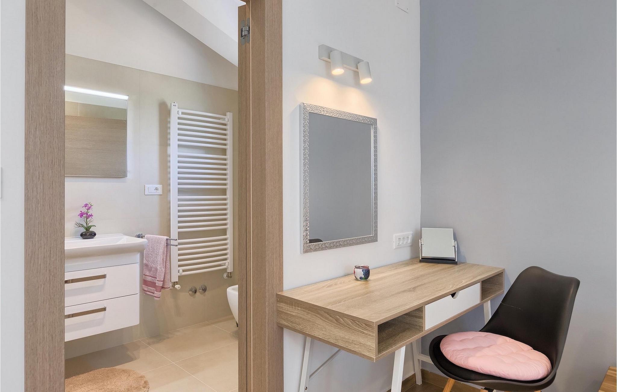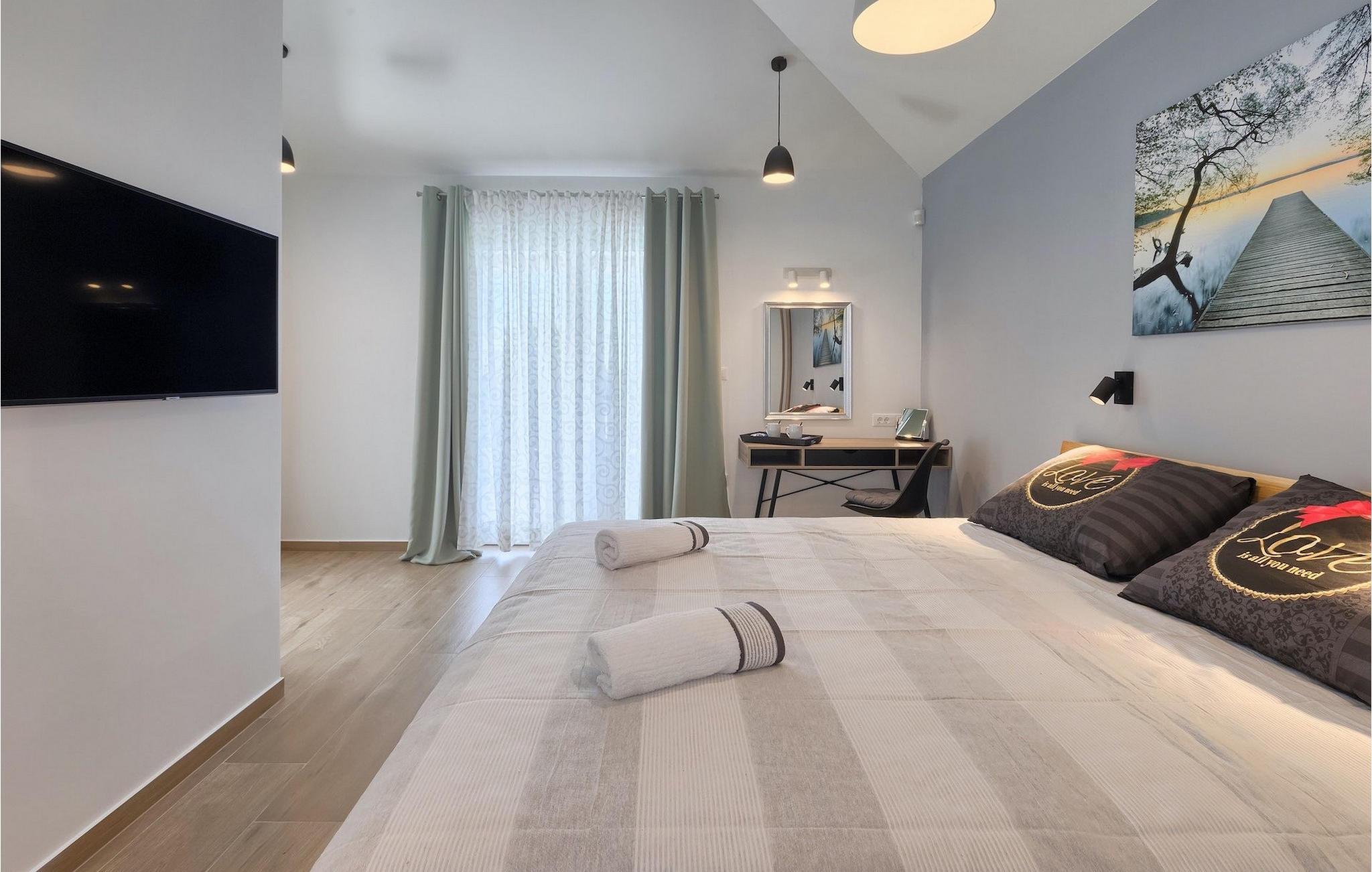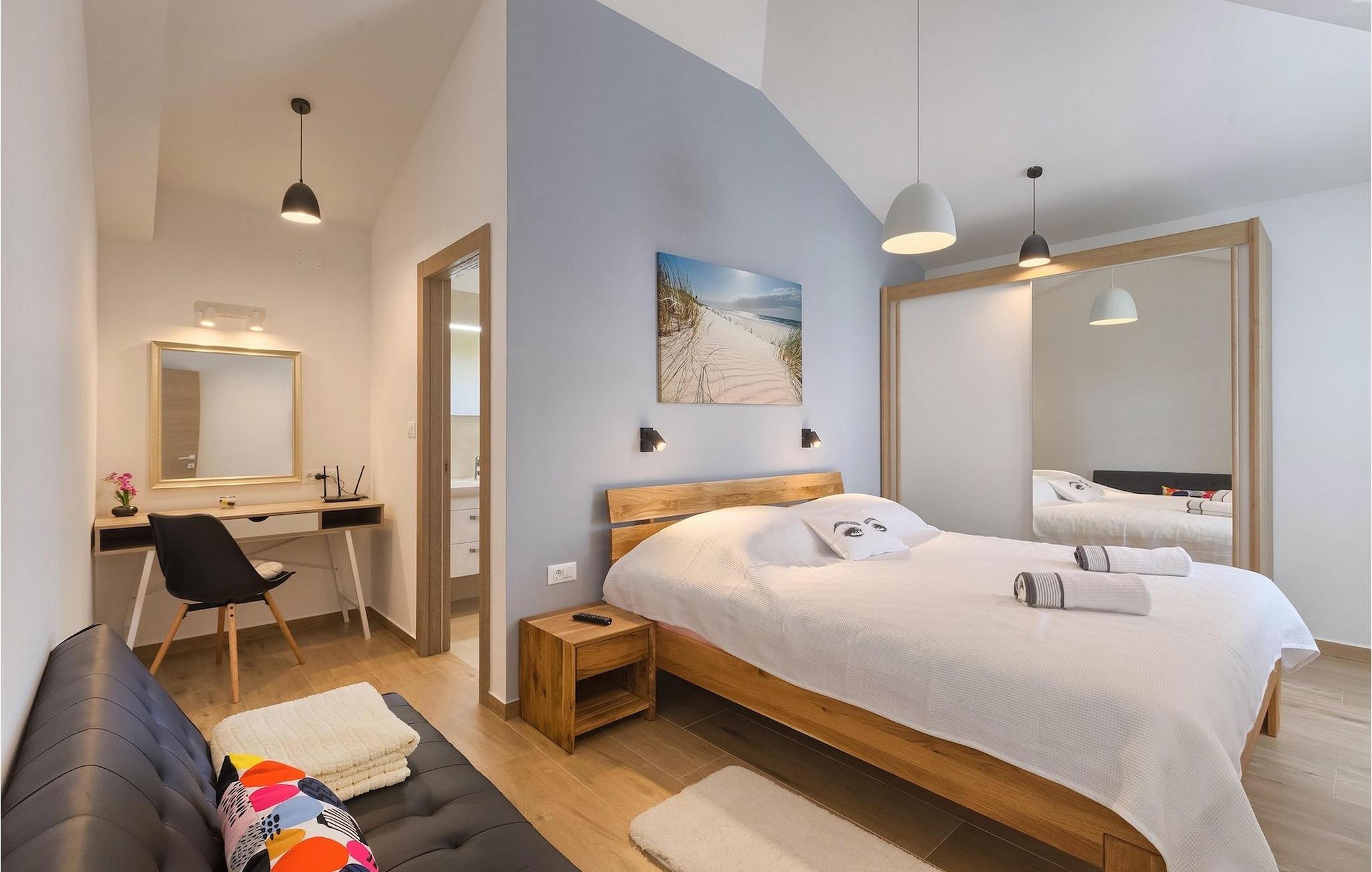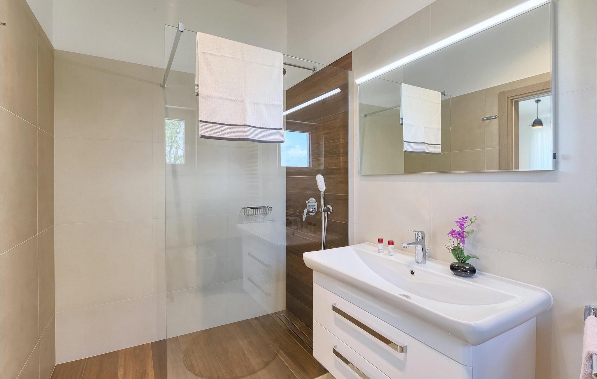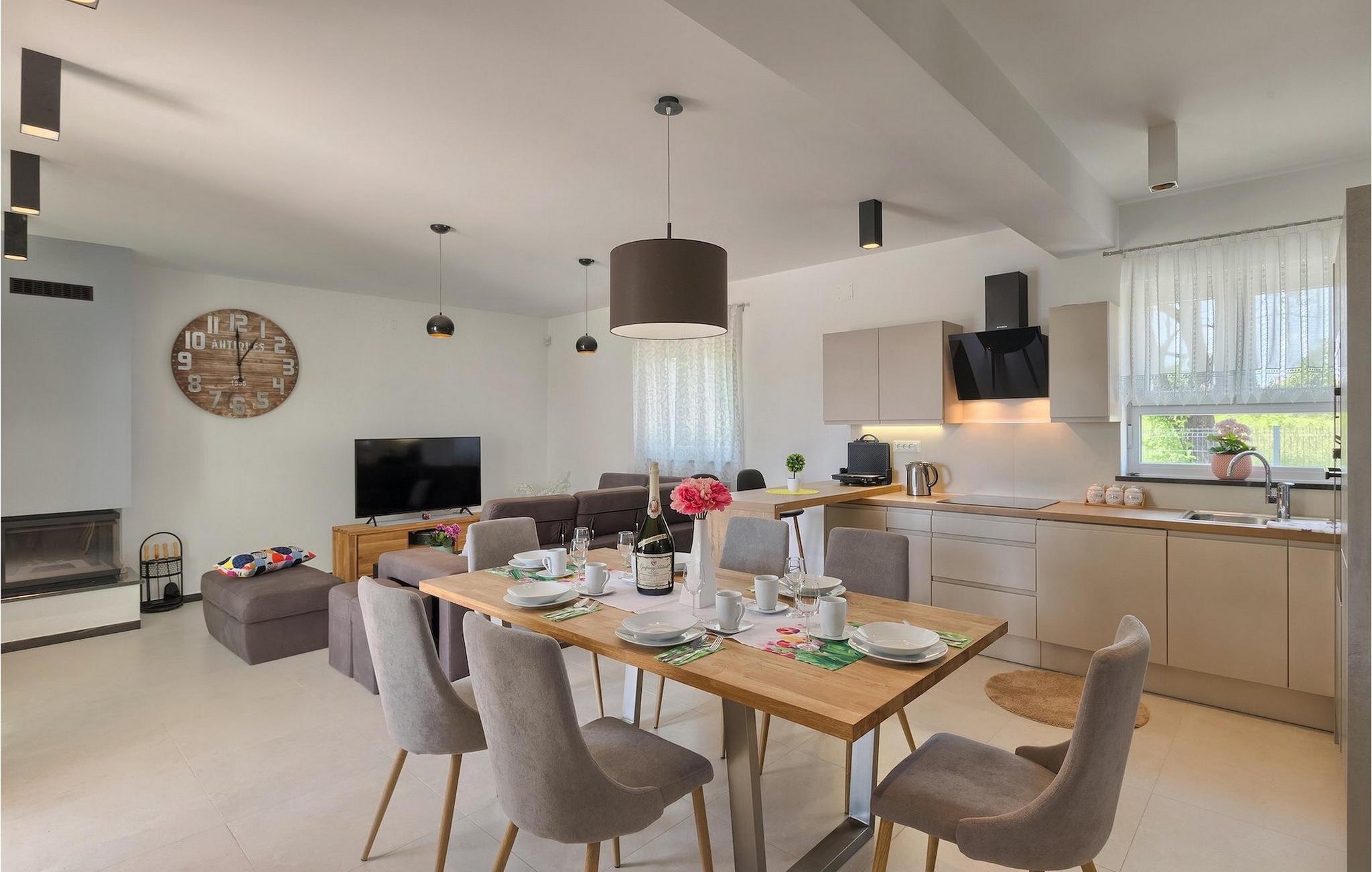 Tenk deg at du kan tilberede favorittrettene dine for familie og venner mens du ser ut over bassenget, og deretter spise sammen i uteserveringen, der grillen også står. Alt dette kan bli virkelighet hvis du bestemmer deg for å tilbringe ferien i Villa Lucas. I første etasje er det et stort, minimalistisk, men moderne, åpent rom for matlaging og bespisning, men som også kan brukes som stue. Det er også et eget rom for avslapning. Badstuen står til din disposisjon for en bekymringsfri ferie. Det moderne designkjøkkenet er fullt utstyrt for kulinariske opplevelser. Alle soverommene har utsikt over den grønne hagen og det avslappende bassengområdet omgitt av solsenger og parasoller. I første etasje er det 3 hyggelige soverom i naturlige, avslappende farger med eget bad. Fra gangen (og fra det ene soverommet) er det utgang til den romslige, delte terrassen med utsikt over Istrias grønne åser og havet i bakgrunnen. Her kan du nyte den første morgenkaffen eller teen mens du soler deg. Villaen er full av nøye utvalgte detaljer og dekorasjoner som vil få deg til å føle deg velkommen under ditt fredelige opphold. På varme dager kan du slappe av i det private bassenget med vannmassasje eller bare nyte solen på en av solsengene.Marcana er en liten by 15 km fra Pula, i den sørøstlige delen av halvøya. Her kan du besøke synkehull og grotter i nærheten. De største grottene er Ljubic- og Peresin-grottene. Her er det funnet rester av stein og keramikk og til og med gamle bein. Disse var sannsynligvis en del av den romerske arven. Området er også kjent for de mange rustikke villaene som ble bygget her på den tiden. Disse eiendommene var kjent for sitt rustikke utseende og interessante steindekorasjoner. Hvis du bestemmer deg for å dra på sightseeing, bør du absolutt besøke den nærliggende byen Pula. Det er Istrias største by, med et vakkert amfiteater, museer og mange barer og restauranter. Pula byr også på en rekke kulturarrangementer (teater, kino, konserter, festivaler) og et livlig uteliv, så du kommer garantert ikke til å kjede deg. Ønsker du å ta en dukkert i det klare, blå havet, ligger de nærmeste strendene bare 10 kilometer unna. Utvalget av strender er stort - noe for enhver smak. Enten du foretrekker rullesteins-, stein- eller sandstrand.