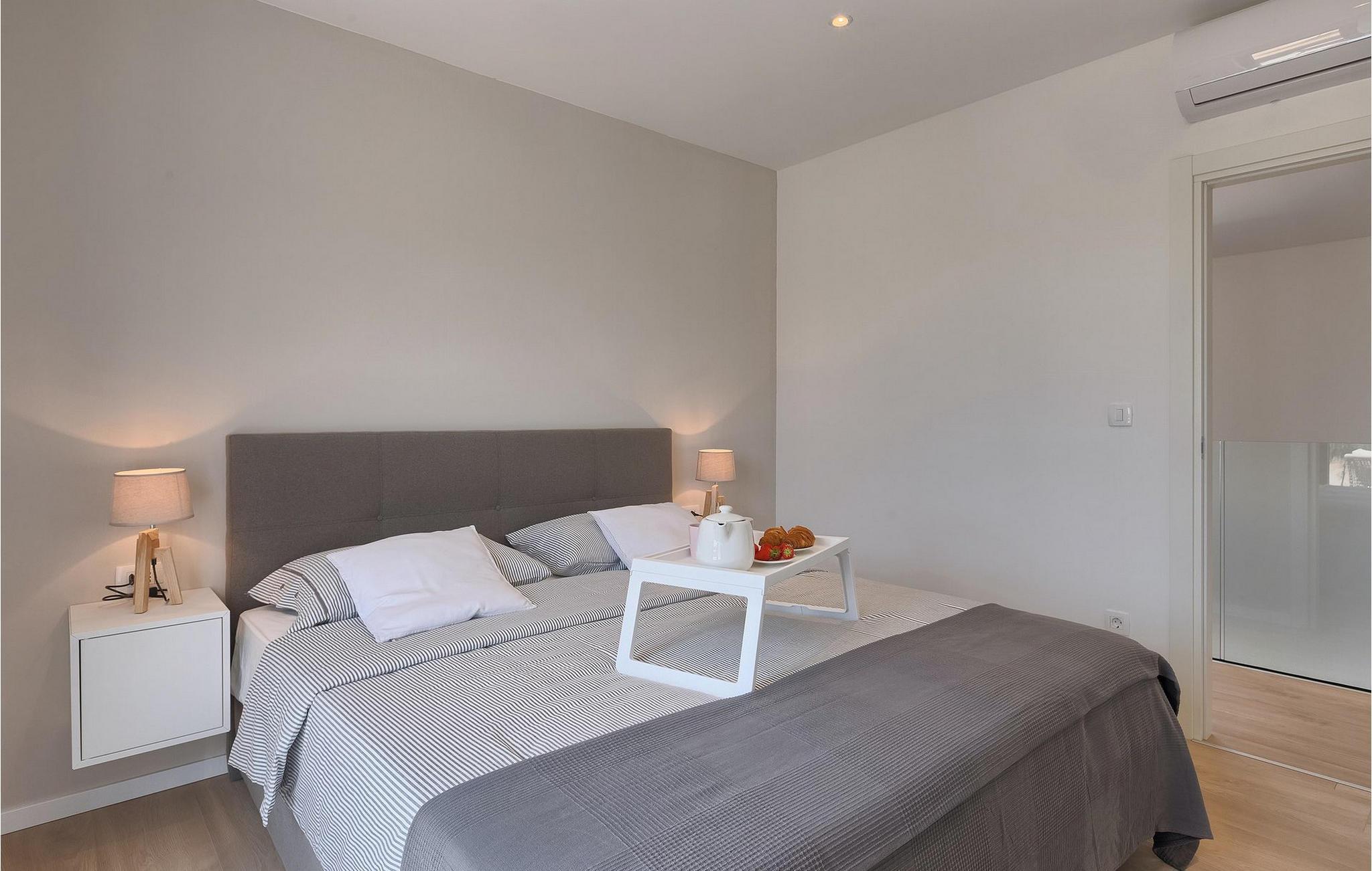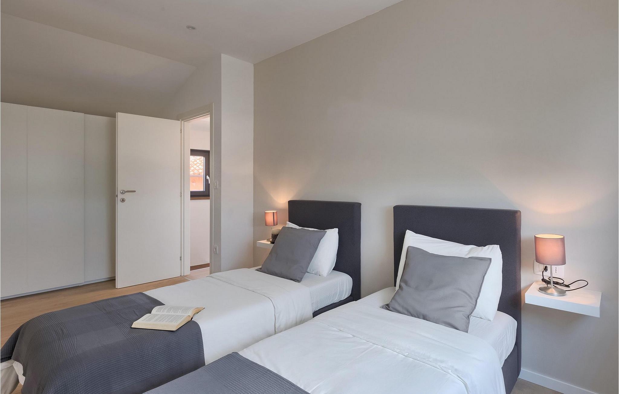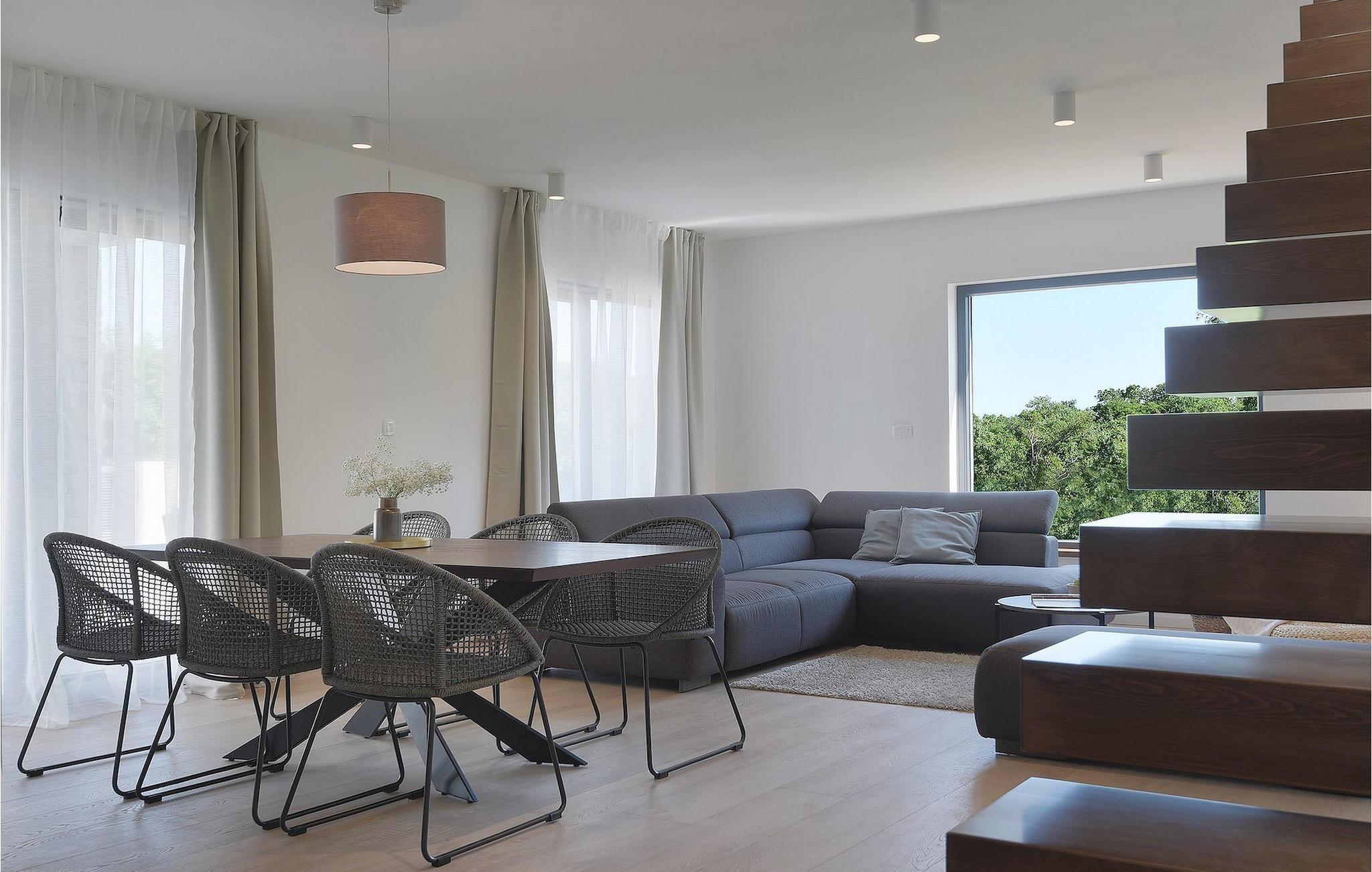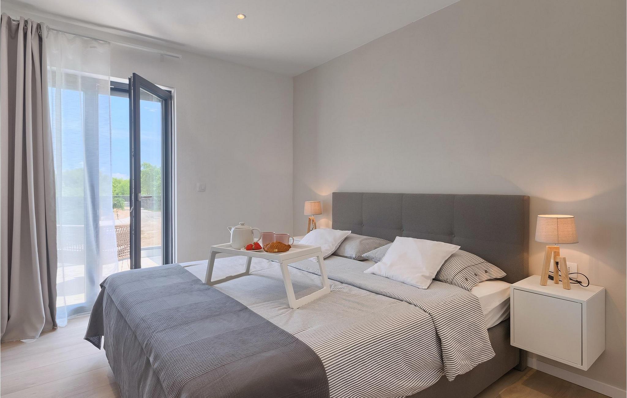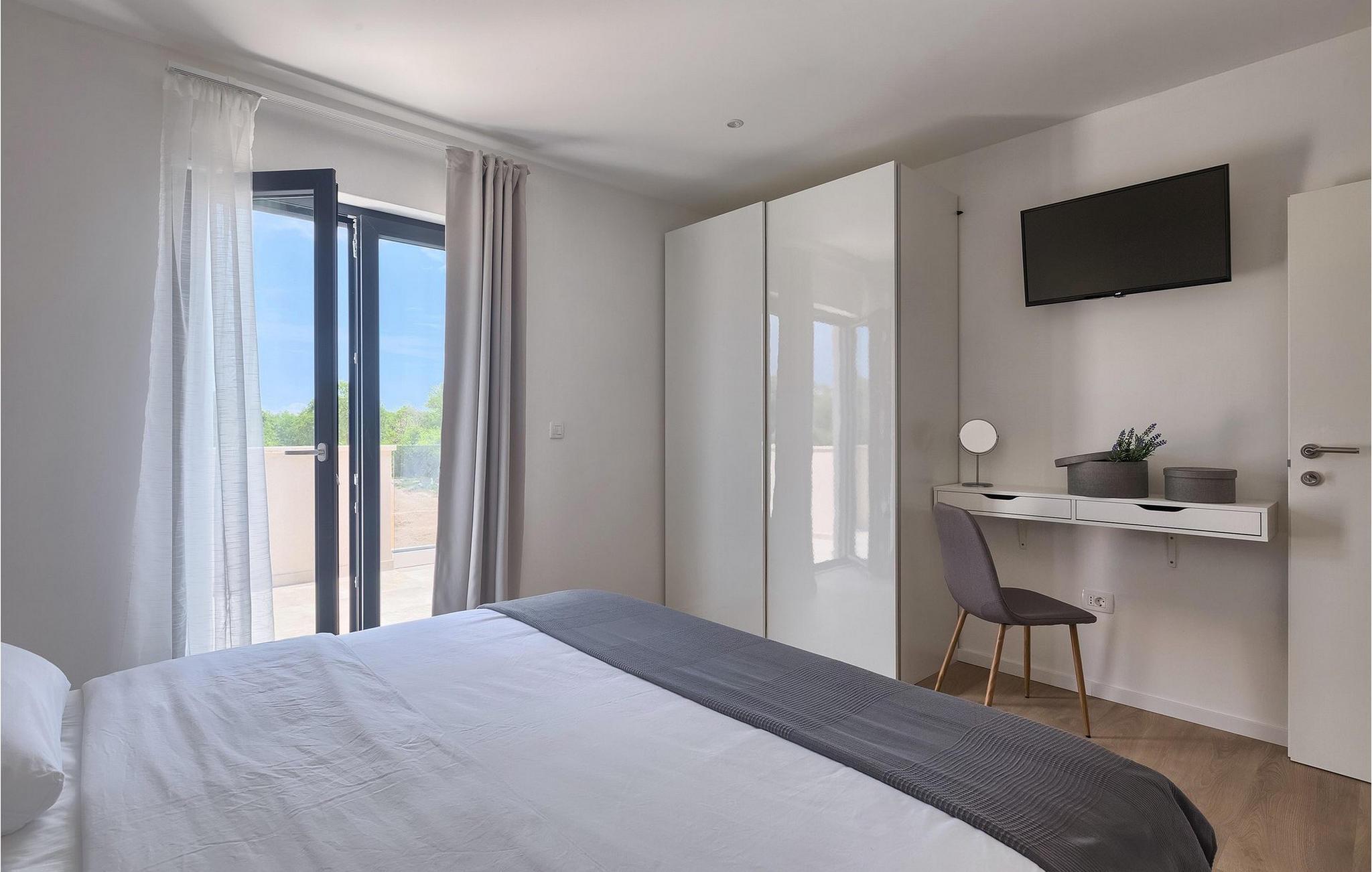 Den fantastiske Villa Omnia ligger i den lille landsbyen Loborika i nærheten av Pula. Villaen er en arkitektonisk perle i åpent landskap og er en flott base for en uforglemmelig sommerferie. Villaen har plass til opptil 6 personer i 3 komfortable soverom. Ett av soverommene har 2 enkeltsenger som kan settes sammen, mens de to andre soverommene har en dobbeltseng hver. Alle soverommene ligger i første etasje, mens første etasje er reservert for oppholdsrommet. Der finner du et lyst, moderne kjøkken, hvorfra du har tilgang til spisestuen og til slutt stuen, hvor du kan slappe av. Uteområdet er utsmykket med det vakre bassenget, som bare innbyr til å hoppe uti og forfriske seg på varme sommerdager. Salongområdet og utekjøkkenet tilbyr ekstra skygge og er det perfekte stedet å gjemme seg for solen. Villaen har også to husker, en sklie og en trampoline, slik at de minste også kan nyte oppholdet i Villa Omnia. Villaen har privat parkering for opptil 3 biler, gratis Wi-Fi og klimaanlegg. Villa Omnia ligger en kort kjøretur fra Pula. Pula er Istrias turistsentrum, både kulturelt og tradisjonelt, men også på grunn av det vakre naturlandskapet. Byen Pula opplevde sin storhetstid i romertiden. Romerne satte sitt preg på byen, spesielt det vakre amfiteateret. I venetiansk tid utviklet Pula seg til å bli Adriaterhavets kontrollsenter