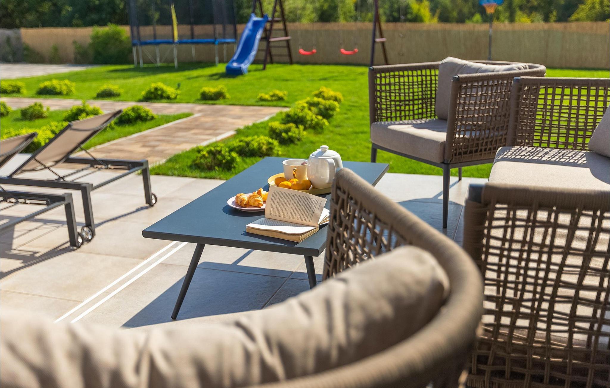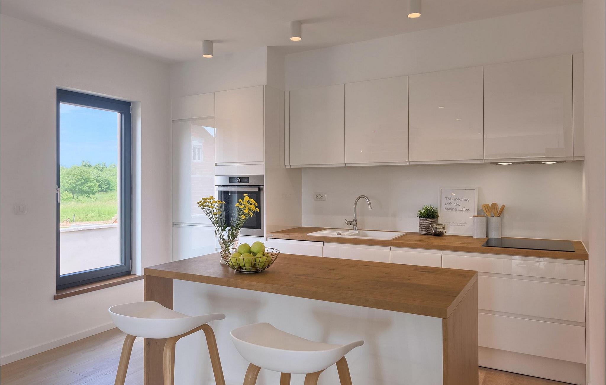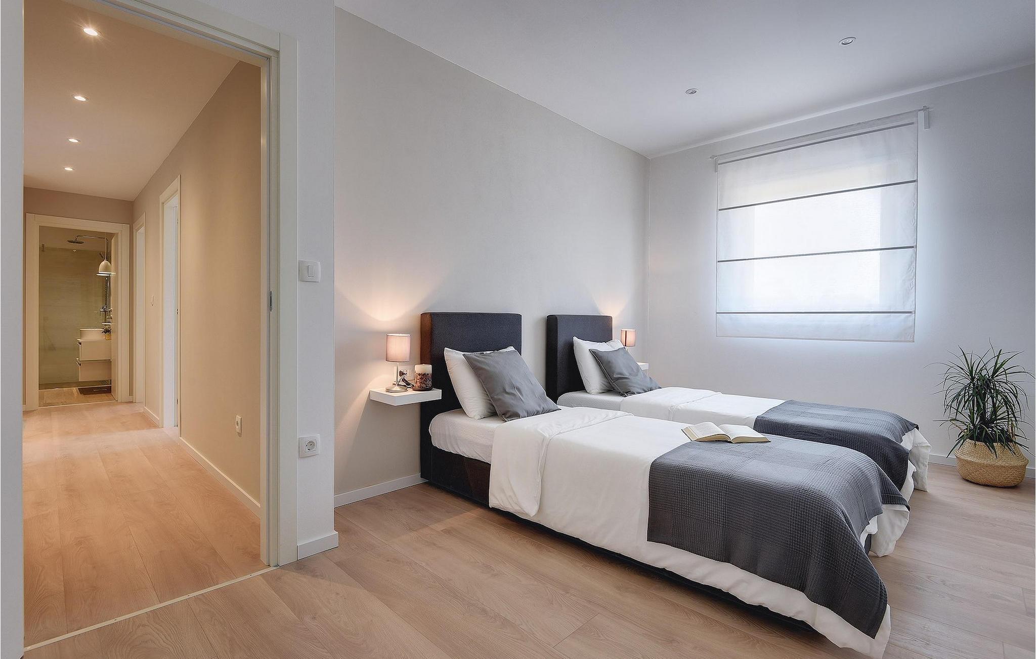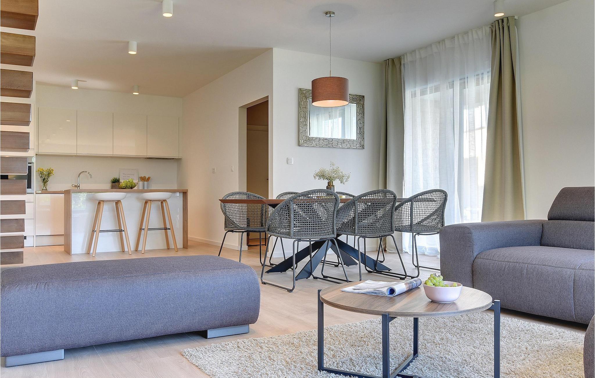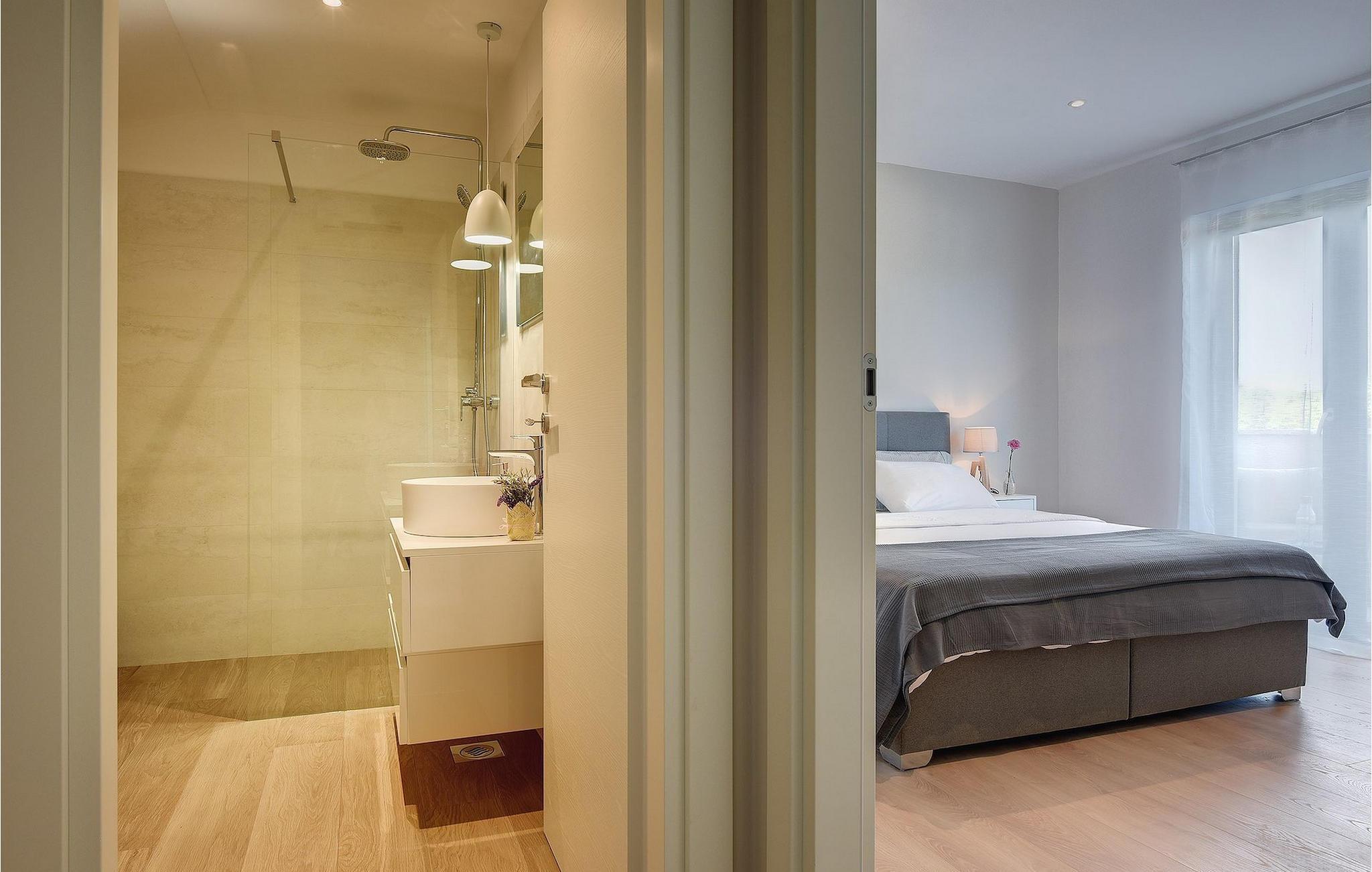 Den fantastiske Villa Omnia ligger i den lille landsbyen Loborika i nærheten av Pula. Villaen er en arkitektonisk perle i åpent landskap og er en flott base for en uforglemmelig sommerferie. Villaen har plass til opptil 6 personer i 3 komfortable soverom. Ett av soverommene har 2 enkeltsenger som kan settes sammen, mens de to andre soverommene har en dobbeltseng hver. Alle soverommene ligger i første etasje, mens første etasje er reservert for oppholdsrommet. Der finner du et lyst, moderne kjøkken, hvorfra du har tilgang til spisestuen og til slutt stuen, hvor du kan slappe av. Uteområdet er utsmykket med det vakre bassenget, som bare innbyr til å hoppe uti og forfriske seg på varme sommerdager. Salongområdet og utekjøkkenet tilbyr ekstra skygge og er det perfekte stedet å gjemme seg for solen. Villaen har også to husker, en sklie og en trampoline, slik at de minste også kan nyte oppholdet i Villa Omnia. Villaen har privat parkering for opptil 3 biler, gratis Wi-Fi og klimaanlegg. Villa Omnia ligger en kort kjøretur fra Pula. Pula er Istrias turistsentrum, både kulturelt og tradisjonelt, men også på grunn av det vakre naturlandskapet. Byen Pula opplevde sin storhetstid i romertiden. Romerne satte sitt preg på byen, spesielt det vakre amfiteateret. I venetiansk tid utviklet Pula seg til å bli Adriaterhavets kontrollsenter