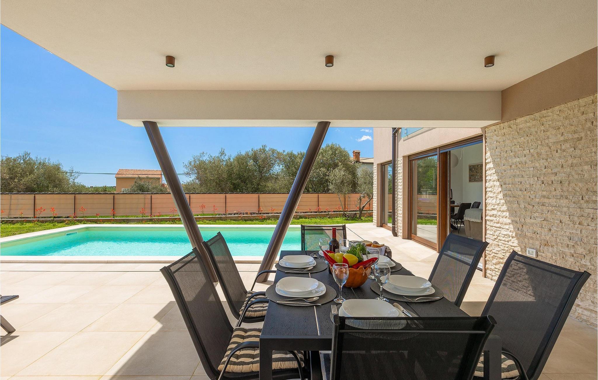 Villaen er fullstendig inngjerdet og har et innbydende privat basseng. Tenk deg å ta en forfriskende drink og slappe av ved bassenget med vakker musikk i bakgrunnen - bedre kan det ikke bli. Om kvelden kan du bruke den elektriske grillen og spise utendørs under den overbygde spiseplassen.