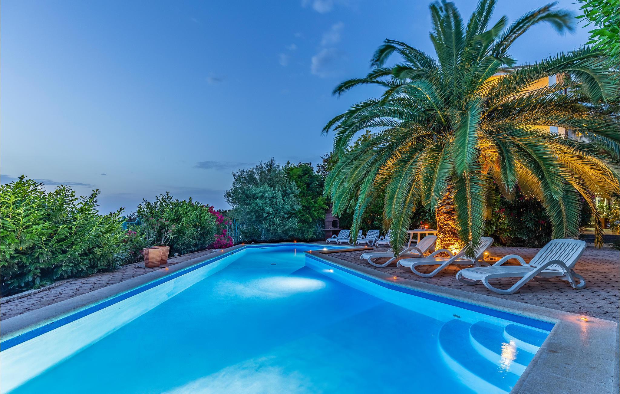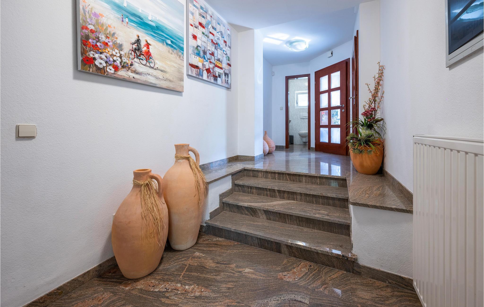 På en høyde i Pjescana Uvala, et pittoresk feriested bare 3 km fra den romerske byen Pula, finner du denne drømmeaktige villaen med flere ferieleiligheter. Alle leilighetene har smakfulle møbler og balkonger. Fra balkongen har nesten alle leilighetene panoramautsikt over omgivelsene og kysten. CIP136 ligger i første etasje. Den er veldig romslig og komfortabel og har 3 soverom, et kjøkken og en kombinert stue / spisestue hvorfra du har tilgang til den store overbygde terrassen. På den meget velholdte eiendommen finner du et vakkert basseng. En grillpeis er tilgjengelig for alle gjester ved bassenget. Sand- og rullesteinstranden ligger 200 m unna via en trapp. Kjente restauranter, inkludert to slow-food-restauranter, ligger bare noen få minutters gange unna. I nærheten av havnen i Pula finner du også amfiteateret med mange forskjellige arrangementer. Besøk feriestedet Verudela, som ligger på halvøya overfor Pjescana Uvala. Her vil du bli bortskjemt med lokal mat i restaurantene. Halvøya har mange stein- og klippestrender, mange muligheter for unge og gamle til å oppleve noe, noen strandbarer og til og med et kasino. Pula inviterer deg til gatefester, her finner du severdigheter, butikker og koselige kafeer.