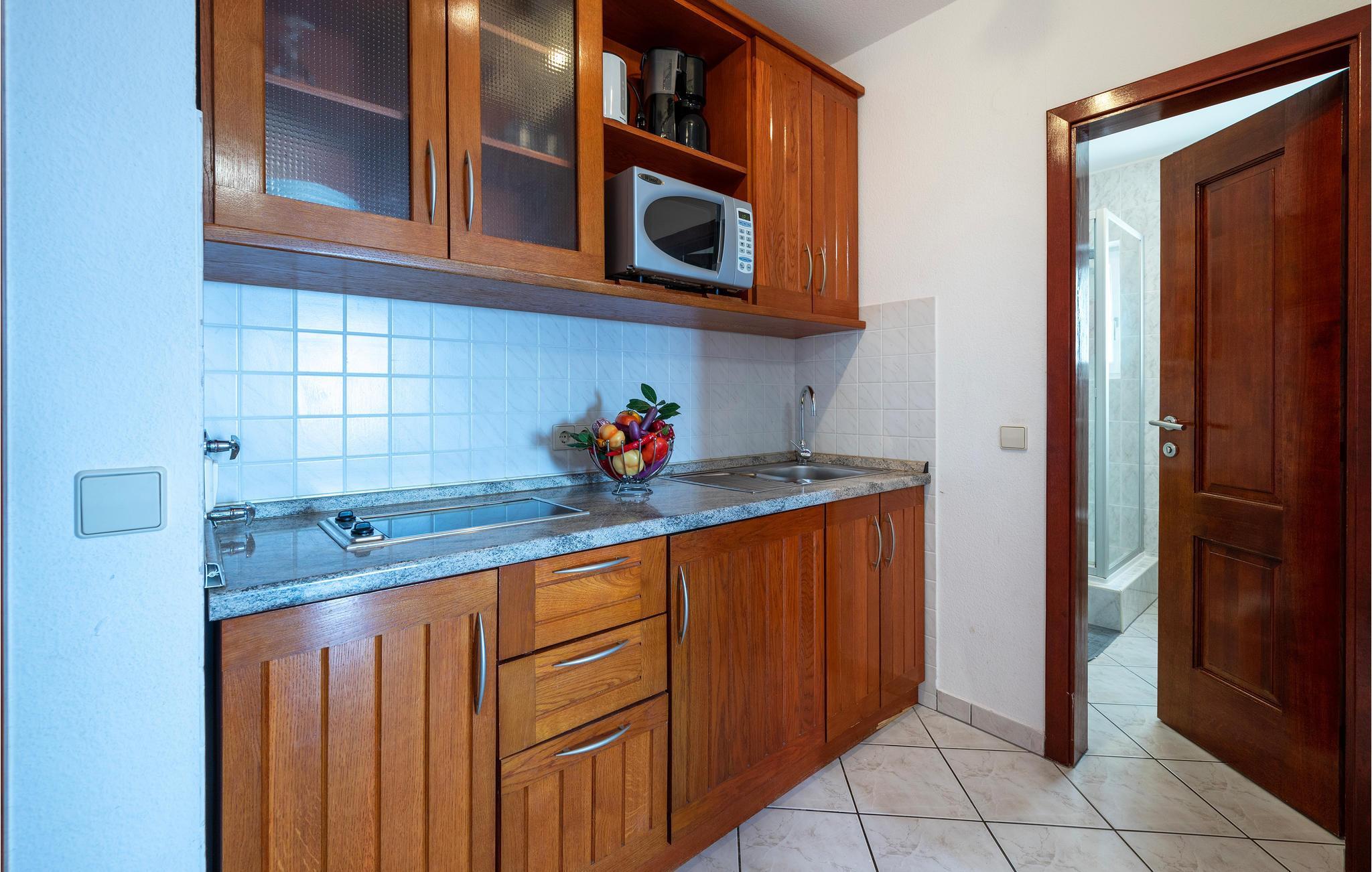 Den innbydende ferieleiligheten er det ideelle stedet for en hyggelig ferie, hvor du kan nyte strandliv og spennende utflukter i like stor grad, de første strendene ligger bare noen få skritt unna. Legg planer for dagen over frokosten i stuen eller på terrassen, og kom tilbake til ferieoasen etter eventyrene, som med sin hjemmekoselige innredning og varme fargevalg er den ideelle rammen for avslapning.