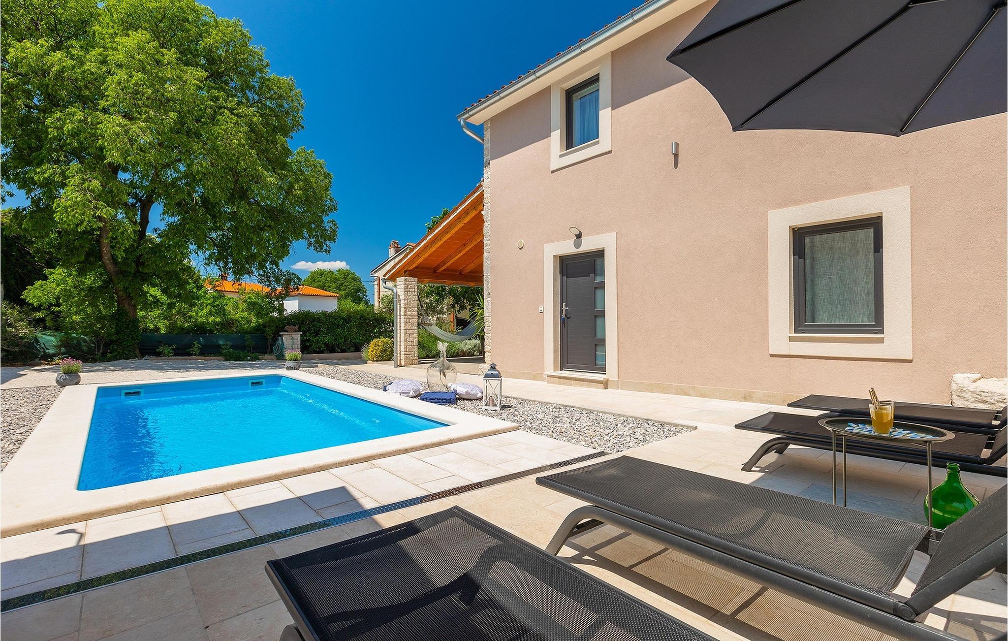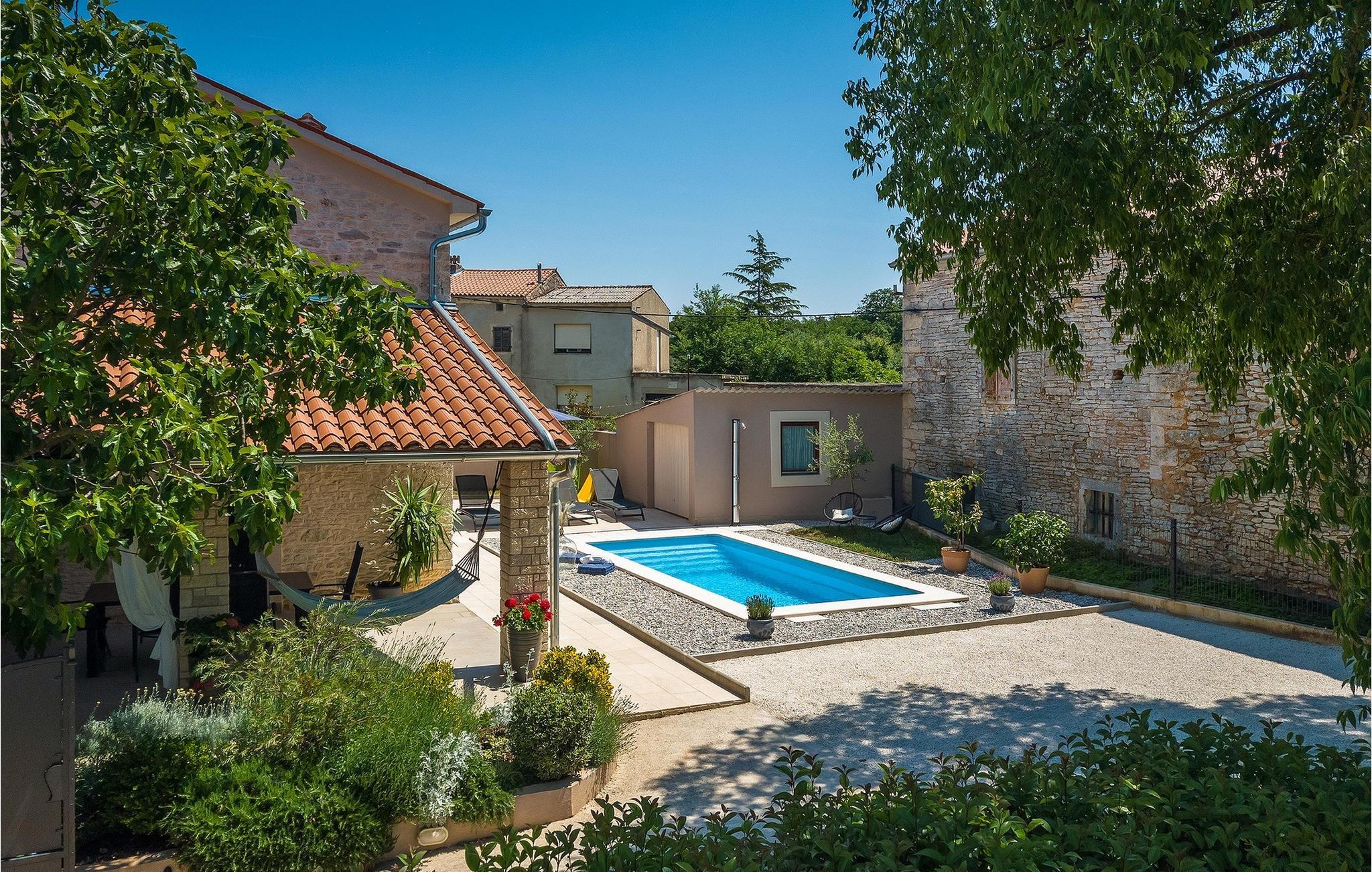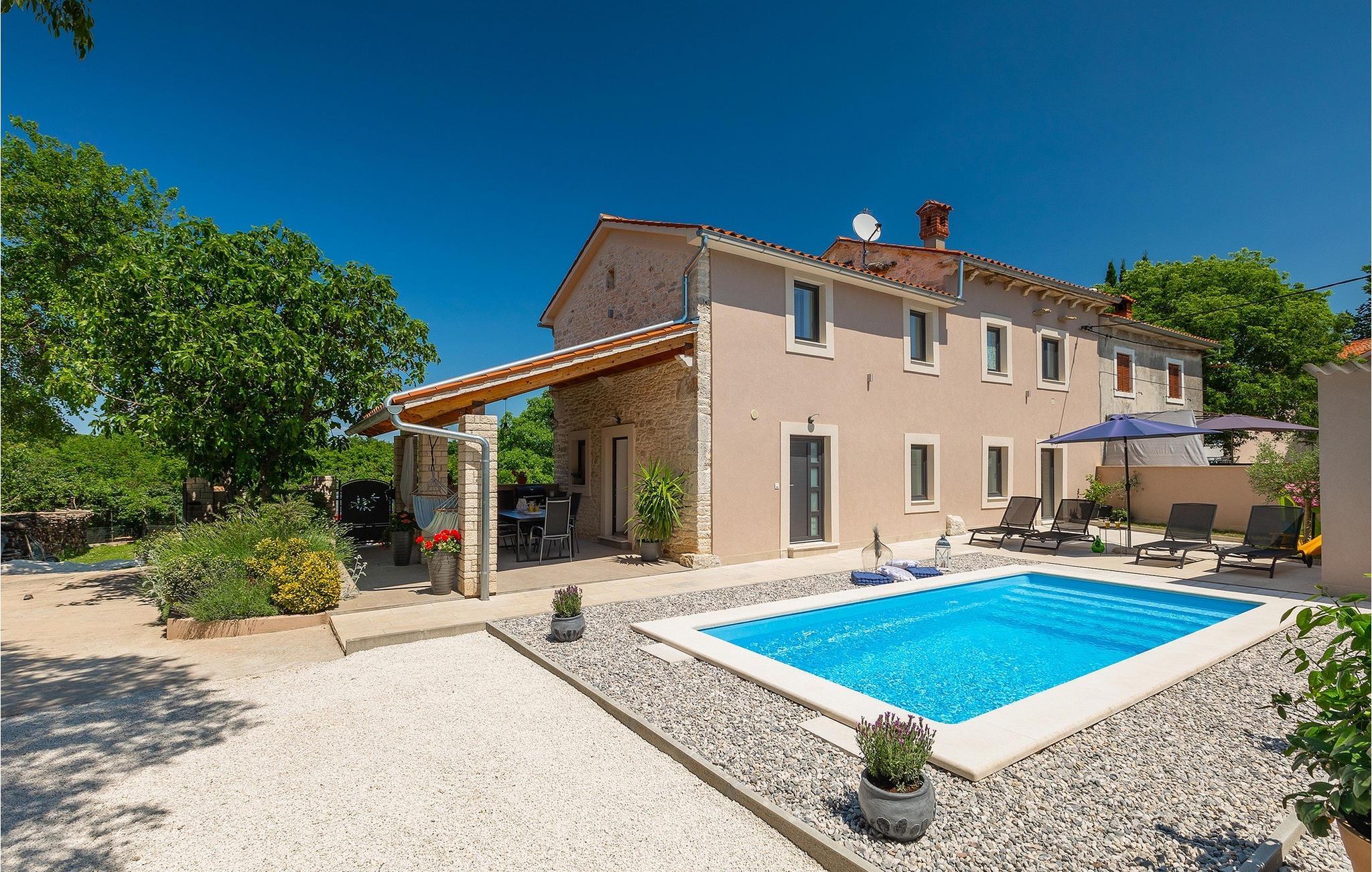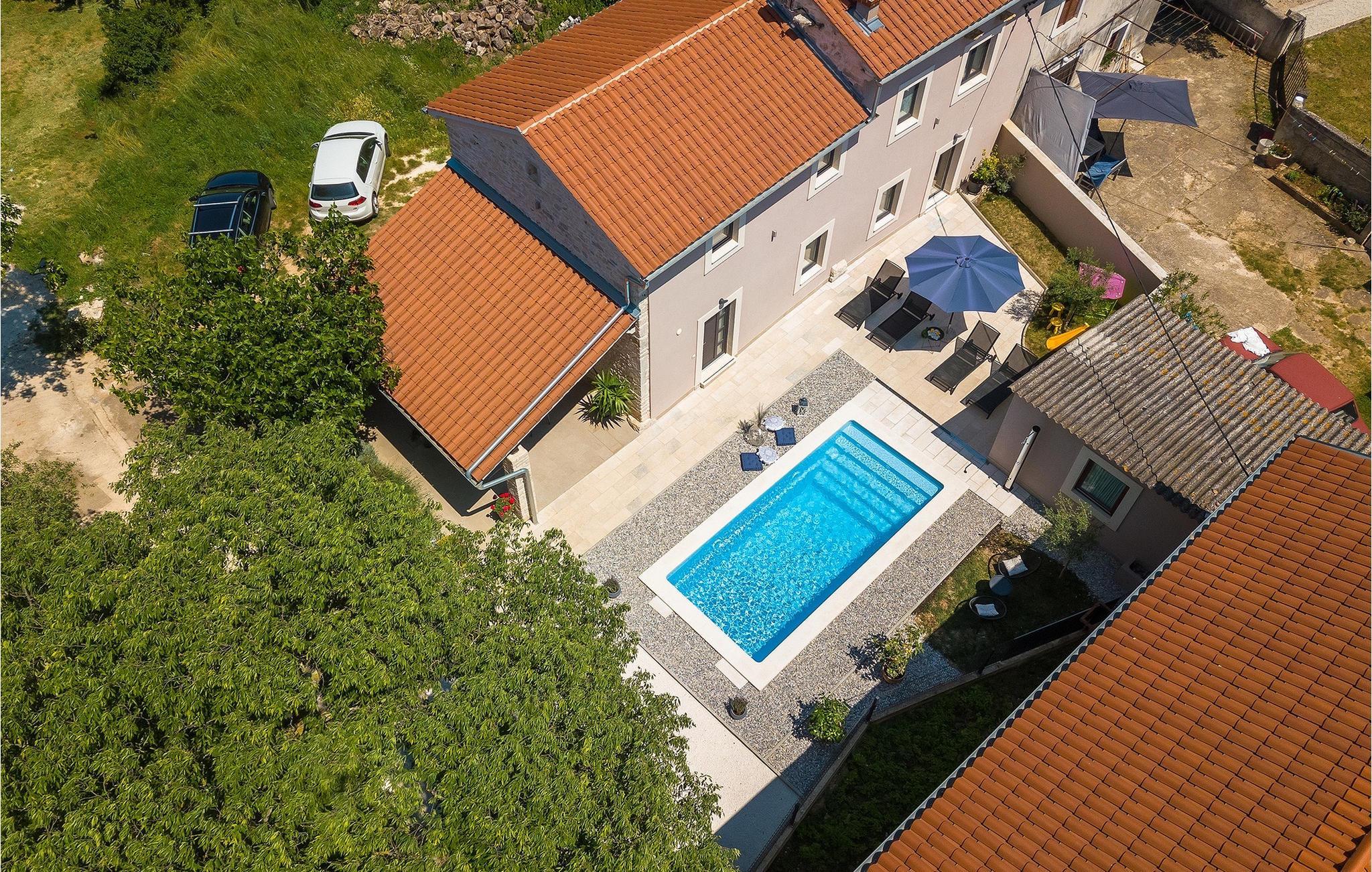 Villa Ena Istra er en familievilla med basseng i det sentrale Istria for en avslappende ferie. Denne gamle og tradisjonelle istriske villaen har plass til totalt 6 gjester i 3 komfortable soverom fordelt på 2 etasjer. Uteområdet har en vakker overbygd terrasse med gassgrill, en uteservering og høydepunktet i villaen, et privat basseng for forfriskninger og mye moro for de minste. Her har du muligheten til å tilbringe en avslappende og fredelig ferie langt borte fra byens kjas og mas og hverdagens stress. Forestill deg at du nyter solstrålene, ligger på solsengene og nyter en forfriskende drink mens barna leker i bassenget. Villaen er moderne innredet og vil leve opp til dine forventninger. I første etasje er det en vakker stue, et fullt utstyrt kjøkken, en spisestue og et separat toalett. I første etasje er det 3 soverom og 2 bad. 2 av soverommene har dobbeltseng, mens det tredje har 2 enkeltsenger som kan settes sammen til en dobbeltseng. Alle soverommene har satellitt-TV, klimaanlegg og myggnetting. Begge badene i denne etasjen har dusj, og ett av dem er til og med en-suite bad. Ved å tilbringe ferien i Villa Ena Istra kan du være sikker på at du får en flott familieferie og mange uforglemmelige minner å ta med deg hjem. Villa Ena Istra ligger i den lille byen Marana, som er kjent for sin fantastiske natur, avsondrethet og fredelige atmosfære. Alle nødvendige fasiliteter som butikker, kafeer, postkontor, bank, dagligvarebutikk, lege og tannlege finnes allerede i Marana. En kjøretur på 12 kilometer tar deg til Pula, hovedstaden i Istria og hjemsted for et spektakulært amfiteater og en av regionens mest berømte turistattraksjoner. Men glem ikke å nyte den umiskjennelige kulinariske opplevelsen i Istria, som er berømt over hele Europa og verden. Hjemmelaget prosciutto, vin, trøfler og istrisk pasta (fui) er bare noen av de kulinariske herlighetene Istria har å by på. Utforsk Brijuni-øyene, en av Kroatias vakreste nasjonalparker. Parken kan nås med båt fra Faana.