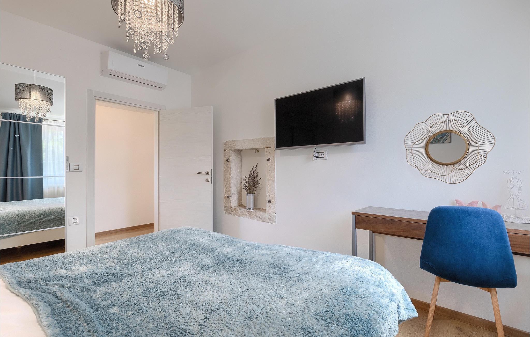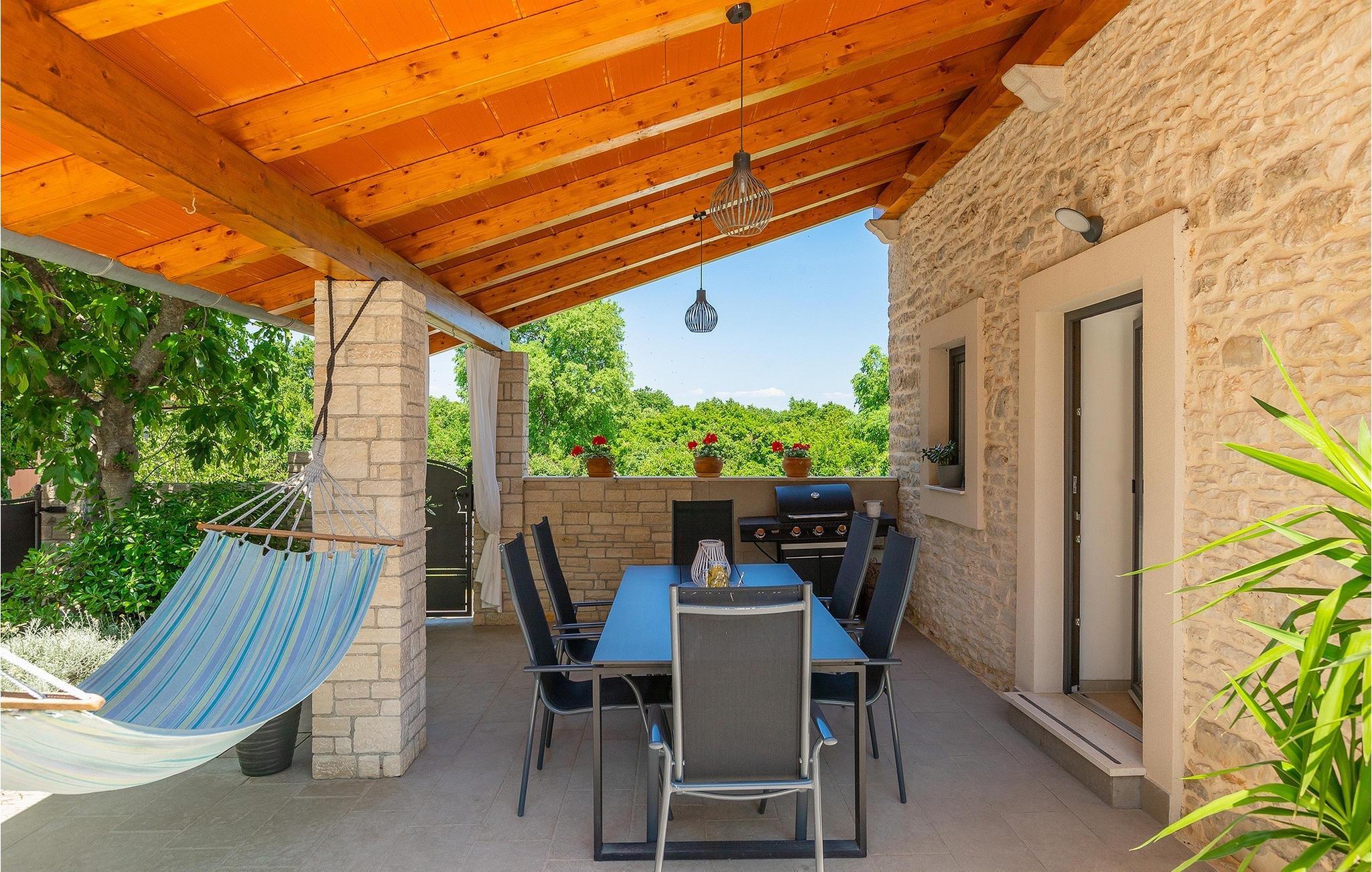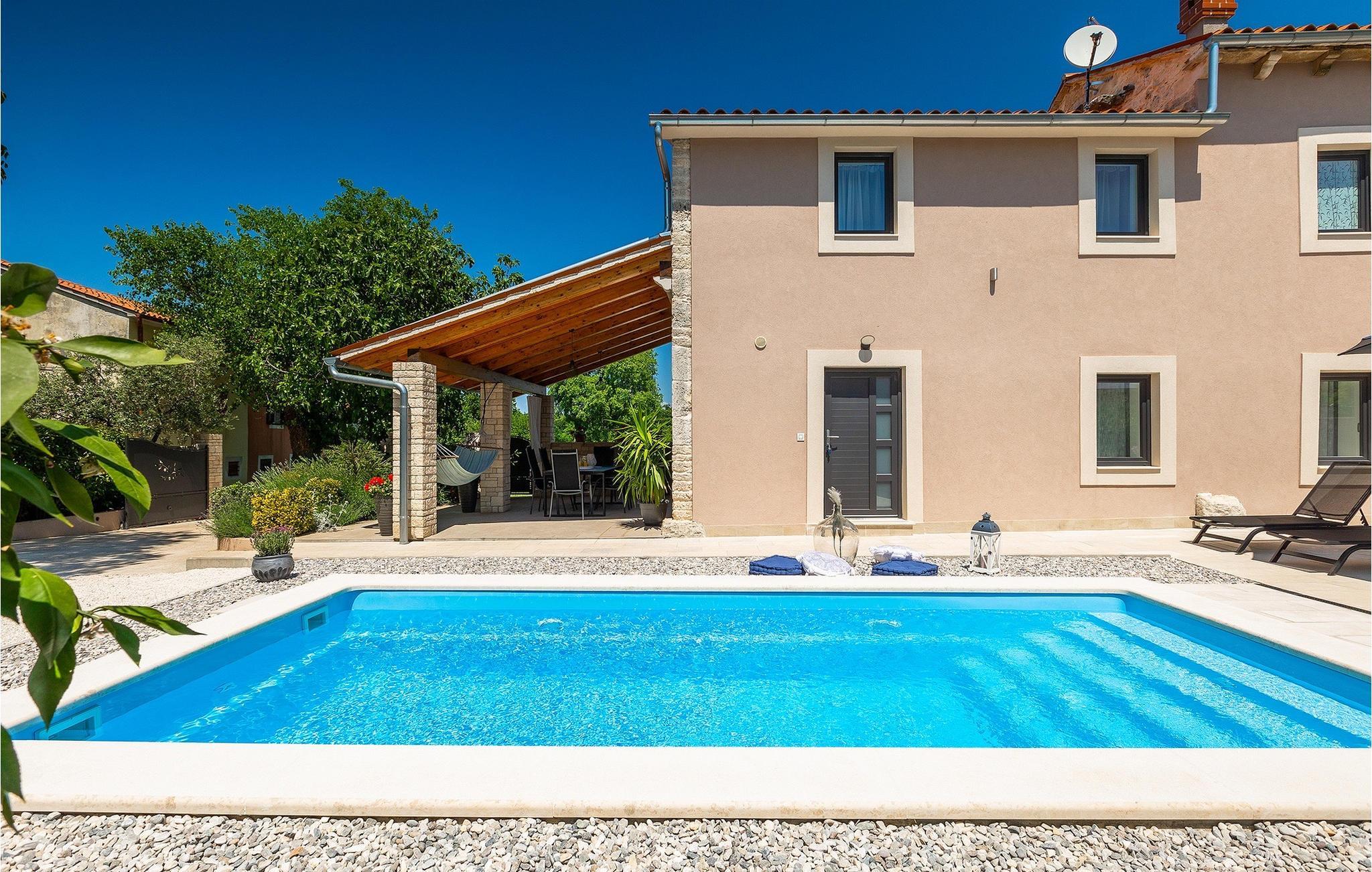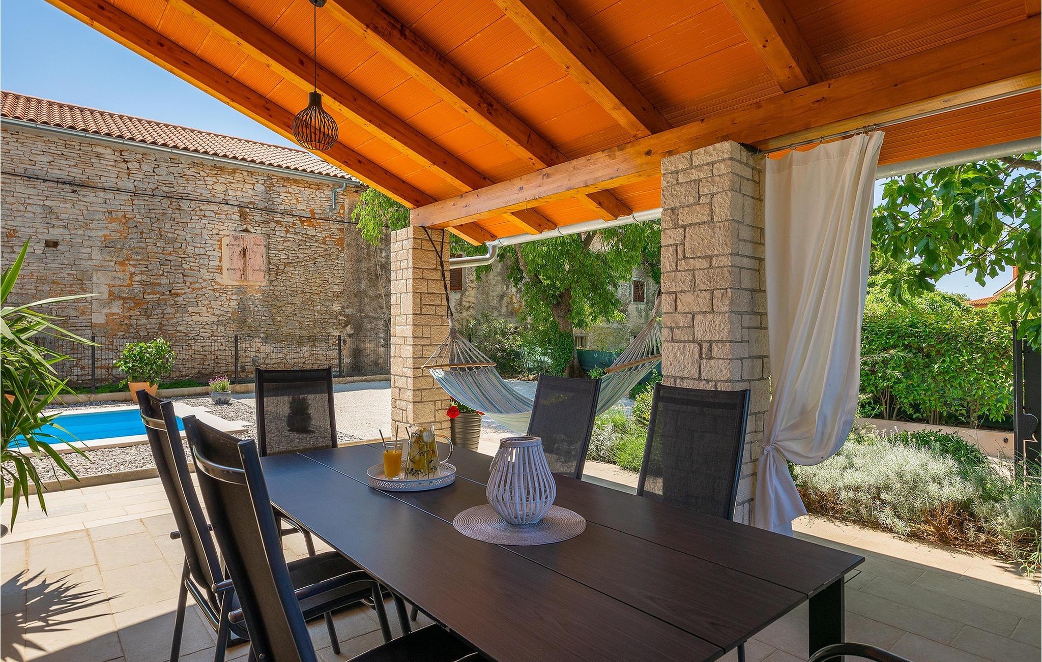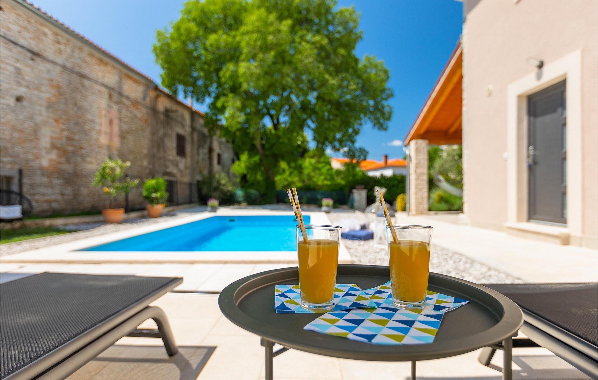 Villa Ena Istra er en familievilla med basseng i det sentrale Istria for en avslappende ferie. Denne gamle og tradisjonelle istriske villaen har plass til totalt 6 gjester i 3 komfortable soverom fordelt på 2 etasjer. Uteområdet har en vakker overbygd terrasse med gassgrill, en uteservering og høydepunktet i villaen, et privat basseng for forfriskninger og mye moro for de minste. Her har du muligheten til å tilbringe en avslappende og fredelig ferie langt borte fra byens kjas og mas og hverdagens stress. Forestill deg at du nyter solstrålene, ligger på solsengene og nyter en forfriskende drink mens barna leker i bassenget. Villaen er moderne innredet og vil leve opp til dine forventninger. I første etasje er det en vakker stue, et fullt utstyrt kjøkken, en spisestue og et separat toalett. I første etasje er det 3 soverom og 2 bad. 2 av soverommene har dobbeltseng, mens det tredje har 2 enkeltsenger som kan settes sammen til en dobbeltseng. Alle soverommene har satellitt-TV, klimaanlegg og myggnetting. Begge badene i denne etasjen har dusj, og ett av dem er til og med en-suite bad. Ved å tilbringe ferien i Villa Ena Istra kan du være sikker på at du får en flott familieferie og mange uforglemmelige minner å ta med deg hjem. Villa Ena Istra ligger i den lille byen Marana, som er kjent for sin fantastiske natur, avsondrethet og fredelige atmosfære. Alle nødvendige fasiliteter som butikker, kafeer, postkontor, bank, dagligvarebutikk, lege og tannlege finnes allerede i Marana. En kjøretur på 12 kilometer tar deg til Pula, hovedstaden i Istria og hjemsted for et spektakulært amfiteater og en av regionens mest berømte turistattraksjoner. Men glem ikke å nyte den umiskjennelige kulinariske opplevelsen i Istria, som er berømt over hele Europa og verden. Hjemmelaget prosciutto, vin, trøfler og istrisk pasta (fui) er bare noen av de kulinariske herlighetene Istria har å by på. Utforsk Brijuni-øyene, en av Kroatias vakreste nasjonalparker. Parken kan nås med båt fra Faana.