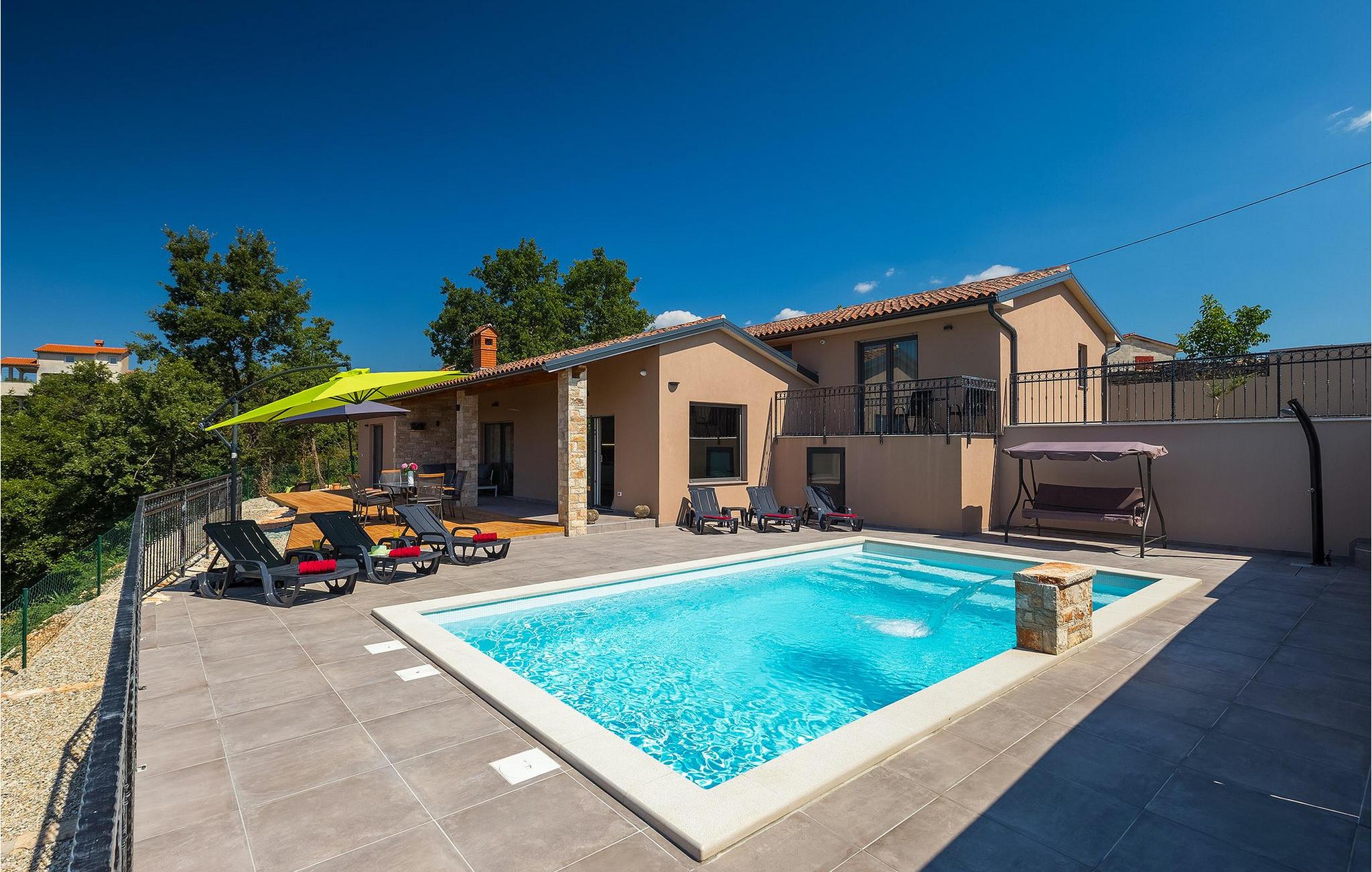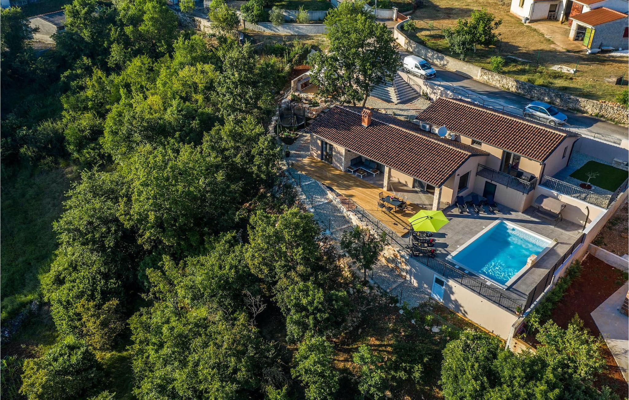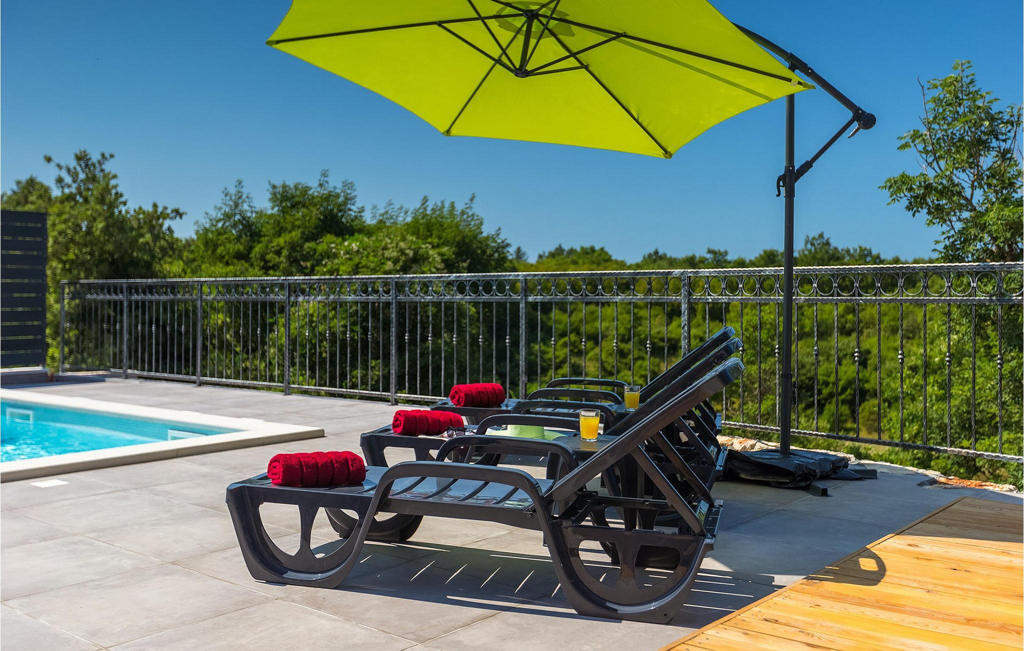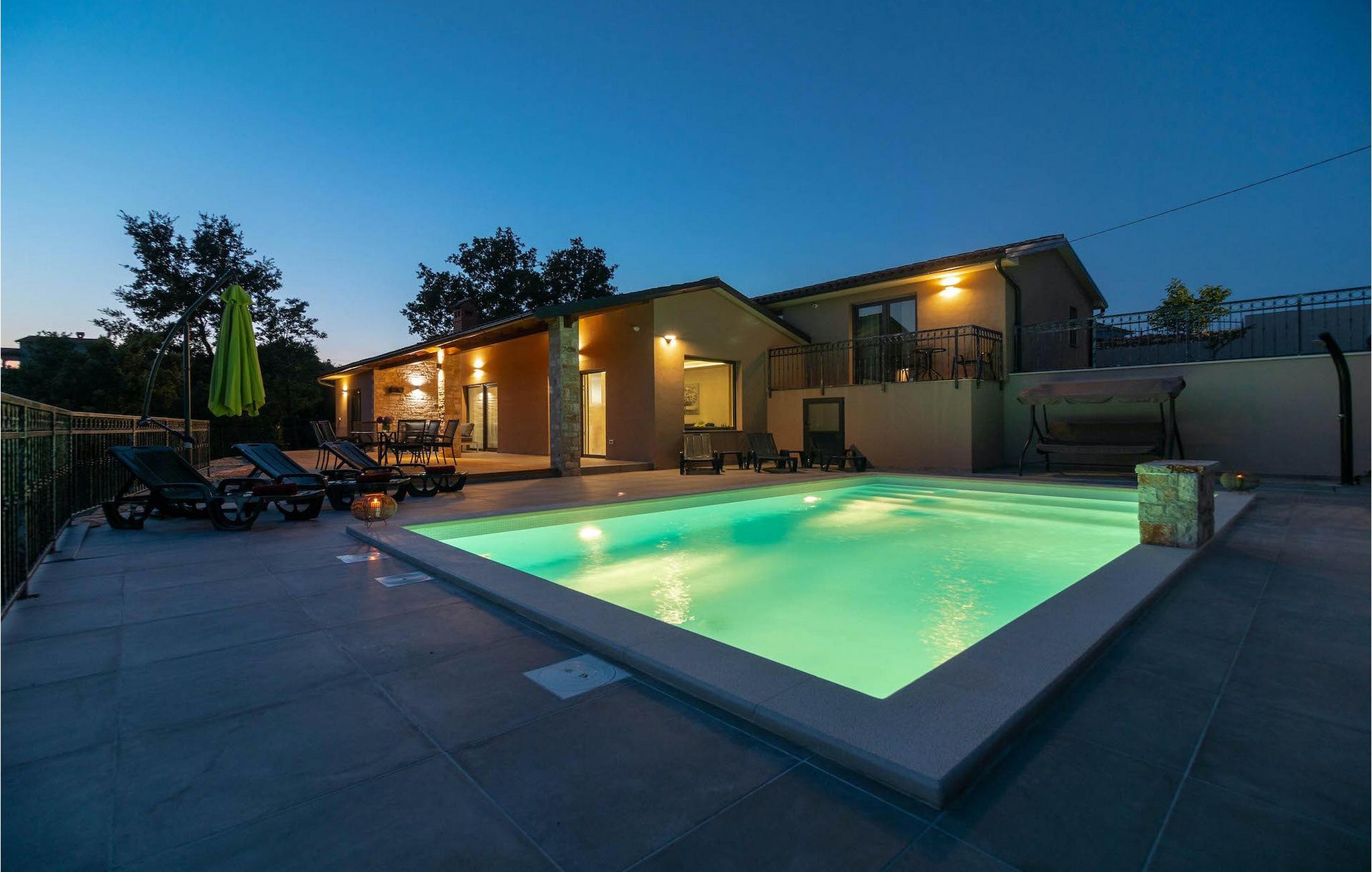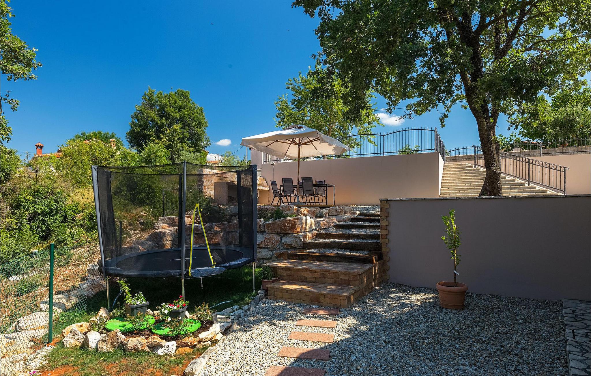 Navnet sier alt: Villa Gloria er virkelig fantastisk! Villaen ligger i en liten landsby i Istria, ikke langt fra Pula, og er ideell for alle som ønsker å tilbringe en rolig ferie i Kroatia. Villa Gloria er beregnet for maksimalt 6 personer, noe som gjør den ideell for en familieferie. Villaen har 2 etasjer. I underetasjen, som har direkte utgang til bassenget, finner du den koselige stuen, det fullt utstyrte kjøkkenet med spiseplass, samt et bad og hovedsoverommet, som er innredet med en komfortabel dobbeltseng. Går du opp trappen, finner du i første etasje et soverom til og ytterligere to soverom, hvorav det ene har to enkeltsenger. Det andre soverommet er innredet med en dobbeltseng og har en privat terrasse med utsikt over bassenget - ideelt for den første koppen kaffe om morgenen. Villa Gloria har også en uteservering og en kullgrill hvor du kan tilberede deilige spesialiteter. Det finnes flere sittegrupper ute - det er bare å velge en. Det innbydende bassenget står også til din disposisjon - den perfekte løsningen på varme sommerdager! Villaen har også en trampoline, som umiddelbart vil falle i smak hos de yngste gjestene.