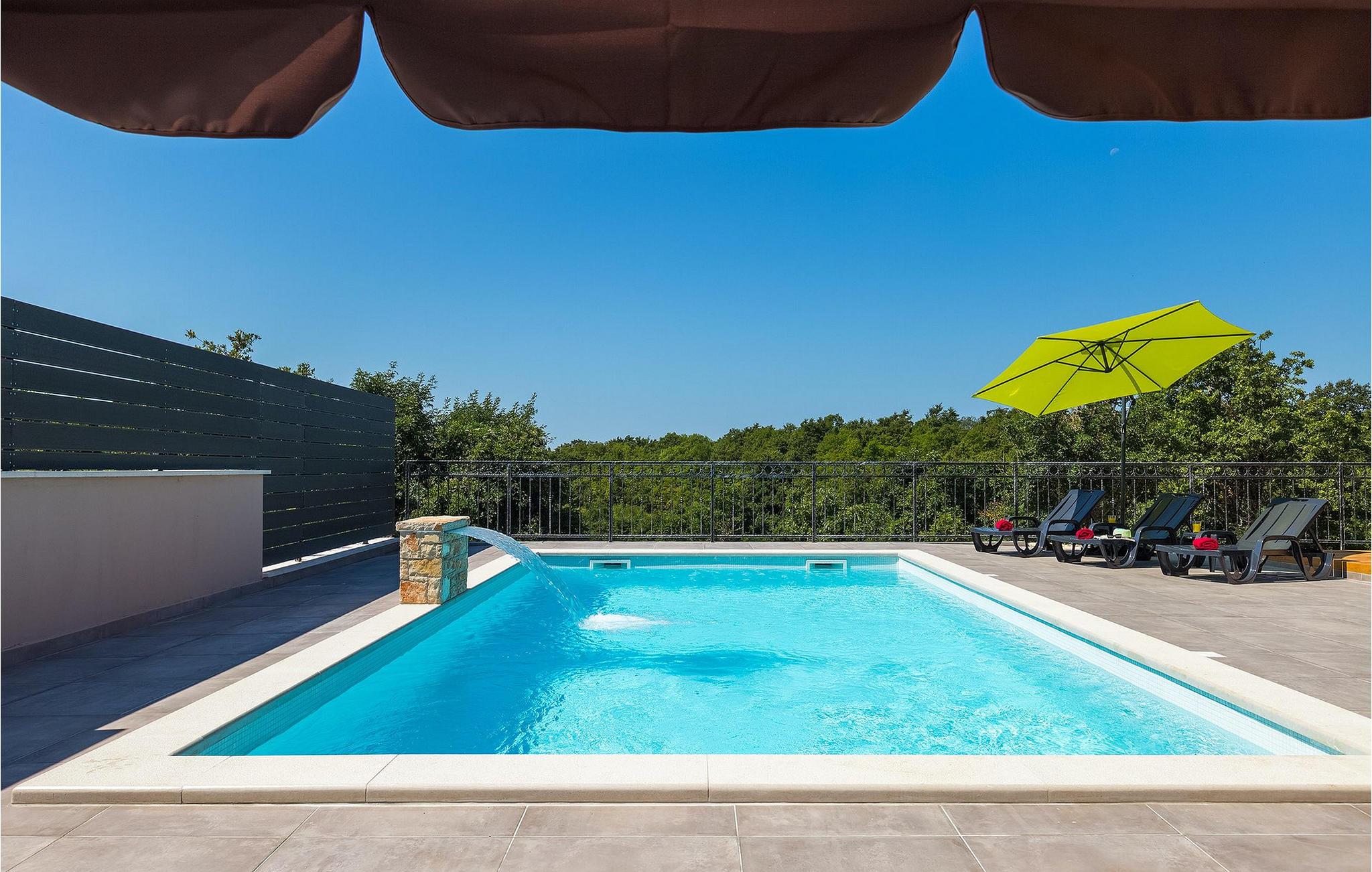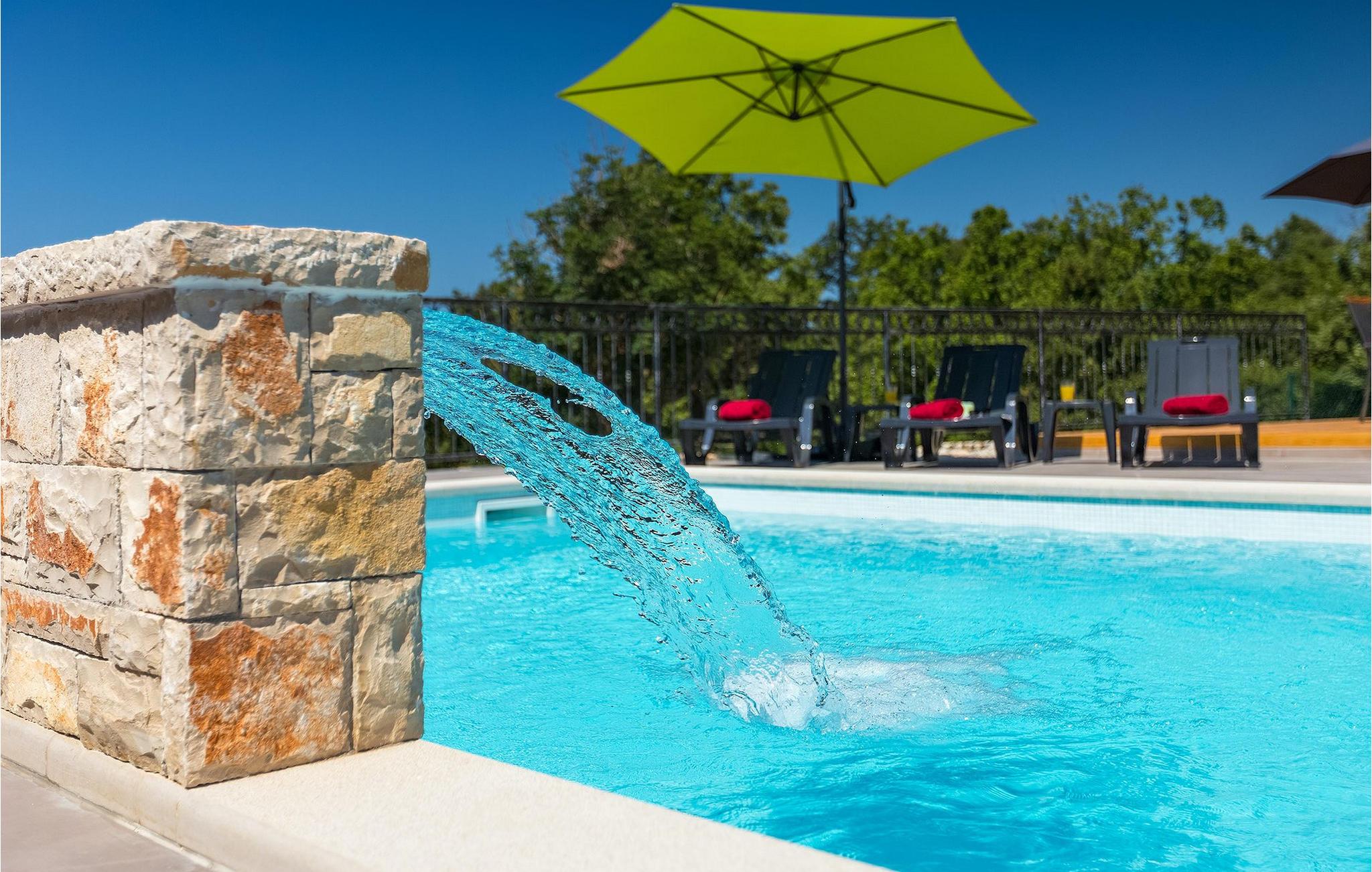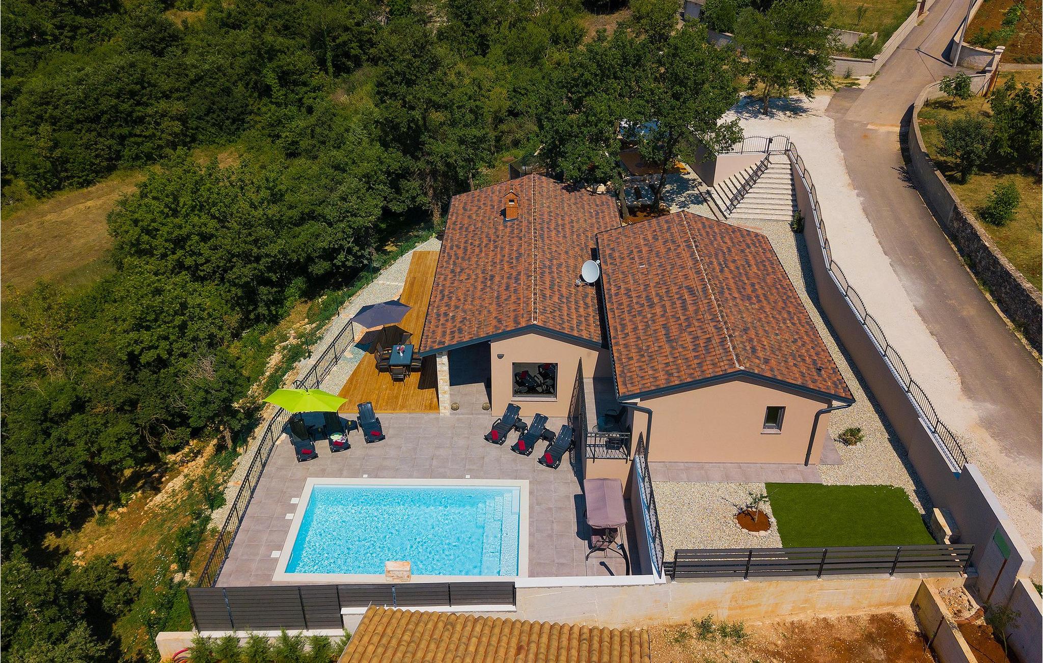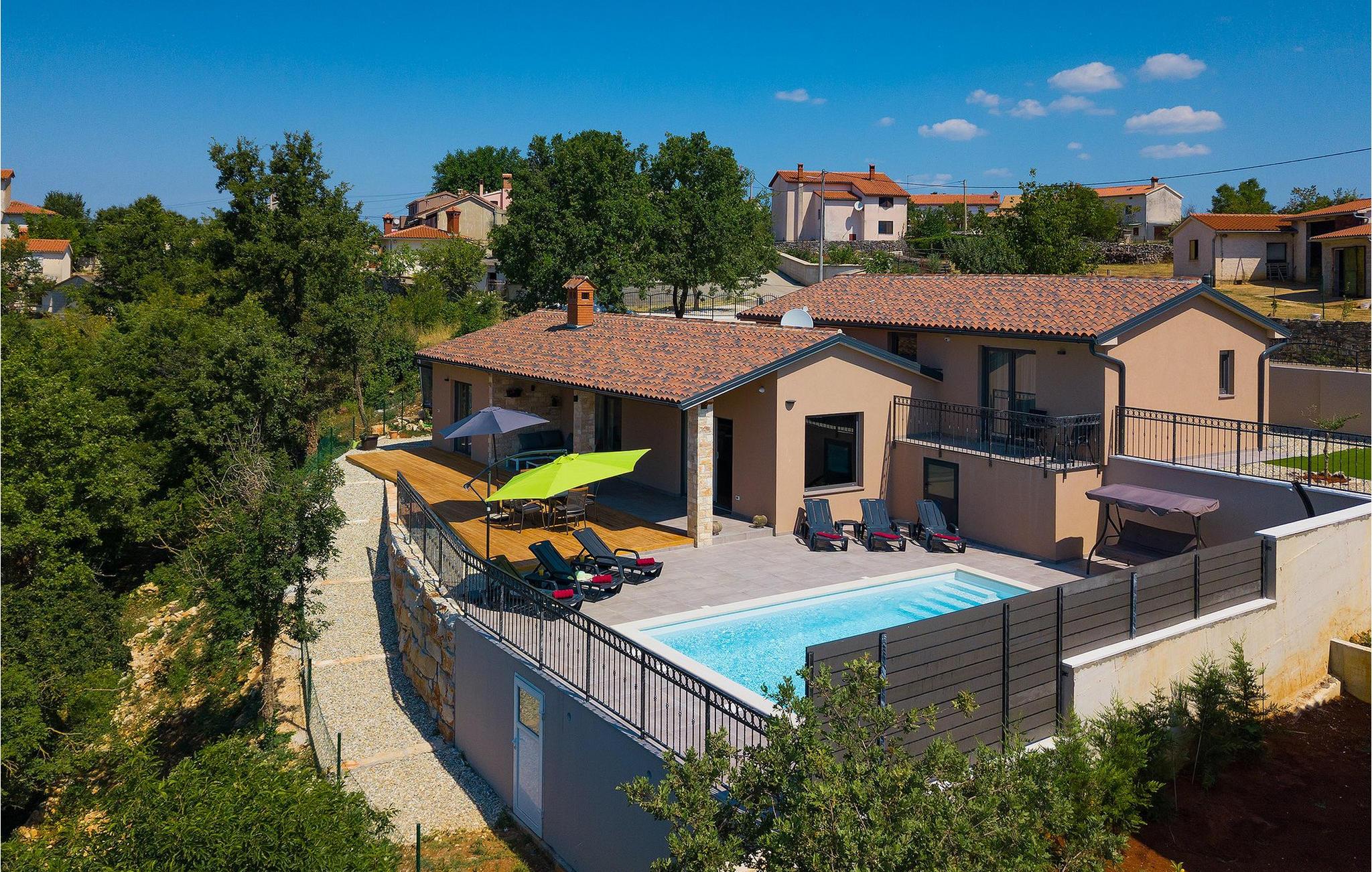 Navnet sier alt: Villa Gloria er virkelig fantastisk! Villaen ligger i en liten landsby i Istria, ikke langt fra Pula, og er ideell for alle som ønsker å tilbringe en rolig ferie i Kroatia. Villa Gloria er beregnet for maksimalt 6 personer, noe som gjør den ideell for en familieferie. Villaen har 2 etasjer. I underetasjen, som har direkte utgang til bassenget, finner du den koselige stuen, det fullt utstyrte kjøkkenet med spiseplass, samt et bad og hovedsoverommet, som er innredet med en komfortabel dobbeltseng. Går du opp trappen, finner du i første etasje et soverom til og ytterligere to soverom, hvorav det ene har to enkeltsenger. Det andre soverommet er innredet med en dobbeltseng og har en privat terrasse med utsikt over bassenget - ideelt for den første koppen kaffe om morgenen. Villa Gloria har også en uteservering og en kullgrill hvor du kan tilberede deilige spesialiteter. Det finnes flere sittegrupper ute - det er bare å velge en. Det innbydende bassenget står også til din disposisjon - den perfekte løsningen på varme sommerdager! Villaen har også en trampoline, som umiddelbart vil falle i smak hos de yngste gjestene.