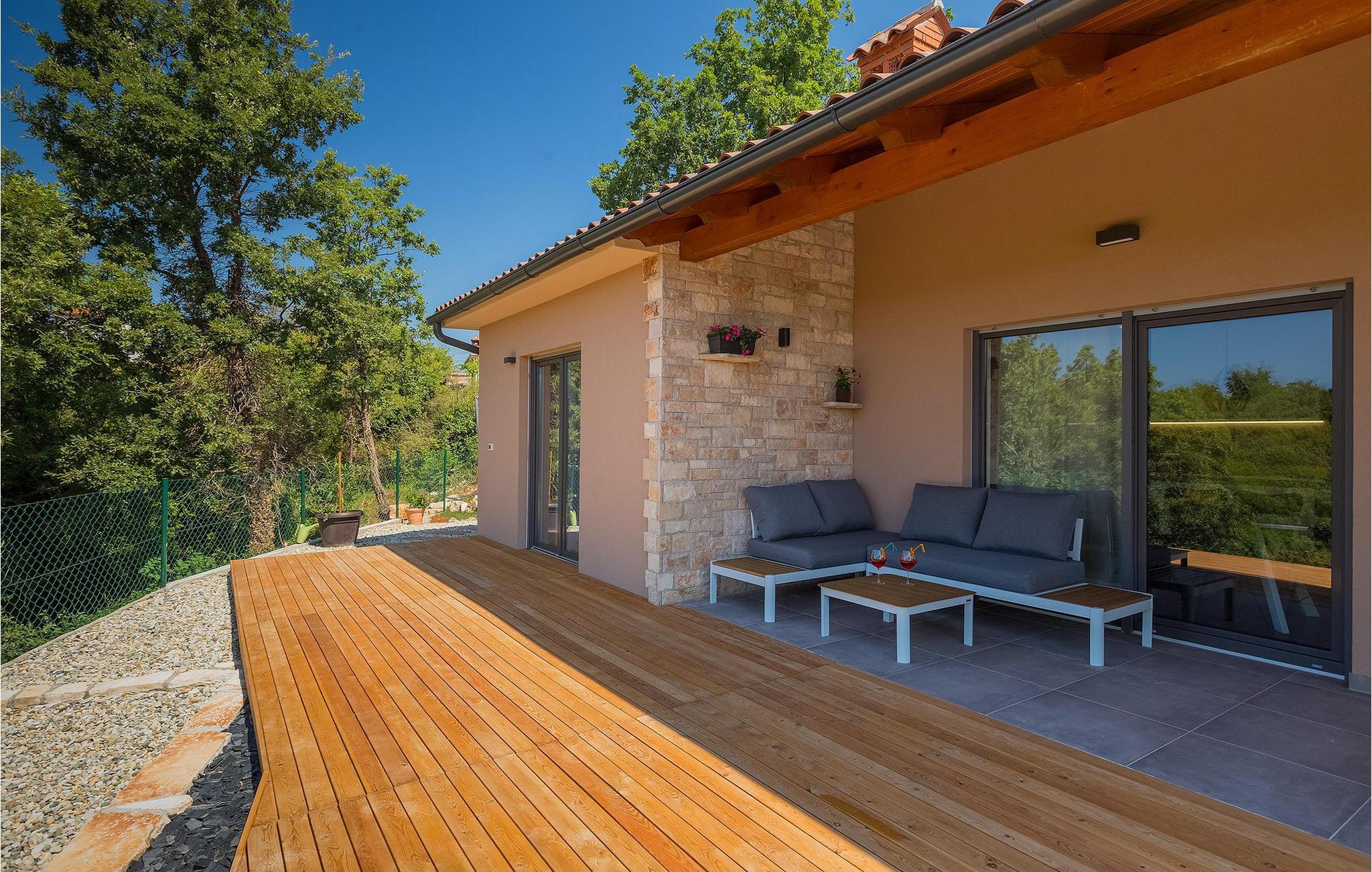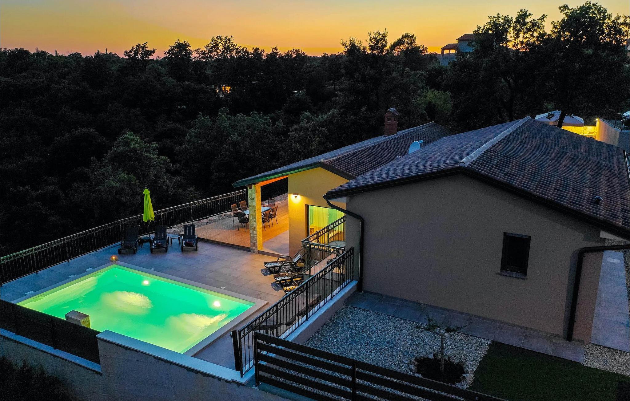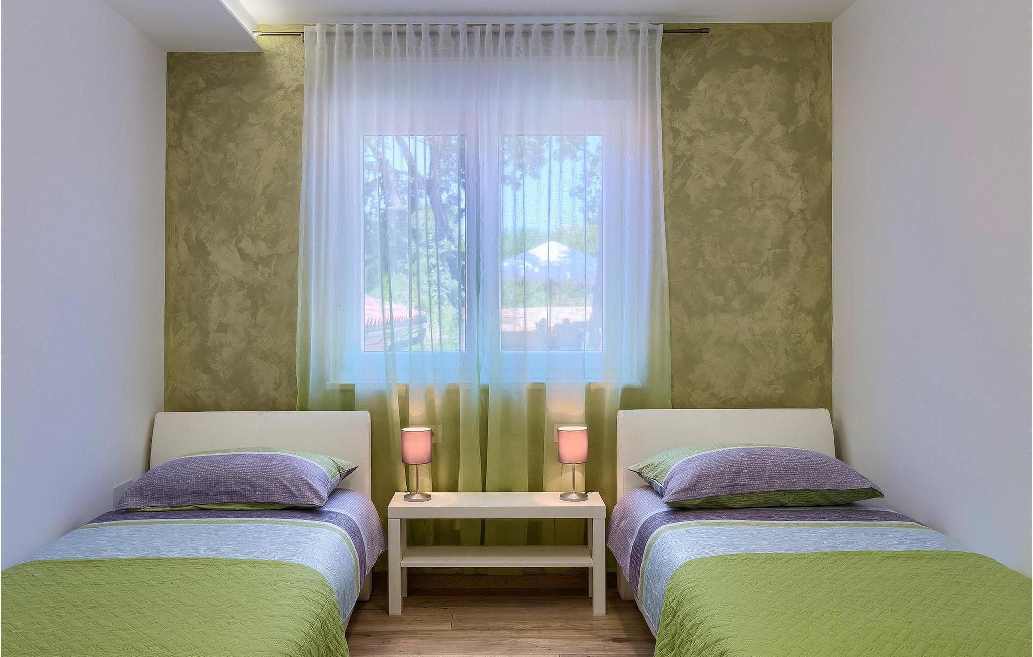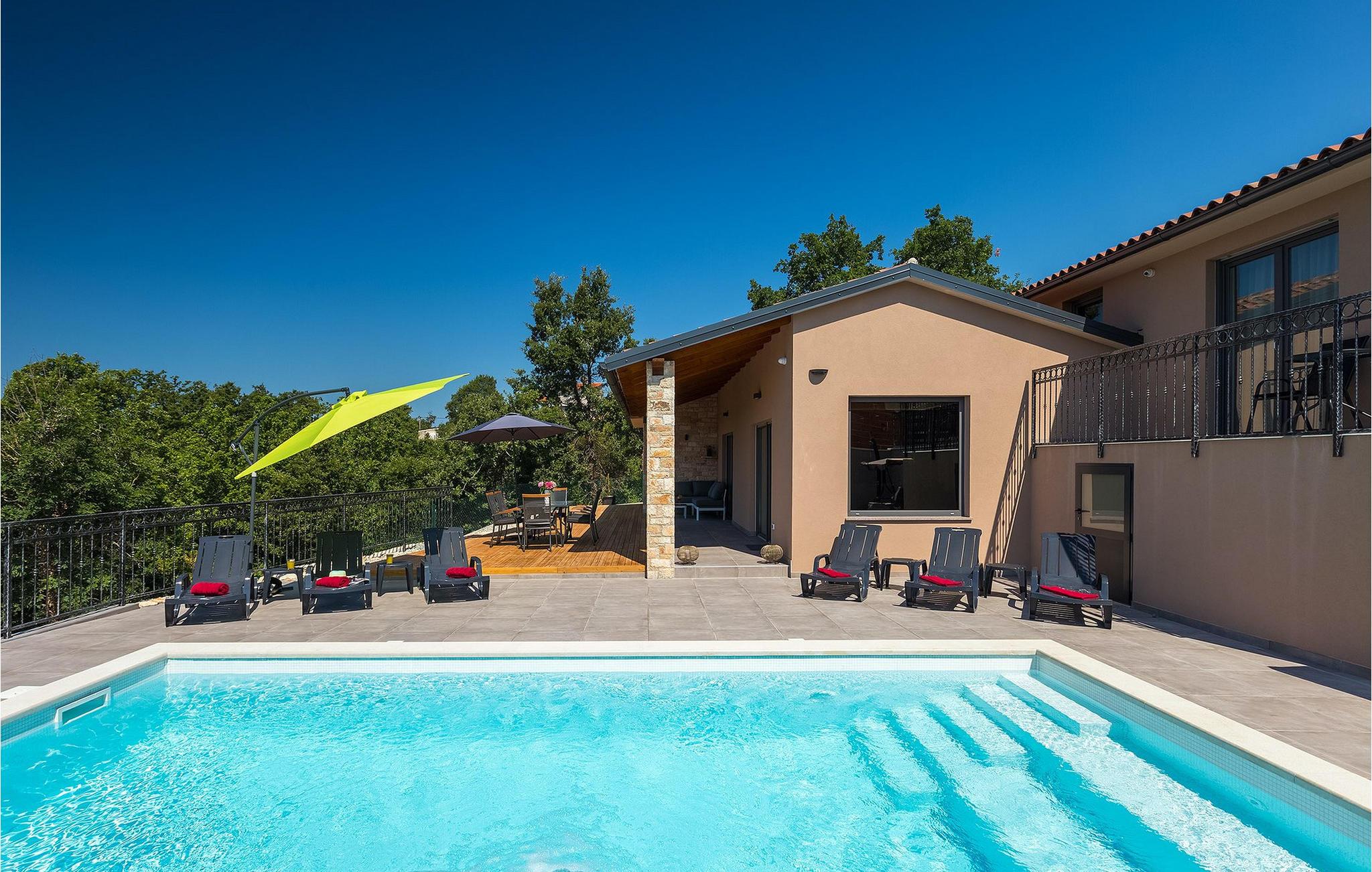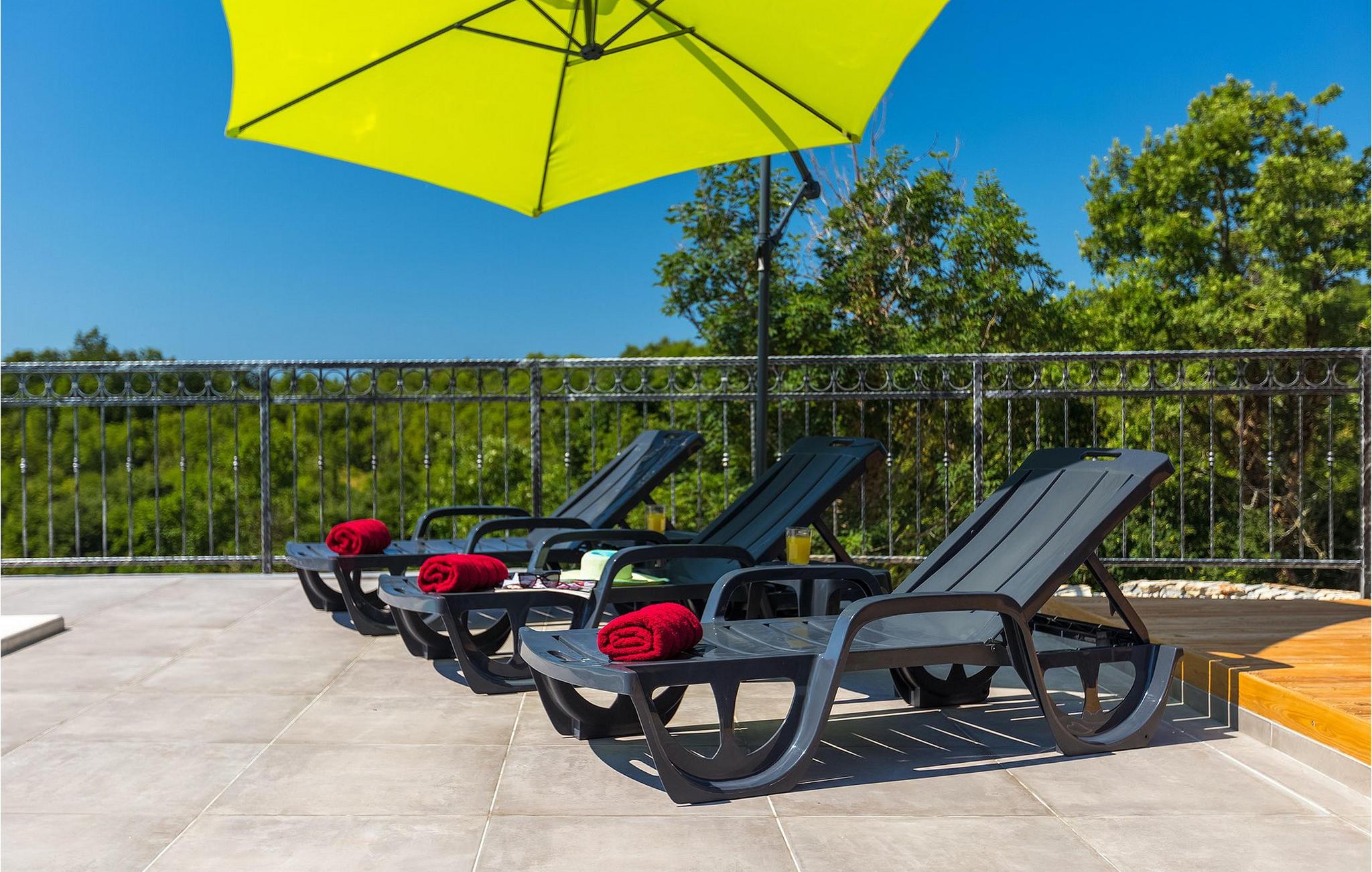 Navnet sier alt: Villa Gloria er virkelig fantastisk! Villaen ligger i en liten landsby i Istria, ikke langt fra Pula, og er ideell for alle som ønsker å tilbringe en rolig ferie i Kroatia. Villa Gloria er beregnet for maksimalt 6 personer, noe som gjør den ideell for en familieferie. Villaen har 2 etasjer. I underetasjen, som har direkte utgang til bassenget, finner du den koselige stuen, det fullt utstyrte kjøkkenet med spiseplass, samt et bad og hovedsoverommet, som er innredet med en komfortabel dobbeltseng. Går du opp trappen, finner du i første etasje et soverom til og ytterligere to soverom, hvorav det ene har to enkeltsenger. Det andre soverommet er innredet med en dobbeltseng og har en privat terrasse med utsikt over bassenget - ideelt for den første koppen kaffe om morgenen. Villa Gloria har også en uteservering og en kullgrill hvor du kan tilberede deilige spesialiteter. Det finnes flere sittegrupper ute - det er bare å velge en. Det innbydende bassenget står også til din disposisjon - den perfekte løsningen på varme sommerdager! Villaen har også en trampoline, som umiddelbart vil falle i smak hos de yngste gjestene.