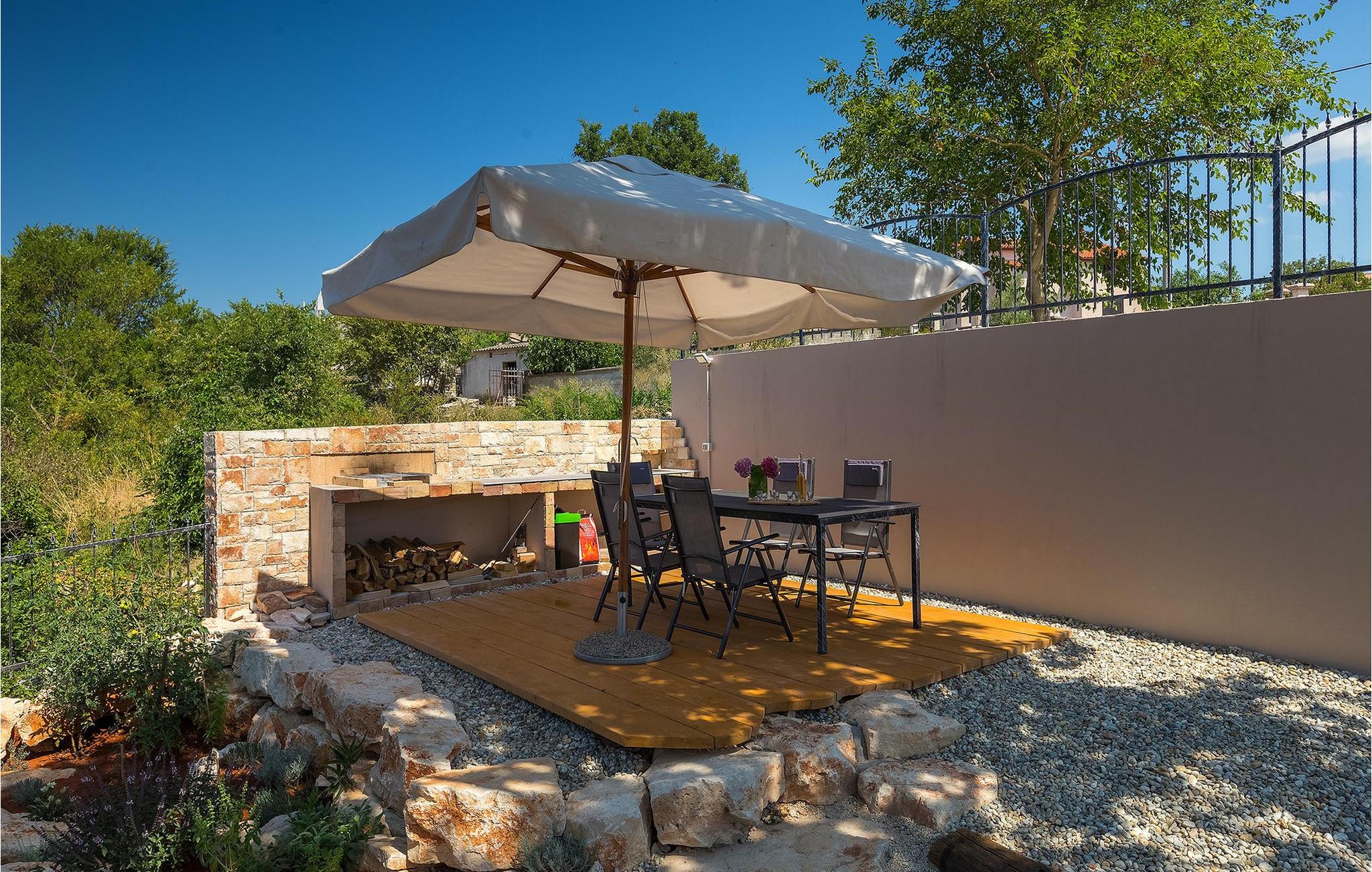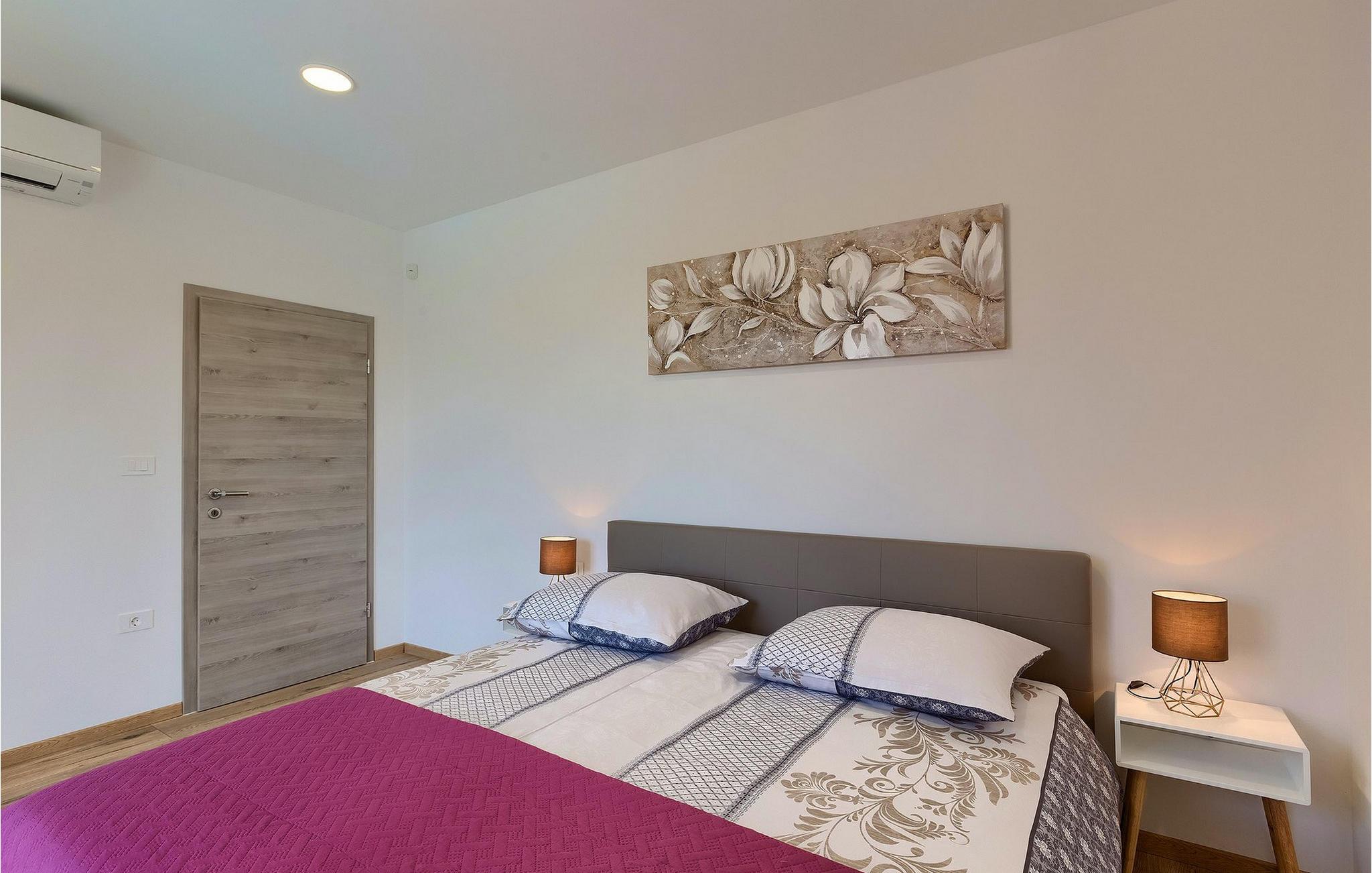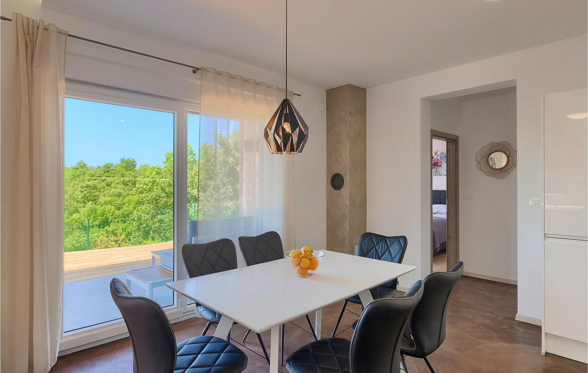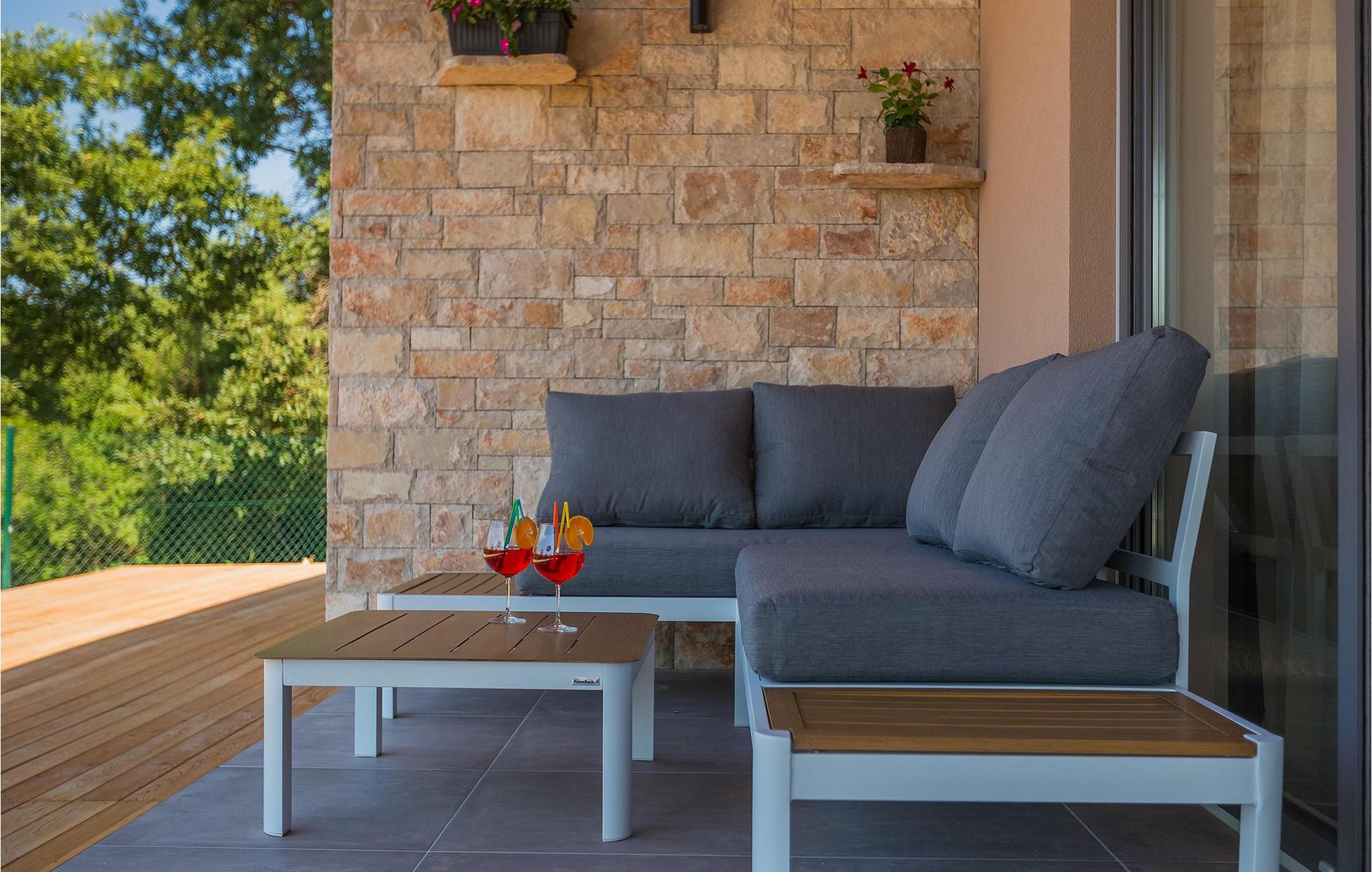 Navnet sier alt: Villa Gloria er virkelig fantastisk! Villaen ligger i en liten landsby i Istria, ikke langt fra Pula, og er ideell for alle som ønsker å tilbringe en rolig ferie i Kroatia. Villa Gloria er beregnet for maksimalt 6 personer, noe som gjør den ideell for en familieferie. Villaen har 2 etasjer. I underetasjen, som har direkte utgang til bassenget, finner du den koselige stuen, det fullt utstyrte kjøkkenet med spiseplass, samt et bad og hovedsoverommet, som er innredet med en komfortabel dobbeltseng. Går du opp trappen, finner du i første etasje et soverom til og ytterligere to soverom, hvorav det ene har to enkeltsenger. Det andre soverommet er innredet med en dobbeltseng og har en privat terrasse med utsikt over bassenget - ideelt for den første koppen kaffe om morgenen. Villa Gloria har også en uteservering og en kullgrill hvor du kan tilberede deilige spesialiteter. Det finnes flere sittegrupper ute - det er bare å velge en. Det innbydende bassenget står også til din disposisjon - den perfekte løsningen på varme sommerdager! Villaen har også en trampoline, som umiddelbart vil falle i smak hos de yngste gjestene.
