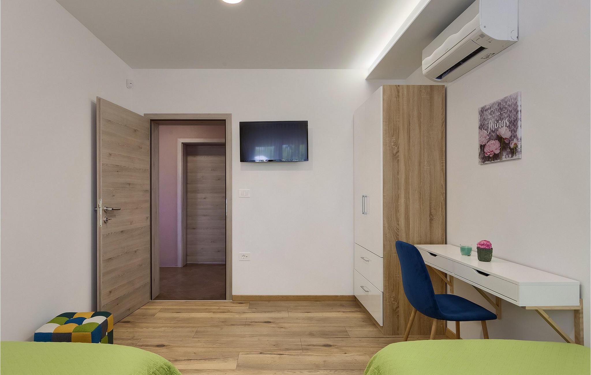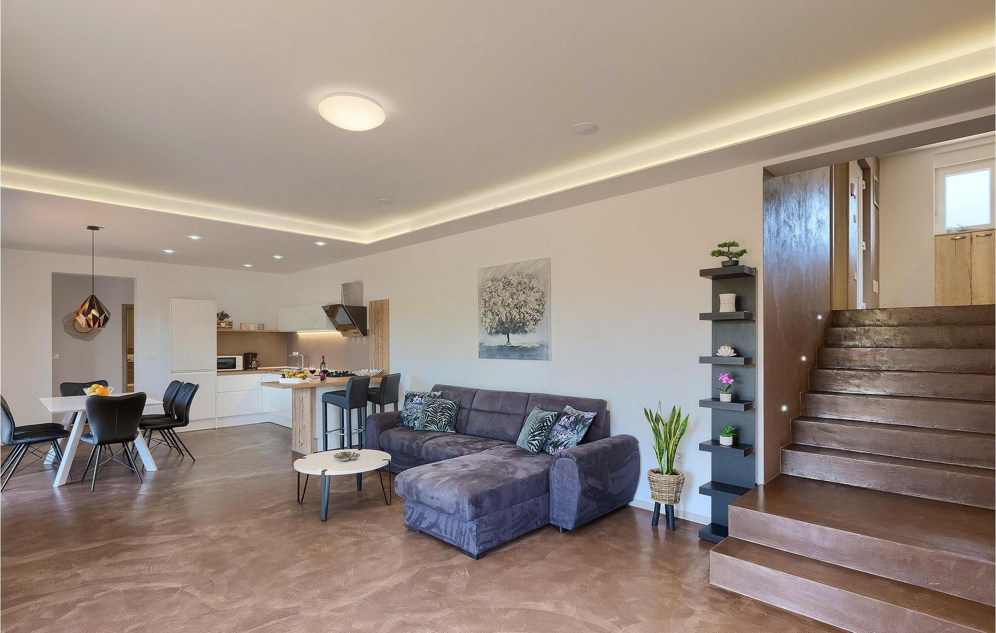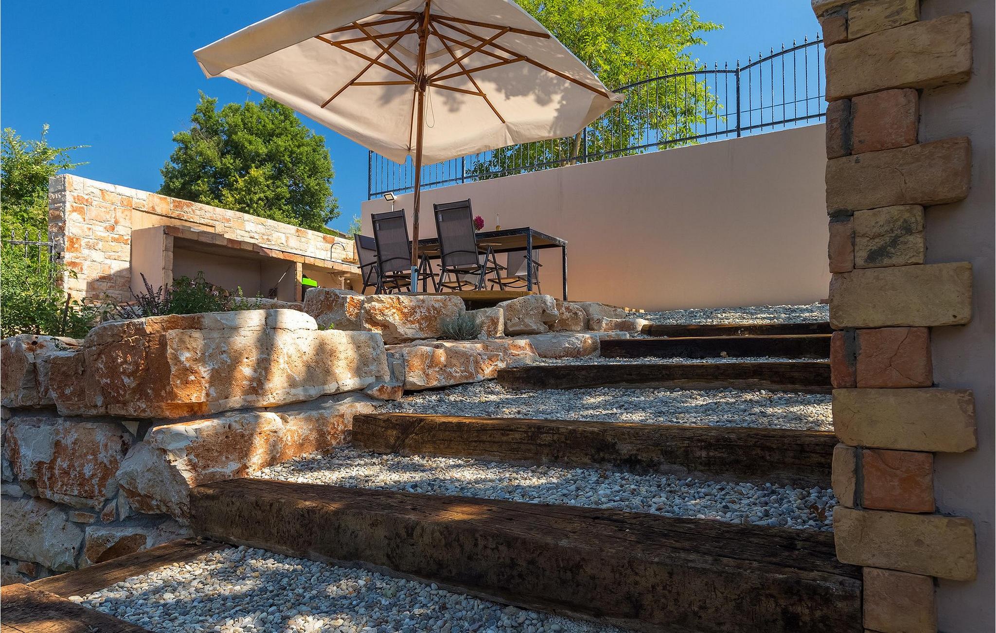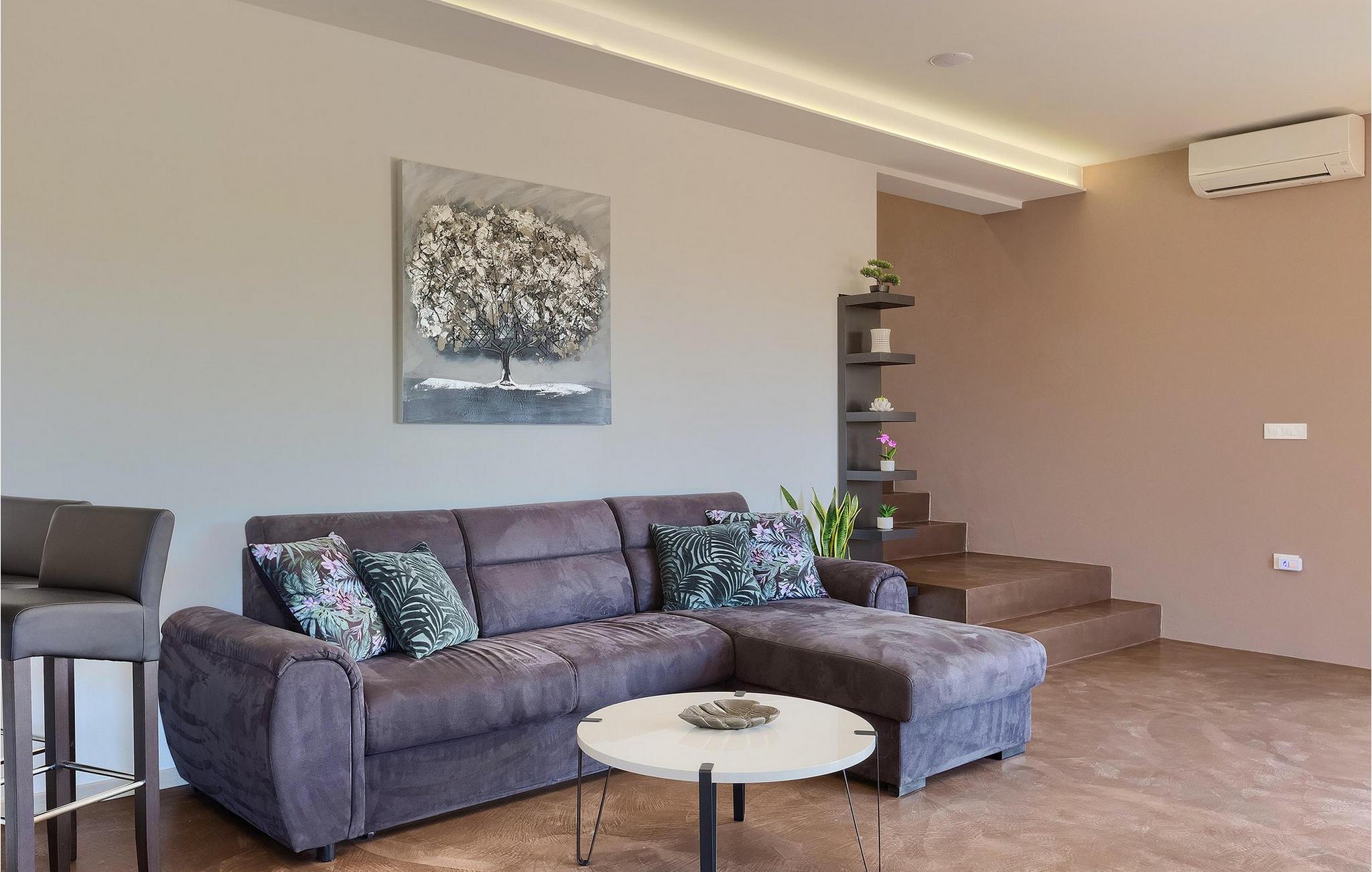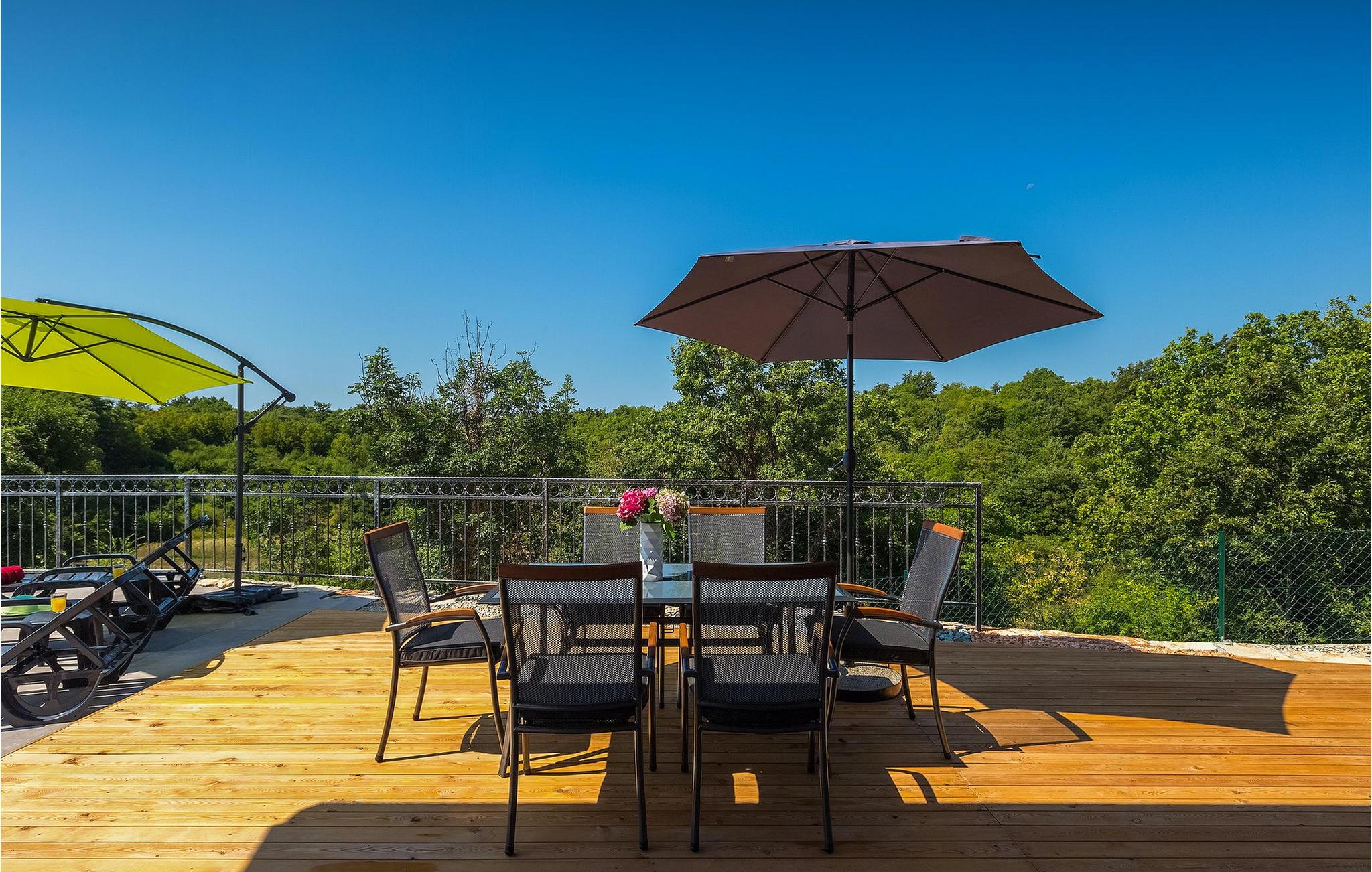 Navnet sier alt: Villa Gloria er virkelig fantastisk! Villaen ligger i en liten landsby i Istria, ikke langt fra Pula, og er ideell for alle som ønsker å tilbringe en rolig ferie i Kroatia. Villa Gloria er beregnet for maksimalt 6 personer, noe som gjør den ideell for en familieferie. Villaen har 2 etasjer. I underetasjen, som har direkte utgang til bassenget, finner du den koselige stuen, det fullt utstyrte kjøkkenet med spiseplass, samt et bad og hovedsoverommet, som er innredet med en komfortabel dobbeltseng. Går du opp trappen, finner du i første etasje et soverom til og ytterligere to soverom, hvorav det ene har to enkeltsenger. Det andre soverommet er innredet med en dobbeltseng og har en privat terrasse med utsikt over bassenget - ideelt for den første koppen kaffe om morgenen. Villa Gloria har også en uteservering og en kullgrill hvor du kan tilberede deilige spesialiteter. Det finnes flere sittegrupper ute - det er bare å velge en. Det innbydende bassenget står også til din disposisjon - den perfekte løsningen på varme sommerdager! Villaen har også en trampoline, som umiddelbart vil falle i smak hos de yngste gjestene.