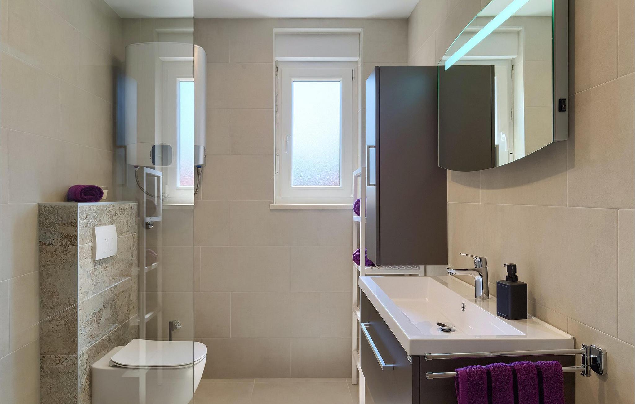 - WC med varmt og kaldt vann, Dusj