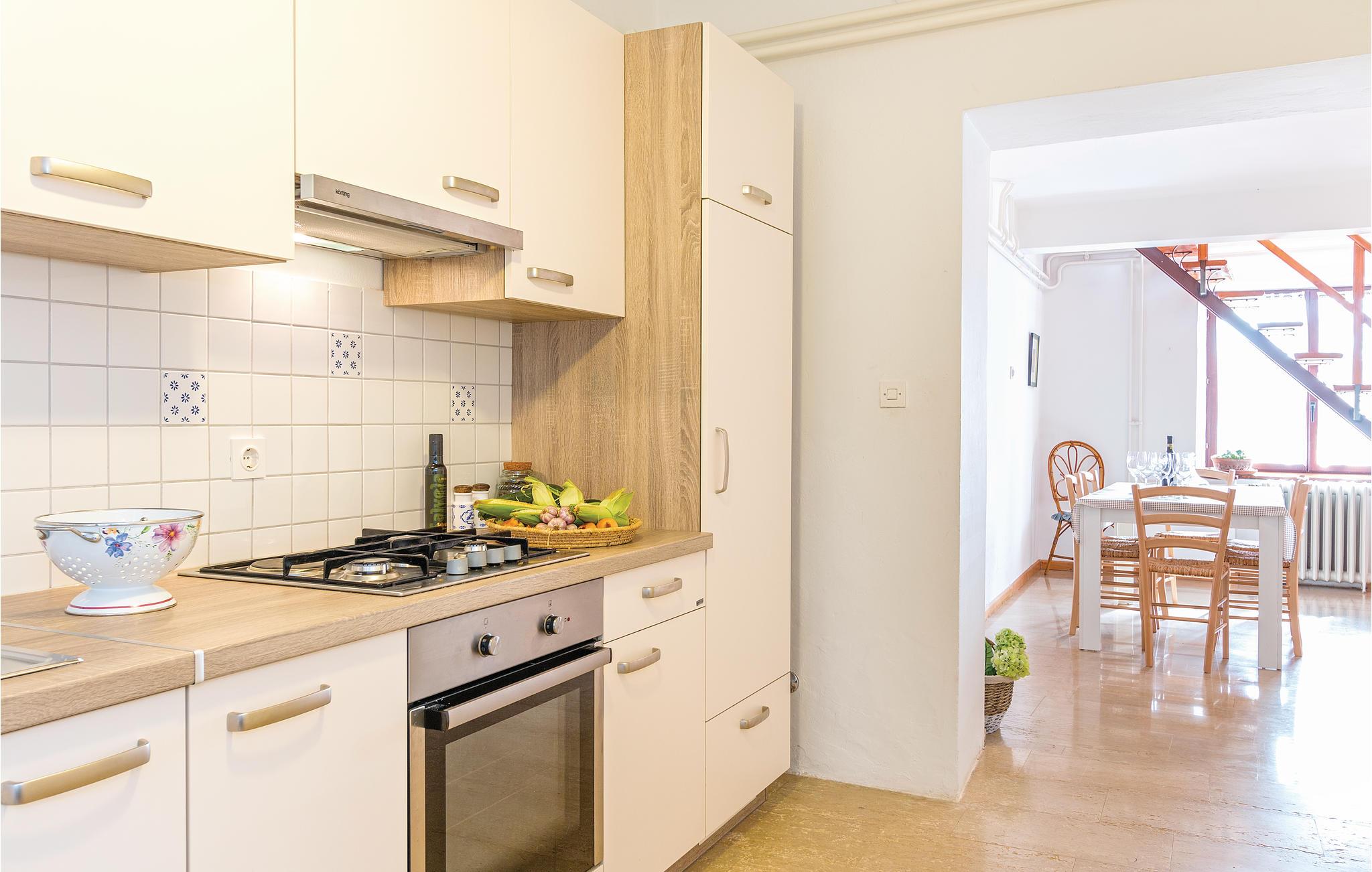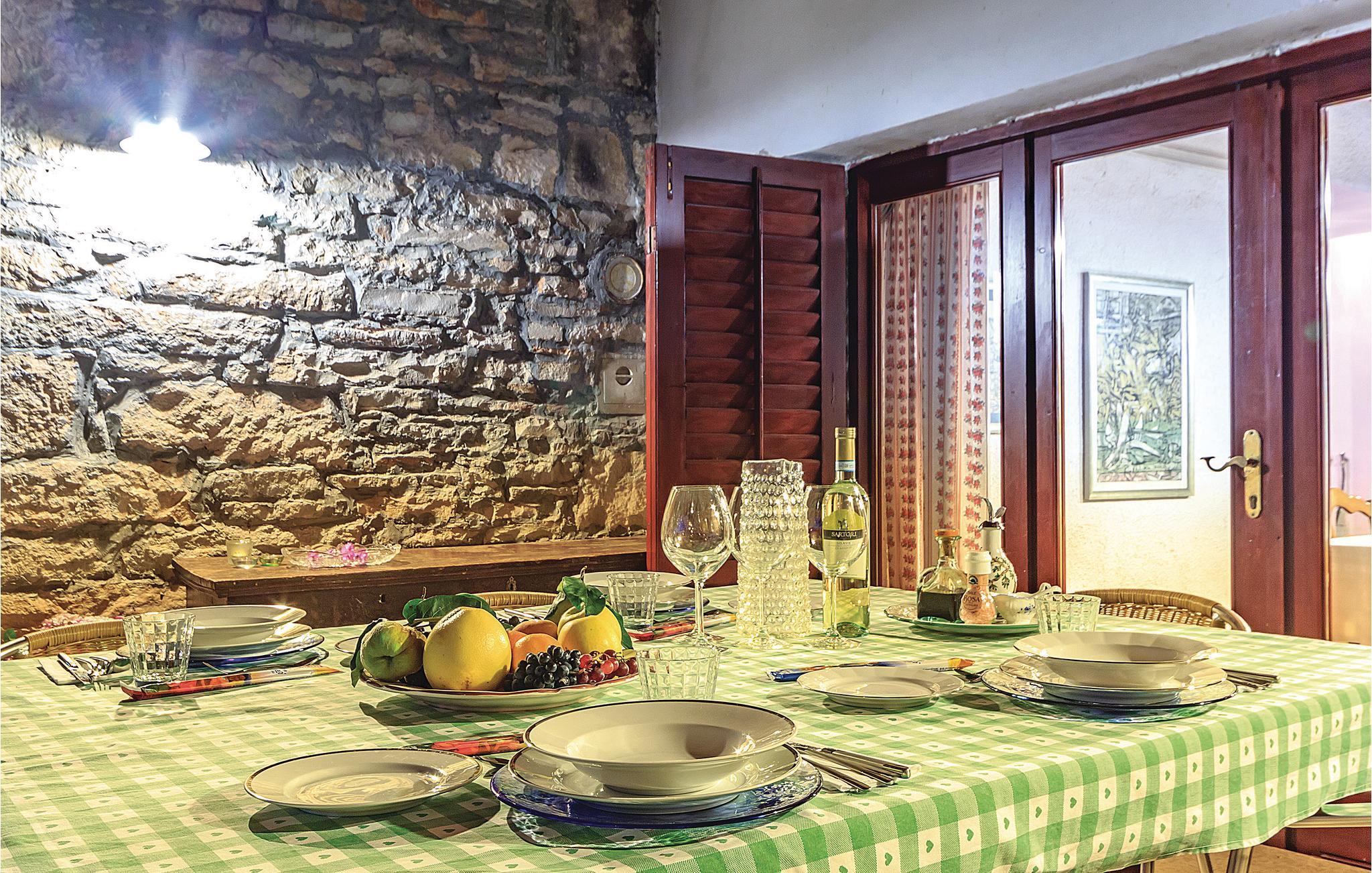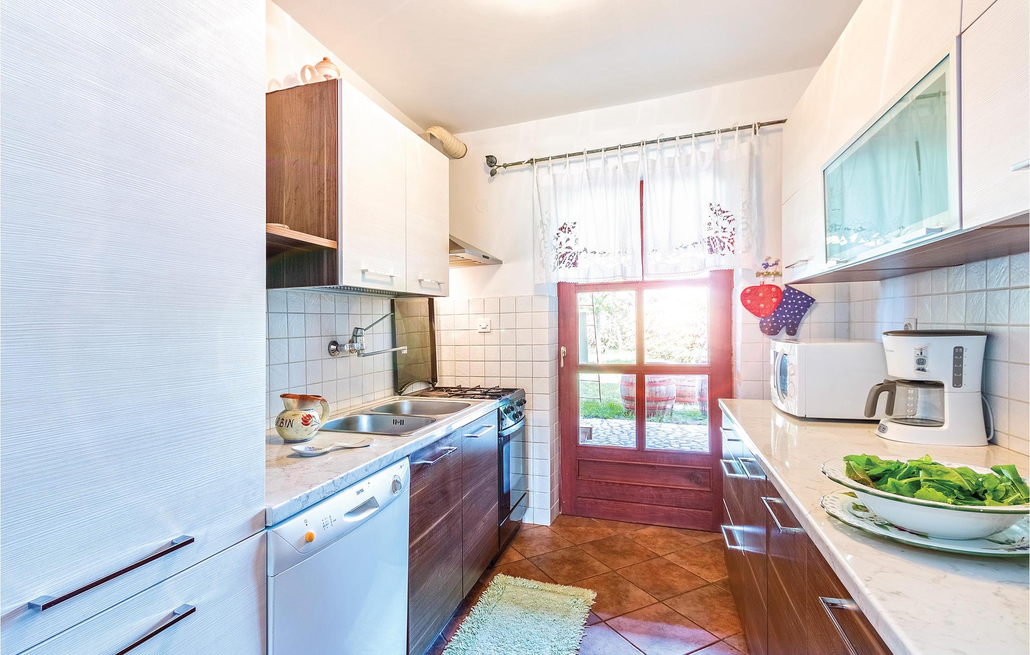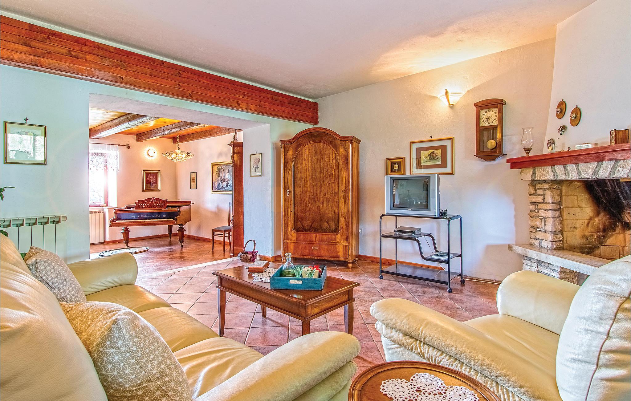 Disse to halvdelene av en tomannsbolig ligger i en idyllisk landsby. De er modernisert, romslige og innredet i typisk istrisk stil og med mye kjærlighet. Her kan du nyte livet på landet til det fulle. Den klare luften, den vakre naturen og den absolutte roen, som bare blir avbrutt av fuglesang om morgenen, vil glede deg. Barna dine har en fotballbane på den store inngjerdede tomten og kan boltre seg godt her. Den store terrassen blir din andre stue, hvor du kan nyte solen og se barna leke. I regnvær blir den overbygde terrassen en oase og inviterer deg til koselige runder. Et fantastisk svømmebasseng kan gi en forfriskende avkjøling fra sommervarmen. Der kan du også nyte en deilig cocktail i solsengen eller bare fordype deg i lett sommerlesning. Det er også 2 pianoer. Utforsk omgivelsene og oppdag mange bortgjemte bukter og strender. Soverom 3 og 4 er uten dører.