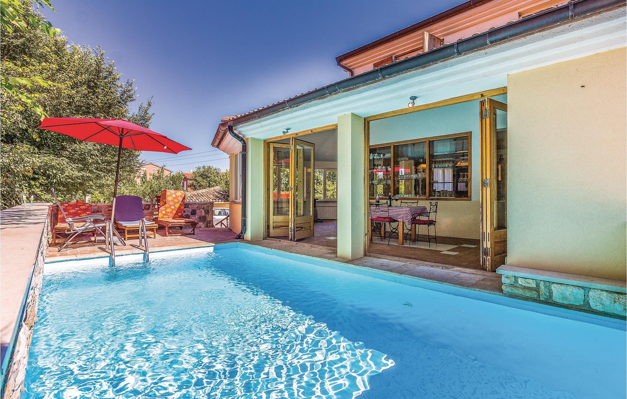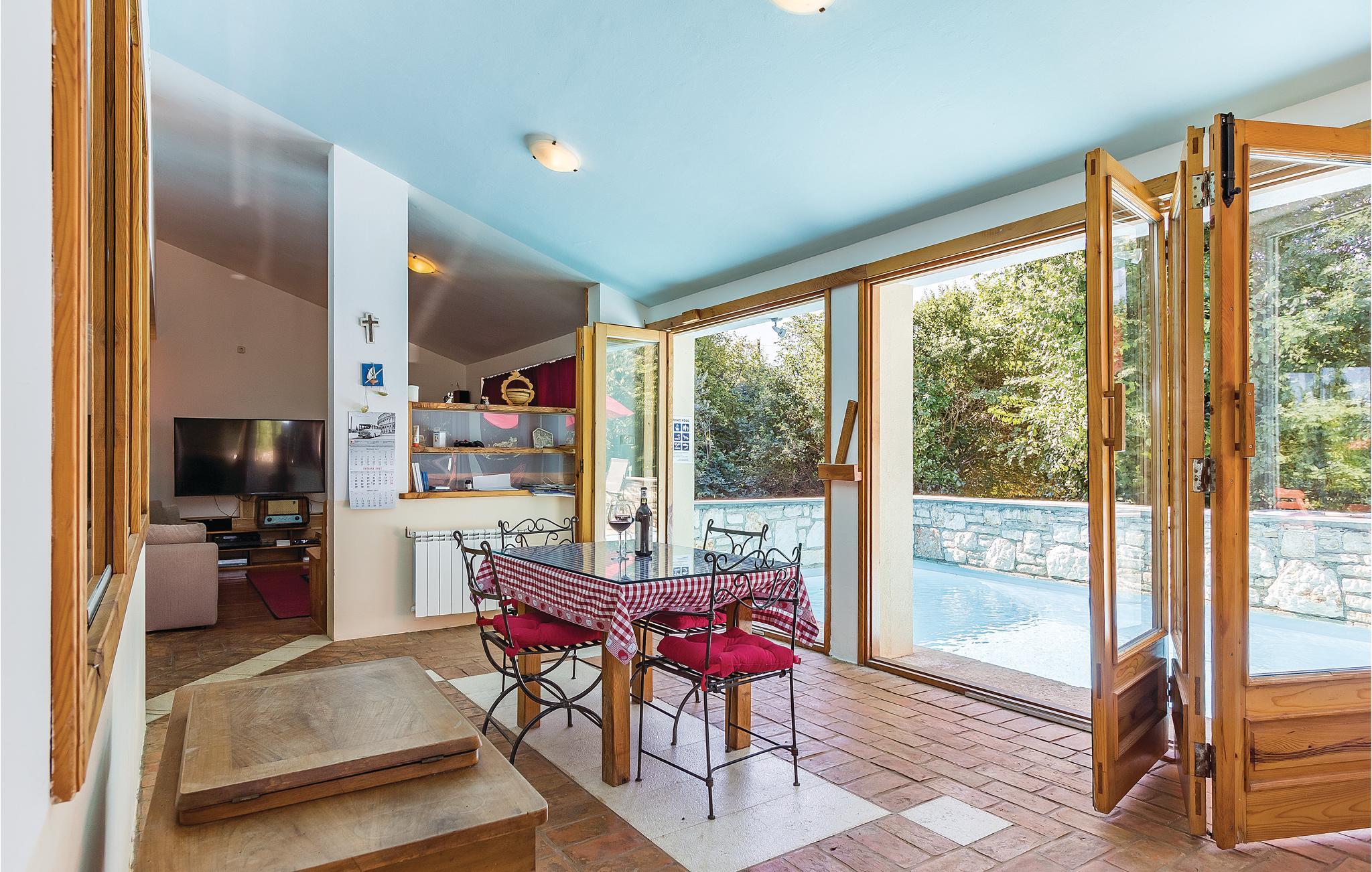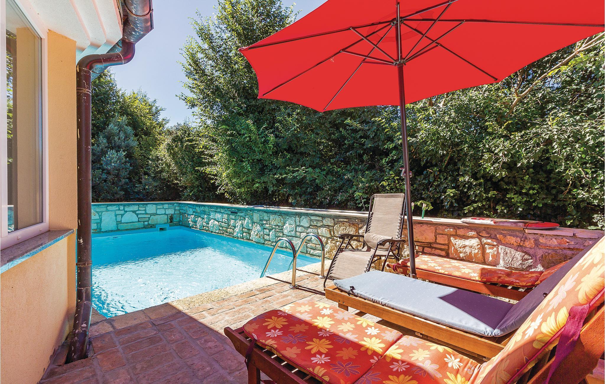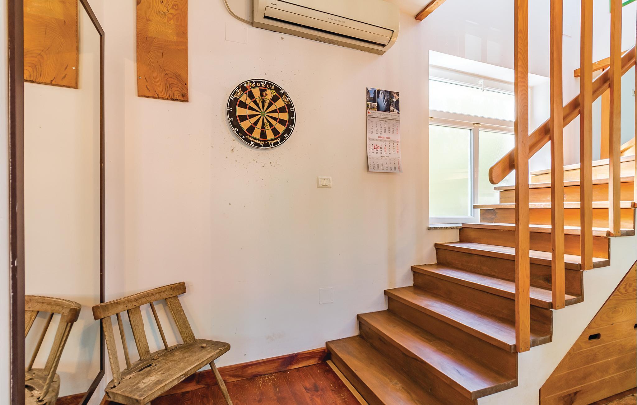 Dette moderne og veldig komfortabelt innredede huset ligger i den idylliske landsbyen Sisan. Innvendig er rommene utstyrt med moderne møbler som er veldig komfortable og gir gjestene mange muligheter til å slappe av. For enkelhets skyld er gulvene også forbundet med innvendige trapper. I første etasje finner du et stort, fullt utstyrt og moderne kjøkken med innendørs grill. Stuen er direkte koblet til terrassen og utendørsbassenget med motstrømsystem, hvor du alltid kan finne en forfriskende dukkert. I huset sørger fire bad og tre klimaanlegg for et komfortabelt opphold. Eiendommen er helt inngjerdet og er godt egnet for barna dine å leke. I nærheten har vakre Medulin spesialisert seg på familier med barn, så for gjester som ikke nødvendigvis er interessert i et vilt natteliv.