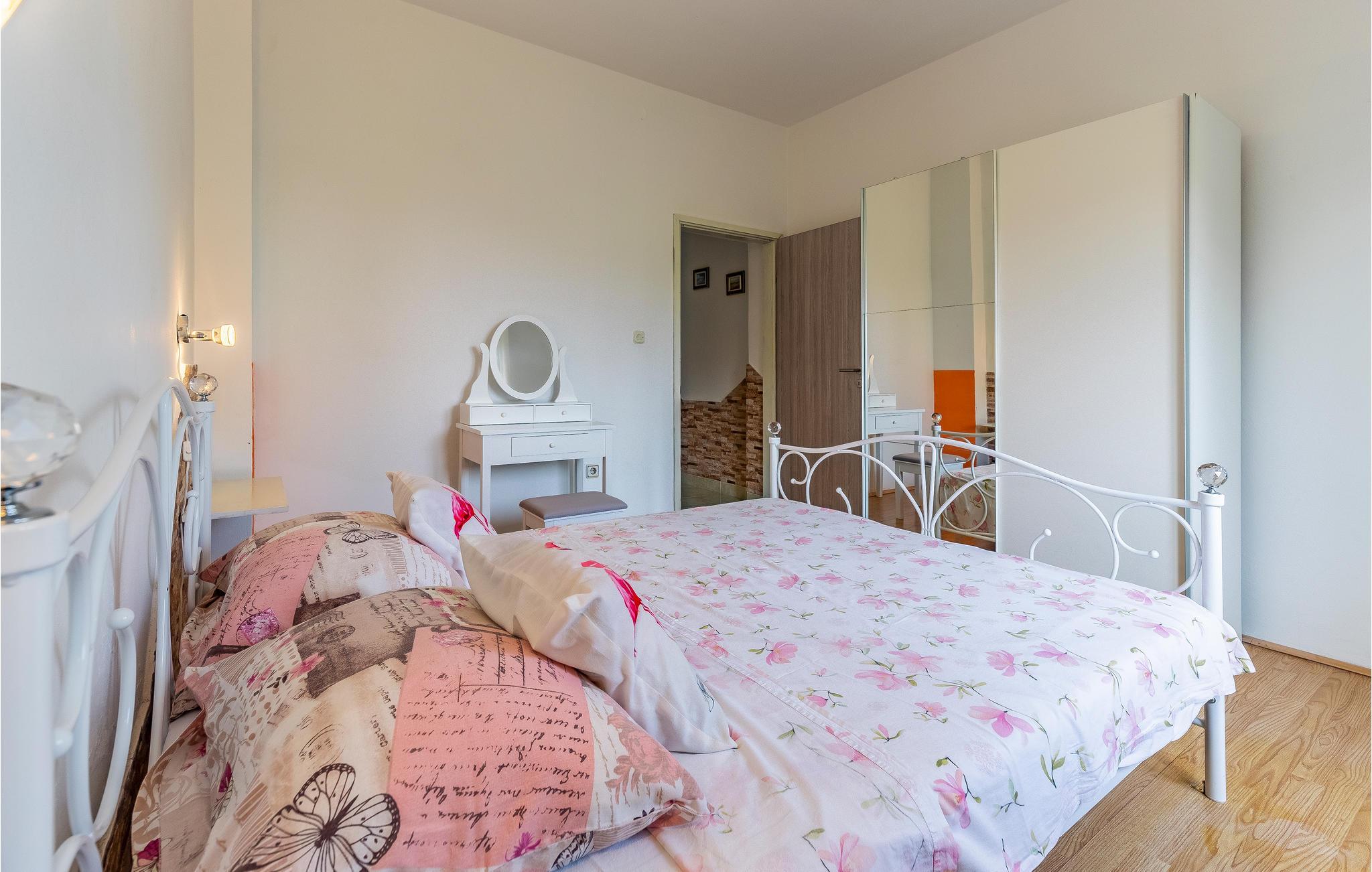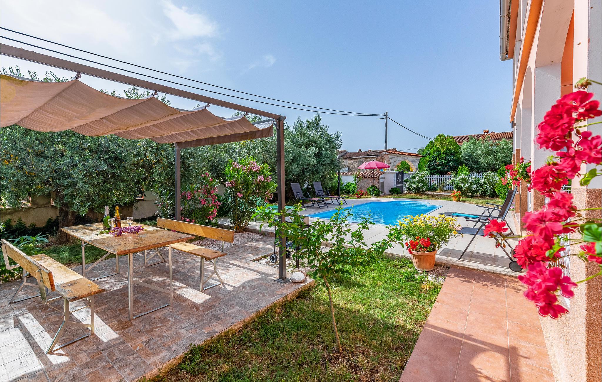 Dette tomannsboligen med basseng ligger i en rolig del av den lille landsbyen Sisan. Interiøret som kan leies er i første etasje, mens øverste etasje ikke brukes. Den har en egen inngang og en inngjerdet del av eiendommen. I bassenget kan du rolig svømme runder eller bare sole deg og slappe av. På de steinete strendene i nærheten kan du oppleve ren sol, sjø og svømmeglede. Den nærliggende byen Medulin tilbyr variert underholdning, mens gamle Pula vil glede fans av historie og arkitektur.