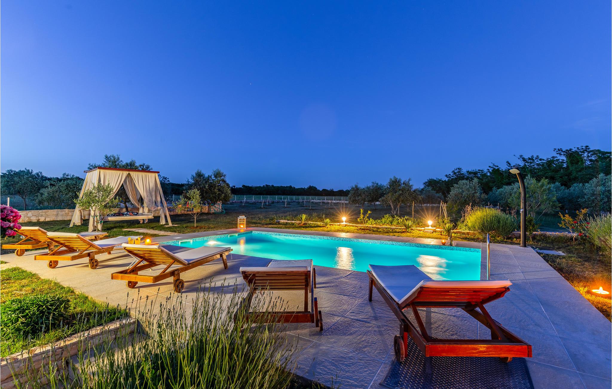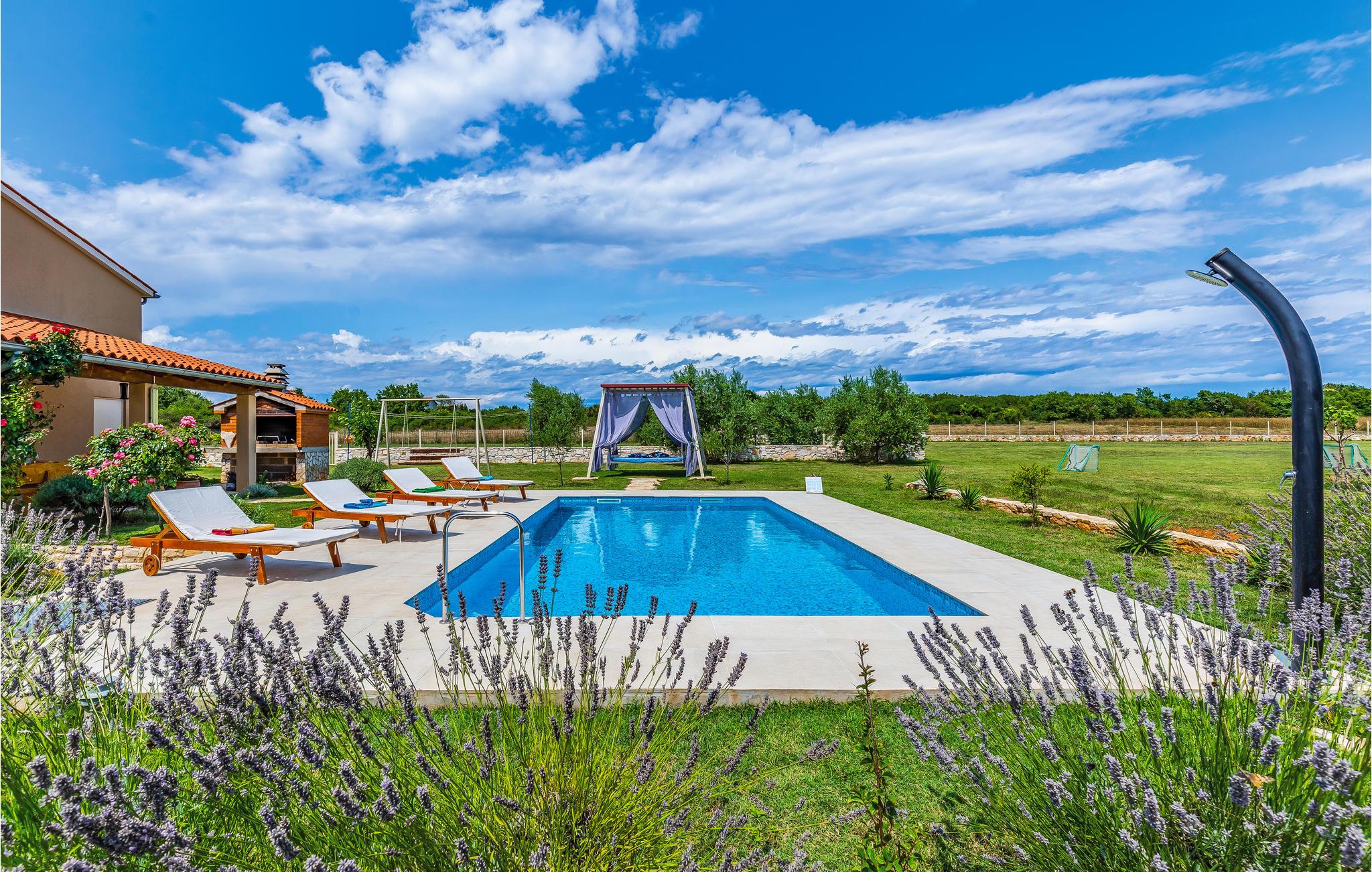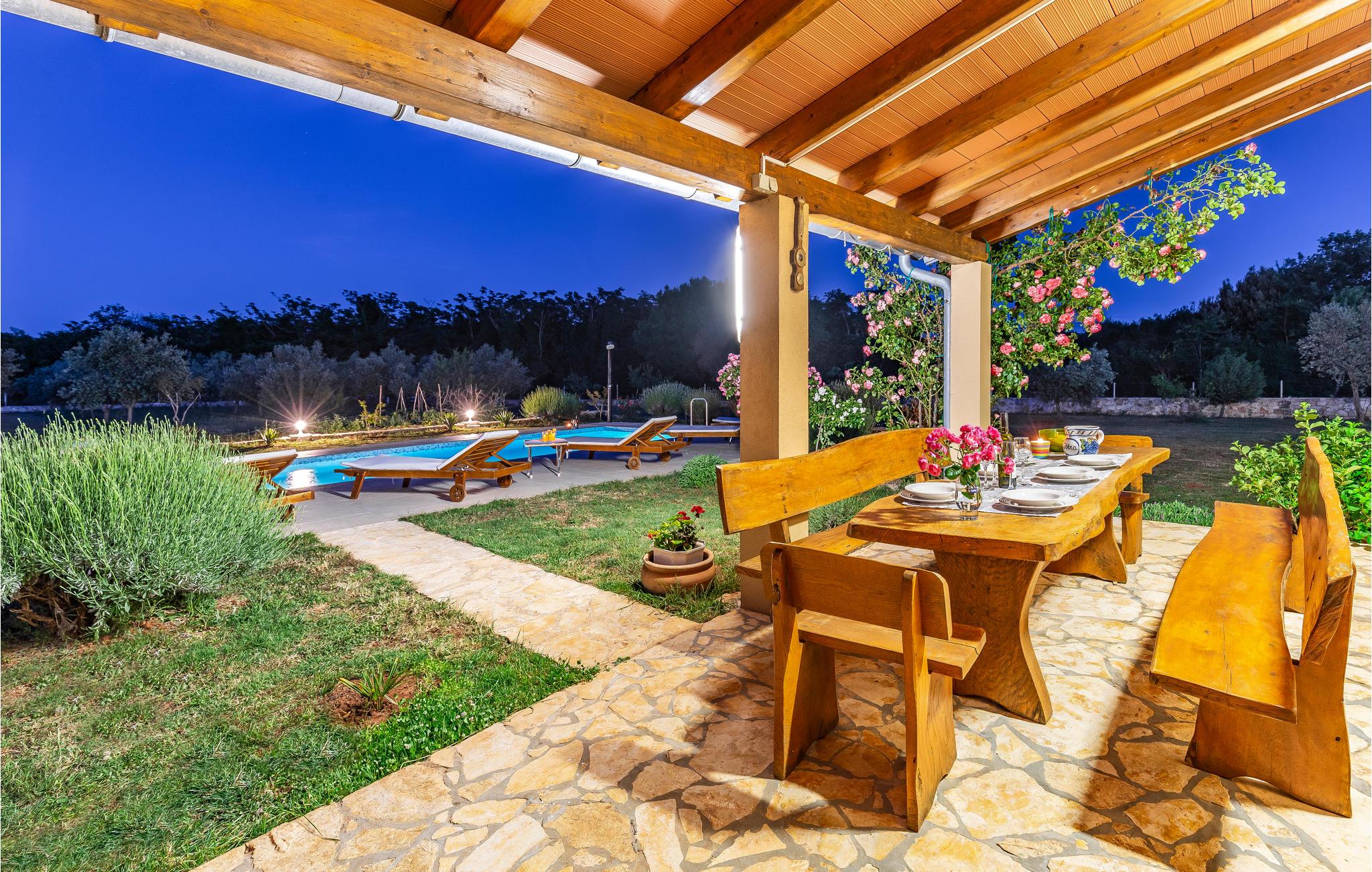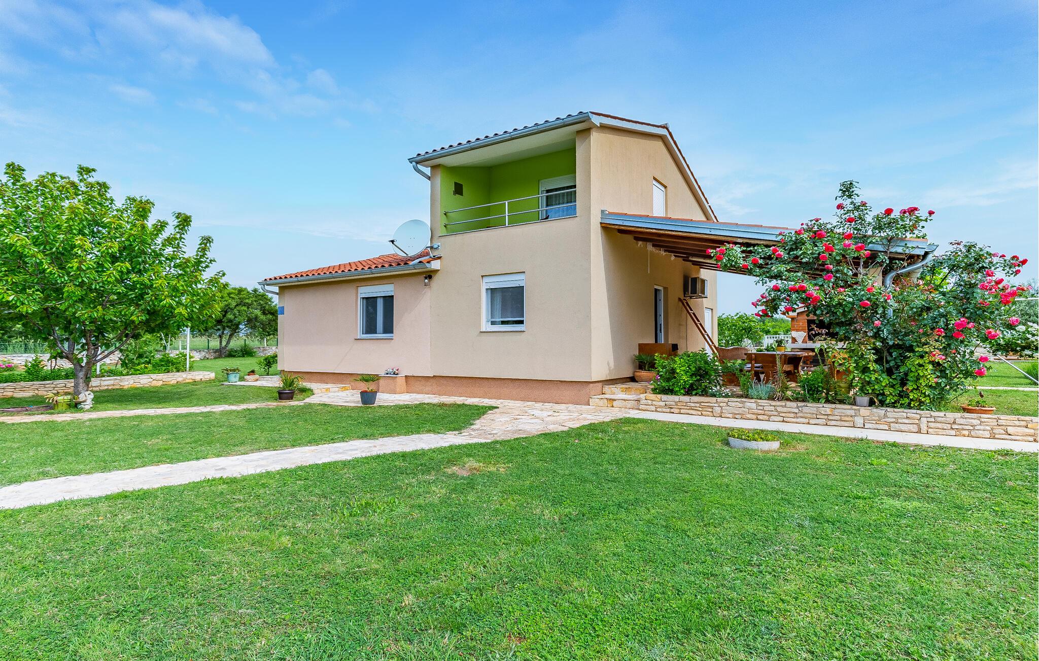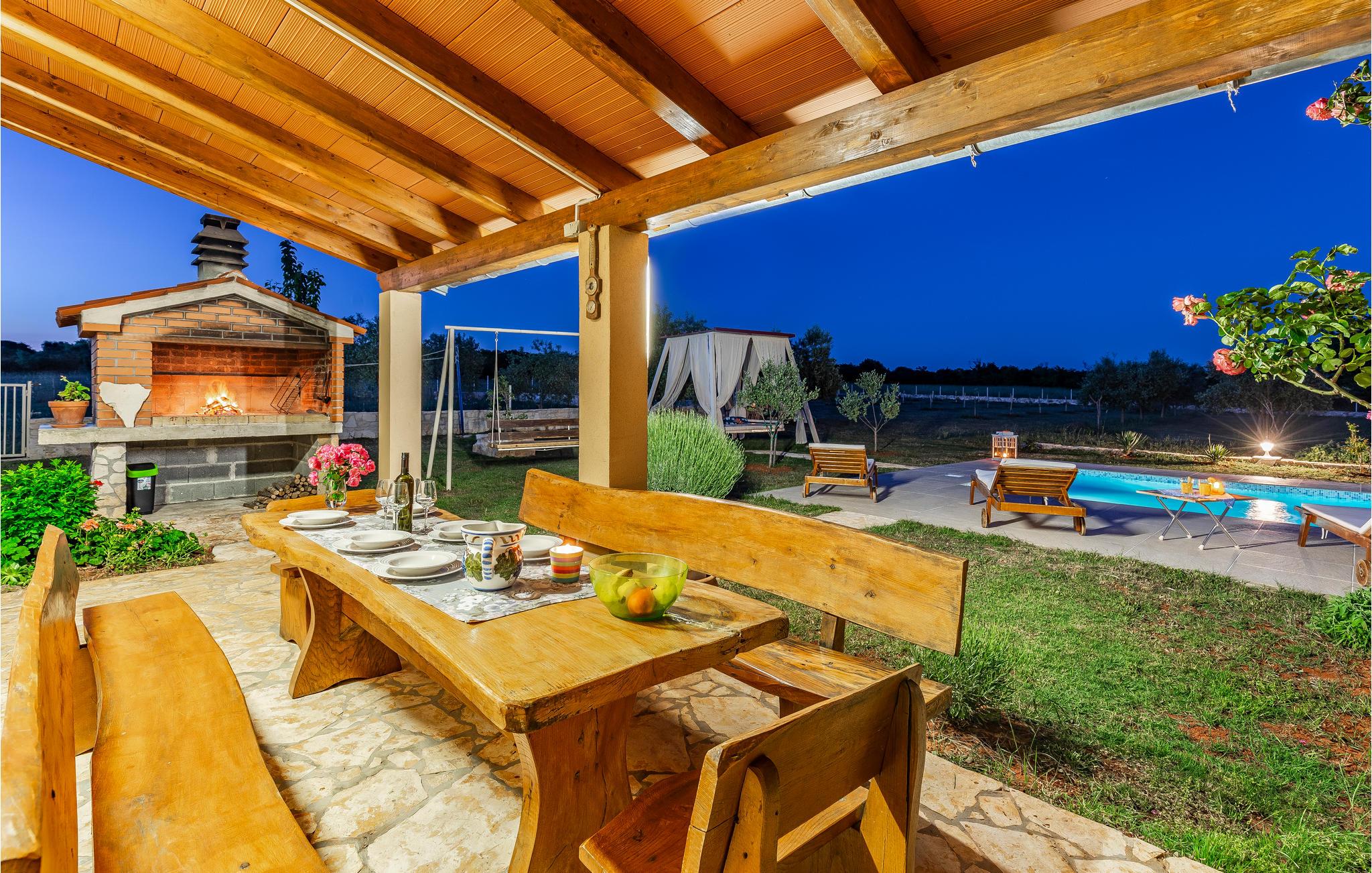 Gjør din velfortjente ferie til virkelighet i dette vakre feriehuset med basseng, som ligger på en tomt på ca. 5500 m². Eiendommen ligger litt tilbaketrukket, i nærheten av landsbyen Ian. Interiøret er fordelt over to etasjer, som er forbundet med utvendige trapper. I første etasje er det kjøkken/stue, to soverom, bad og en overbygd terrasse. I andre etasje er det et soverom, et bad og en balkong. Ved siden av den store overbygde terrassen er det en grill hvor du kan tilberede deilige måltider og plukke smakfulle grønnsaker fra den lille grønnsakshagen. Mens du slikker sol på de komfortable solsengene ved bassengområdet, har barna god plass til å leke ubekymret.