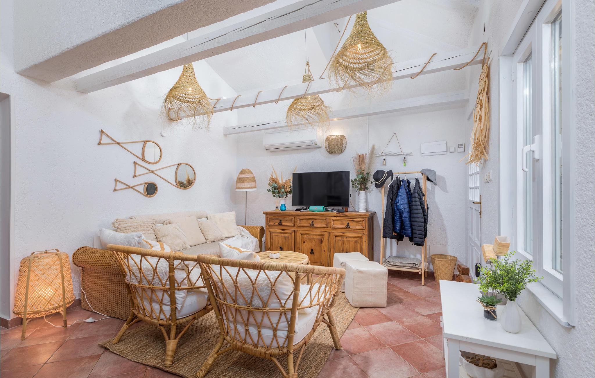Opplev en drømmeaktig ferie i denne filmklare ferieboligen. Her kan du tilbringe en fantastisk avslappende tid med storfamilien eller vennene dine. Legg hverdagens stress bak deg og slapp av i dette lyse huset, som utstråler en strandfølelse med sine flettede elementer. Forfrisk deg i bassenget når som helst på dagen og la solstrålene tørke huden din mens du slapper av på solsengene. Hvis du har barn eller kjæledyr med deg, kan de boltre seg i hagen. Om kvelden kan dere sitte sammen på den vakre terrassen og nyte deilige middelhavsretter.