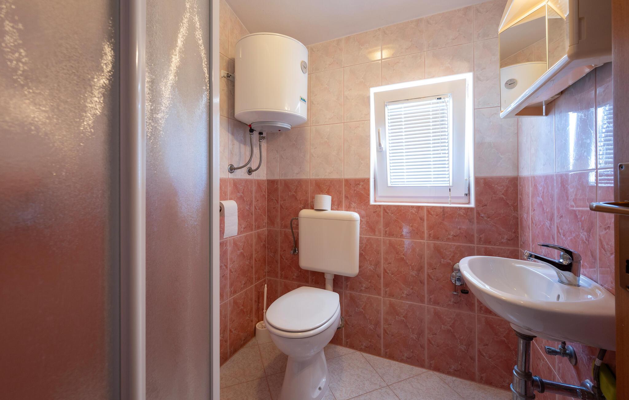 - WC med varmt og kaldt vann, Dusj