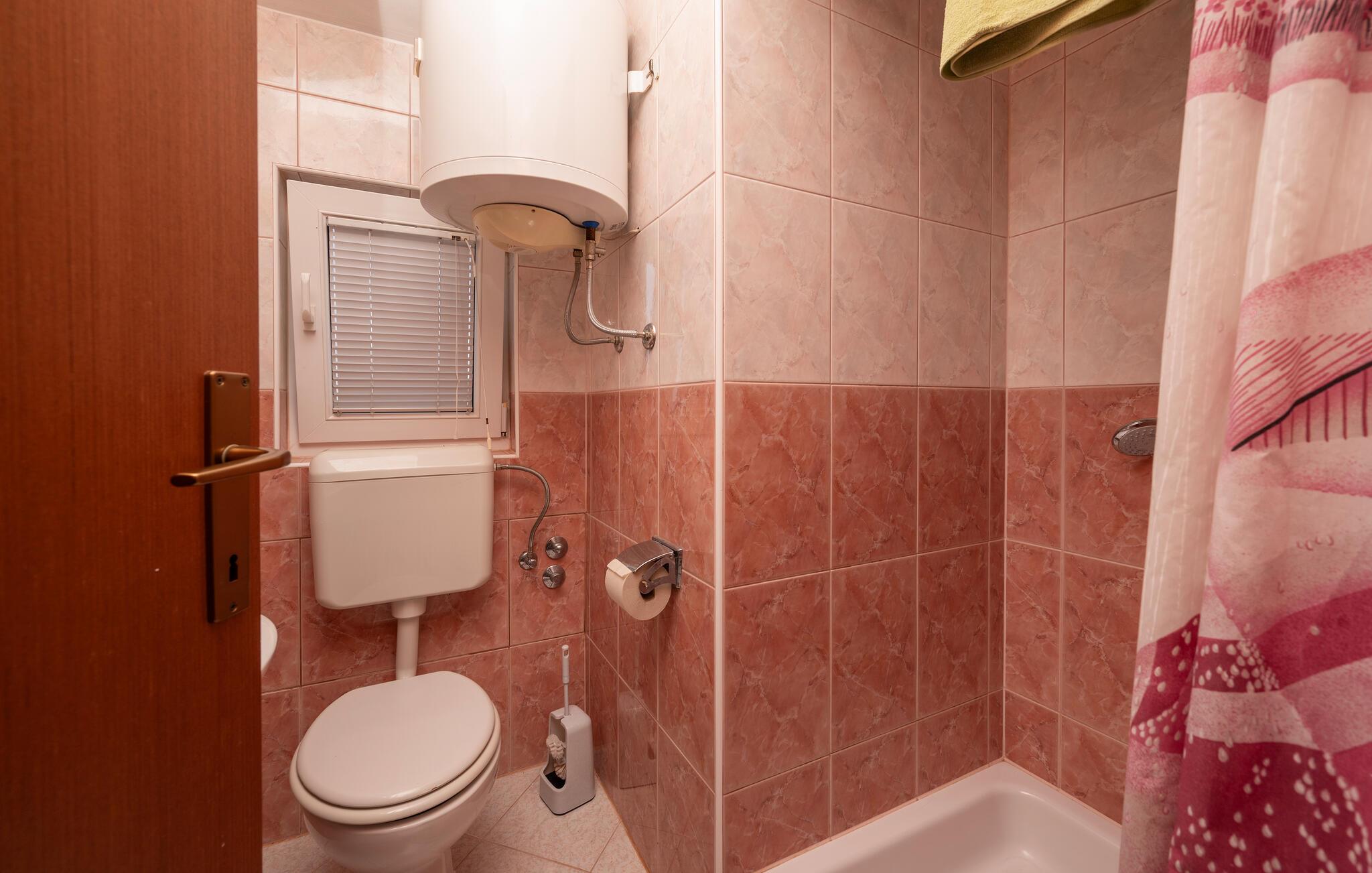 - WC med varmt og kaldt vann, Dusj