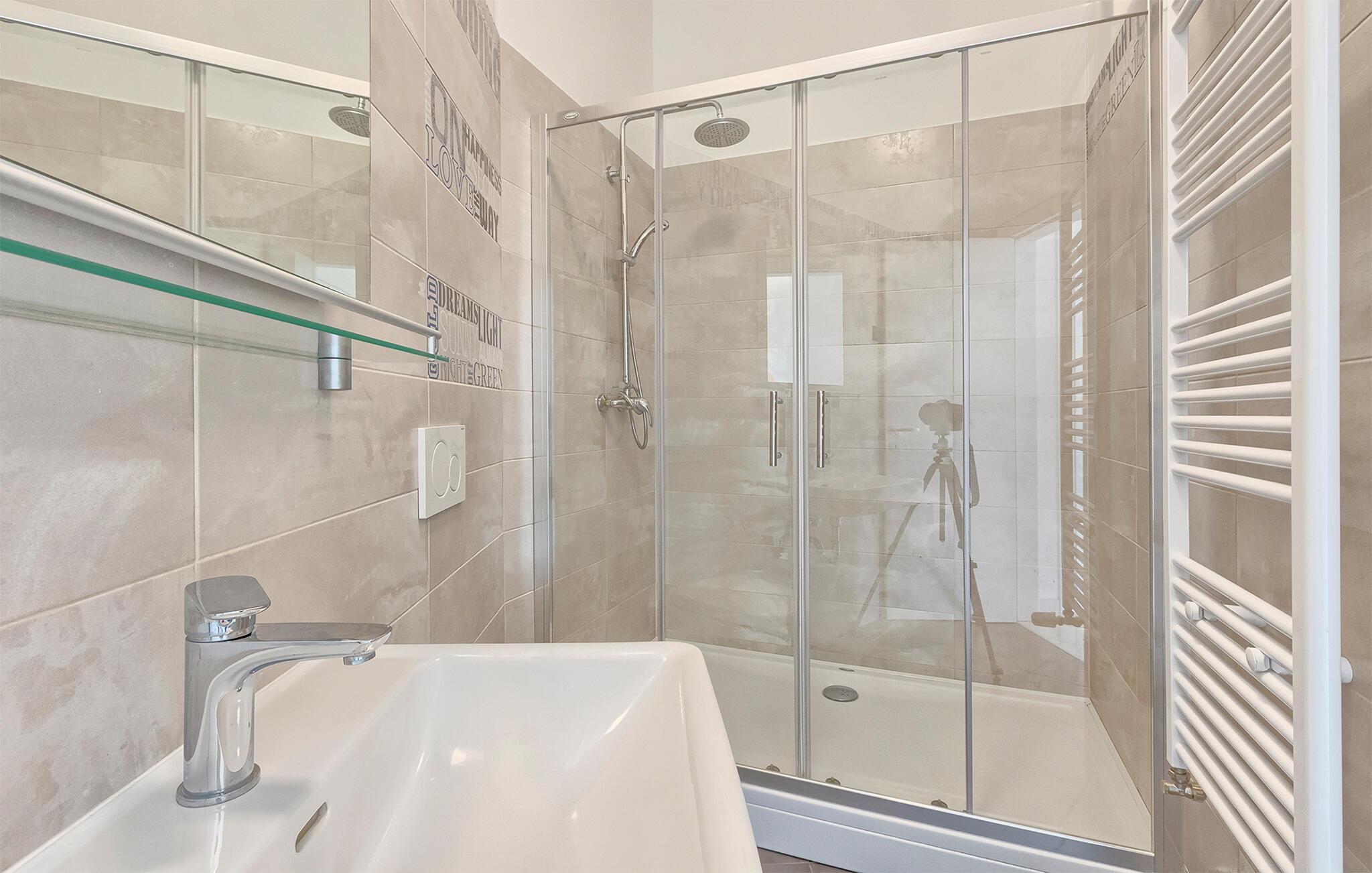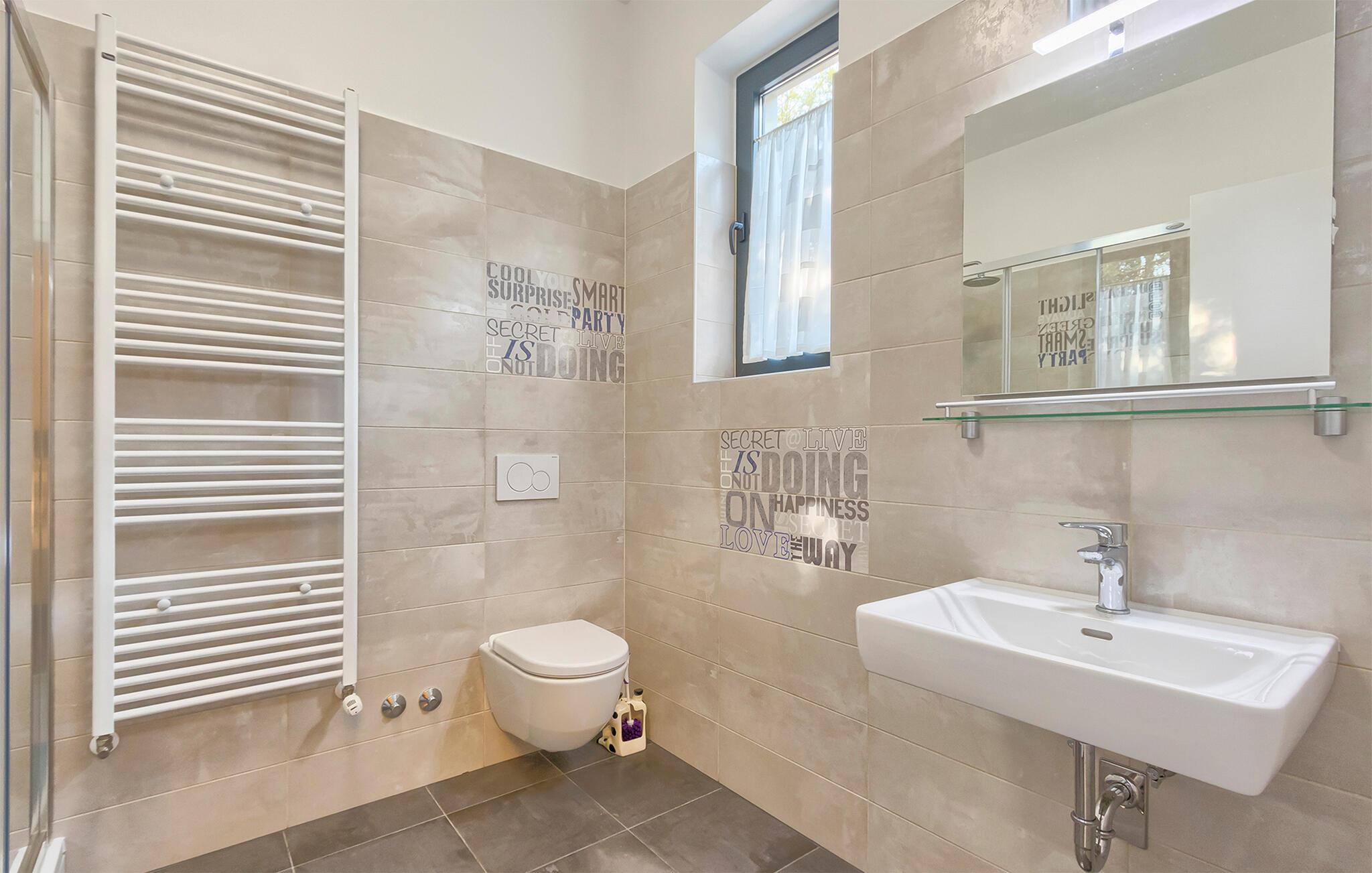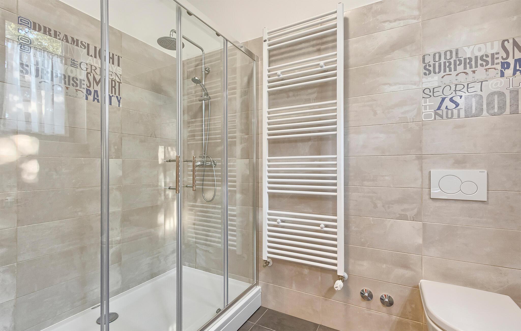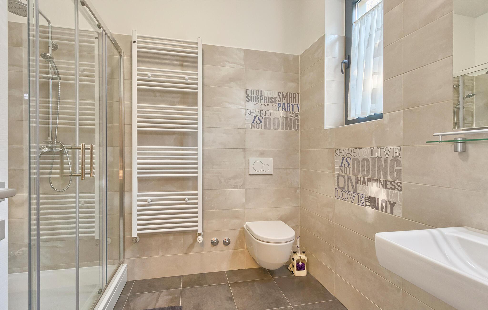 Denne stilfulle leiligheten i Stinjan i nærheten av Pula tilbyr deg og din familie eller venner elegant innkvartering med et snev av klassisk sjarm. Start dagen med frokost ved det store spisebordet som er omgitt av gulv-til-tak-vinduer. Nyt det naturlige lyset som flommer inn i rommene og utsikten over hageområdet med det vakre fellesbassenget. I stuen er det komfortable sitteplasser som innbyr til avslappende stunder. Len deg tilbake, sett deg godt til rette i den koselige sofaen og spill morsomme brettspill eller les en god bok. Det moderne kjøkkenet inspirerer til kreative matlagingskvelder. Lag dine favorittretter og nyt dem i godt selskap.