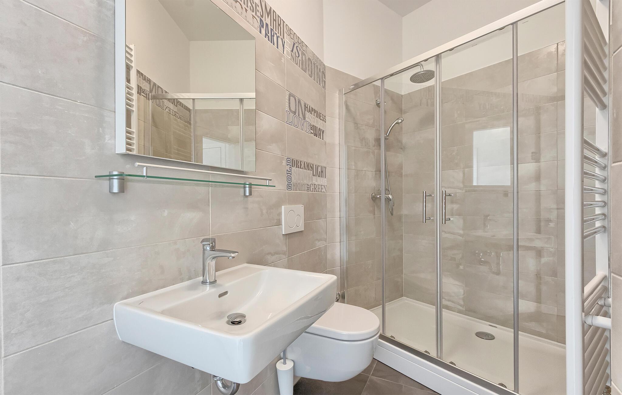 - WC med varmt og kaldt vann, Dusj